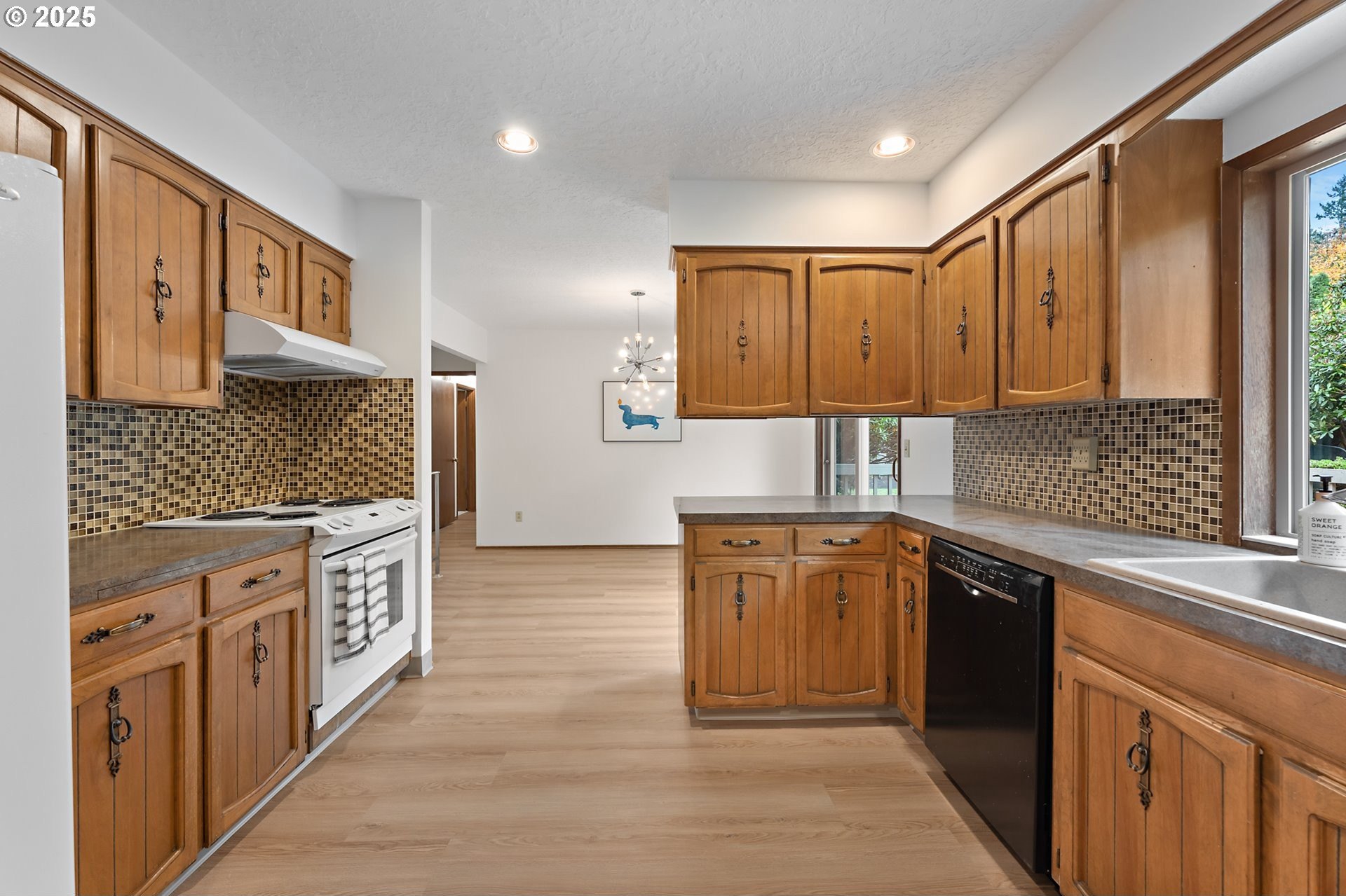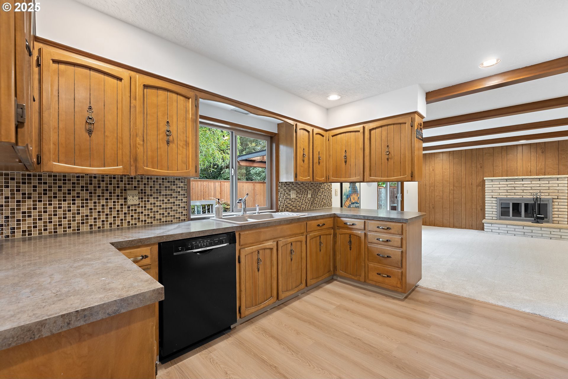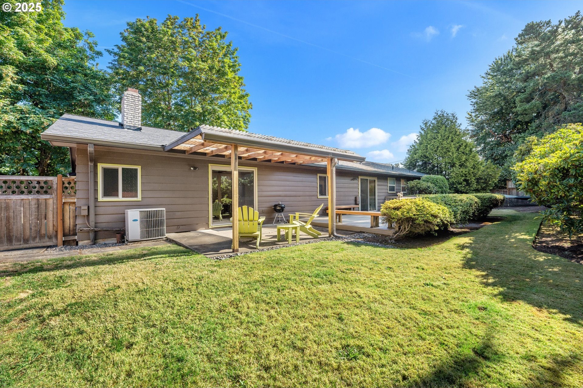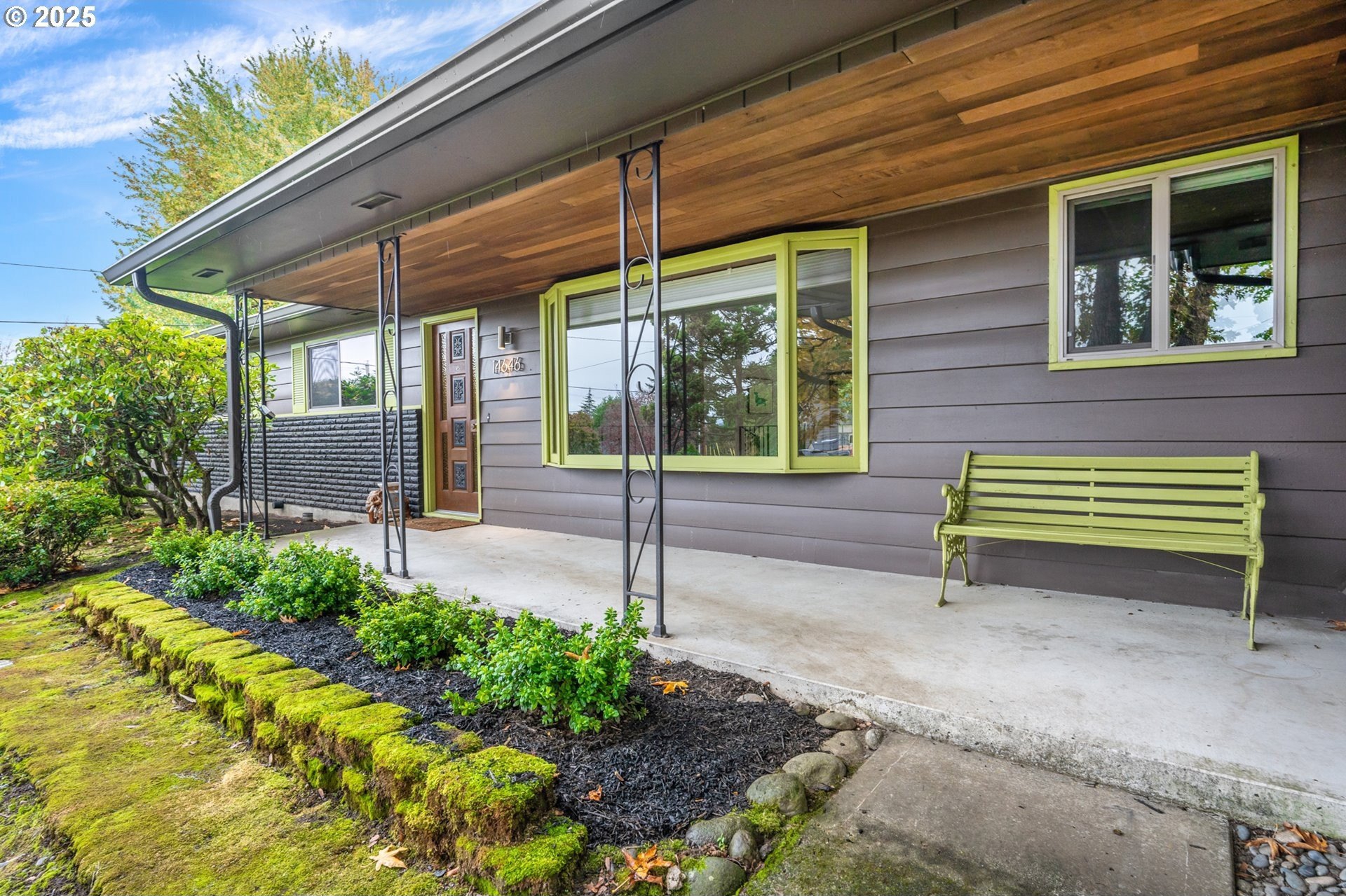 Set above the street this Glendoveer Neighborhood home provides the convenience of one level living. The 1,852 square foot floor plan offers new carpet and LVT flooring throughout. Three bedrooms & two full baths, including a generous master suite with walk-in shower and double closets. The home boasts desirable open living with defined spaces. A beautiful period fireplace, with gas logs, and bay window with seating are the centerpieces for the spacious formal sunken living room. The pass-through kitchen with solid wood cabinetry offers access to both the formal dining room, and the spacious family room, with a second cozy wood burning fireplace, beamed ceilings & sliding doors that give access to the covered patio, expansive deck and private fenced yard. The home offers a newer 50-year roof & gutters, windows, interior & exterior paint, and upgraded attic insulation. Conveniently located, just a short walk to The Glendoveer Golf Course's walking trail and onsite restaurant. [Home Energy Score = 3. HES Report
