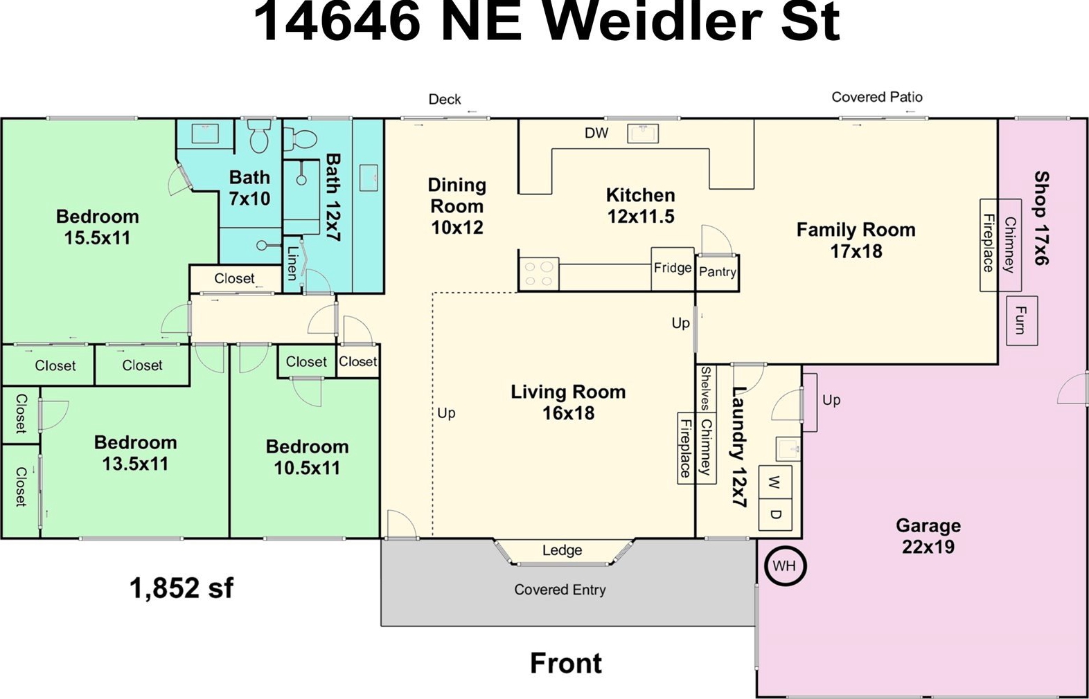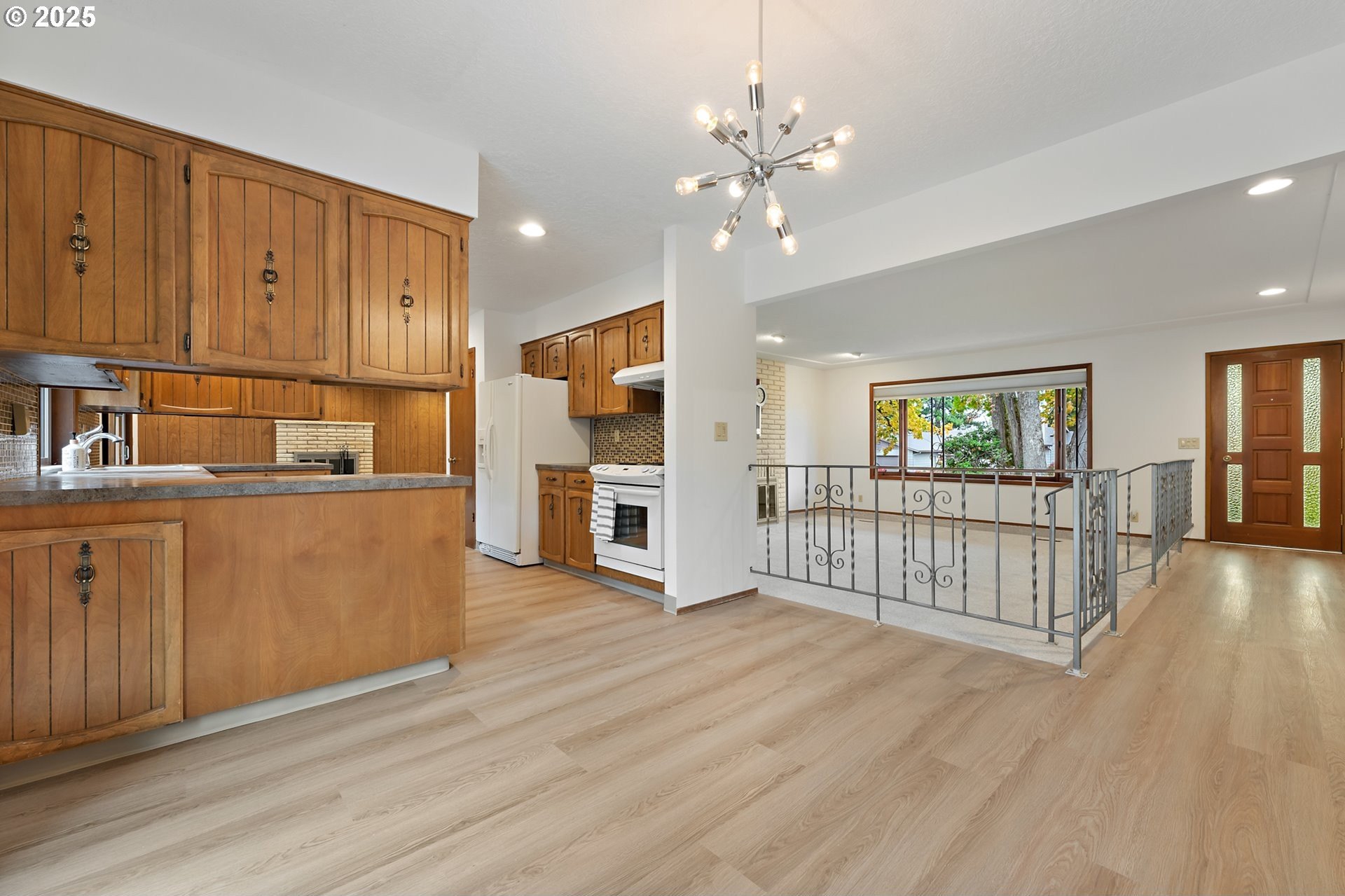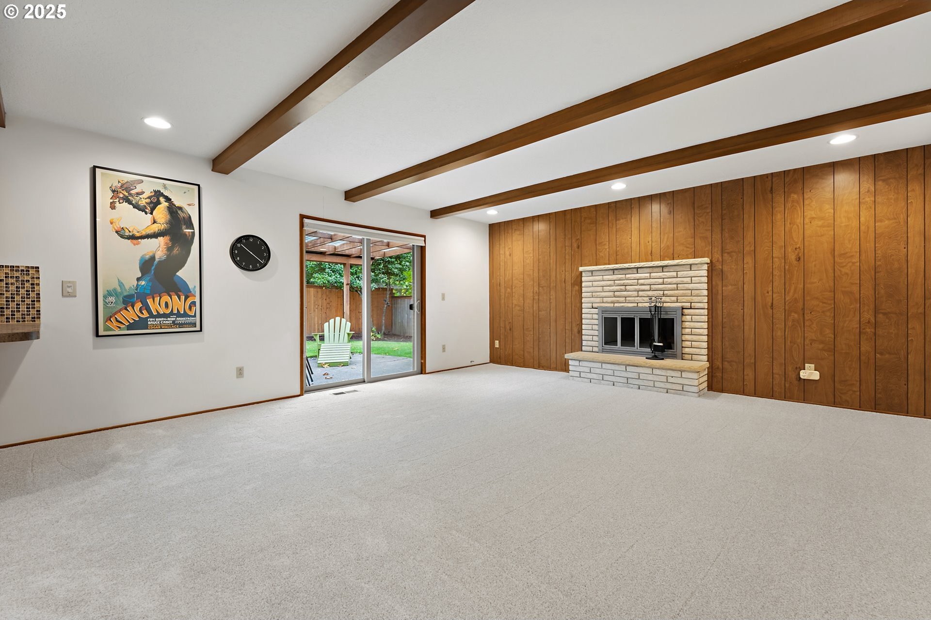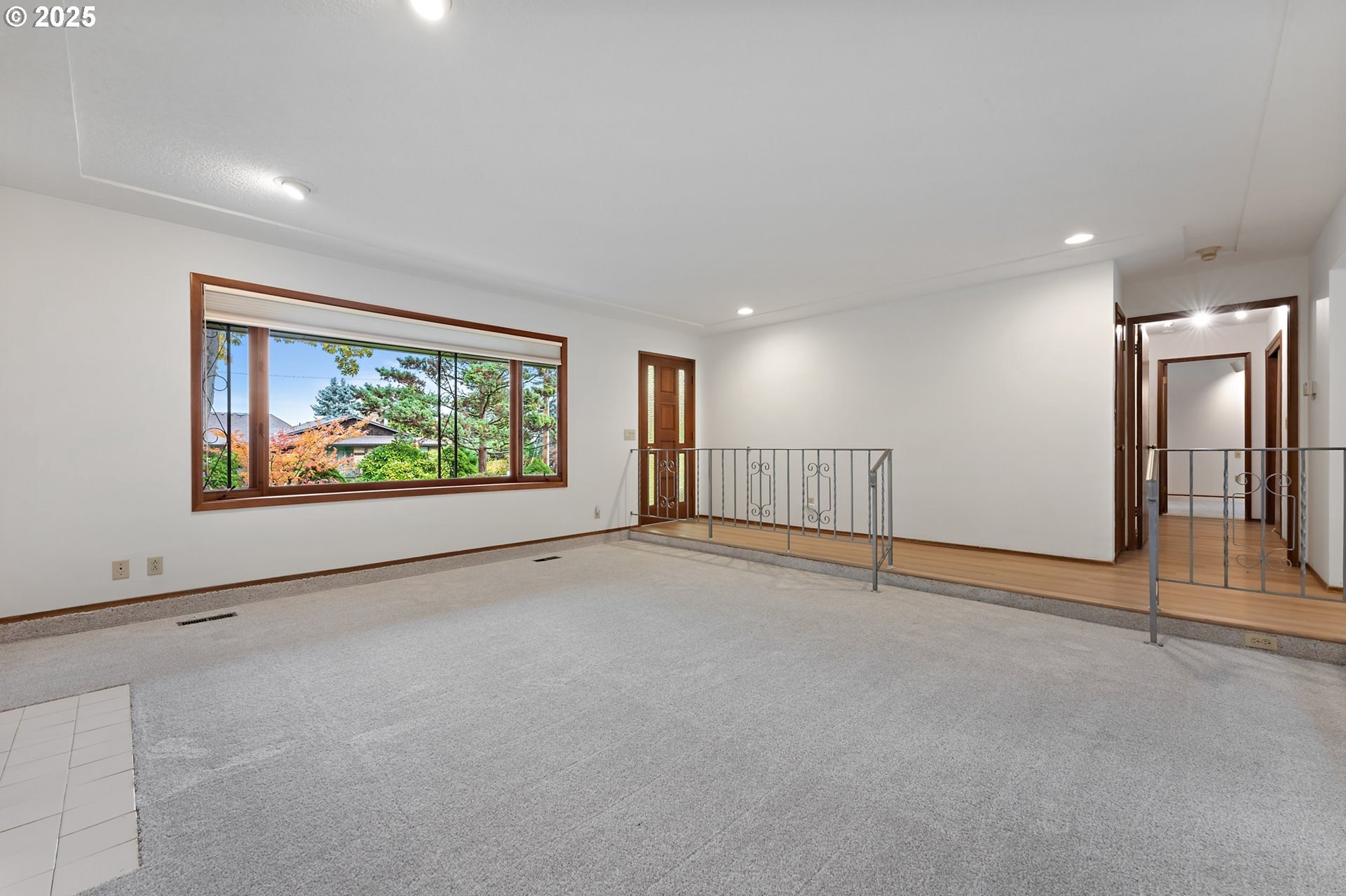 Set above the street this Glendoveer Neighborhood home provides the convenience of one level living. The 1,852 square foot floor plan offers new carpet and LVT flooring throughout. Three bedrooms & two full baths, including a generous master suite with walk-in shower and double closets. The home boasts desirable open living with defined spaces. A beautiful period fireplace, with gas logs, and bay window with seating are the centerpieces for the spacious formal sunken living room. The pass-through kitchen with solid wood cabinetry offers access to both the formal dining room, and the spacious family room, with a second cozy wood burning fireplace, beamed ceilings & sliding doors that give access to the covered patio, expansive deck and private fenced yard. The home offers a newer 50-year roof & gutters, windows, interior & exterior paint, and upgraded attic insulation. Conveniently located, just a short walk to The Glendoveer Golf Course's walking trail and onsite restaurant. [Home Energy Score = 3. HES Report