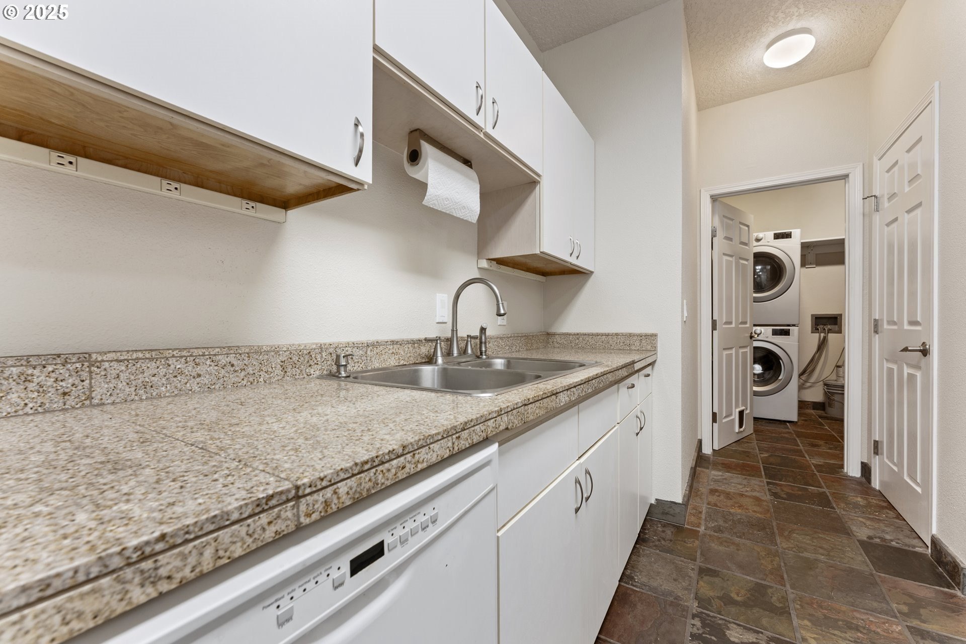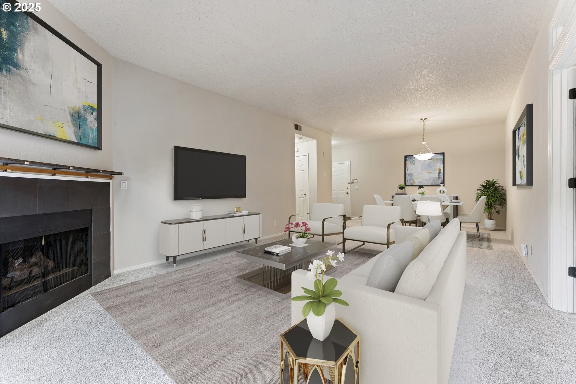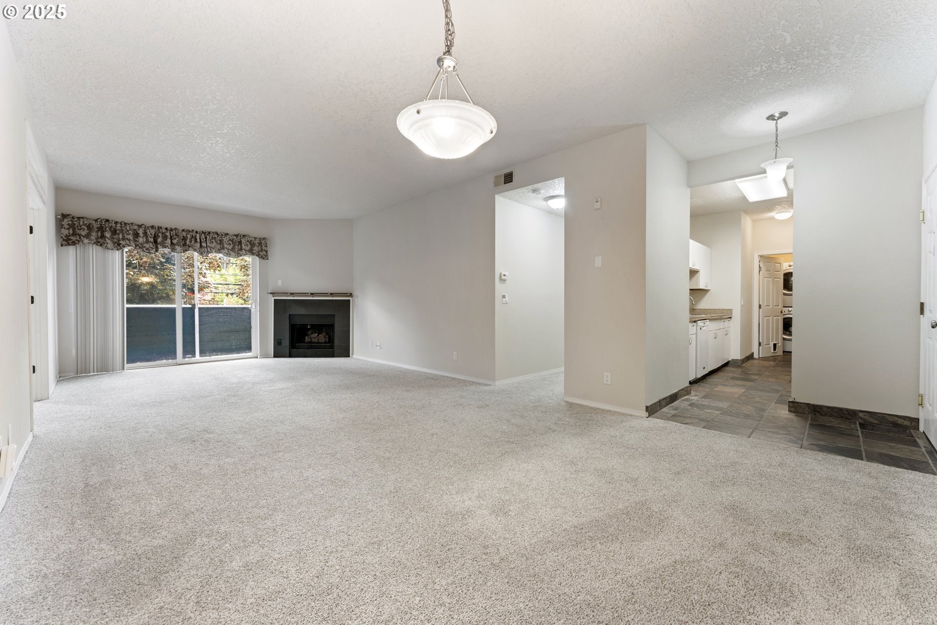 Beautiful Condo with River Views. This updated 3-bedroom, 2-bath condo offers breathtaking views of the Willamette River. The bright and open floor plan features a cozy gas fireplace, fresh paint, and new flooring throughout. The kitchen has been outfitted with quartz countertops, a sleek subway tile backsplash. The spacious primary suite includes a custom walk-in closet and a renovated bath with contemporary finishes. The building offers a secure elevator, two deeded parking spaces, and a spacious storage unit and is nestled in the sought-after Johns Landing neighborhood. It provides convenient access to Downtown, South Waterfront, OHSU, Tilikum Crossing, Willamette Park, and a variety of parks, trails, shops, restaurants, and public transit options. HOA dues cover Sewer, Water, Garbage, Cable, Internet, Landscaping, exterior maintenance, HVAC/AC Servicing, and Common Area maintenance/cleaning. An ideal combination of modern updates, stunning views, and an unbeatable location-this condo is a must-see!