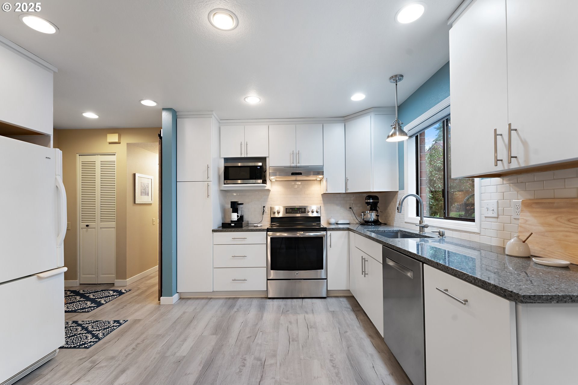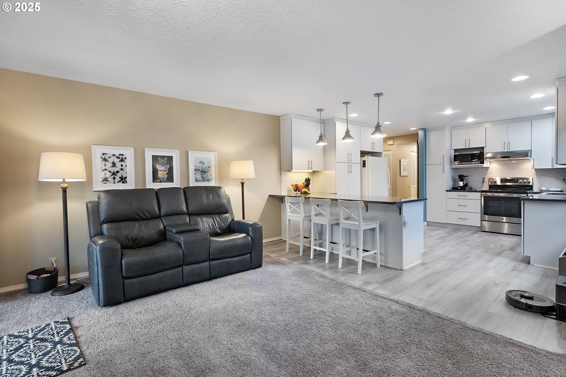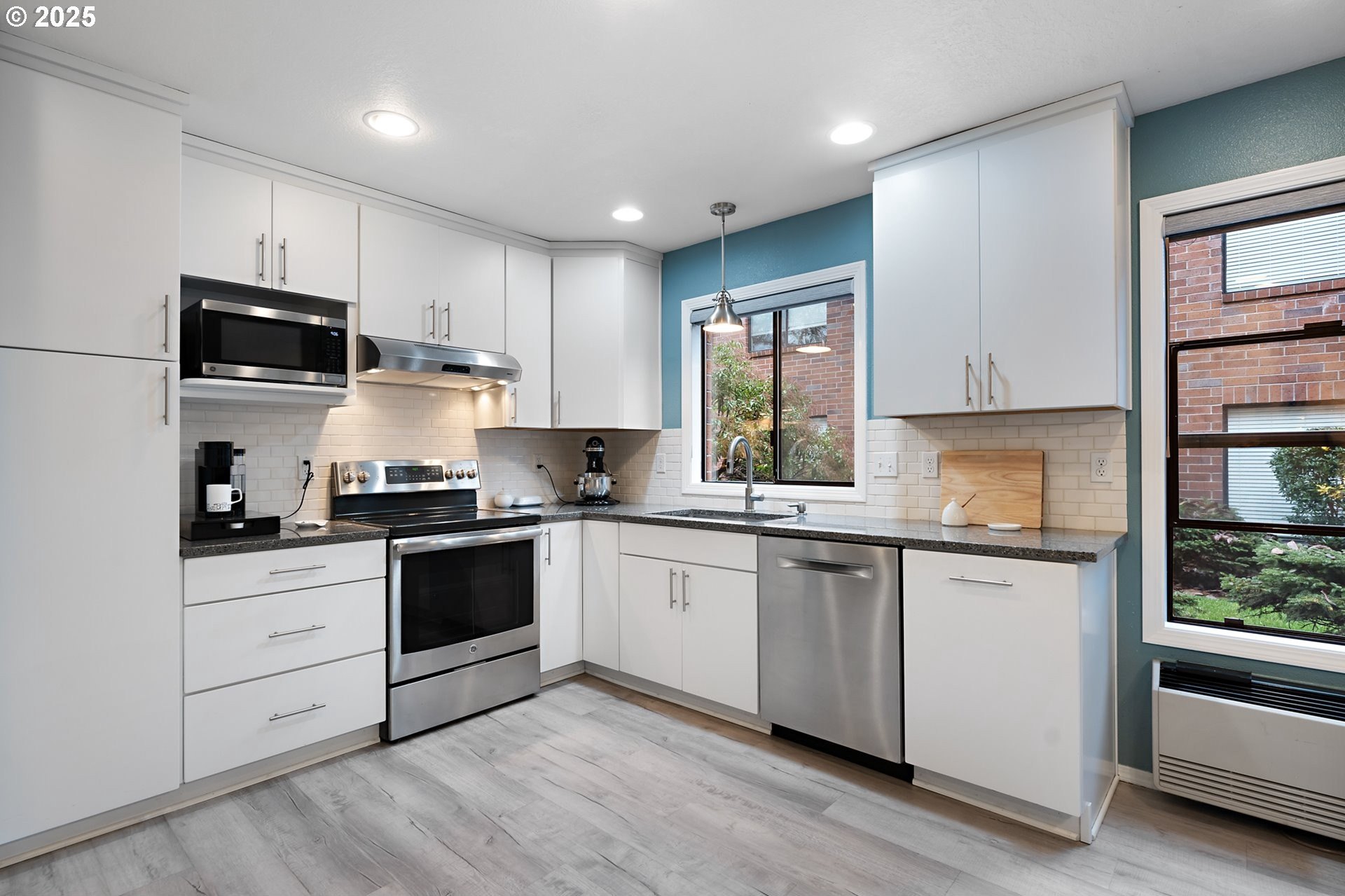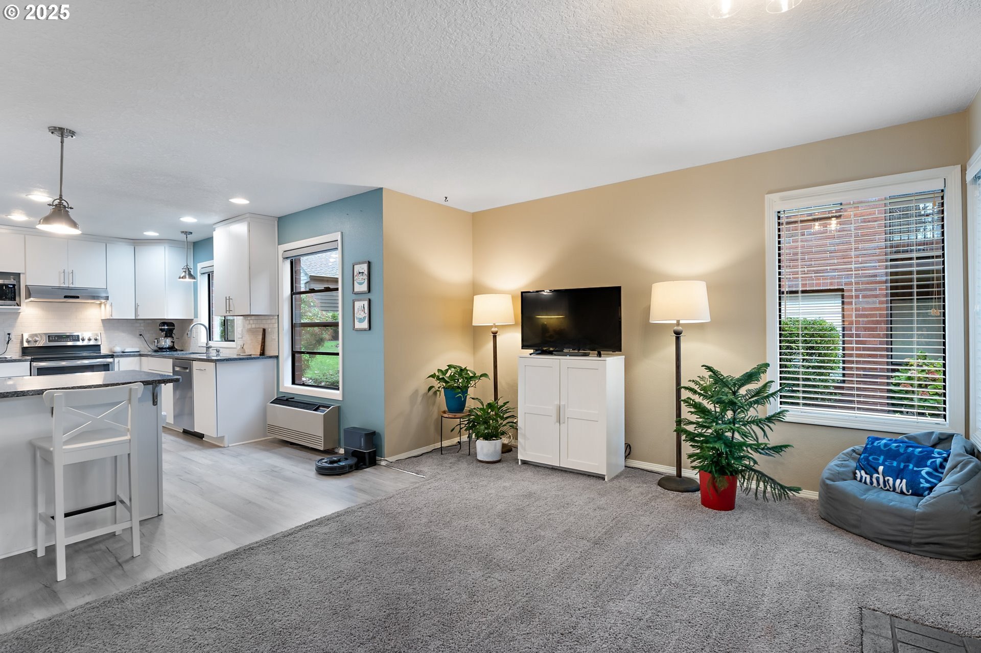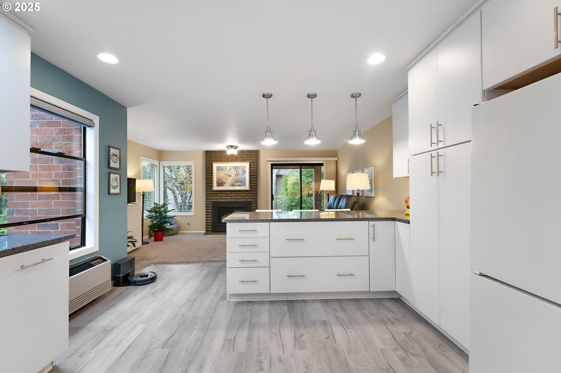 Prepare to be enchanted by this light, bright, and beautifully remodeled 1-bedroom, 1-bath, 762 sq ft end-unit condo in the coveted Fountains at Summerfield 55+ community! Perfect for those seeking a quiet, private hideaway, this ground-level home is filled with natural light from windows on three sides and offers an inviting open floor plan designed for easy living. Step inside to a spacious living room featuring a cozy gas fireplace insert-ideal for crisp mornings-and a slider leading to your large covered private patio, a lovely spot for morning coffee or afternoon lounging. The updated kitchen is a true standout with granite countertops, soft-close cabinetry, deep pot-and-pan drawers, and a gracious breakfast bar for quick bites or friendly chats. The beautifully remodeled bath includes a walk-in shower, and you'll appreciate the convenience of an inside washer and dryer. A pristine detached single garage offers room for both your vehicle and a golf cart-perfect for making the most of Summerfield life. Active 55+ living awaits with an impressive array of amenities: optional 9-hole golf (annual resident pass only $750), pickleball and tennis courts, swimming pool, fitness center, library, clubhouse activities, and more. Secure entry and a peaceful setting complete the picture. Fountains 2025 HOA dues are $525/month and include water/sewer, basic cable, garbage/recycling, landscaping, yard and building maintenance, outside lighting, monthly entryway cleaning, annual exterior window washing, and building insurance. Immaculate, move-in ready, and perfectly situated for both relaxation and recreation-this is the vibrant, carefree lifestyle you've been waiting for!
