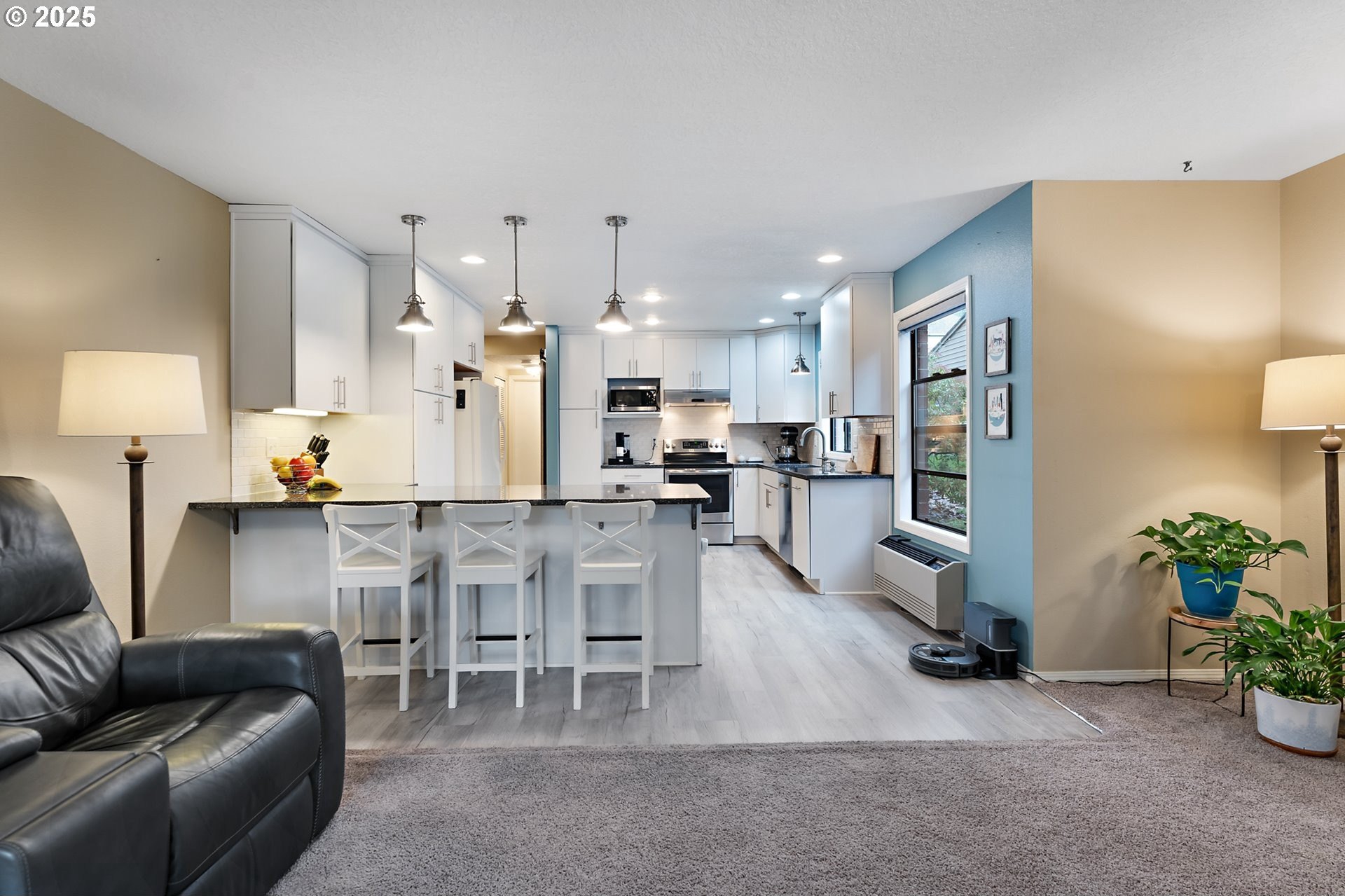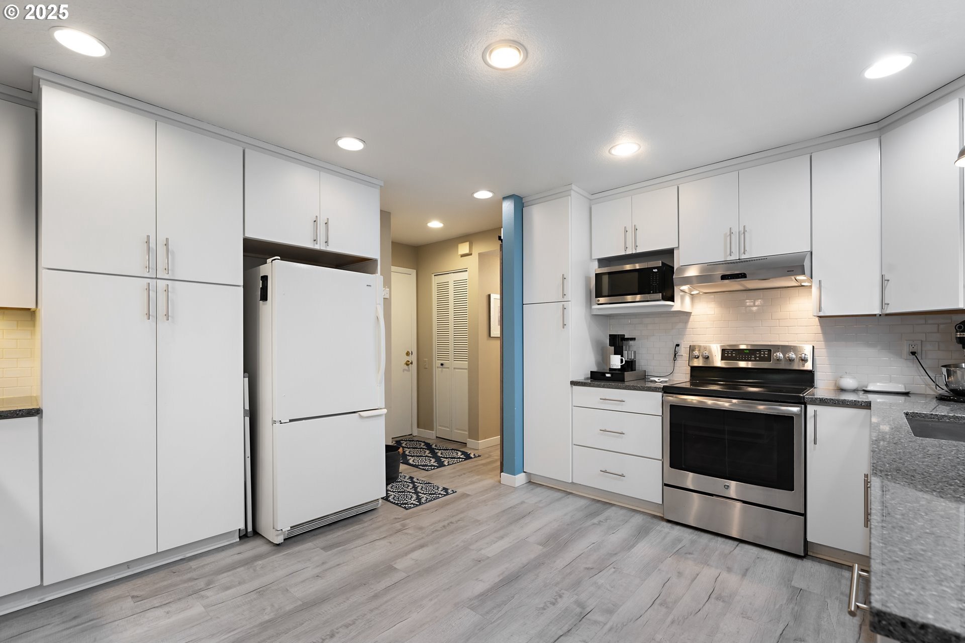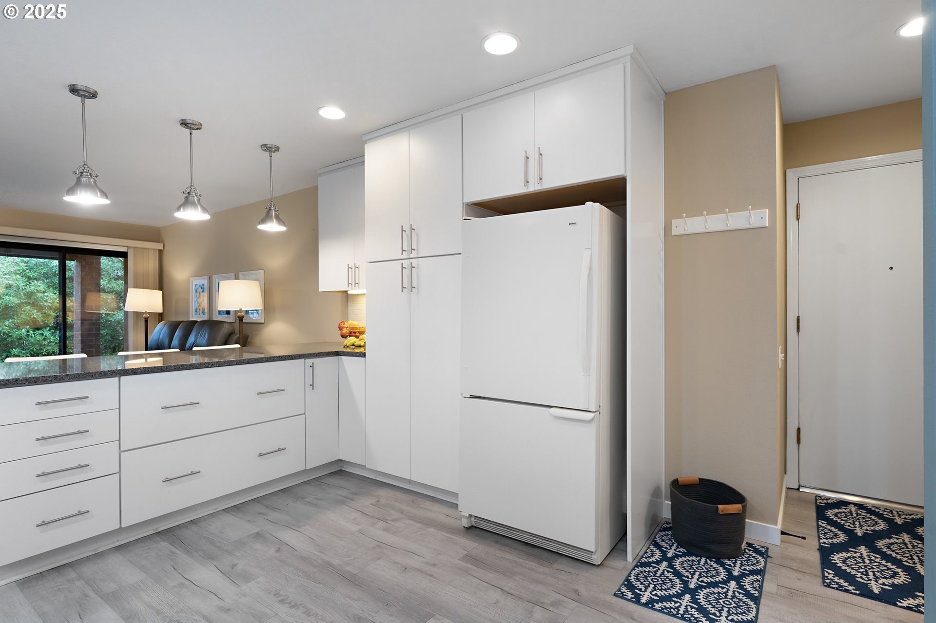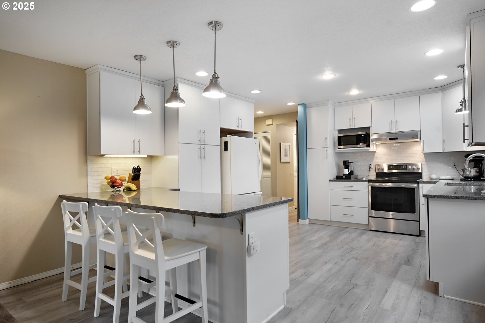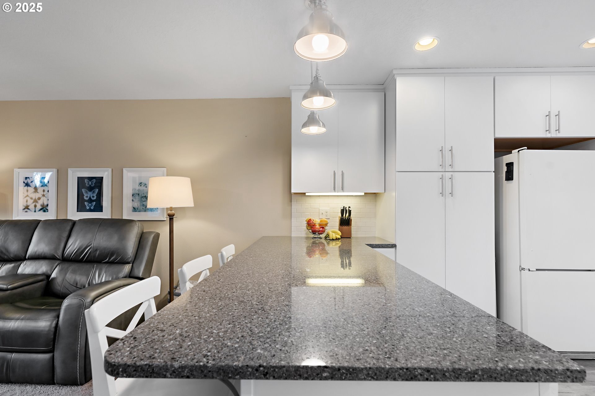 Prepare to be enchanted by this light, bright, and beautifully remodeled 1-bedroom, 1-bath, 762 sq ft end-unit condo in the coveted Fountains at Summerfield 55+ community! Perfect for those seeking a quiet, private hideaway, this ground-level home is filled with natural light from windows on three sides and offers an inviting open floor plan designed for easy living. Step inside to a spacious living room featuring a cozy gas fireplace insert-ideal for crisp mornings-and a slider leading to your large covered private patio, a lovely spot for morning coffee or afternoon lounging. The updated kitchen is a true standout with granite countertops, soft-close cabinetry, deep pot-and-pan drawers, and a gracious breakfast bar for quick bites or friendly chats. The beautifully remodeled bath includes a walk-in shower, and you'll appreciate the convenience of an inside washer and dryer. A pristine detached single garage offers room for both your vehicle and a golf cart-perfect for making the most of Summerfield life. Active 55+ living awaits with an impressive array of amenities: optional 9-hole golf (annual resident pass only $750), pickleball and tennis courts, swimming pool, fitness center, library, clubhouse activities, and more. Secure entry and a peaceful setting complete the picture. Fountains 2025 HOA dues are $525/month and include water/sewer, basic cable, garbage/recycling, landscaping, yard and building maintenance, outside lighting, monthly entryway cleaning, annual exterior window washing, and building insurance. Immaculate, move-in ready, and perfectly situated for both relaxation and recreation-this is the vibrant, carefree lifestyle you've been waiting for!