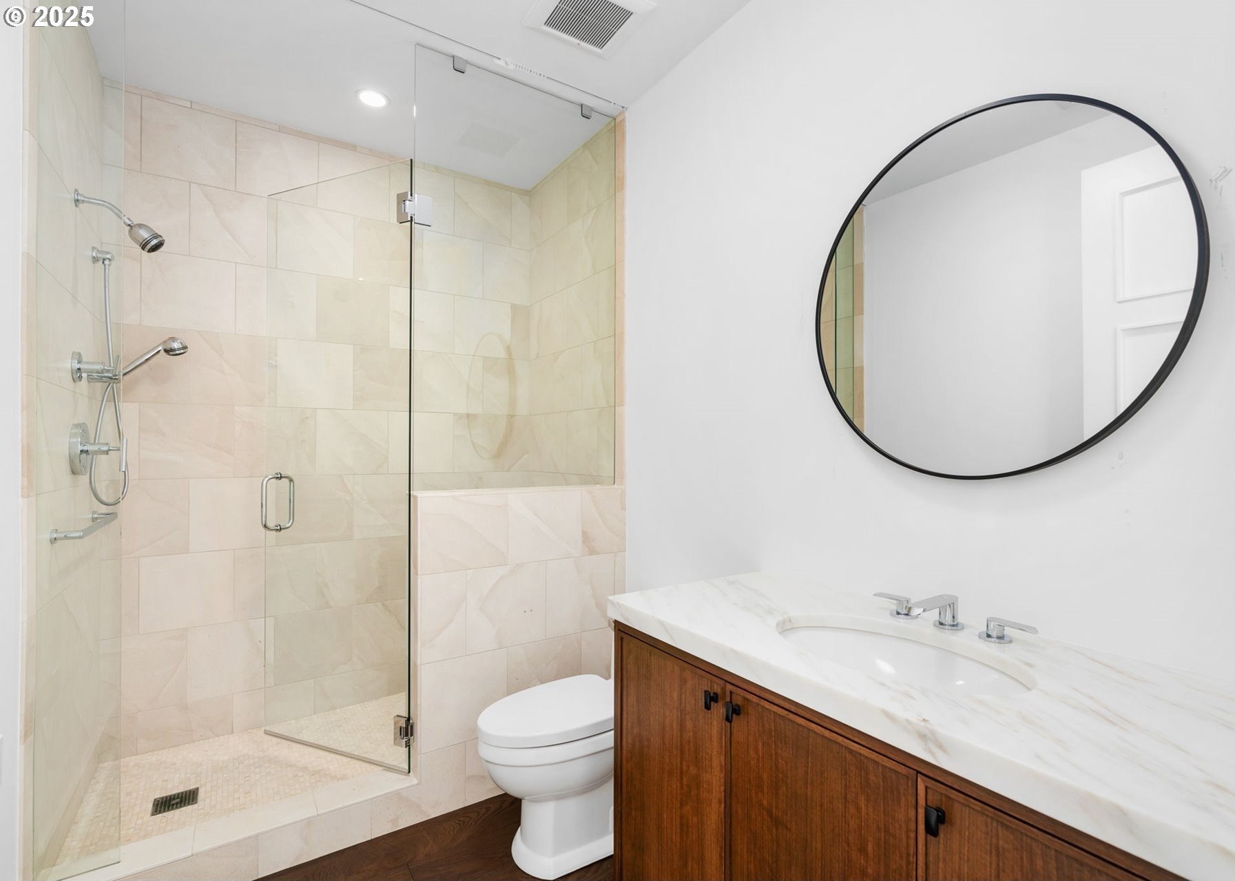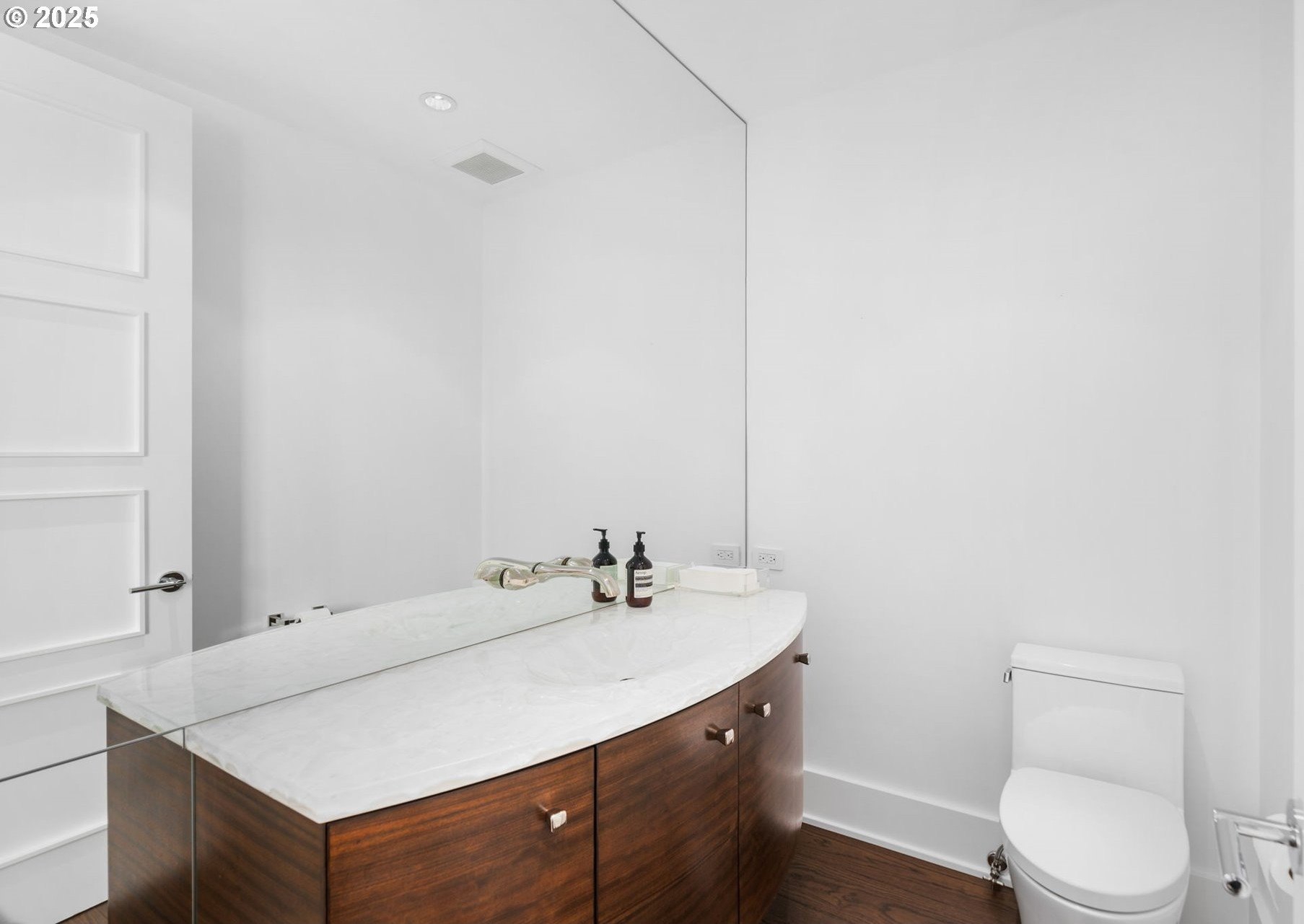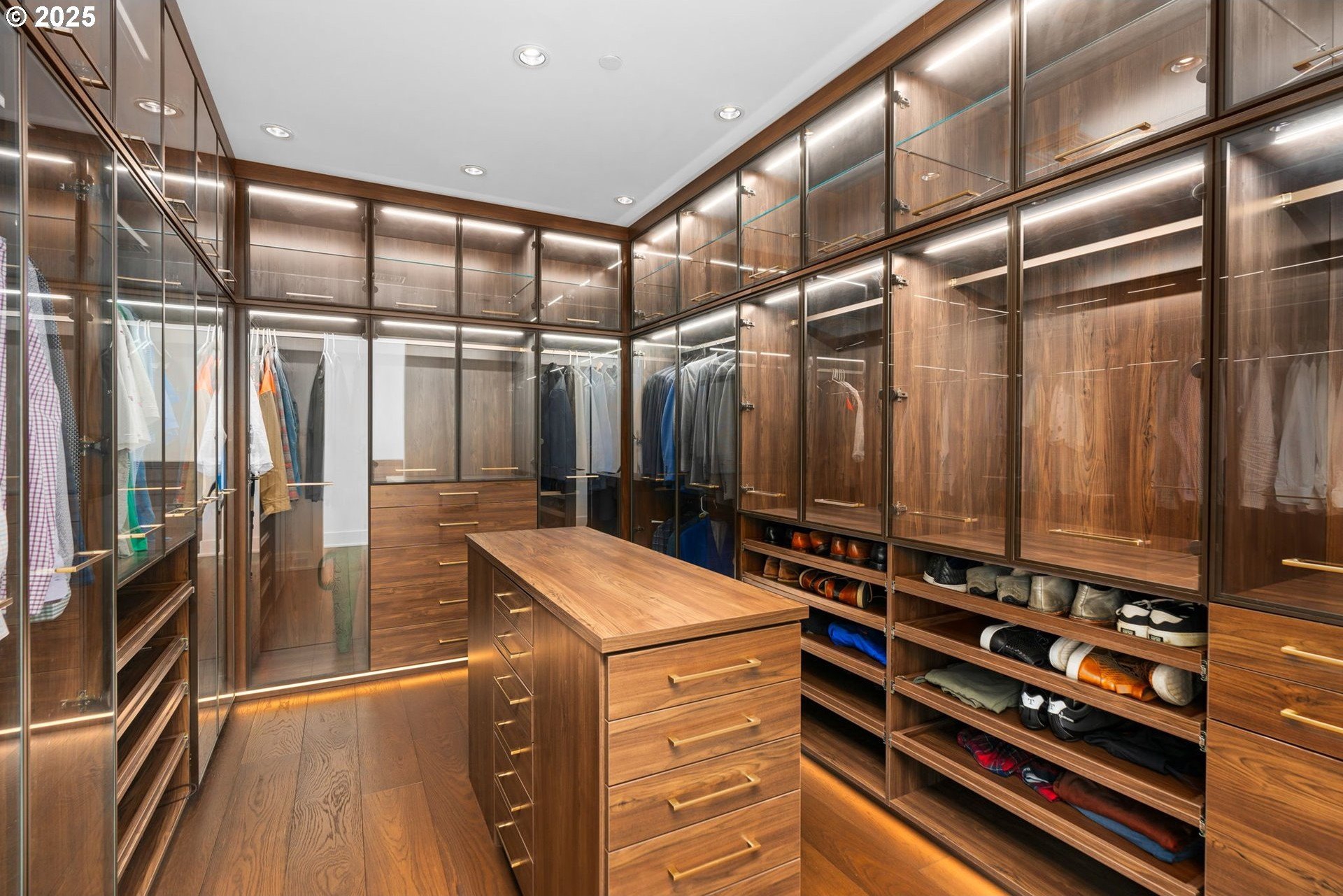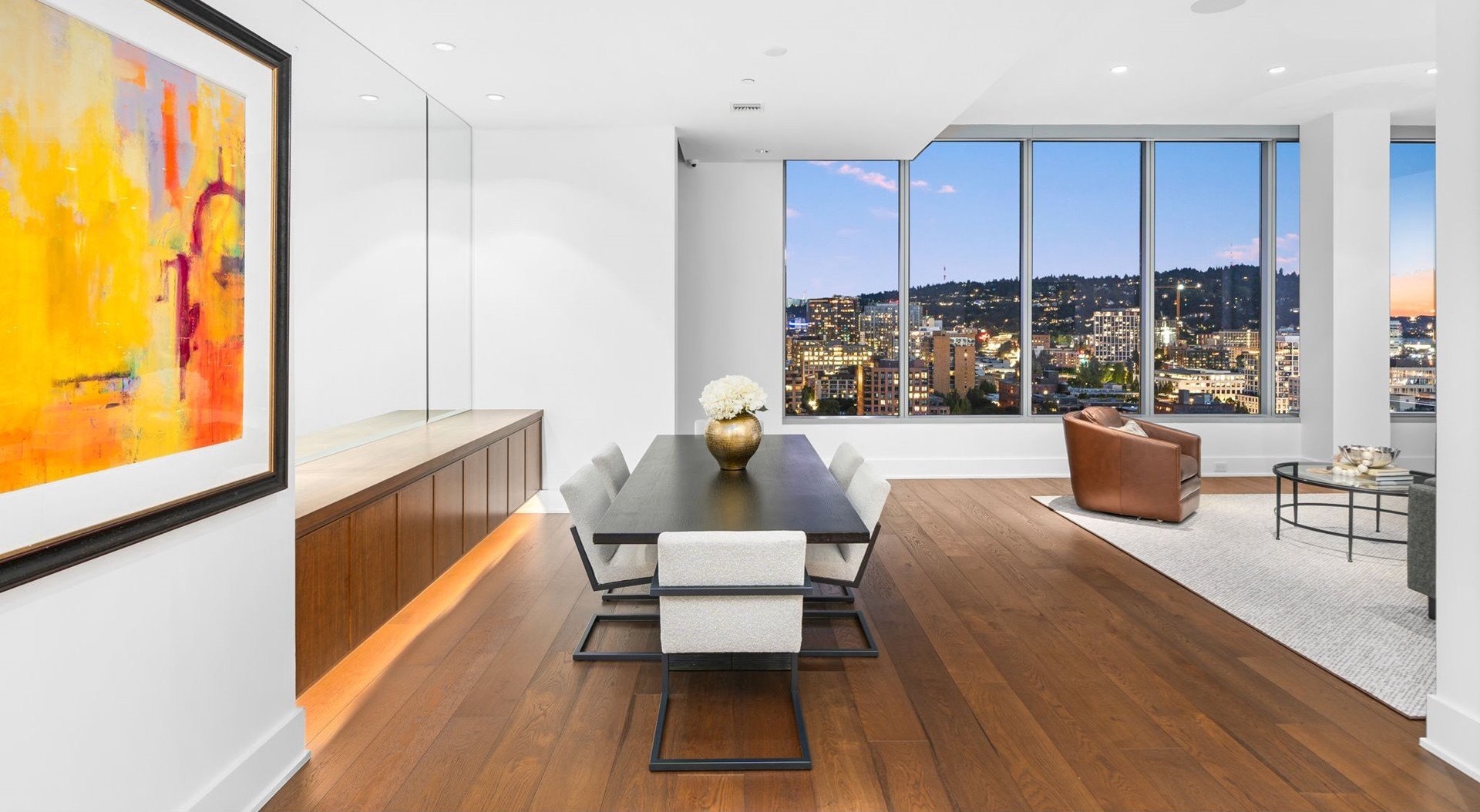 Experience the pinnacle of Portland luxury in this extraordinary penthouse, commanding the western half of the top floor in the iconic Metropolitan Condominium Tower. Walls of glass frame sweeping, unobstructed vistas of the city skyline, the West Hills, Willamette River, and the snow-capped majesty of Mt. Hood, Mt. St. Helens, and Mt. Adams. Awaken to the first light of day as the sunrise bathes the city and Mt. Hood in golden hues, and unwind in the evening with al fresco dining on the expansive western terrace, where sunsets paint the sky in a kaleidoscope of color. Every detail has been painstakingly curated, from custom walnut cabinetry throughout the residence to exquisite slab marble surfaces. A Miele appliance suite, built-in Sub-Zero refrigerator, and dry bar with Sub-Zero wine fridge elevate the culinary experience, while a smart home command center controls the Sonos surround sound and automated blinds. The primary suite offers western-facing views, terrace access, and a spa-inspired bath with oversized soaking tub, walk-in glass shower, and double vanity. A custom-fitted walk-in closet features built-in display shelving with LED lighting and a walnut folding island with additional storage. The study, complete with floor-to-ceiling library shelving and sliding ladder, opens directly to the terrace, blending work, leisure, and breathtaking views. This is more than a residence-it's a statement of refinement and a rare vantage point above the heart of Portland. 24 hour concierge + Security.