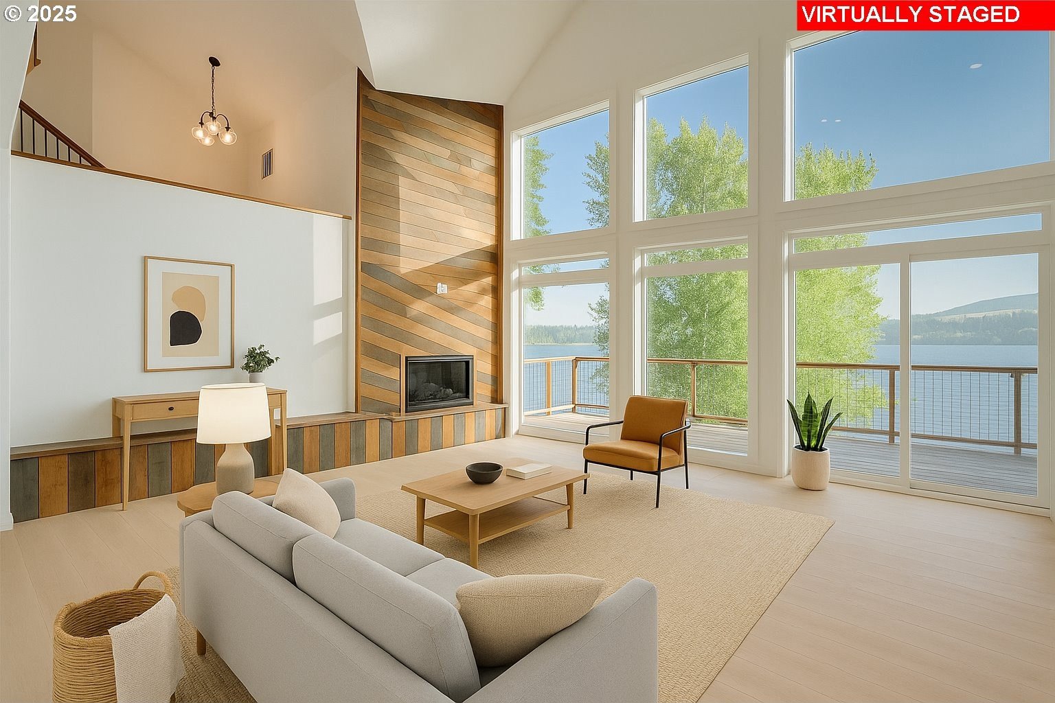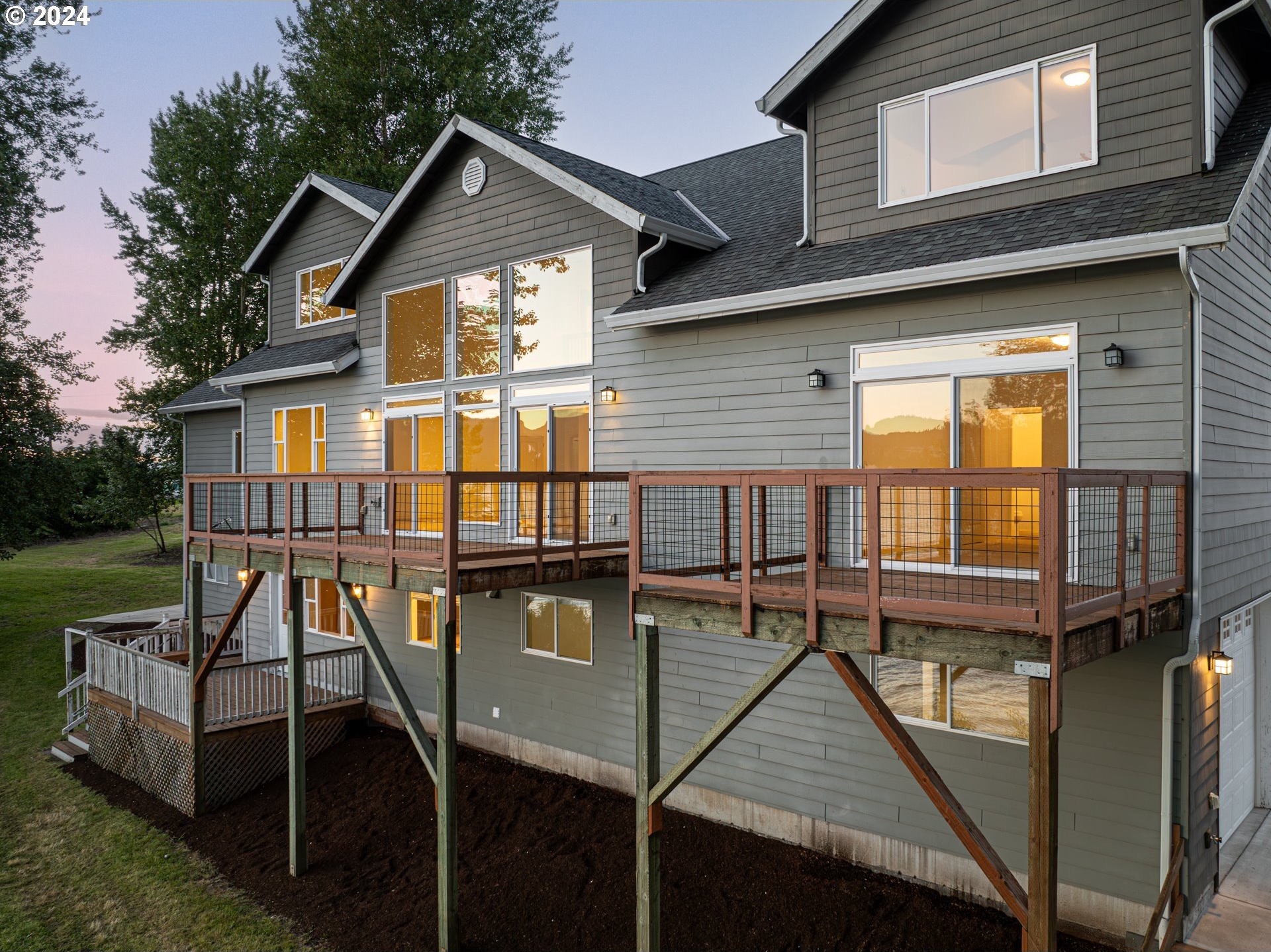 Nothing on the market like this! Over 5 acres of breathtaking Columbia River frontage. This paradise offers an opportunity to own a piece of riverfront heaven with incredible views of Mt. Hood. The hard work is done; bring your toolbelt to complete this home, it is finished to drywall, BRAND NEW ROOF in August 2024, and it is ready for you to make it your own. With 4,570 sq ft of living space, 3 gigantic attached garages totaling almost an additional 3,000 sq. ft., and room for all your desires, this property is a blank canvas. The main floor has a primary bedroom, office, huge laundry room, and upstairs you'll find a bonus room, and two additional ensuites. The lower level includes an ADU with a full kitchen, bedroom, living room, and multiple garages. Too much to list! Don't miss this chance!
