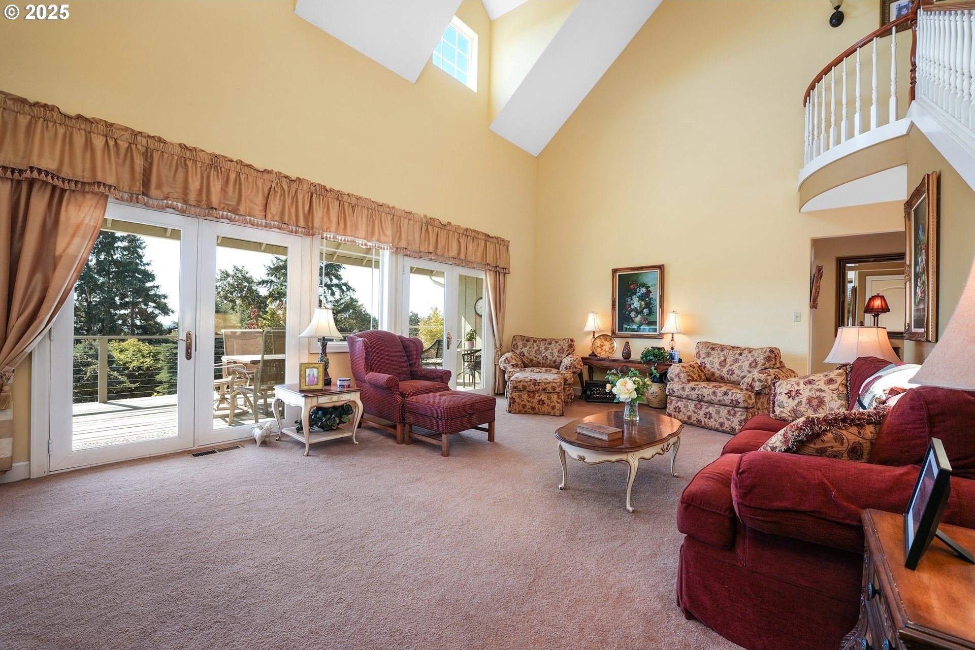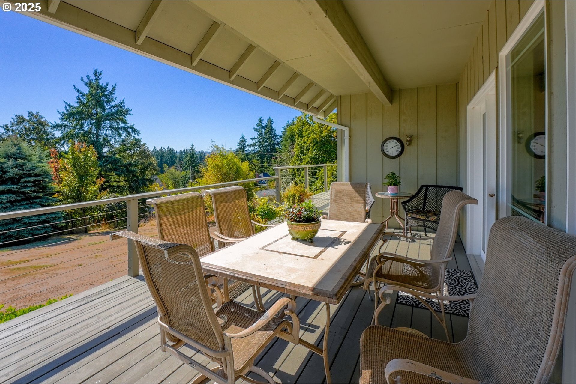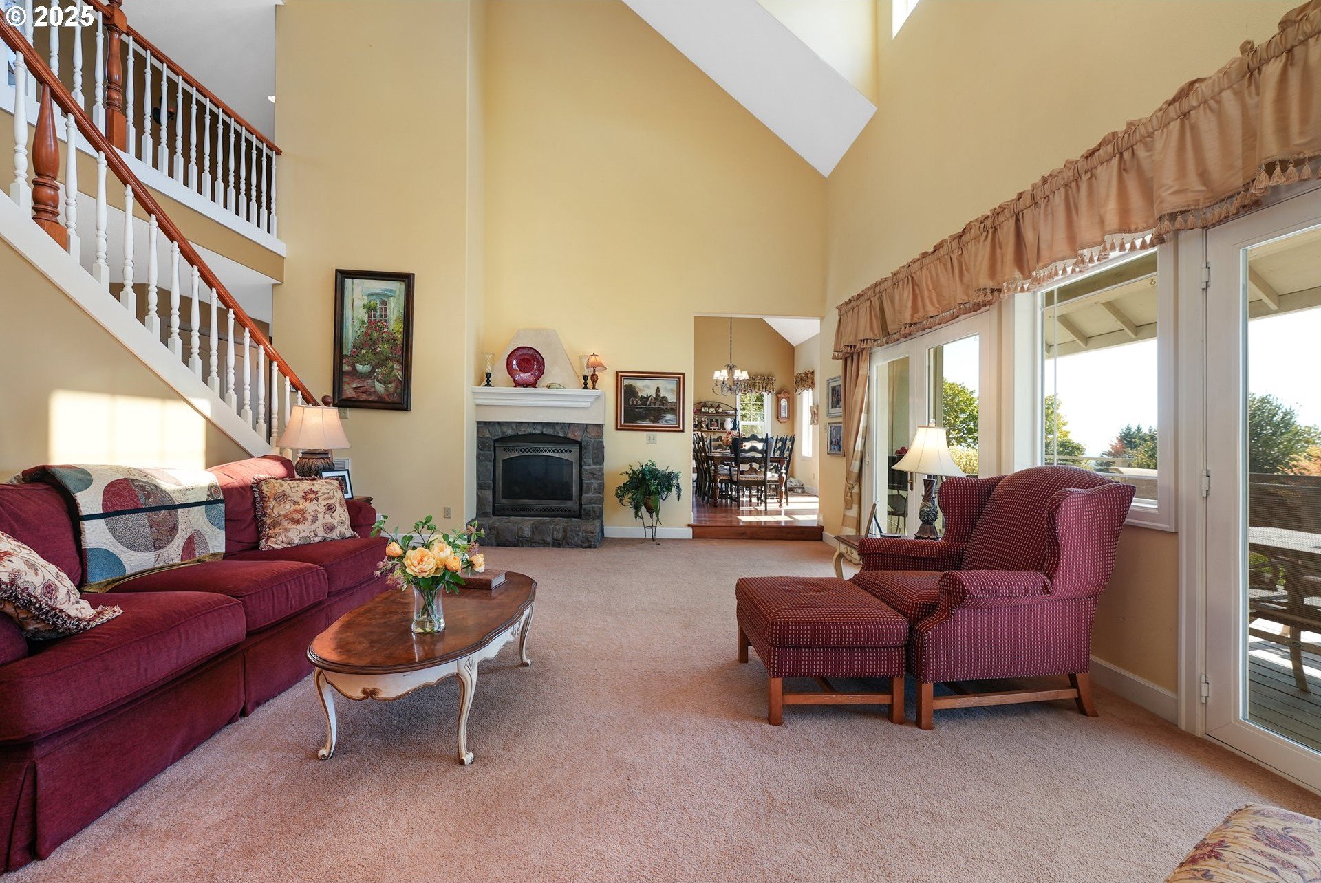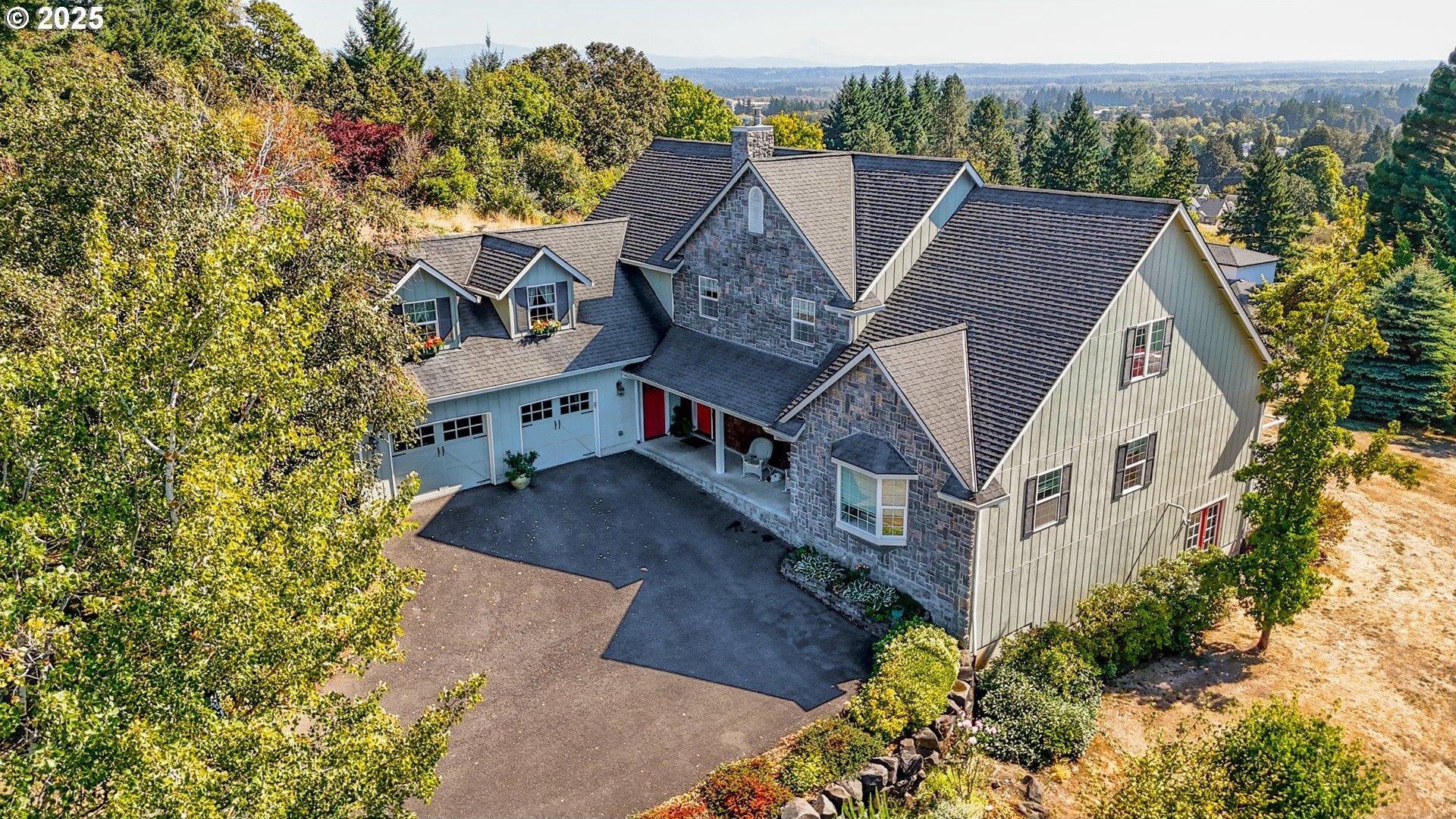 Exceptional country estate offering unparalleled privacy and a spacious shop ideal for hobbies or a small business. This wonderful home features soaring vaulted ceilings, an open-concept floor plan, and abundant natural light. The gourmet kitchen is appointed with alder cabinetry, granite countertops, stainless steel appliances, and walnut hardwood floors. The main-level primary suite boasts vaulted ceilings, a generous walk-in closet, a tiled shower, and a luxurious soaking tub. A versatile flex room off the entry serves as an ideal private den or media room. Upstairs, two well-proportioned bedrooms share a full bathroom. An unfinished room above the garage offers potential for a large bonus space, while the lower level includes a 30' unfinished area with exterior access, perfect for creating an impressive bonus room or an accessory dwelling unit (ADU). Enjoy breathtaking views from the expansive 40' deck, with the Portland skyline visible on clear days. The fully landscaped 1-acre lot features a substantial shop for storing recreational vehicles or supporting a small business. Contact us to schedule a private viewing.