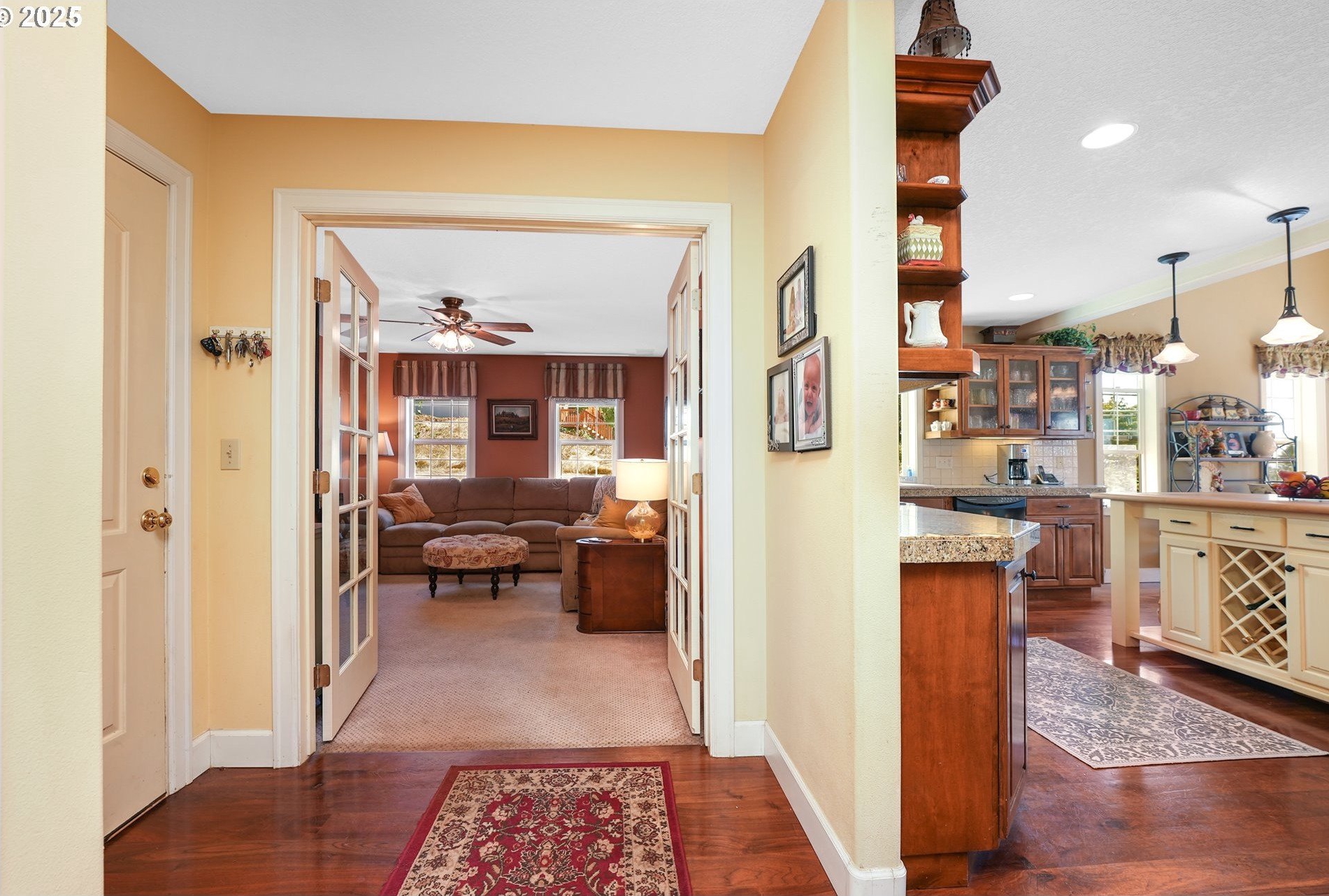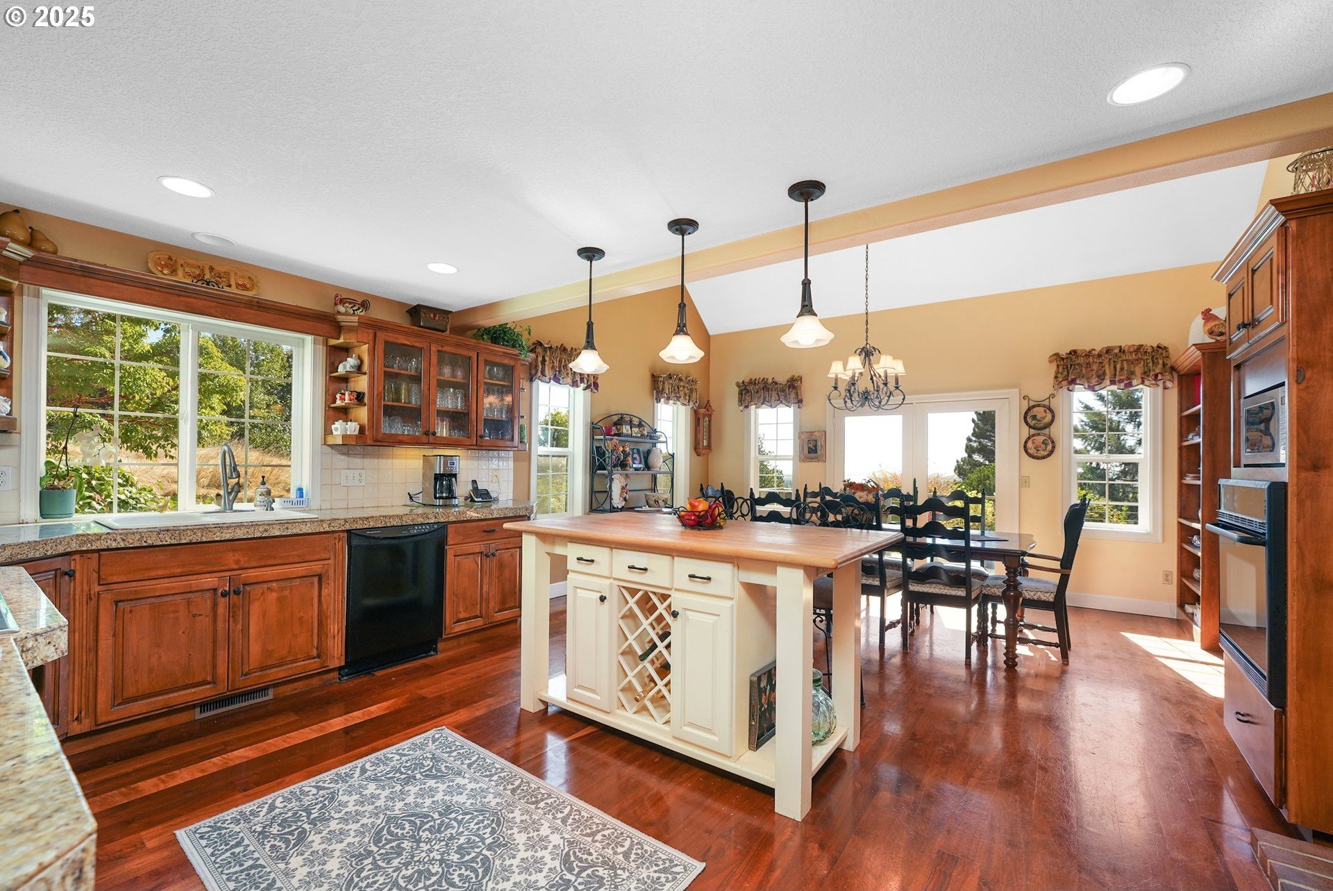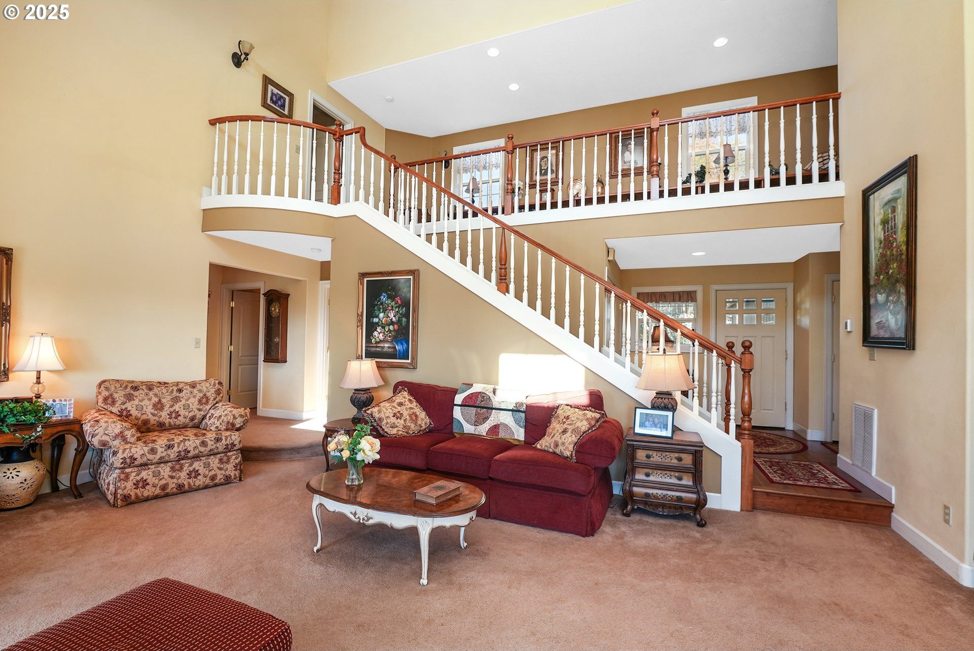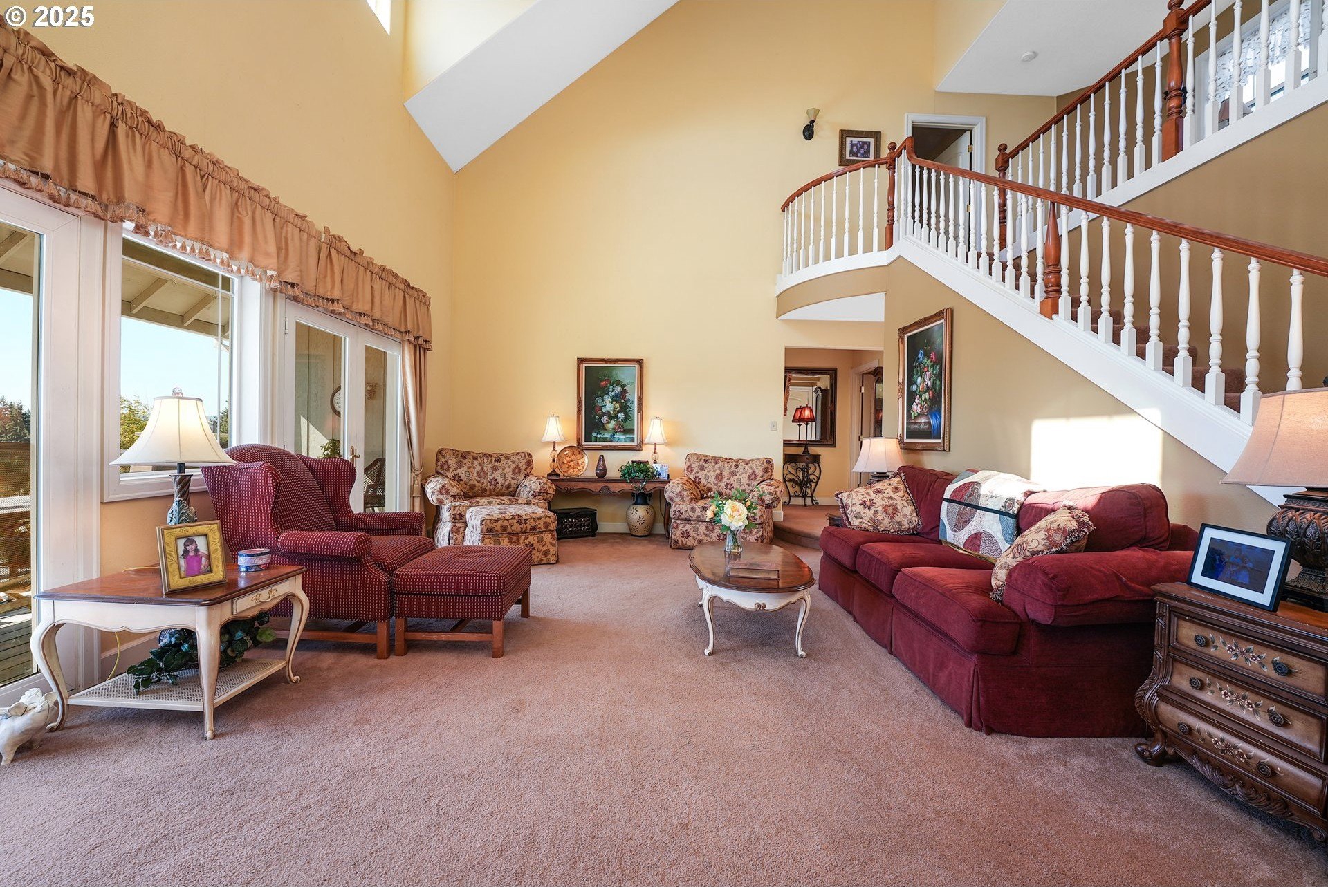 Exceptional country estate offering unparalleled privacy and a spacious shop ideal for hobbies or a small business. This wonderful home features soaring vaulted ceilings, an open-concept floor plan, and abundant natural light. The gourmet kitchen is appointed with alder cabinetry, granite countertops, stainless steel appliances, and walnut hardwood floors. The main-level primary suite boasts vaulted ceilings, a generous walk-in closet, a tiled shower, and a luxurious soaking tub. A versatile flex room off the entry serves as an ideal private den or media room. Upstairs, two well-proportioned bedrooms share a full bathroom. An unfinished room above the garage offers potential for a large bonus space, while the lower level includes a 30' unfinished area with exterior access, perfect for creating an impressive bonus room or an accessory dwelling unit (ADU). Enjoy breathtaking views from the expansive 40' deck, with the Portland skyline visible on clear days. The fully landscaped 1-acre lot features a substantial shop for storing recreational vehicles or supporting a small business. Contact us to schedule a private viewing.
