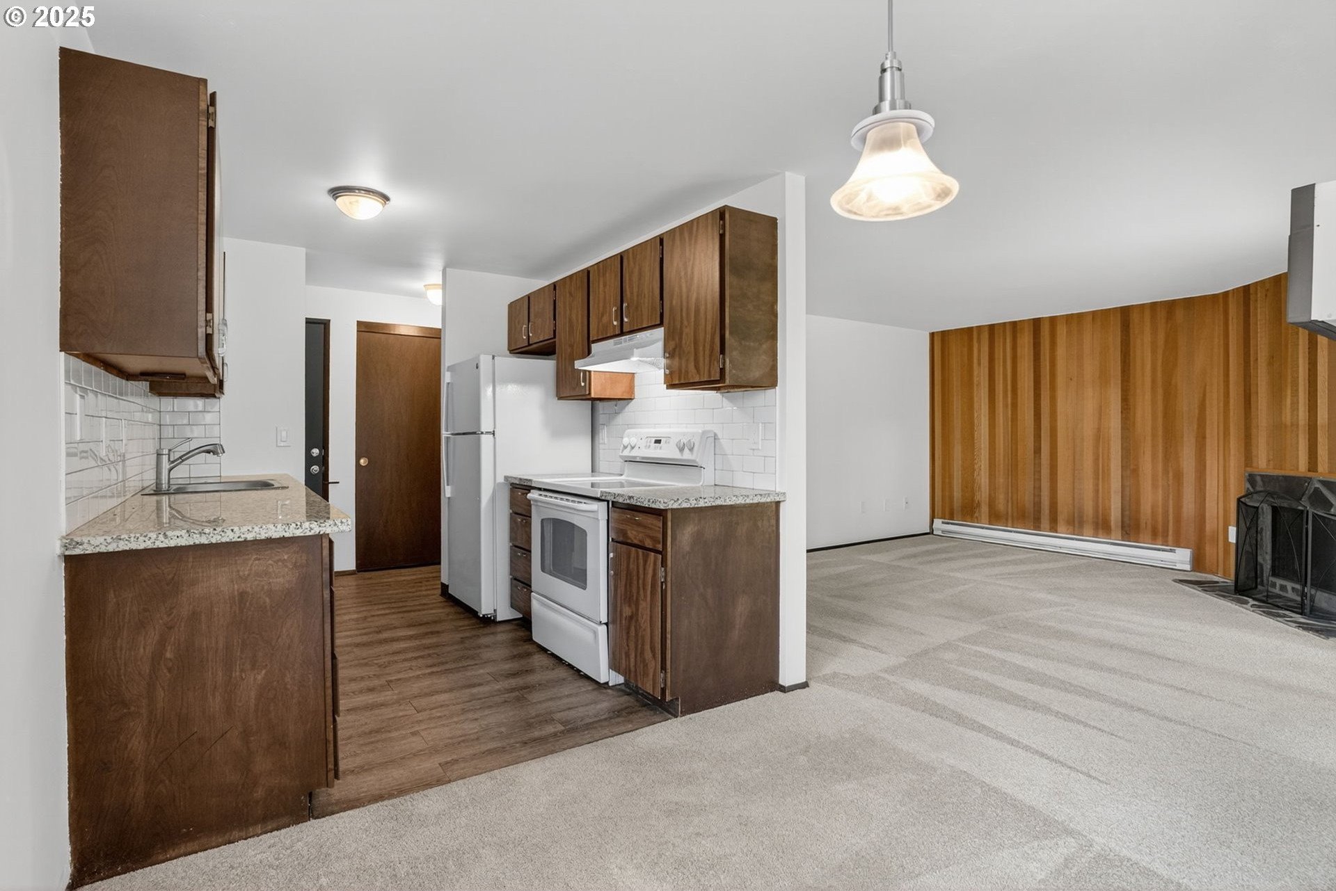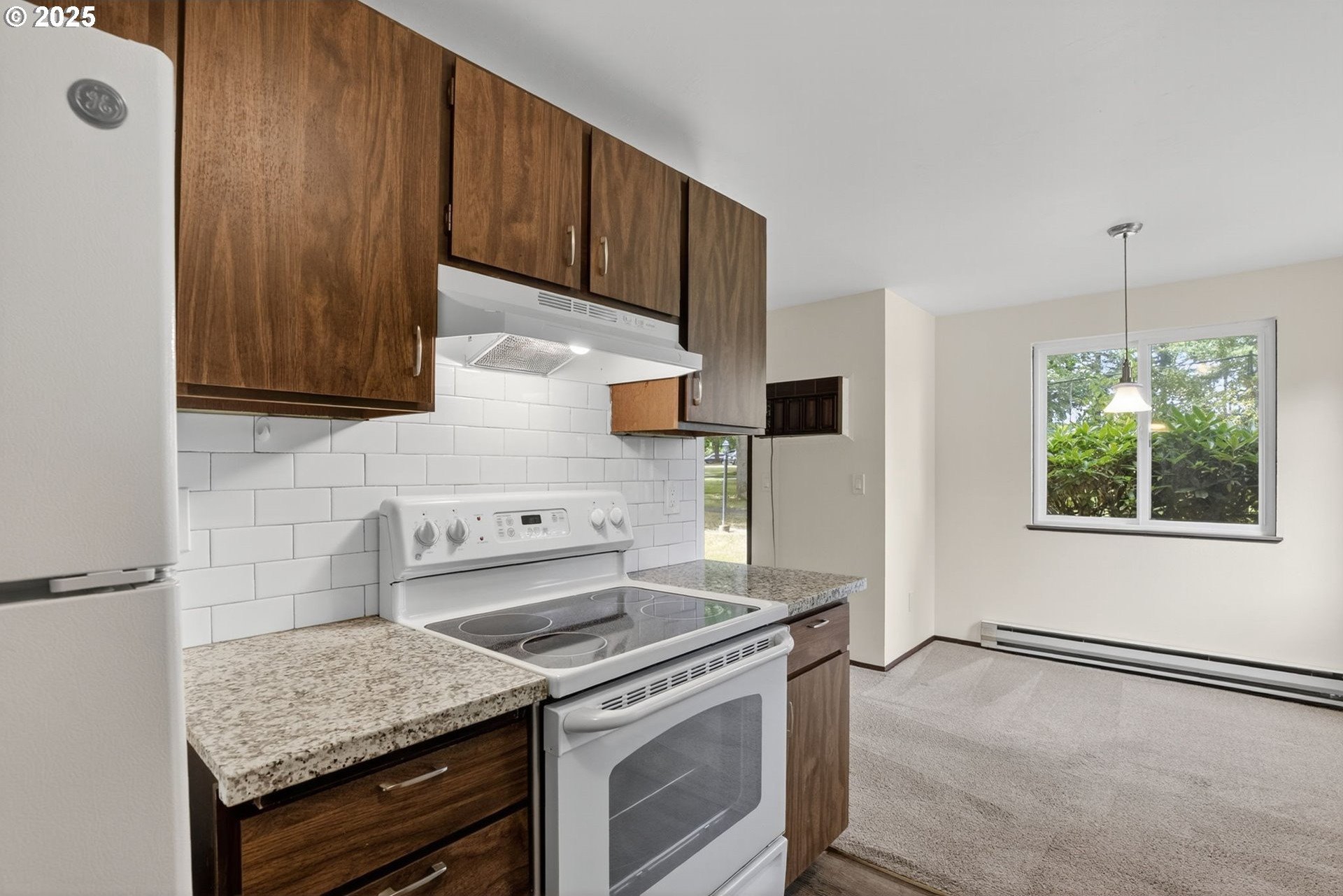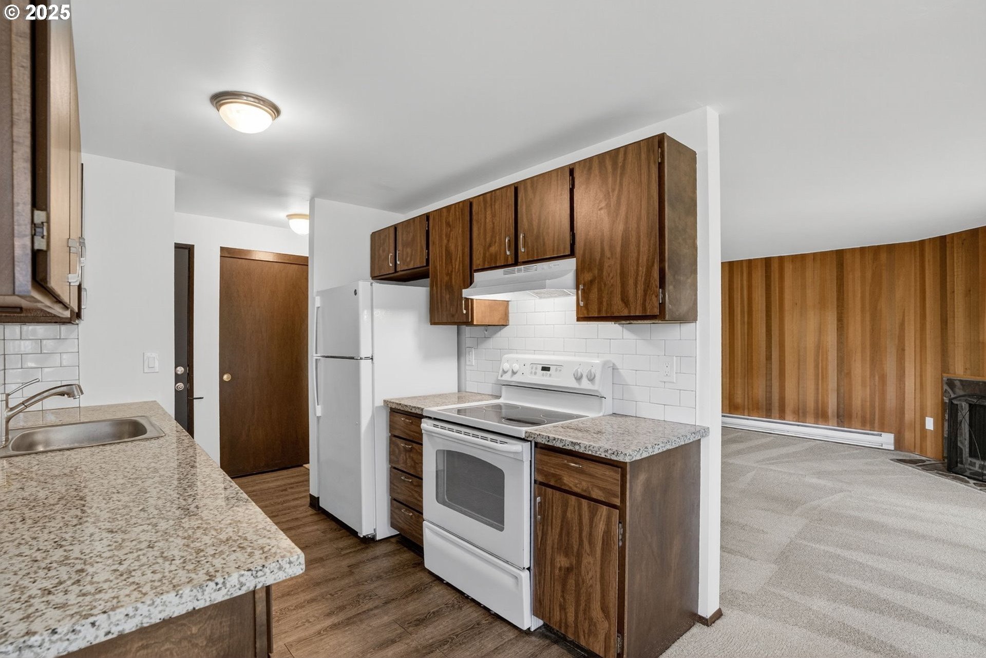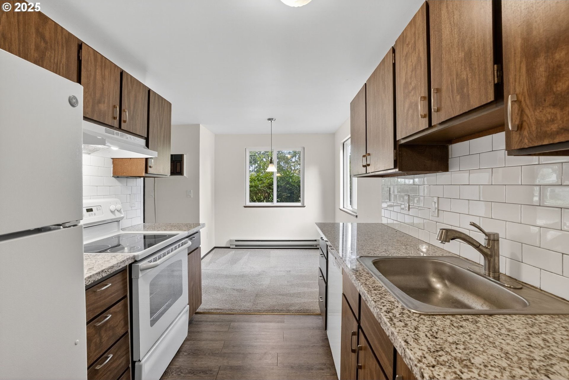 A private driveway alongside Rock Creek Golf Course leads you to this serenely located ground floor condo. Natural light filters in from three sides of windows on this end unit, a rarity in this complex. Enjoy a tasteful combination of vintage charm with tasteful updates throughout. Recent improvements include new bathroom LVP flooring, new sink and toilet, range hood, refrigerator and all new interior paint. The kitchen offers granite countertops and a subway tile backsplash. A private patio faces the tennis courts, a short walk away. The dedicated garage is just a few steps away from the front door. Washer/dryer and all appliances are included. Seller is a licensed real estate agent in the state of Oregon.