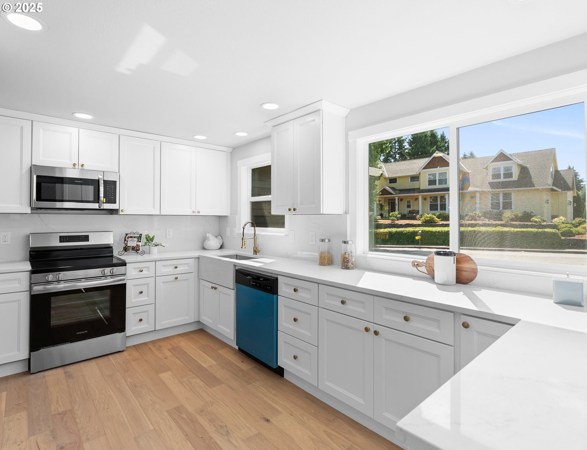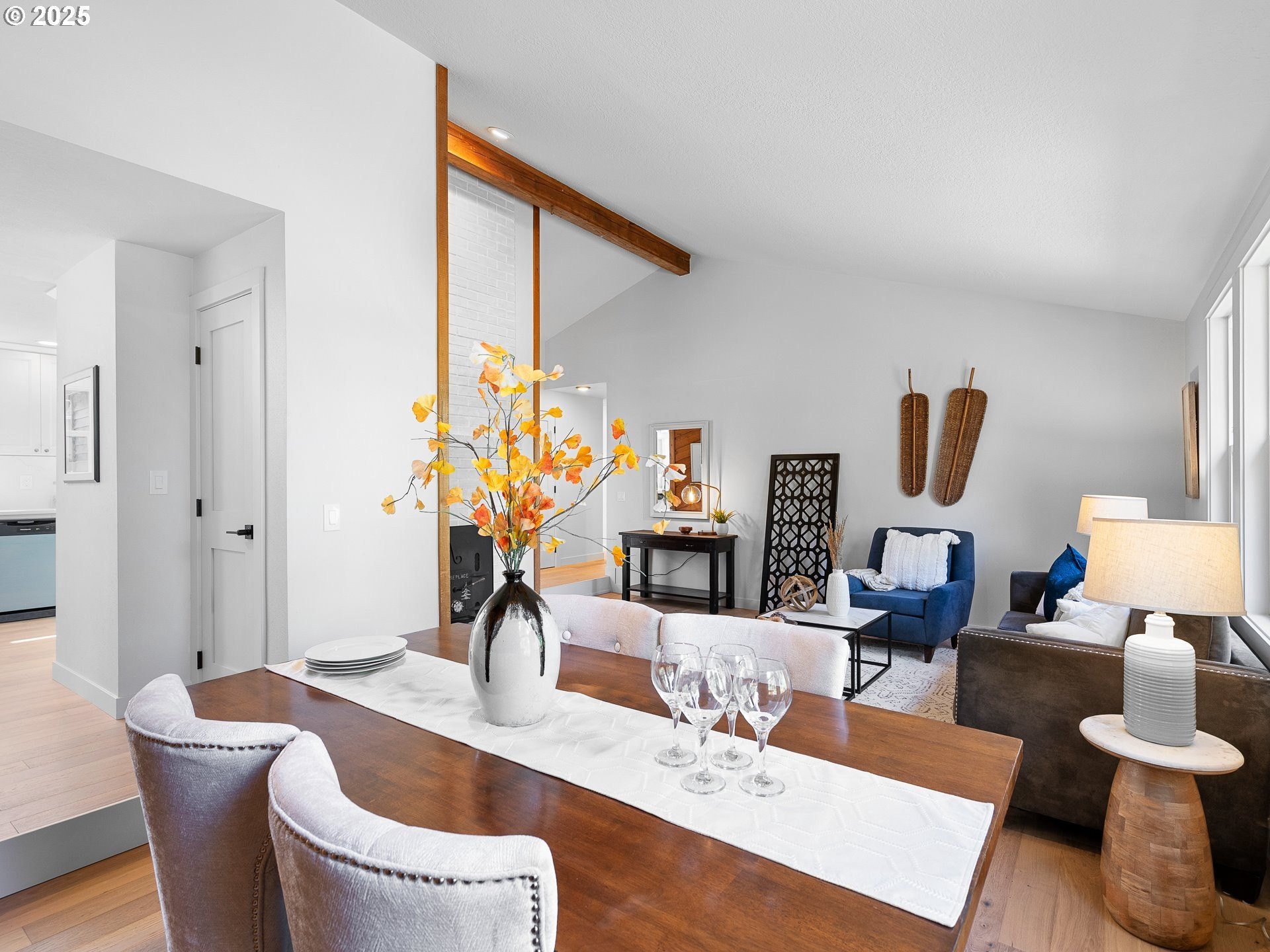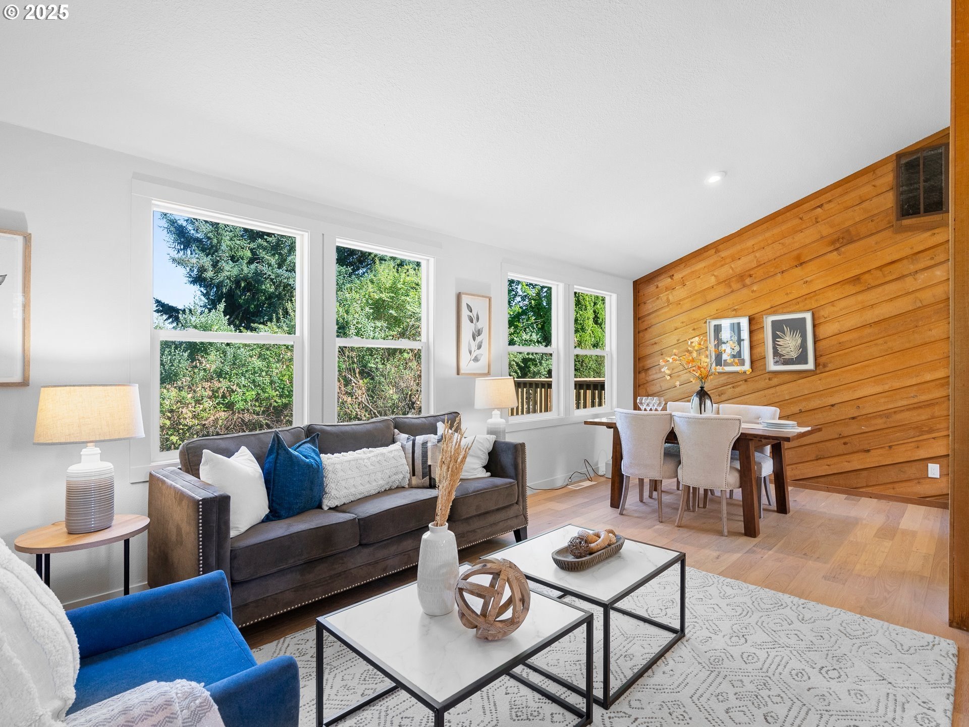 Fully renovated and move-in ready, this stylish 3-bedroom, 2-bath ranch blends modern comfort with timeless charm in the heart of West Linn. Situated on a spacious, tree-lined lot, the single-level home features 1,436 sq ft of thoughtfully updated living space. Step inside to discover vaulted ceilings, engineered hardwood floors, and a cozy fireplace that anchors the living room. The kitchen shines with stainless steel appliances, a built-in microwave and dishwasher, a freestanding range, and a refrigerator. Enjoy seamless indoor-outdoor living with a covered deck and fenced yard. Just minutes from parks, shopping, and the Willamette River-and within walking distance to Historic Downtown West Linn. Don't miss this rare opportunity to own this beautifully updated home!