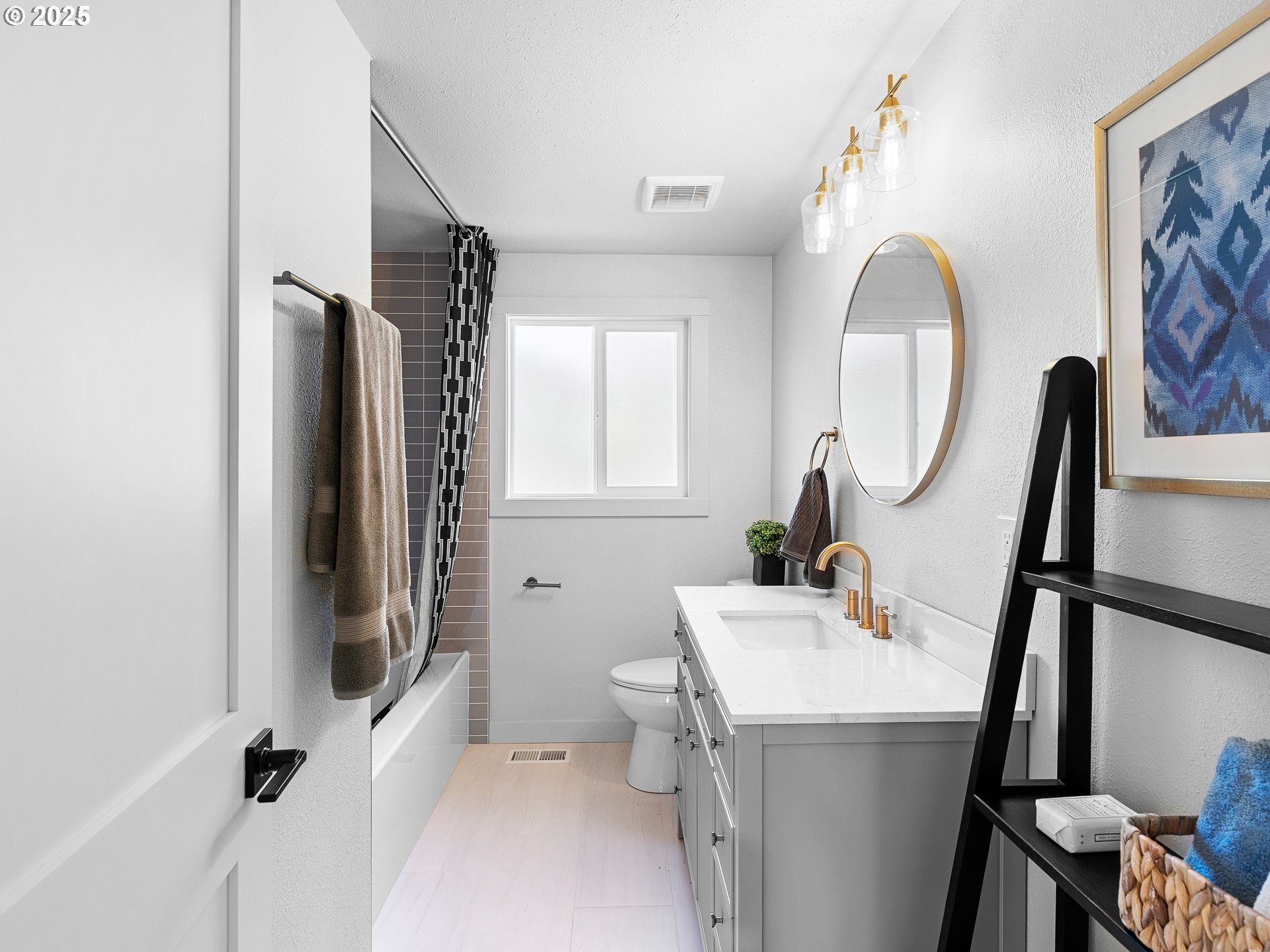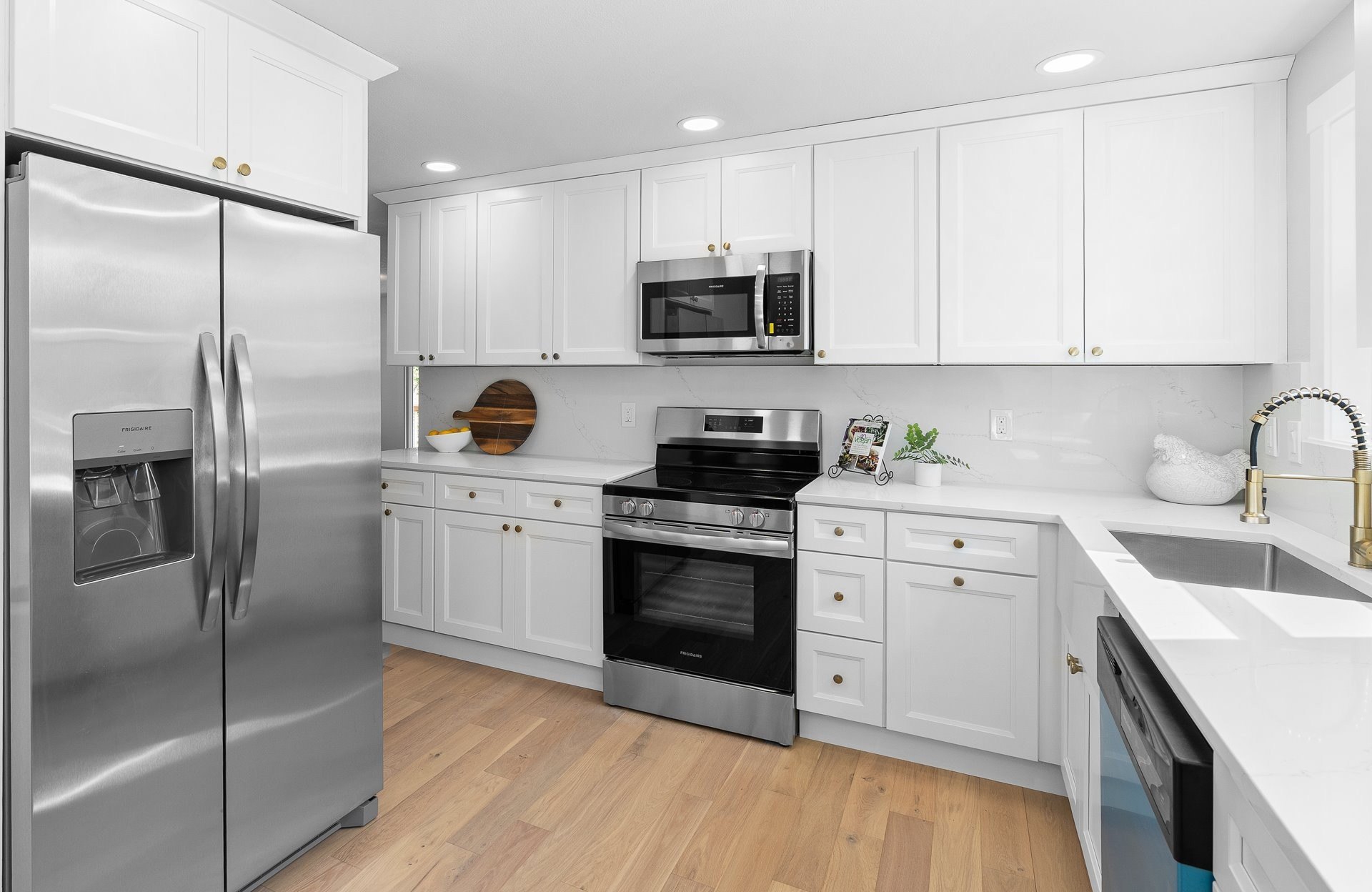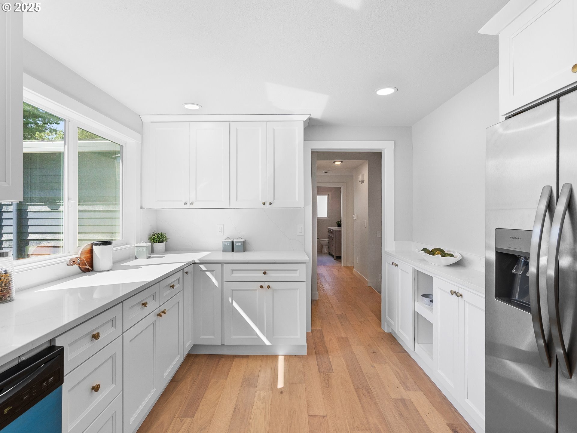 Fully renovated and move-in ready, this stylish 3-bedroom, 2-bath ranch blends modern comfort with timeless charm in the heart of West Linn. Situated on a spacious, tree-lined lot, the single-level home features 1,436 sq ft of thoughtfully updated living space. Step inside to discover vaulted ceilings, engineered hardwood floors, and a cozy fireplace that anchors the living room. The kitchen shines with stainless steel appliances, a built-in microwave and dishwasher, a freestanding range, and a refrigerator. Enjoy seamless indoor-outdoor living with a covered deck and fenced yard. Just minutes from parks, shopping, and the Willamette River-and within walking distance to Historic Downtown West Linn. Don't miss this rare opportunity to own this beautifully updated home!