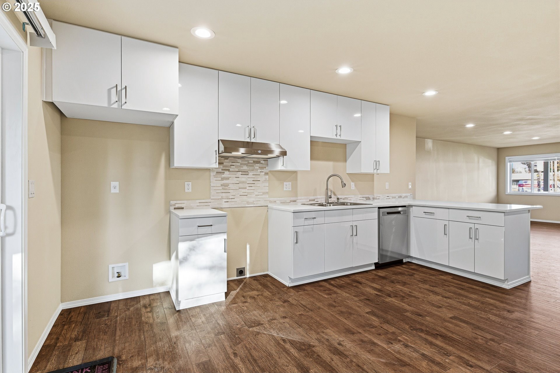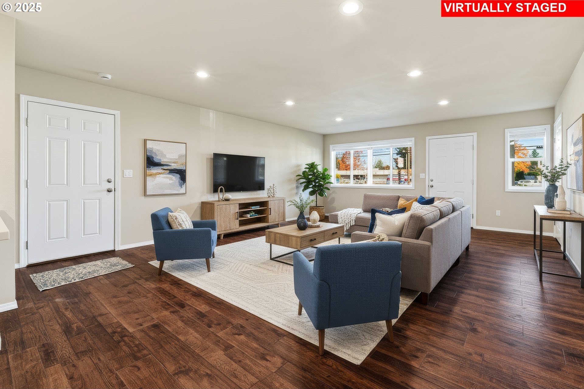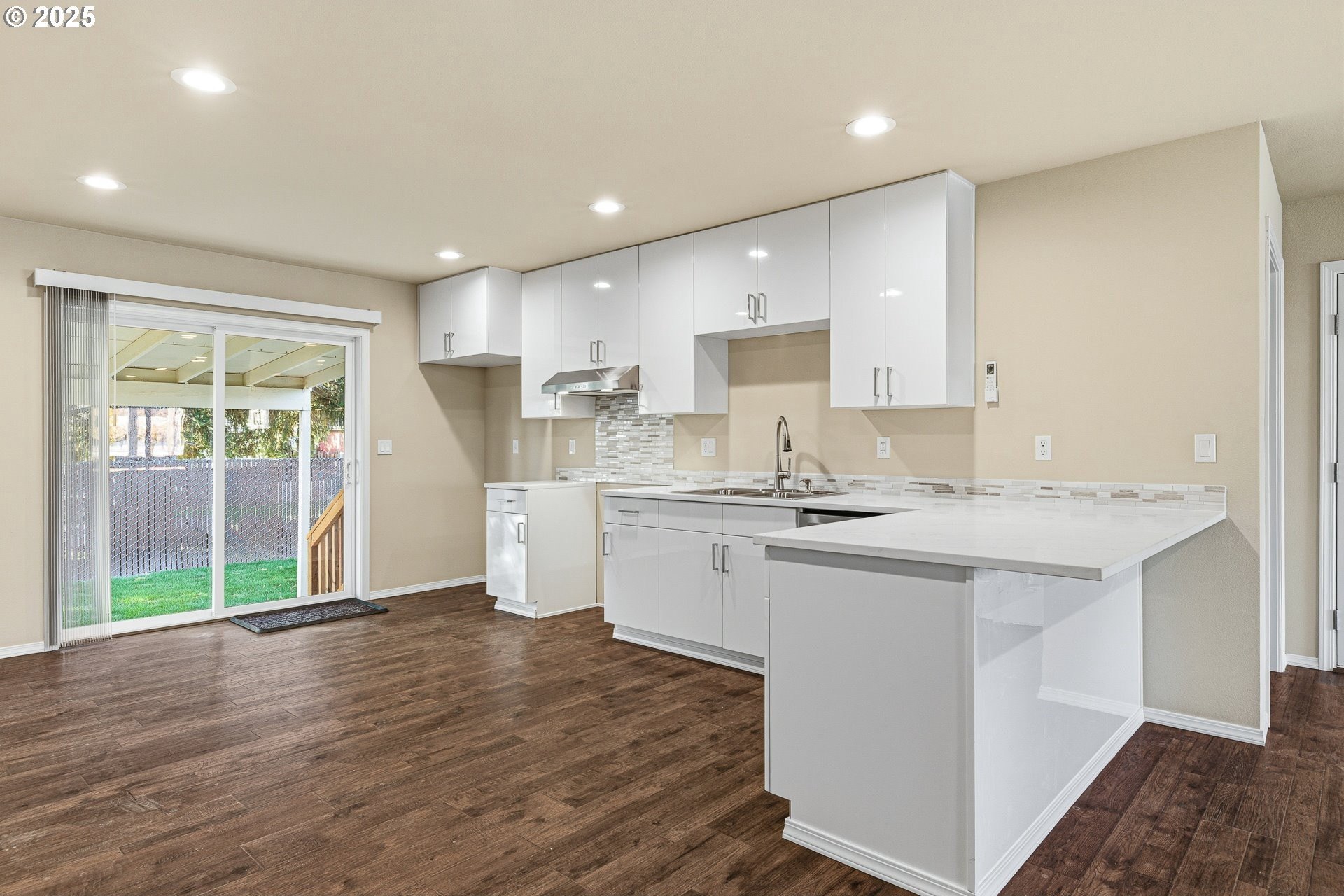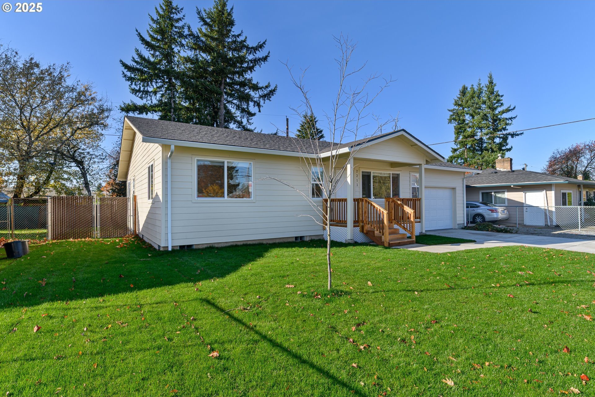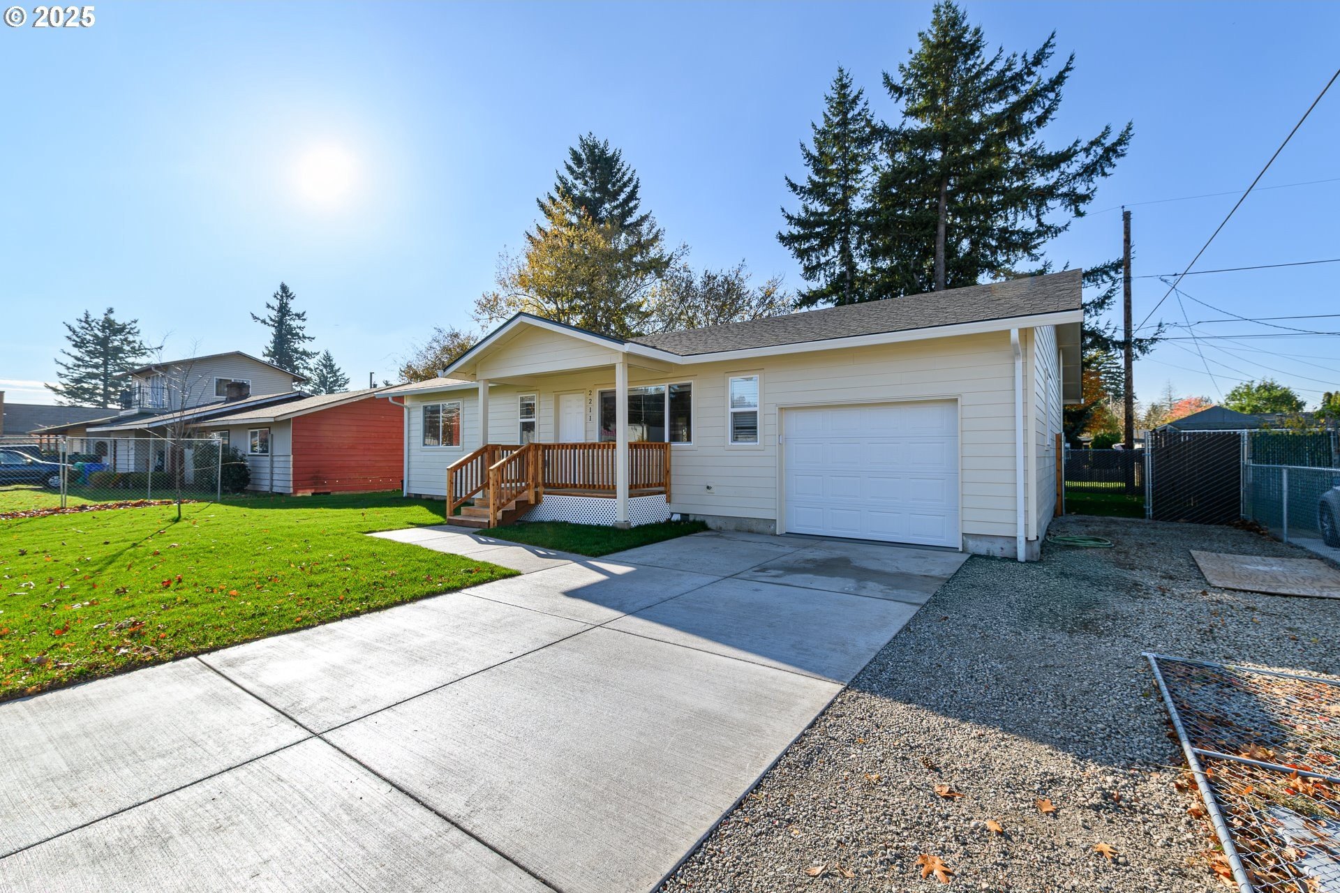 Stunning fully rebuilt 1-level home in SE Portland! This modern 3 bed, 2 bath, home has been completely renewed from the ground up with new roof, siding, windows, electrical, plumbing, HVAC, insulation, kitchen, baths, flooring, and more. Enjoy a bright open-concept layout with wide-plank flooring, recessed lighting, and abundant natural light throughout. The beautiful kitchen features quartz countertops, high-gloss cabinetry, tile backsplash, and stainless steel appliances. Spacious primary suite plus two additional bedrooms for guests, office, or hobbies. Sliding door opens to a covered patio and large fenced yard perfect for outdoor dining and year-round enjoyment. Oversized garage and extended driveway provide excellent parking options. Convenient location near parks, shops, transit, and daily amenities. Truly move-in ready with the comfort and peace of mind of a brand-new rebuild. A rare find don't miss this one!