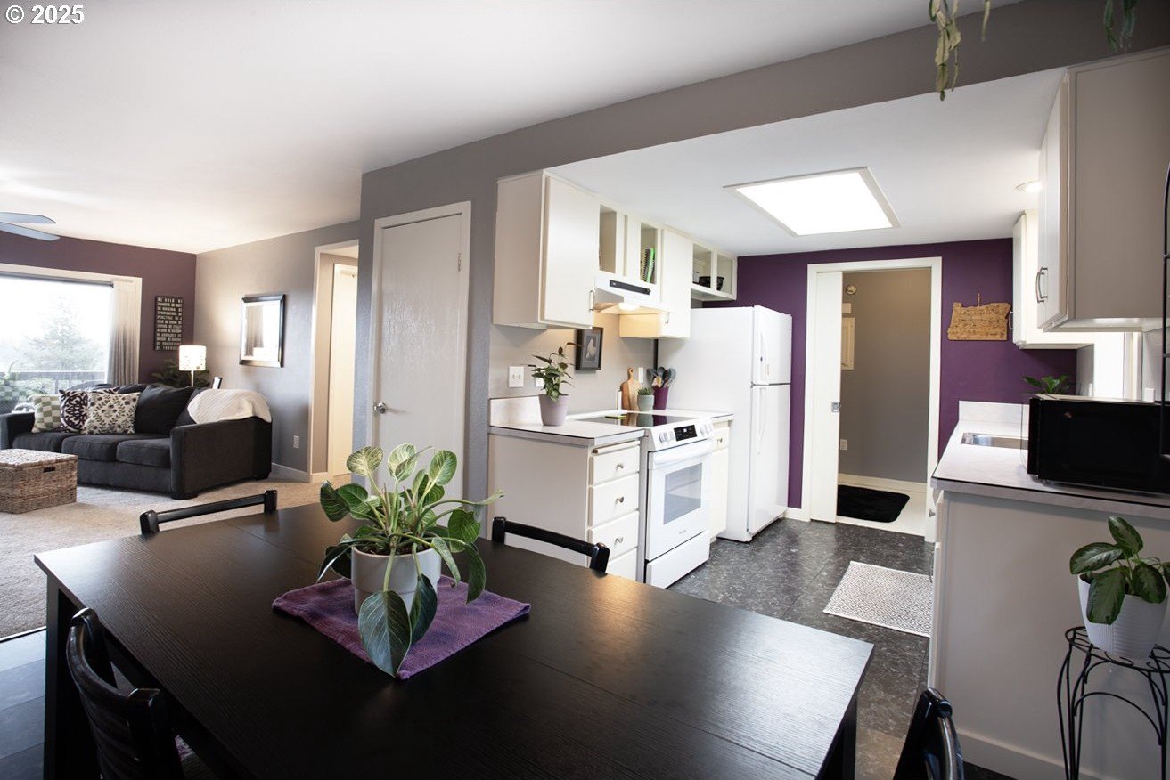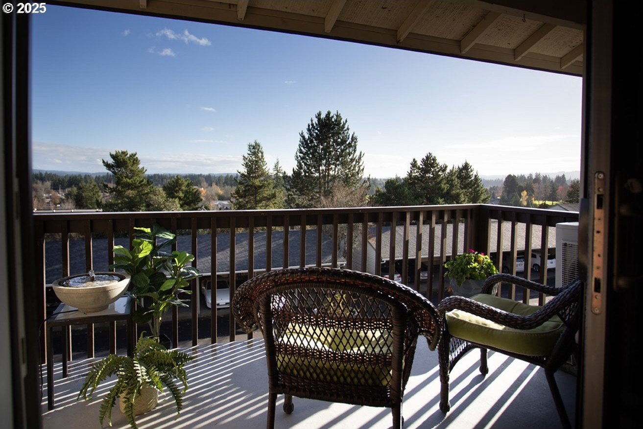 Nestled within a peaceful 55+ community, is this beautifully updated 784 sq ft, 1 bedroom, 1 bath condominium, abundant amenities and an easy, low-maintenance lifestyle with a 180-degree valley view from the top floor. Inside, the popcorn ceiling is gone. The home features a newly installed mini-split head, electrical updates including new lighting and new plugs and switches throughout. Vinyl windows, new moulding, 2 stylish ceiling fans, fresh interior paint, new washer and dryer, new cellular blinds, new luxury carpet with memory foam pad, updated bathroom with new flooring, vanity top and faucet. The bathroom has a no-edge walk-in shower. The bedroom has a walk-in closet and ceiling fan. Kitchen has a new cooking range for effortless meal preparation, and your own laundry room/pantry off the kitchen. The dining room features new LVT flooring. Enjoy the year-round beautiful valley view, including Mt. Hood and July 4th fireworks from the covered balcony with its own storage unit, adding extra convenience for outdoor or seasonal items. The community itself is rich with activities and features, including a clubhouse, pool, library, shuffleboard, croquet, lawn bowling, ceramics, art classes, a fully equipped woodshop, and so much more-ensuring there's always something to enjoy. The HOA covers sewer, water, garbage, exterior maintenance, insurance and landscaping, making daily living truly hassle-free. Conveniently located near grocery stores, banks, restaurants, and public transportation, this condo provides comfort, community, and exceptional convenience for active adults seeking a vibrant and relaxed lifestyle. Assign a carport for $15 per month if desired.HOA fees are $360 per month, plus $880 per person annually for KCCA.