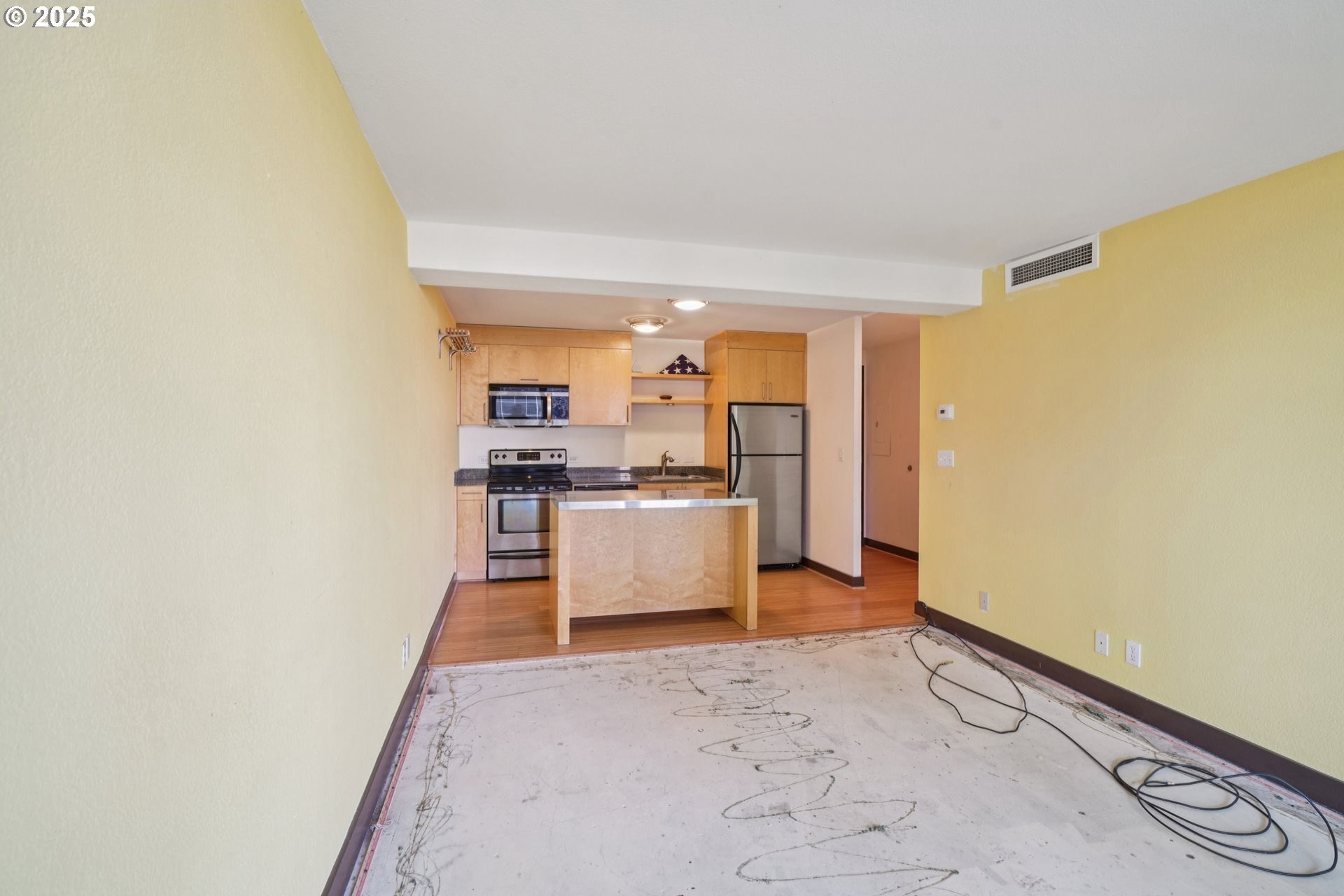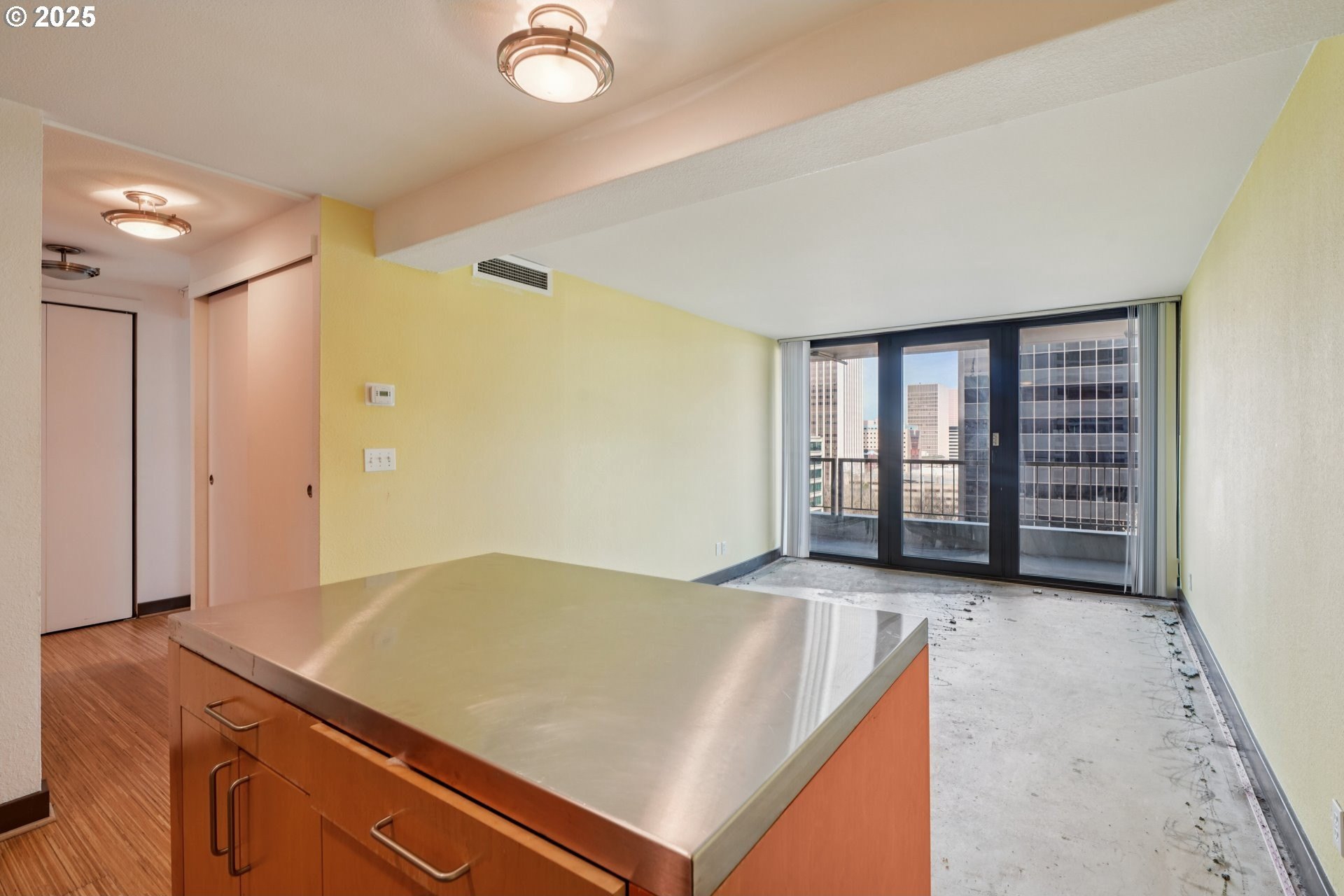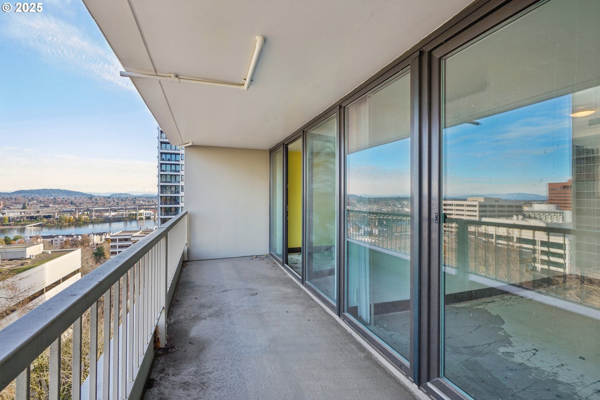 Welcome to The Harrison West! This 1-bedroom, 1-bathroom condo is a light fixer, perfect for adding your own personal touches. Get into the building at one of the lowest price points and create instant sweat equity. Ideally located just steps from Portland State University, Keller Auditorium, the streetcar line, and Waterfront Park, this condo places the best of downtown Portland right at your doorstep. Enjoy stunning city and river views through floor-to-ceiling windows in both the living room and the primary suite, each opening to a spacious private balcony. Inside, the open-concept kitchen features stainless steel appliances, granite countertops, sleek open shelving, and an eating nook/island. The Harrison West community offers pedestrian walkways, lush green spaces, and access to multiple nearby parks. HOA amenities include an outdoor pool, hot tub, sauna, courtyard, and community gardens. HOA dues cover water, sewer, garbage, fiber-optic internet, shared laundry, exterior maintenance, beautifully maintained common areas, and professional onsite management. Investor-friendly with no rental cap (no short-term rentals), this condo provides versatile use as a primary residence or long-term rental. Additional perks include secure deeded parking, assigned basement storage, and a pet-friendly policy with some restrictions.