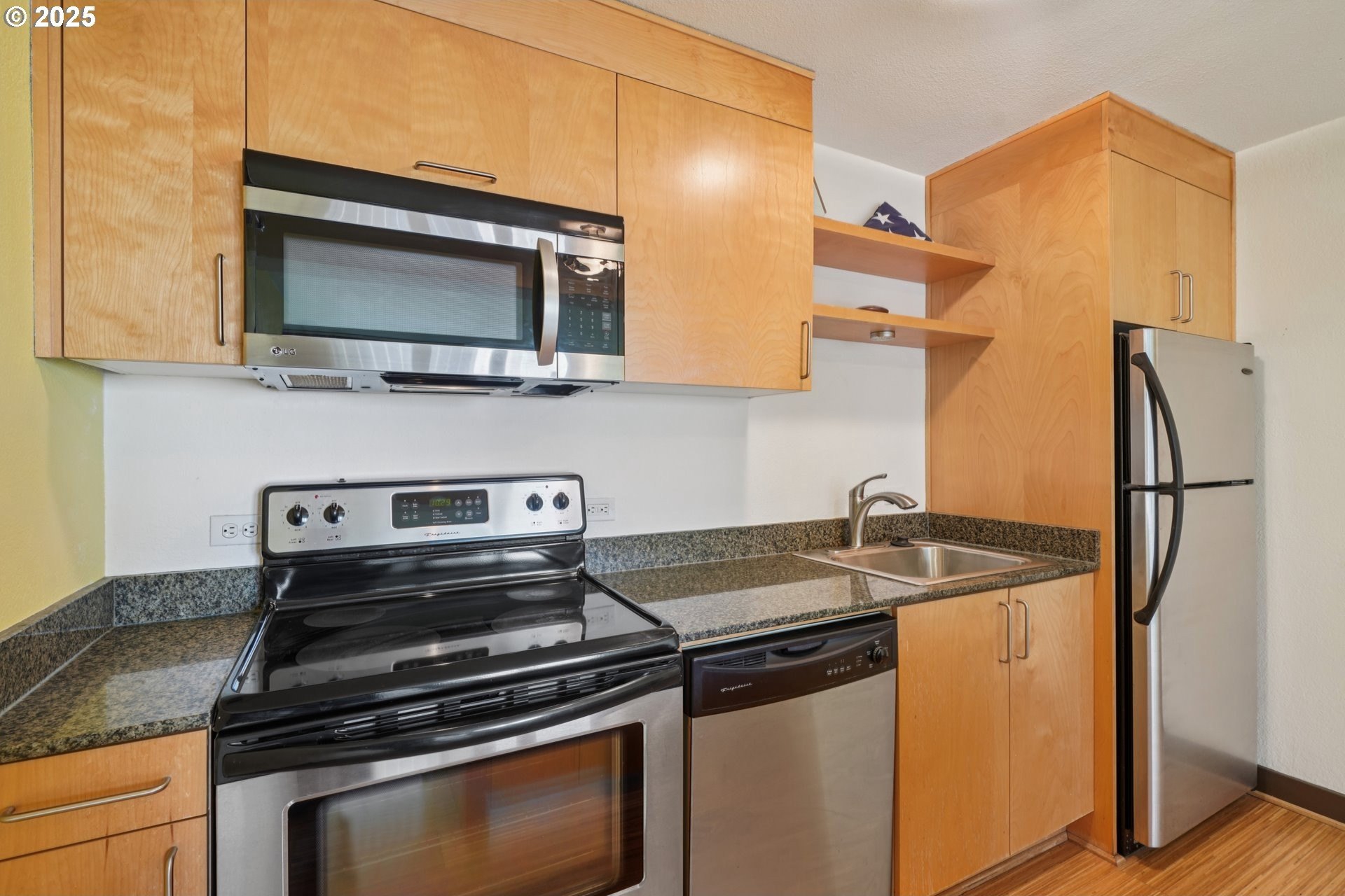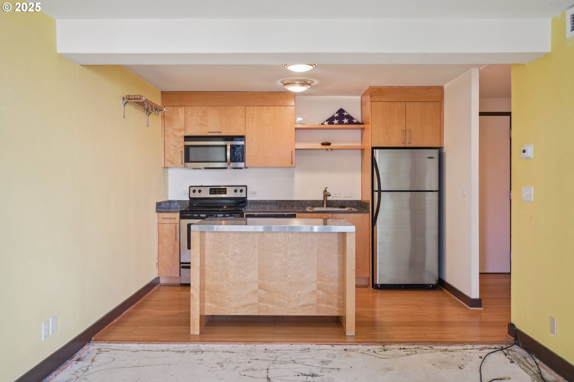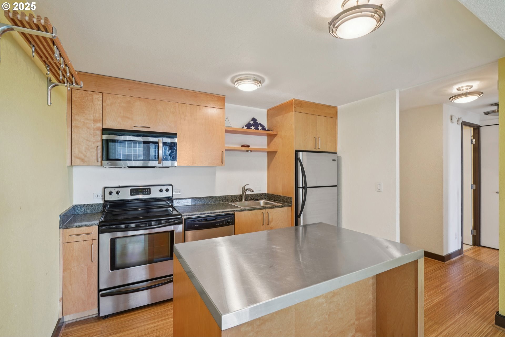Welcome to The Harrison West! This 1-bedroom, 1-bathroom condo is a light fixer, perfect for adding your own personal touches. Get into the building at one of the lowest price points and create instant sweat equity. Ideally located just steps from Portland State University, Keller Auditorium, the streetcar line, and Waterfront Park, this condo places the best of downtown Portland right at your doorstep. Enjoy stunning city and river views through floor-to-ceiling windows in both the living room and the primary suite, each opening to a spacious private balcony. Inside, the open-concept kitchen features stainless steel appliances, granite countertops, sleek open shelving, and an eating nook/island. The Harrison West community offers pedestrian walkways, lush green spaces, and access to multiple nearby parks. HOA amenities include an outdoor pool, hot tub, sauna, courtyard, and community gardens. HOA dues cover water, sewer, garbage, fiber-optic internet, shared laundry, exterior maintenance, beautifully maintained common areas, and professional onsite management. Investor-friendly with no rental cap (no short-term rentals), this condo provides versatile use as a primary residence or long-term rental. Additional perks include secure deeded parking, assigned basement storage, and a pet-friendly policy with some restrictions.