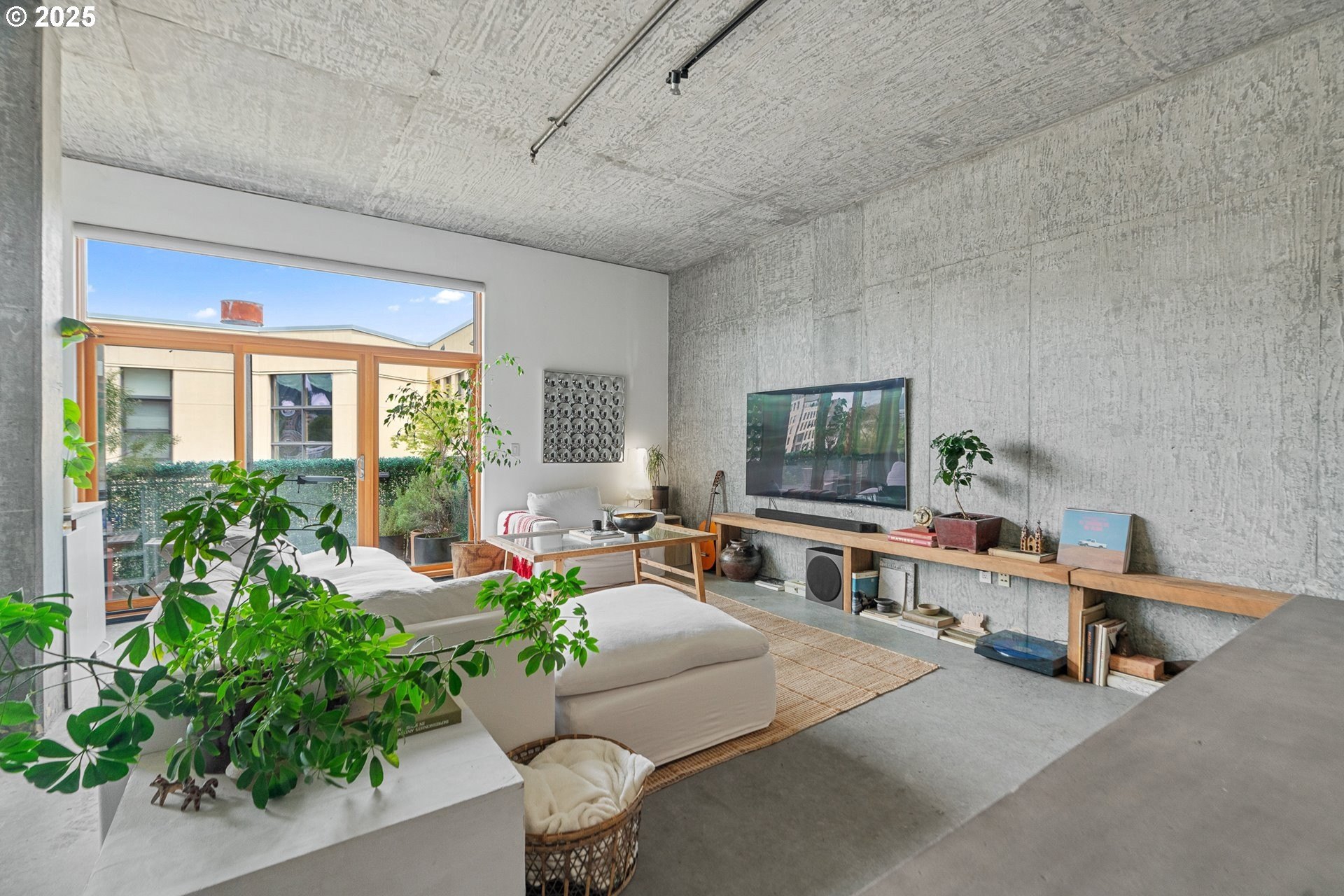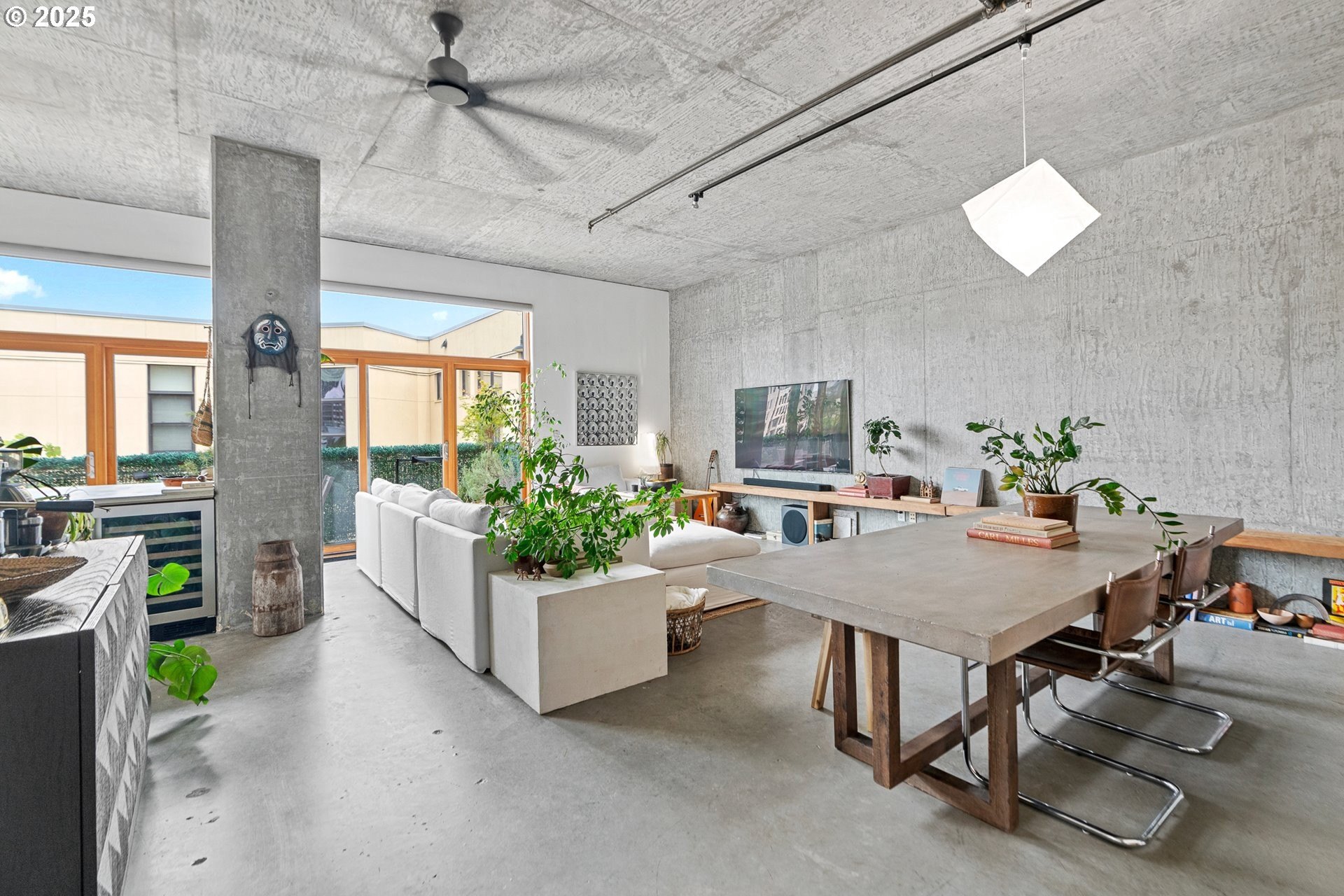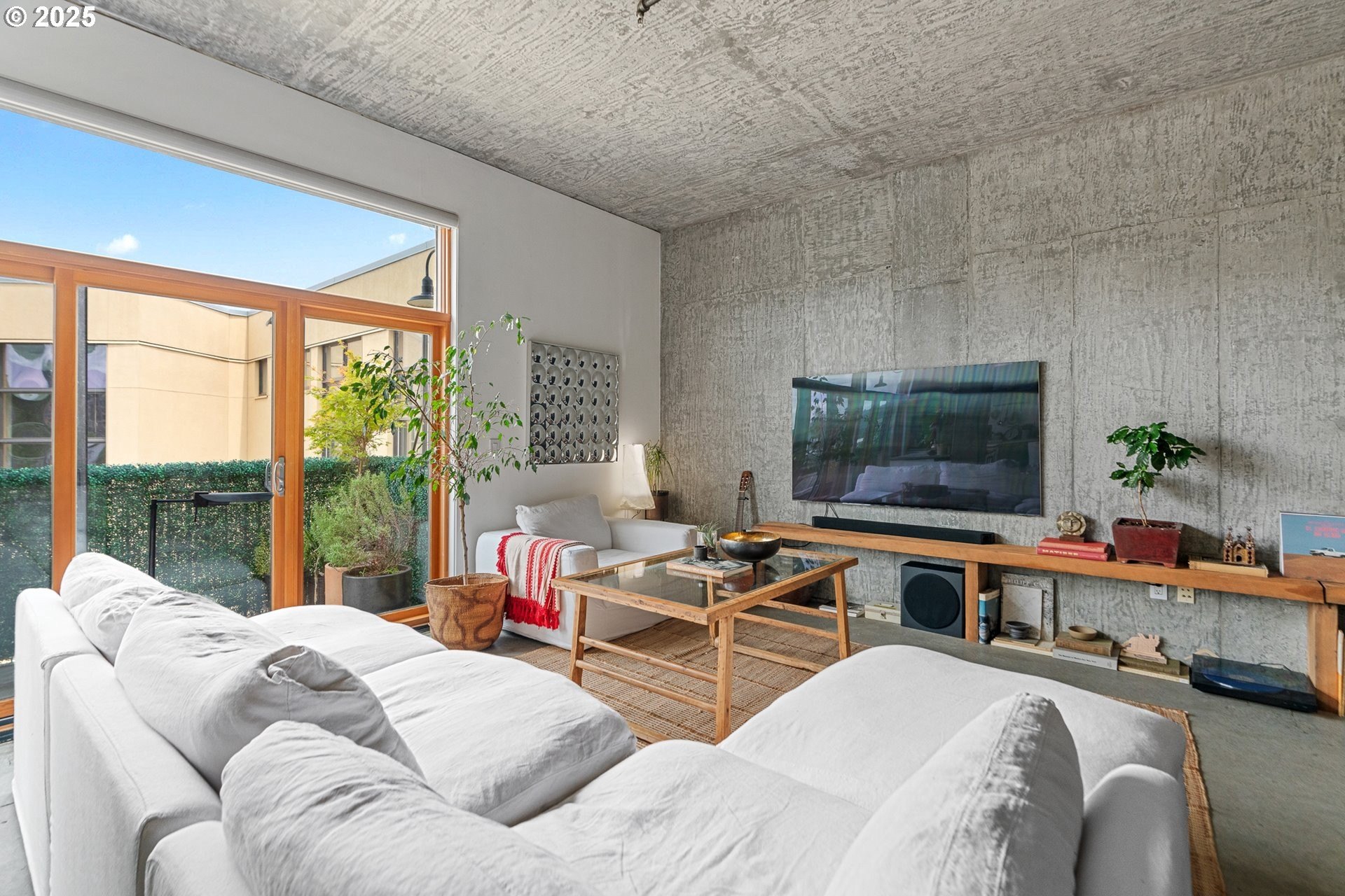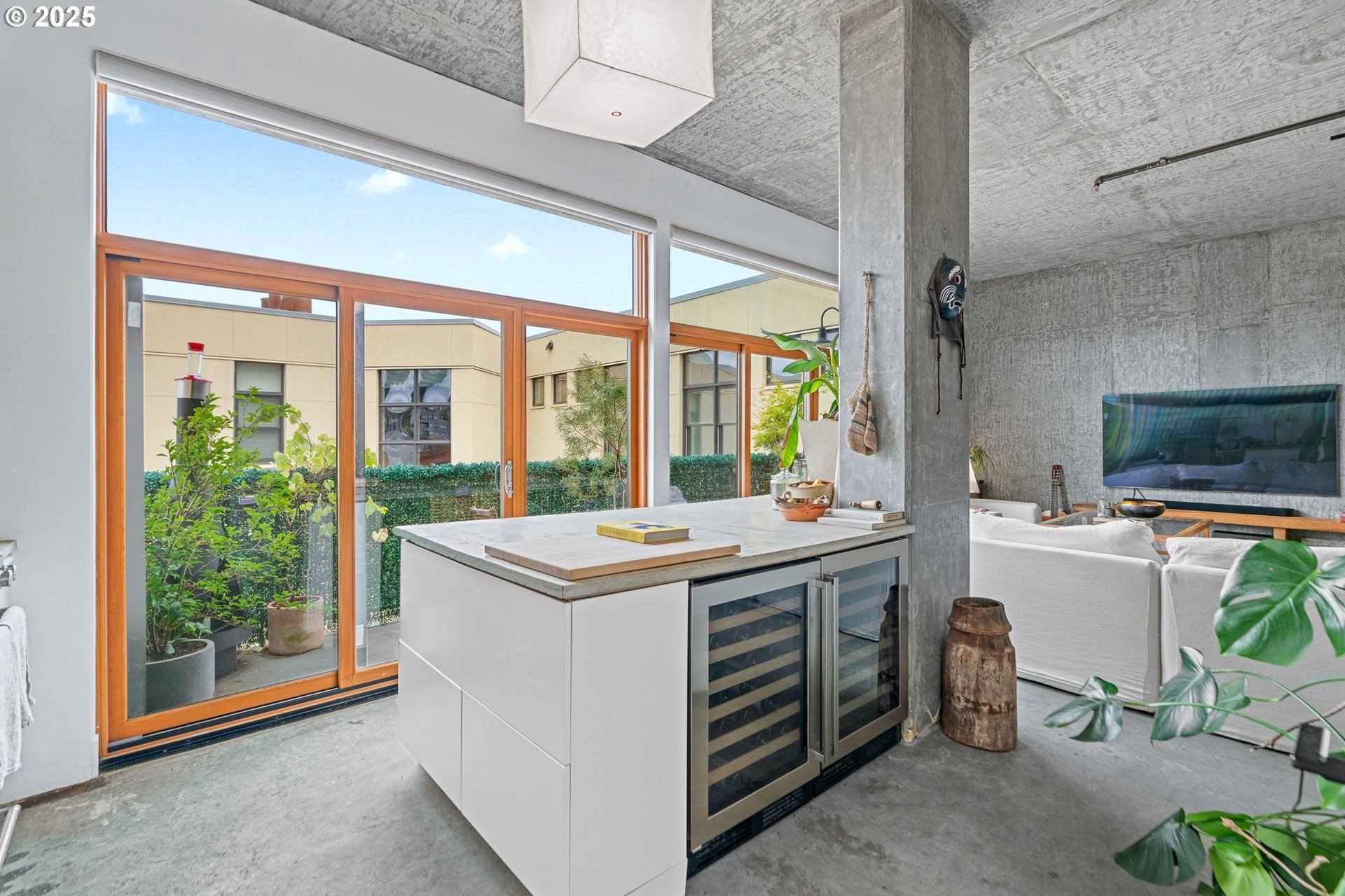 Fantastic opportunity on this freshly updated gem with upside investment potential! Settle into a warm, light-filled haven perched above the heart of Old Town - where comfort meets convenience in style. This impeccably styled unit offers the perfect mix of modern comfort and urban edge. The remarkable floor plan features an expansive open layout, beautiful concrete floors, extra tall ceilings, oversized windows, and thoughtful touches throughout. The living area flows into a sleek kitchen equipped with concrete countertops, custom cabinetry, and a built-in wine fridge-ideal for cooking and entertaining alike. Step out to your own private NW facing top floor patio, a rare feature that brings a touch of greenery to your urban setting, perfect for enjoying morning coffee or evening relaxation. The spacious bedroom and adjacent office area provide ample storage and a stylish retreat, while the bathroom impresses with its custom concrete sink, shower, and minimalist design. Added convenience includes in-unit laundry, a secure underground parking space with power access for EV charging, and a deeded storage area for extra organization. Residents also have access to a private courtyard-a hidden gem in the middle of the city. With some of Portland's best dining, shops, and amenities just steps away, this condo embodies urban living at its finest, right in the center of it all. Further info available about the community redevelopment project plans, initiatives, and mission.