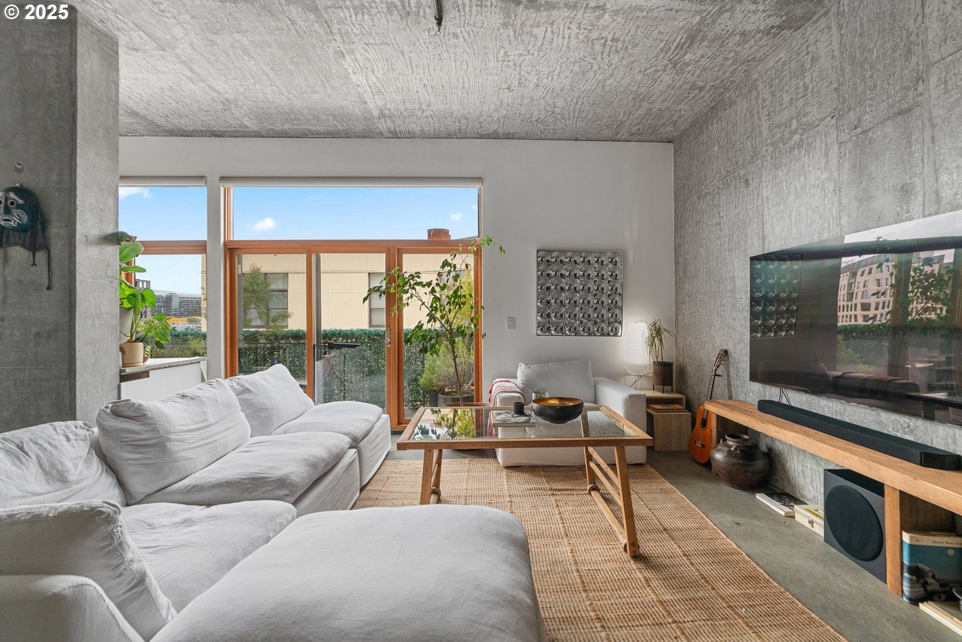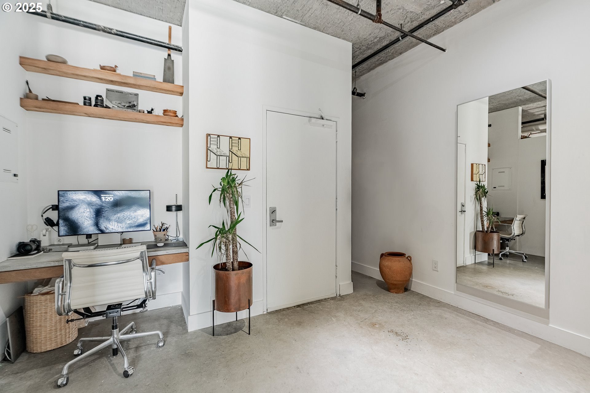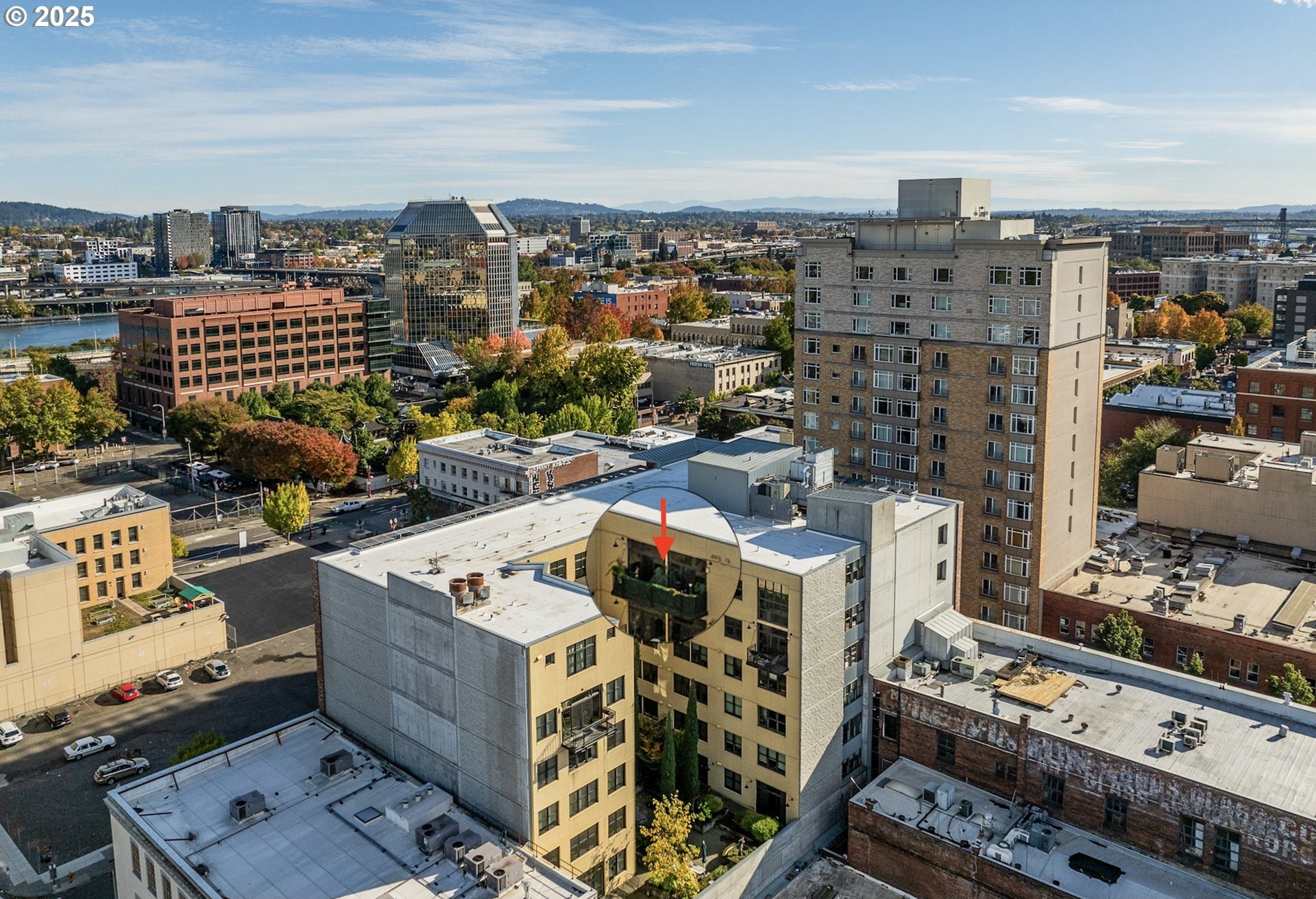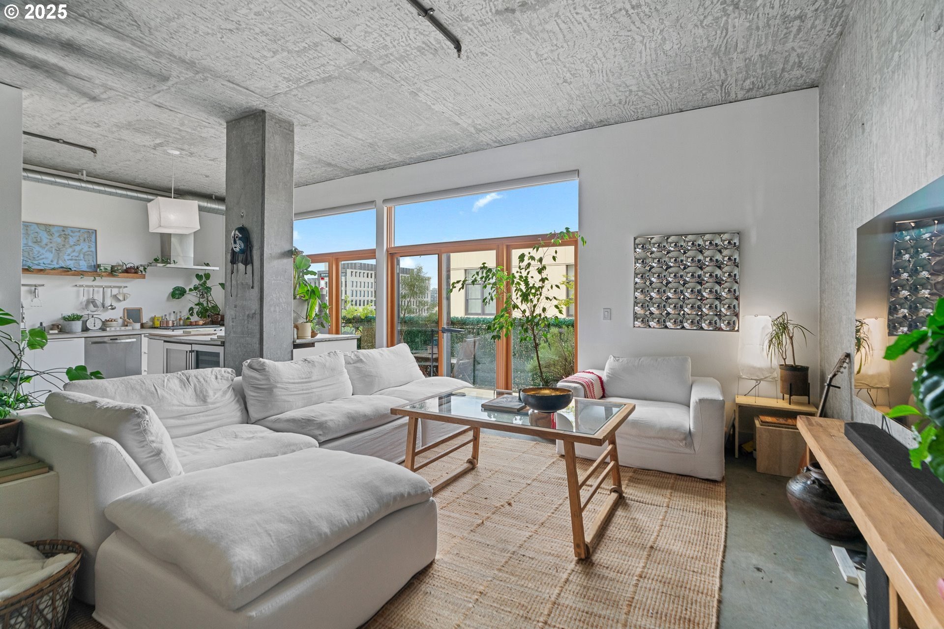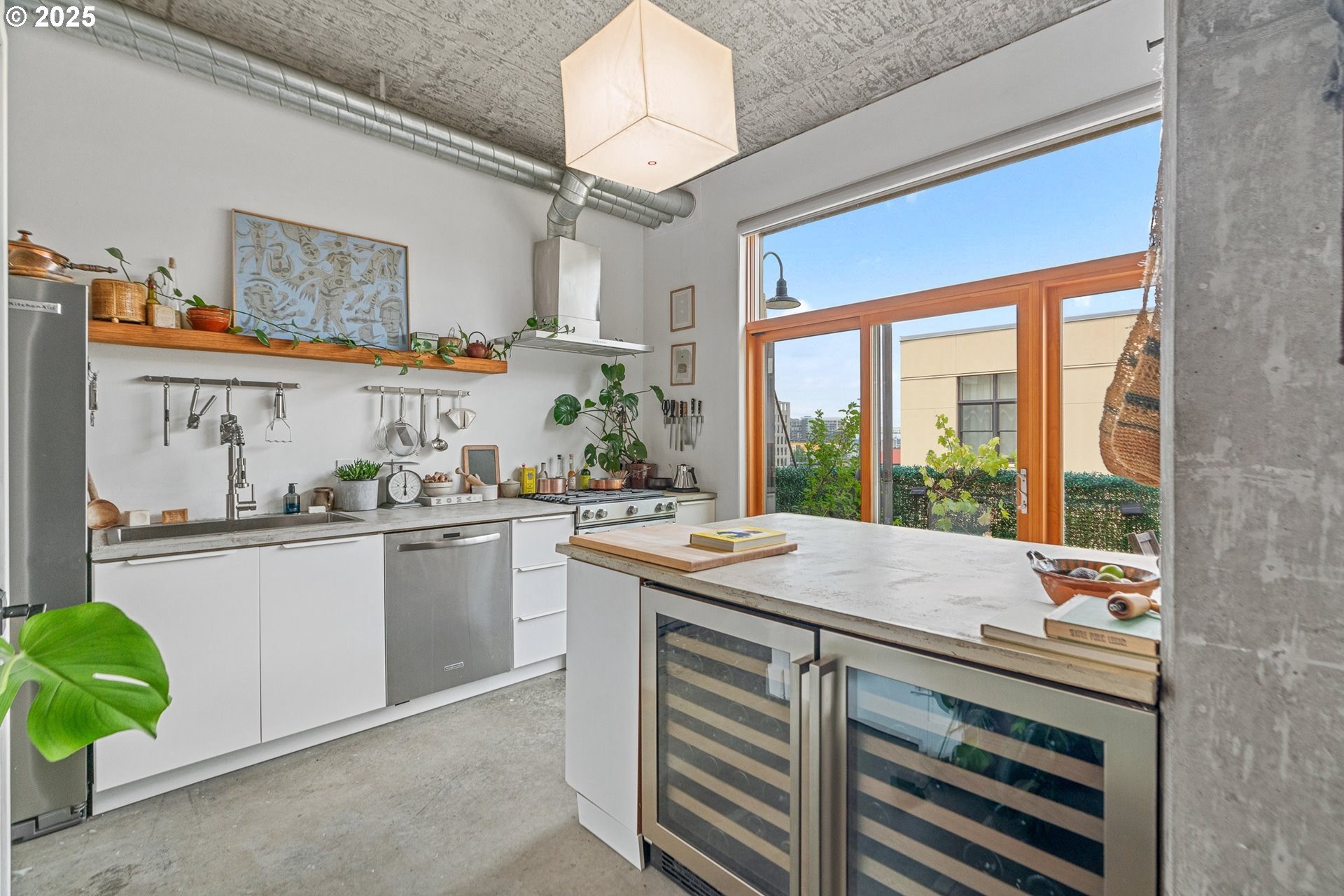 Fantastic opportunity on this freshly updated gem with upside investment potential! Settle into a warm, light-filled haven perched above the heart of Old Town - where comfort meets convenience in style. This impeccably styled unit offers the perfect mix of modern comfort and urban edge. The remarkable floor plan features an expansive open layout, beautiful concrete floors, extra tall ceilings, oversized windows, and thoughtful touches throughout. The living area flows into a sleek kitchen equipped with concrete countertops, custom cabinetry, and a built-in wine fridge-ideal for cooking and entertaining alike. Step out to your own private NW facing top floor patio, a rare feature that brings a touch of greenery to your urban setting, perfect for enjoying morning coffee or evening relaxation. The spacious bedroom and adjacent office area provide ample storage and a stylish retreat, while the bathroom impresses with its custom concrete sink, shower, and minimalist design. Added convenience includes in-unit laundry, a secure underground parking space with power access for EV charging, and a deeded storage area for extra organization. Residents also have access to a private courtyard-a hidden gem in the middle of the city. With some of Portland's best dining, shops, and amenities just steps away, this condo embodies urban living at its finest, right in the center of it all. Further info available about the community redevelopment project plans, initiatives, and mission.