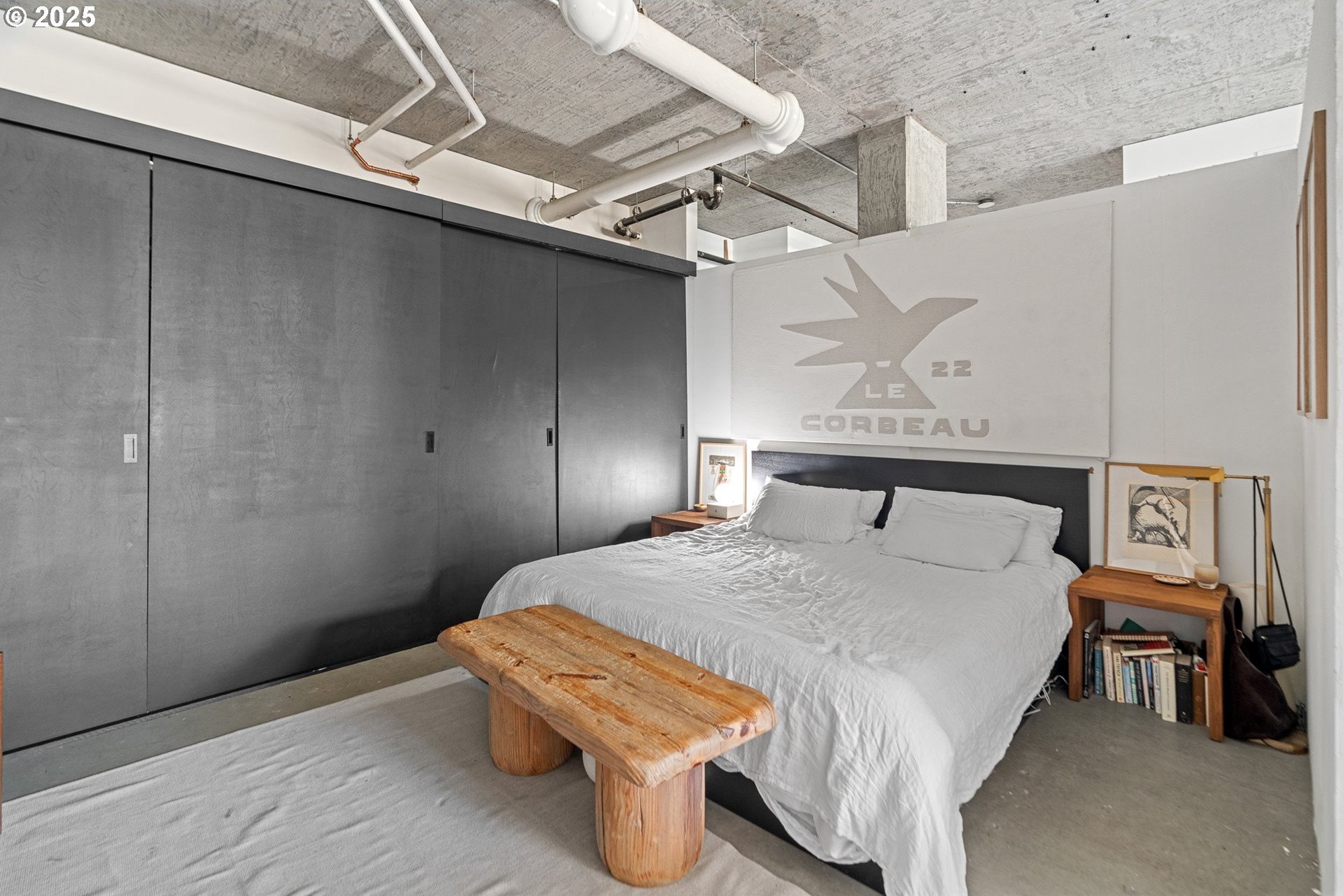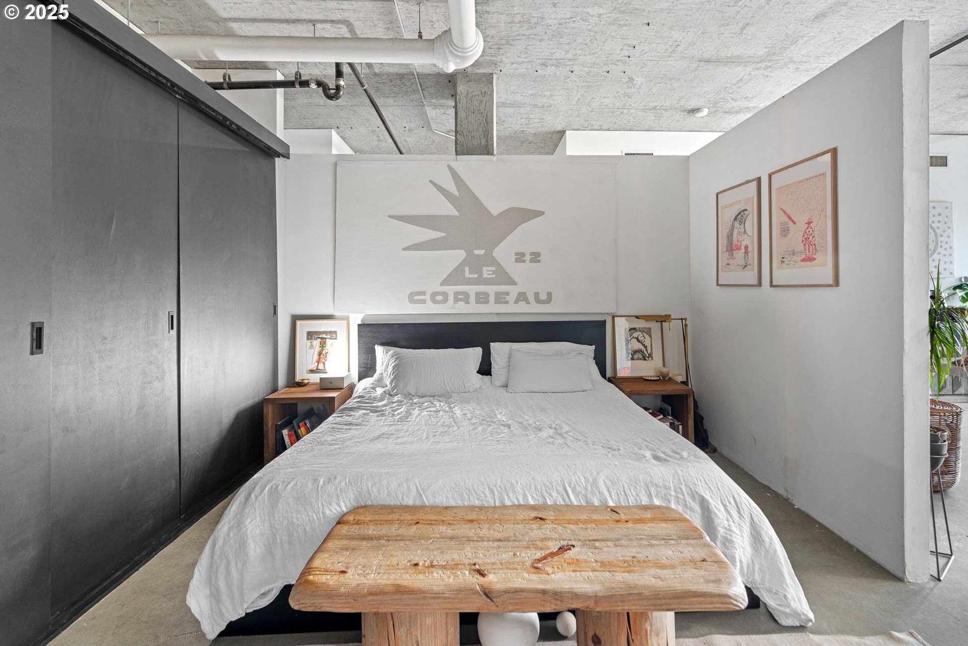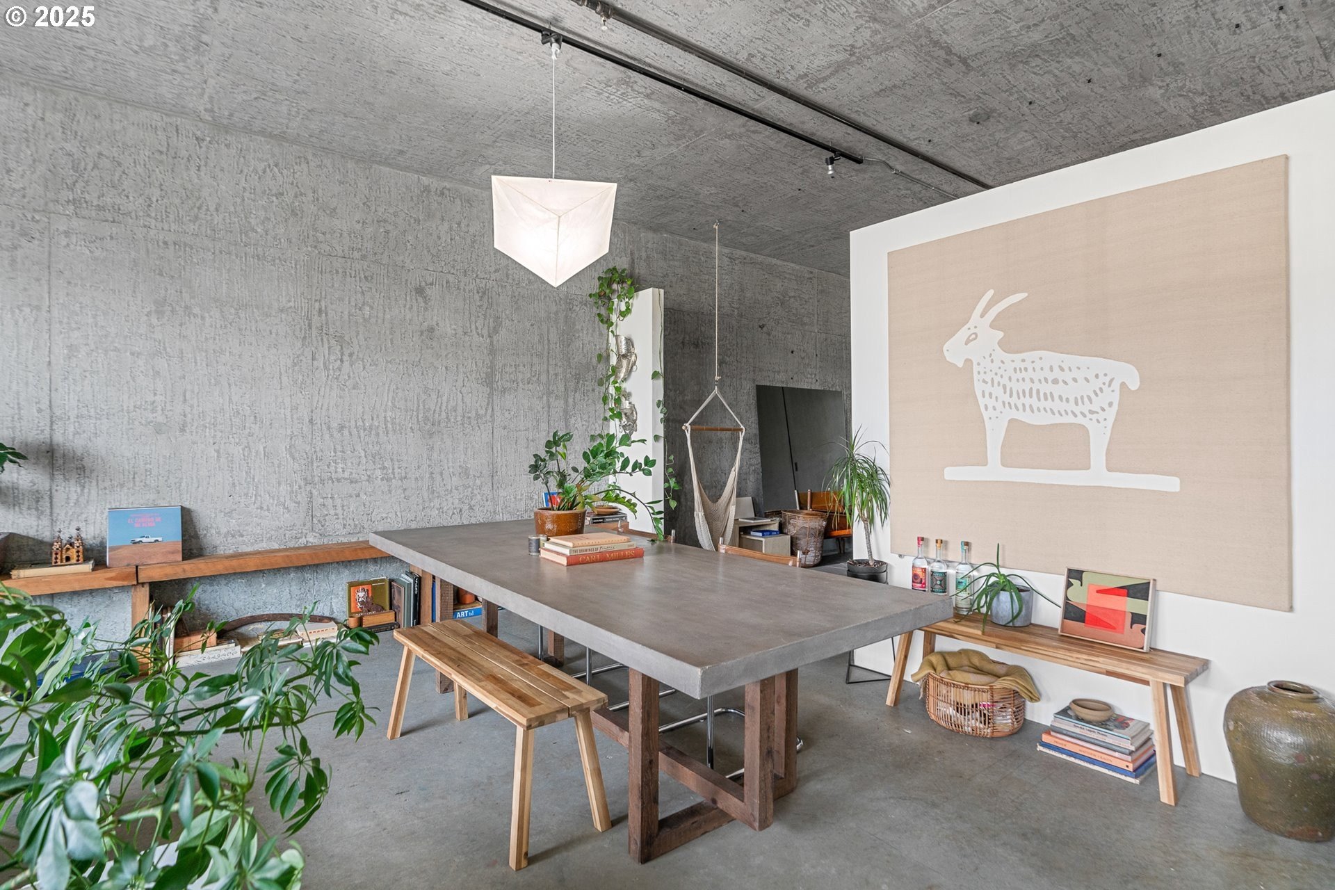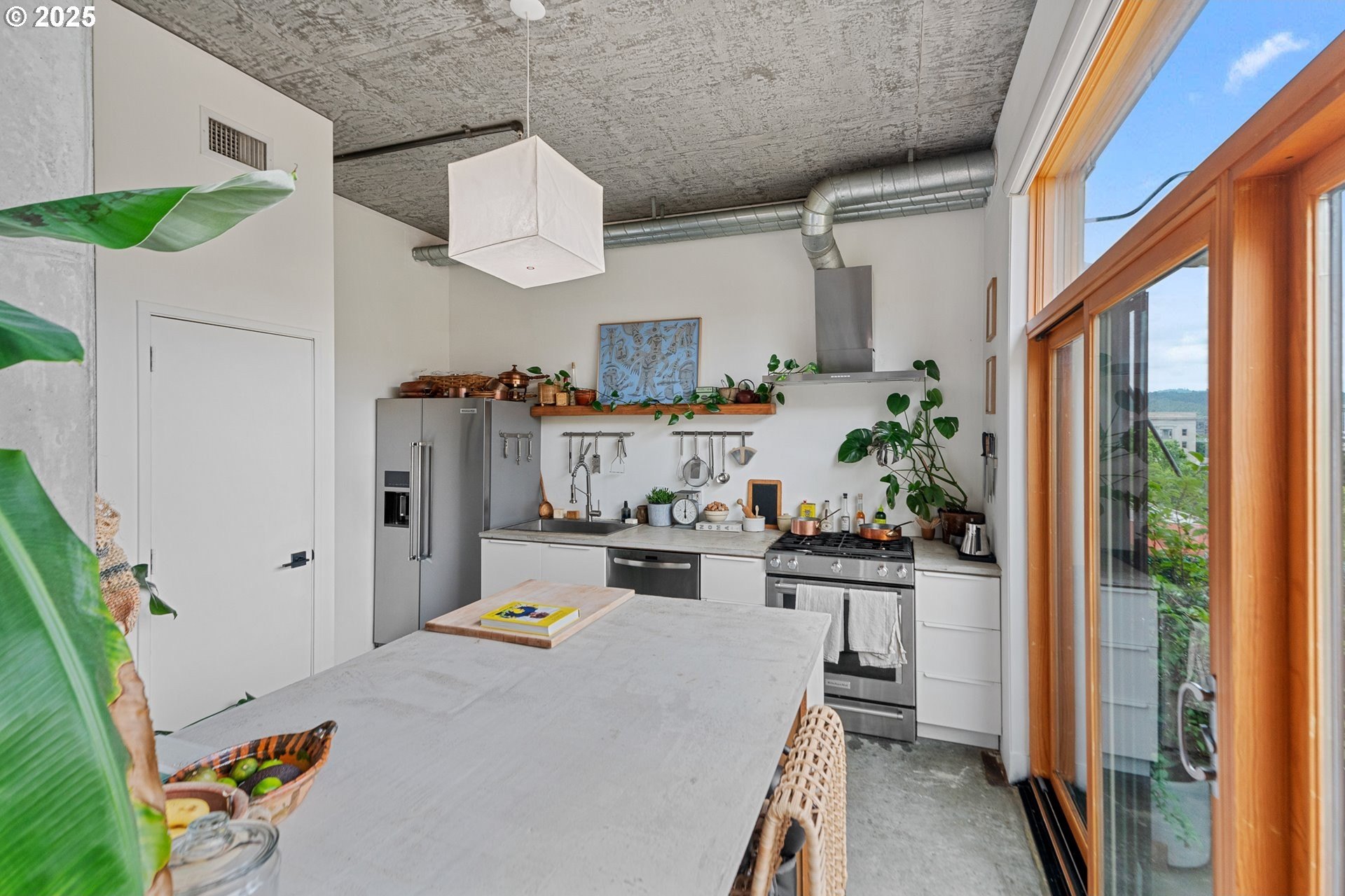 Fantastic opportunity on this freshly updated gem with upside investment potential! Settle into a warm, light-filled haven perched above the heart of Old Town - where comfort meets convenience in style. This impeccably styled unit offers the perfect mix of modern comfort and urban edge. The remarkable floor plan features an expansive open layout, beautiful concrete floors, extra tall ceilings, oversized windows, and thoughtful touches throughout. The living area flows into a sleek kitchen equipped with concrete countertops, custom cabinetry, and a built-in wine fridge-ideal for cooking and entertaining alike. Step out to your own private NW facing top floor patio, a rare feature that brings a touch of greenery to your urban setting, perfect for enjoying morning coffee or evening relaxation. The spacious bedroom and adjacent office area provide ample storage and a stylish retreat, while the bathroom impresses with its custom concrete sink, shower, and minimalist design. Added convenience includes in-unit laundry, a secure underground parking space with power access for EV charging, and a deeded storage area for extra organization. Residents also have access to a private courtyard-a hidden gem in the middle of the city. With some of Portland's best dining, shops, and amenities just steps away, this condo embodies urban living at its finest, right in the center of it all. Further info available about the community redevelopment project plans, initiatives, and mission.