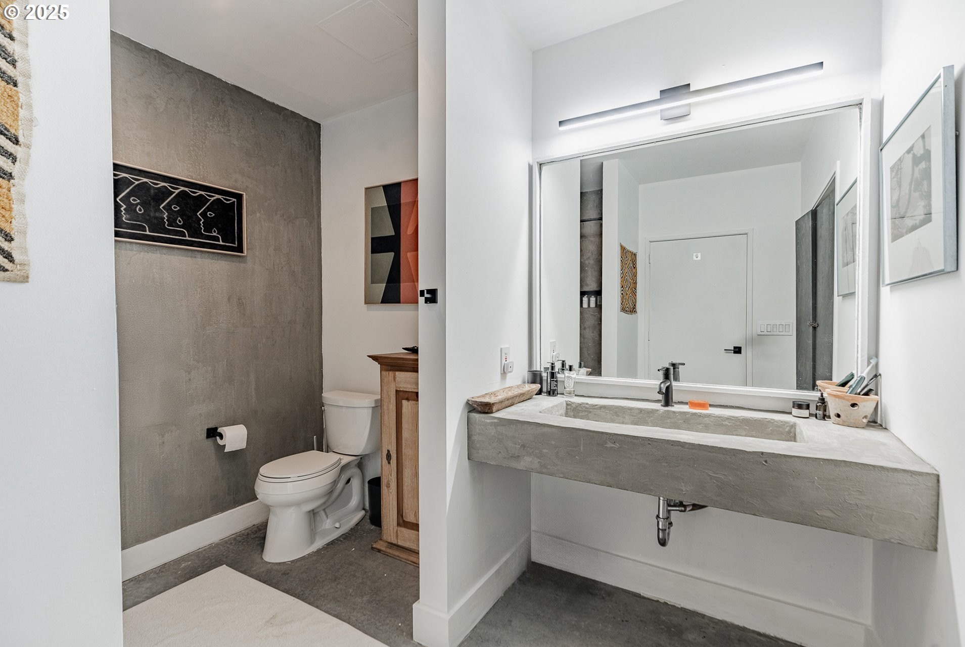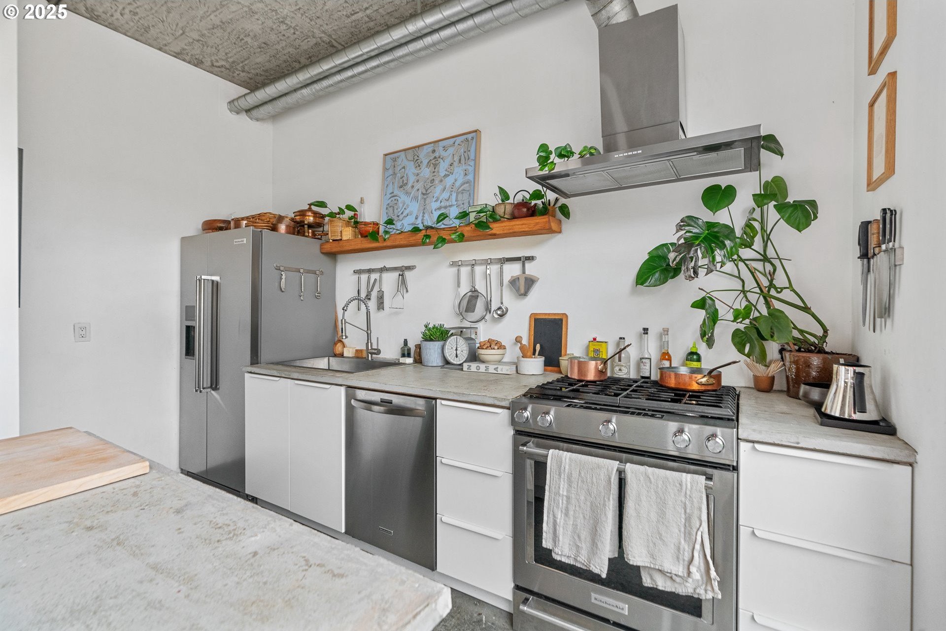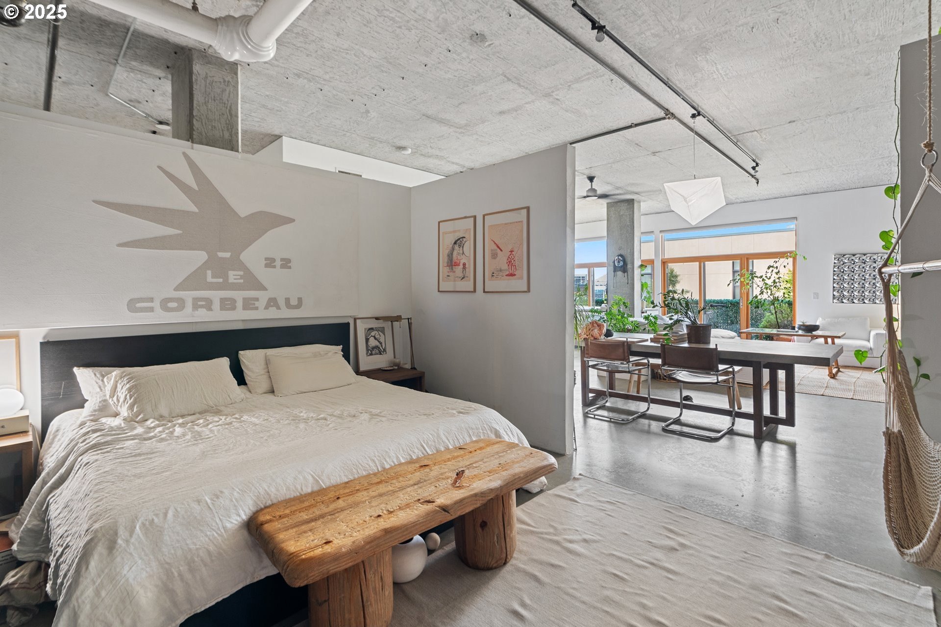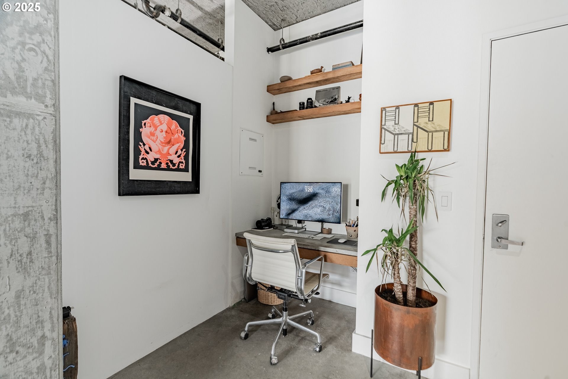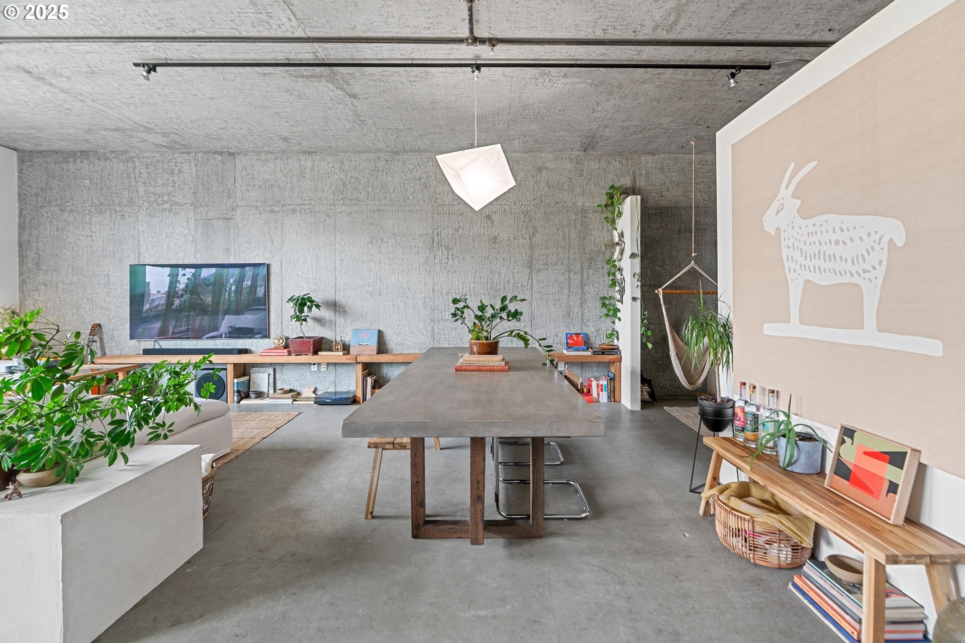 Fantastic opportunity on this freshly updated gem with upside investment potential! Settle into a warm, light-filled haven perched above the heart of Old Town - where comfort meets convenience in style. This impeccably styled unit offers the perfect mix of modern comfort and urban edge. The remarkable floor plan features an expansive open layout, beautiful concrete floors, extra tall ceilings, oversized windows, and thoughtful touches throughout. The living area flows into a sleek kitchen equipped with concrete countertops, custom cabinetry, and a built-in wine fridge-ideal for cooking and entertaining alike. Step out to your own private NW facing top floor patio, a rare feature that brings a touch of greenery to your urban setting, perfect for enjoying morning coffee or evening relaxation. The spacious bedroom and adjacent office area provide ample storage and a stylish retreat, while the bathroom impresses with its custom concrete sink, shower, and minimalist design. Added convenience includes in-unit laundry, a secure underground parking space with power access for EV charging, and a deeded storage area for extra organization. Residents also have access to a private courtyard-a hidden gem in the middle of the city. With some of Portland's best dining, shops, and amenities just steps away, this condo embodies urban living at its finest, right in the center of it all. Further info available about the community redevelopment project plans, initiatives, and mission.
