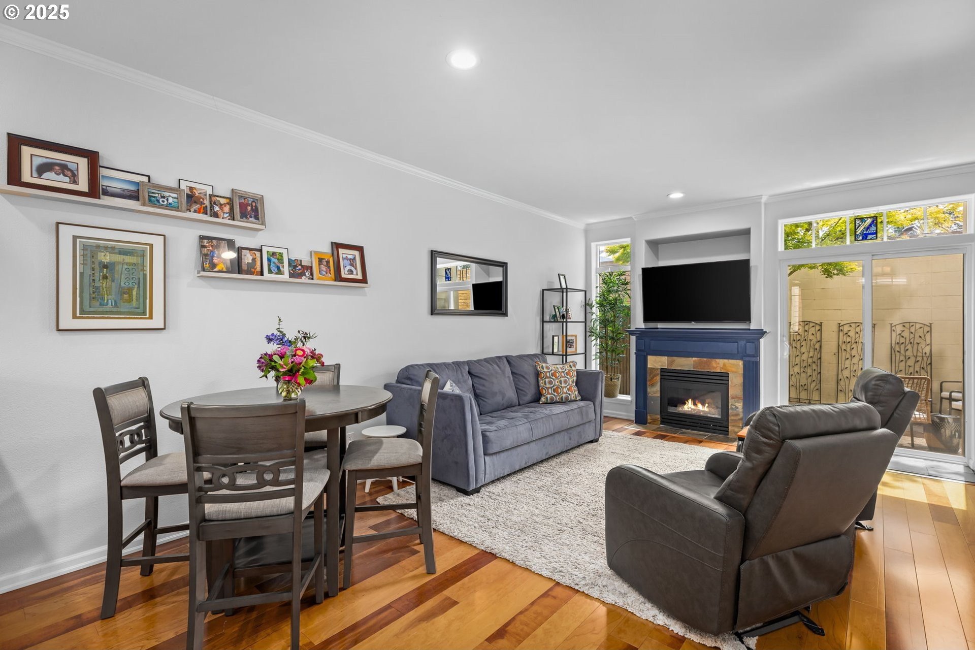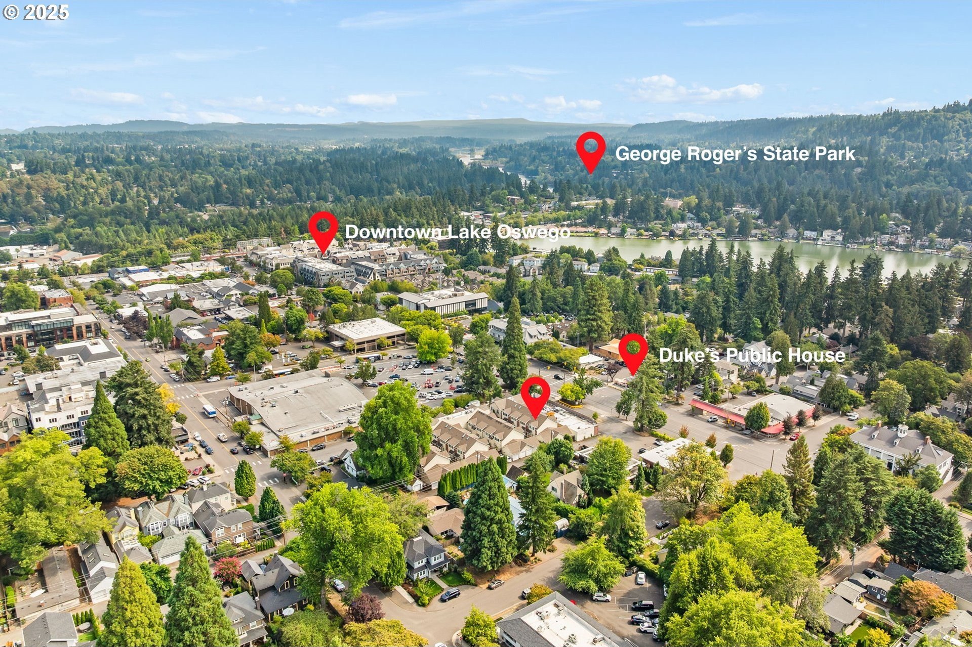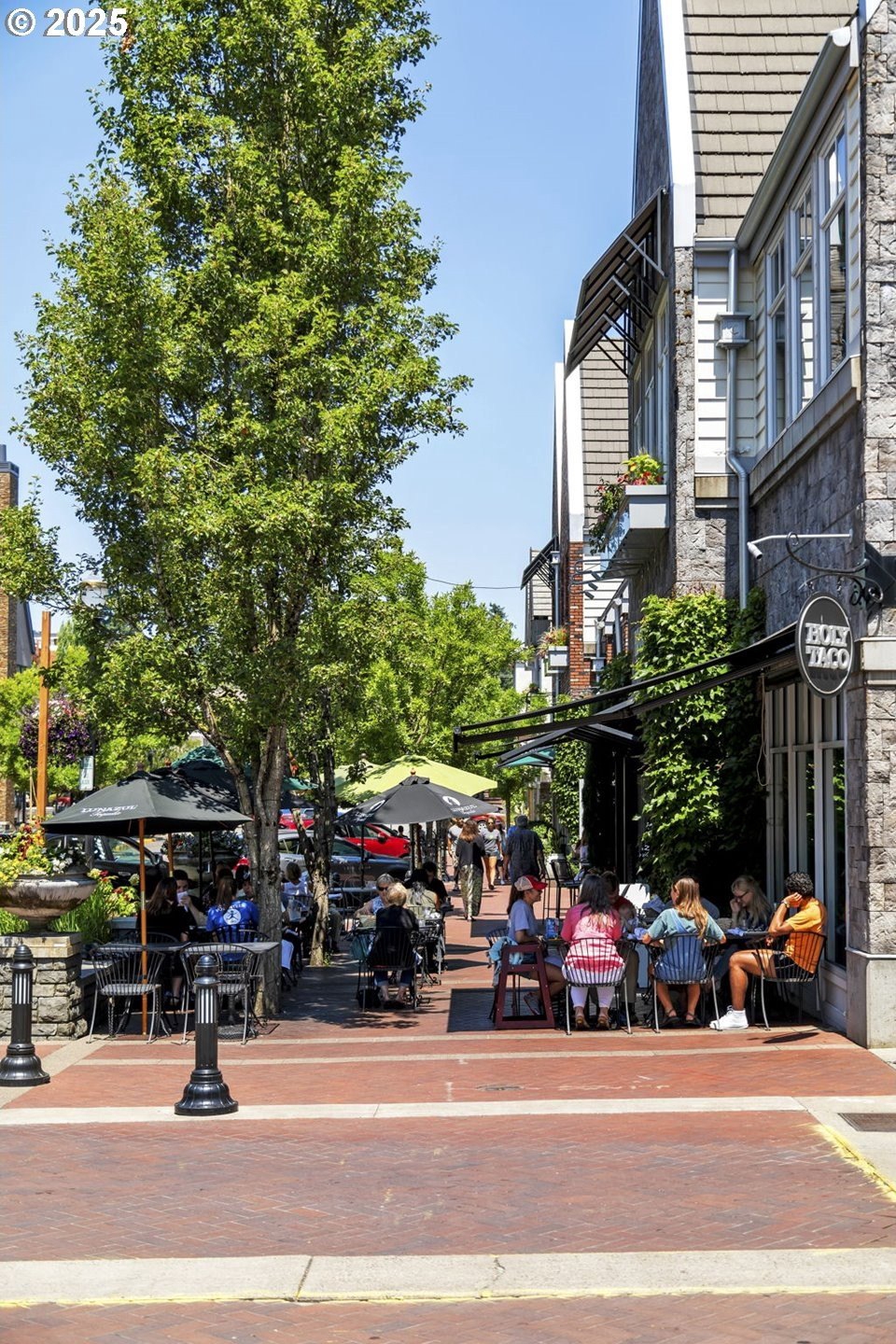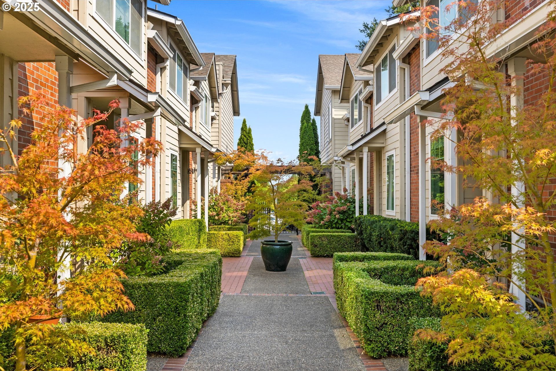 Live in the heart of downtown Lake Oswego's First Addition neighborhood! Charming + lush courtyard greets guests with beautiful landscaping. Light & bright interior features 9' high ceilings, great room concept on main level with Brazilian cherry wood floors + crown molding. Remodeled kitchen with stainless steel appliances, quartz counter tops & eat bar. Living room with cozy gas fireplace. Sliding glass door opens to fenced & oversized private patio. Upstairs you will find 2 bedrooms connected by full bathroom with 2 sink vanity, excellent storage & shower+tub combo. Detached garage with attic storage & opener . This 16 unit complex is a special combination of a low maintenance, peaceful retreat in the heart of one of the most sought-after neighborhoods. Stroll to shops, grocery, library, post office, farmer's market, theater, dining, cafes & parks. Walk Score 94 + Bike Score 69!