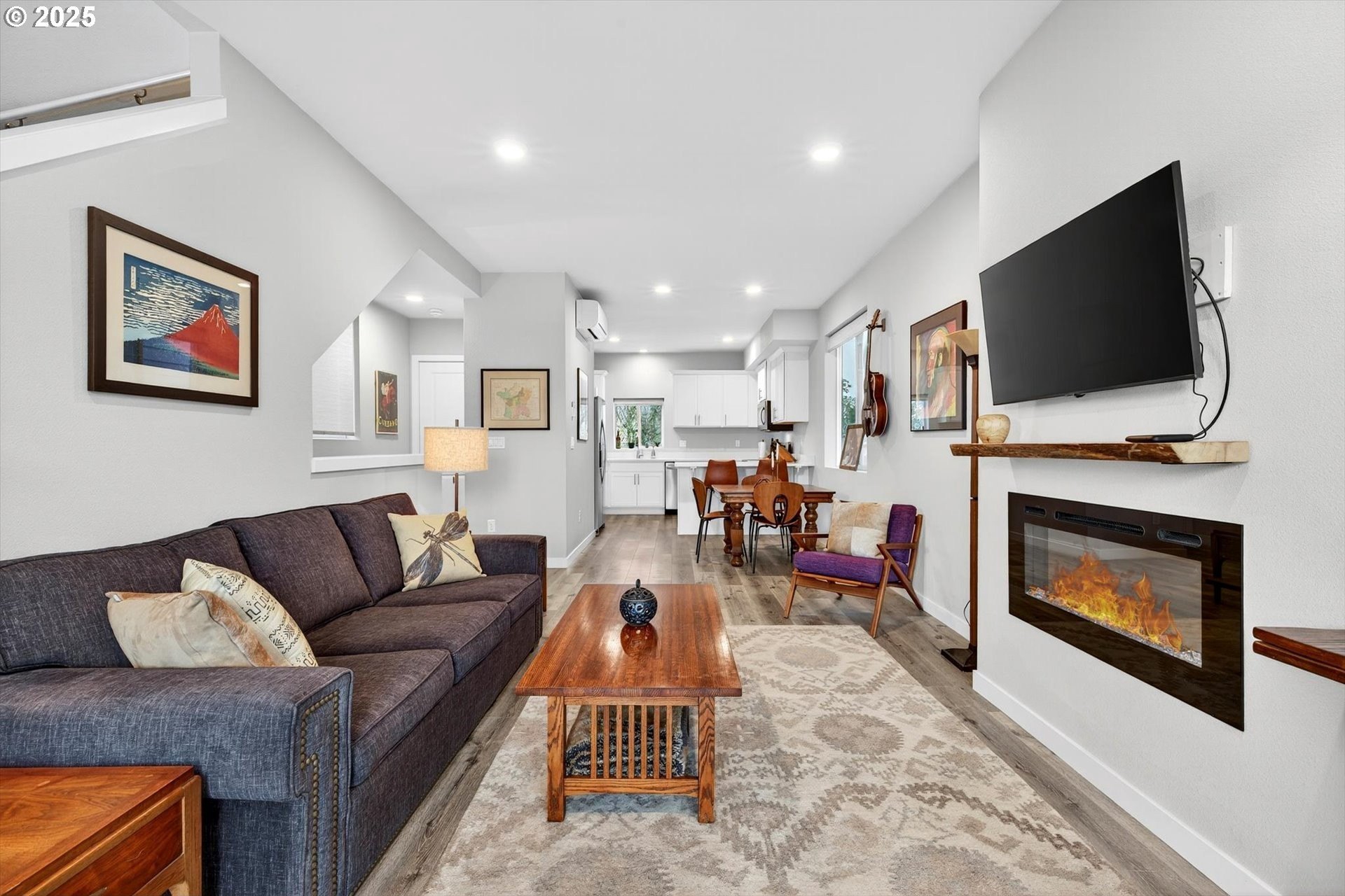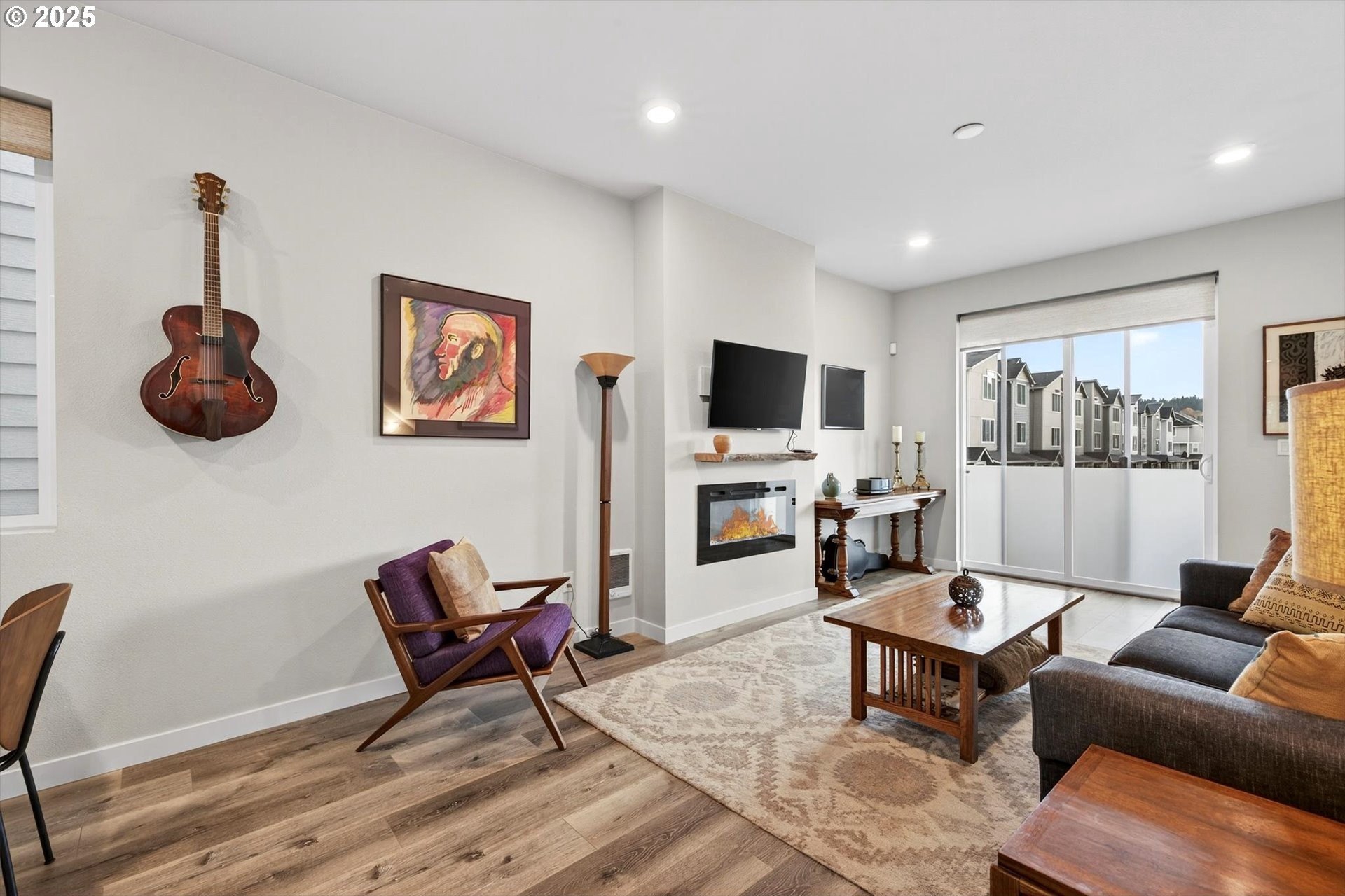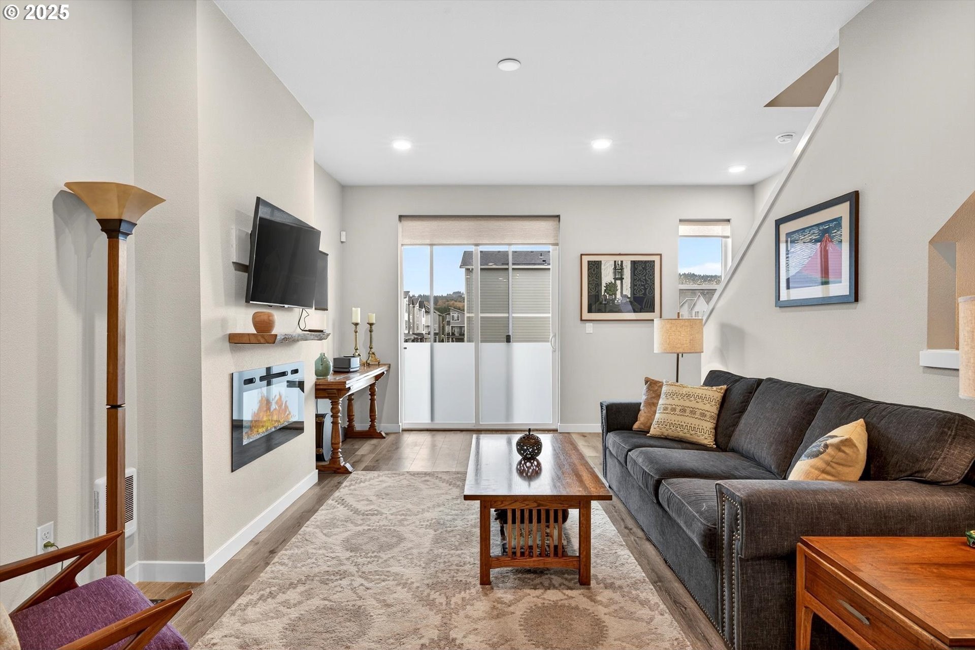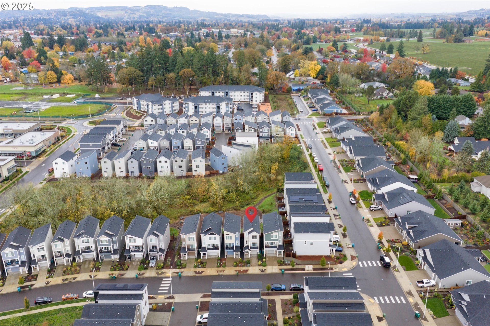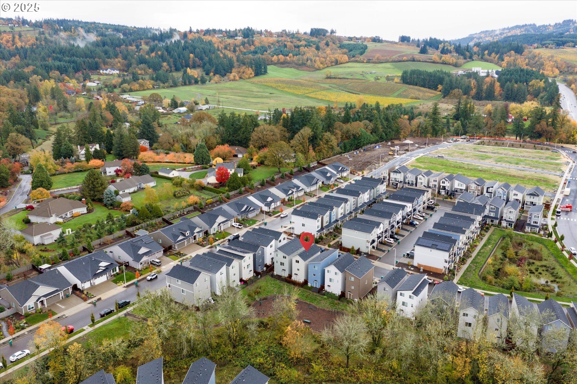 Welcome to this thoughtfully designed 2-bedroom, 2.5-bath home offering 1,232 sq ft of modern living. Enjoy a bright, open layout with high ceilings, laminate flooring, and a cozy electric fireplace in the great room style main living space with a slider to the balcony, perfect for relaxing or entertaining with views of the Chehalem Mountains and Parrot Mountain. The kitchen features Quartz countertops, stainless steel appliances, an eat bar and pantry. Upstairs, the primary suite includes a walk-in shower, dual sinks, and double closets, while the second bedroom, full bathroom, and convenient laundry area complete the upper level. Additional highlights include an oversized tandem 1-car garage and a low-maintenance fenced backyard with a patio. Ideally located in Newberg near a neighborhood park, with easy access to HWY 99, Chehalem Glen Golf Course, Newberg Hospital, schools, wine country and shopping.