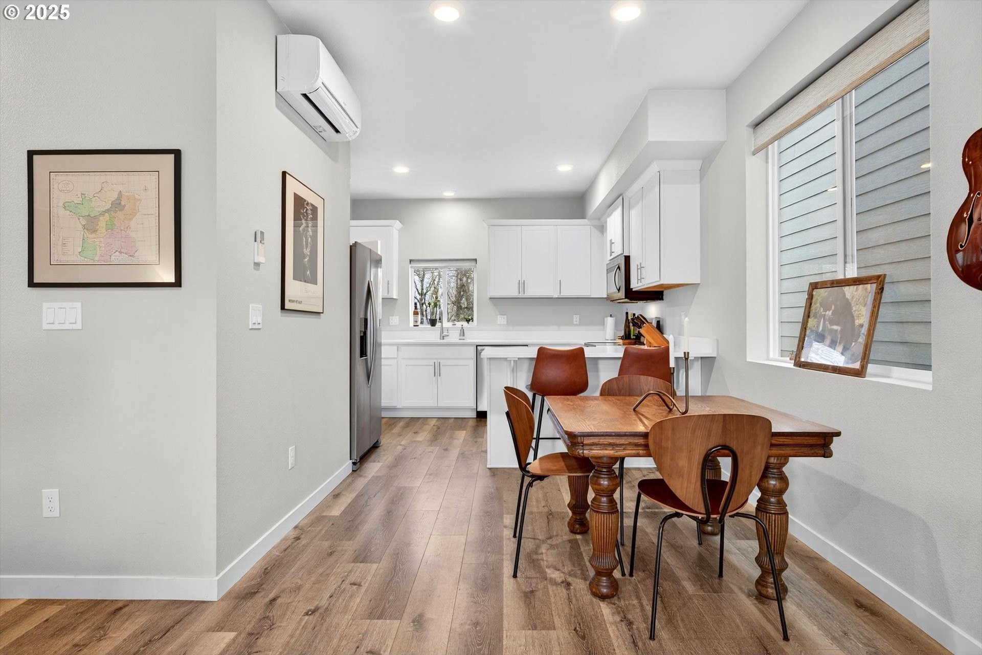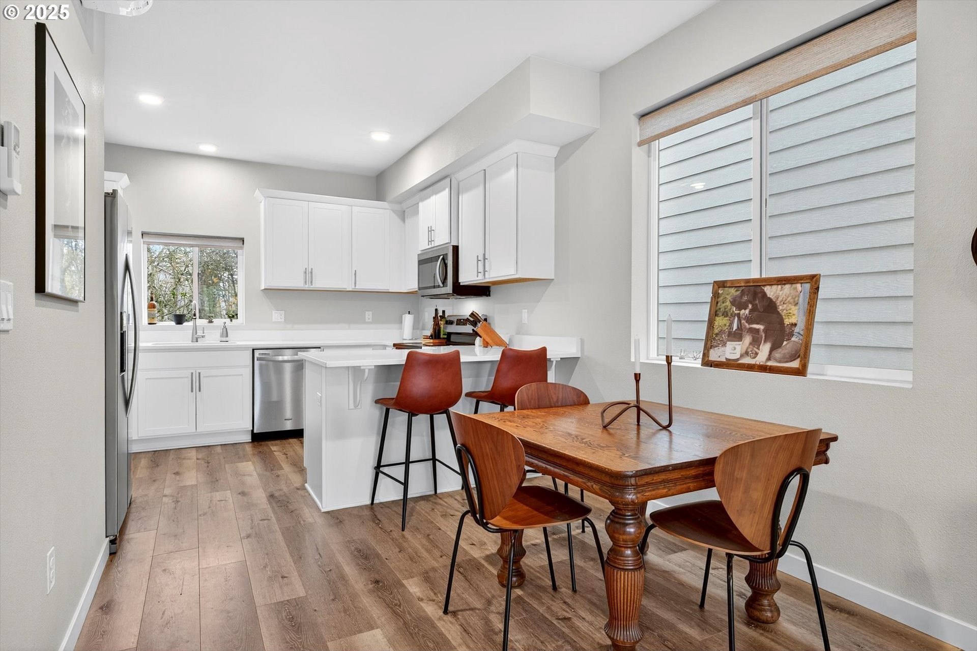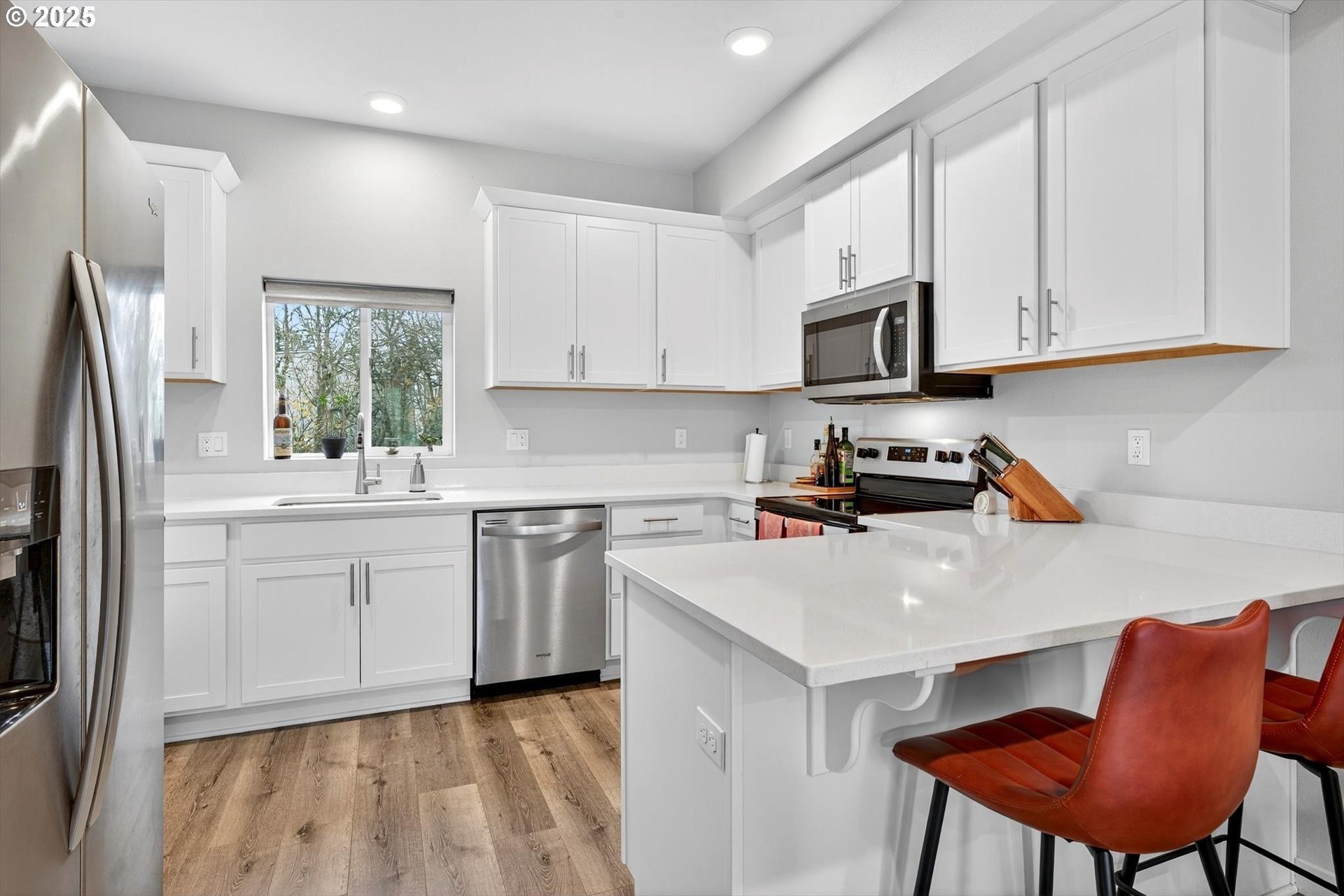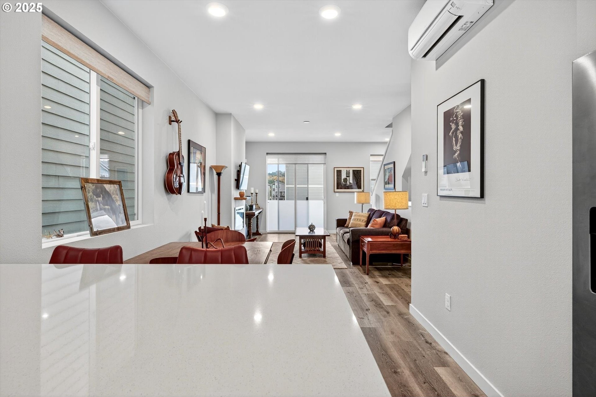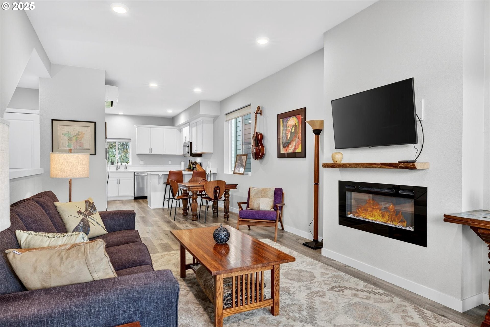 Welcome to this thoughtfully designed 2-bedroom, 2.5-bath home offering 1,232 sq ft of modern living. Enjoy a bright, open layout with high ceilings, laminate flooring, and a cozy electric fireplace in the great room style main living space with a slider to the balcony, perfect for relaxing or entertaining with views of the Chehalem Mountains and Parrot Mountain. The kitchen features Quartz countertops, stainless steel appliances, an eat bar and pantry. Upstairs, the primary suite includes a walk-in shower, dual sinks, and double closets, while the second bedroom, full bathroom, and convenient laundry area complete the upper level. Additional highlights include an oversized tandem 1-car garage and a low-maintenance fenced backyard with a patio. Ideally located in Newberg near a neighborhood park, with easy access to HWY 99, Chehalem Glen Golf Course, Newberg Hospital, schools, wine country and shopping.