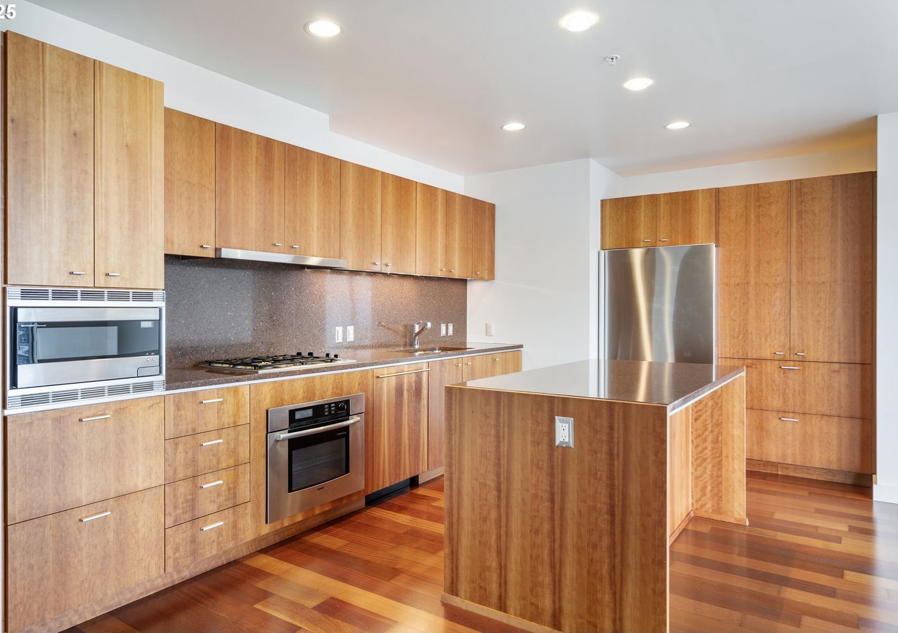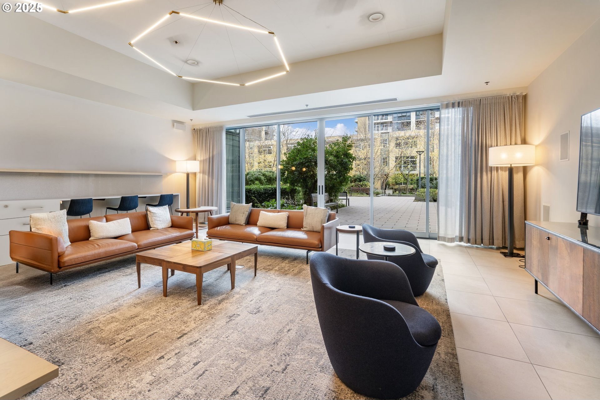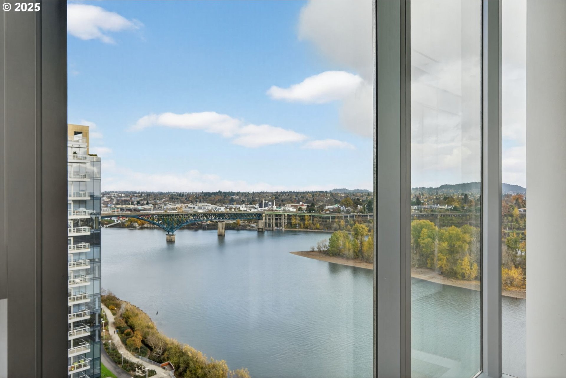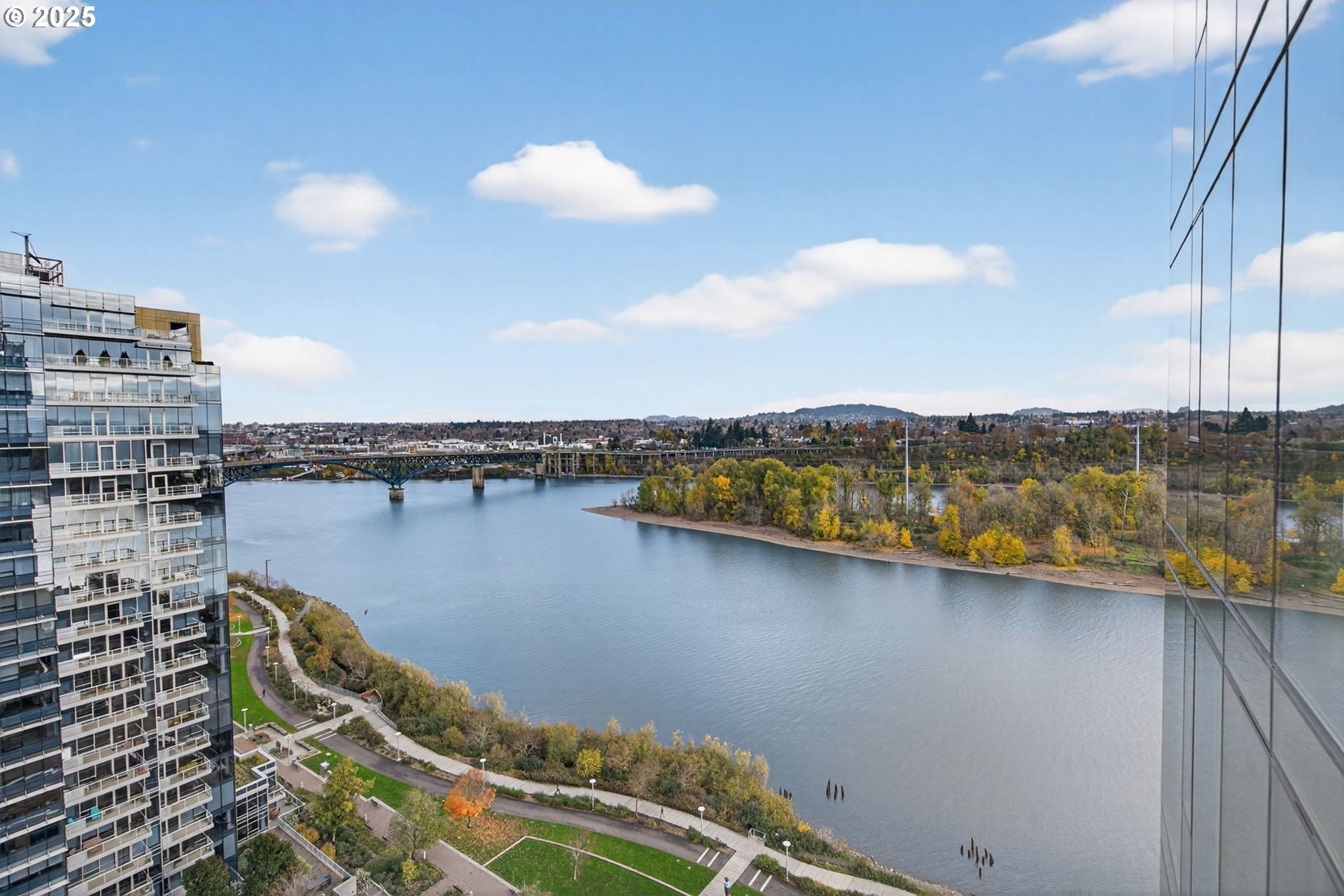 Experience luxury living in this beautiful one-bedroom condo on the 17th floor of the coveted Atwater Building. Enjoy stunning panoramic views of Mt. St Helens, the city skyline, and the Willamette River through floor-to-ceiling windows that flood the home with natural light. This spacious residence features 1 bedroom and 1.5 baths, including a serene primary suite with two closets-one a generous walk-in-and an ensuite bathroom complete with a soaking tub and double-sink vanity. The chef's kitchen showcases gas appliances, stainless steel finishes, and a built-in wine fridge, perfect for entertaining. A deeded parking space (P1-102) is included. The Atwater offers exceptional amenities such as 24-hour concierge service, a meeting/party room, and LEED Gold certification for sustainable, energy-efficient living. Stylish, comfortable, and impeccably located; this is city living at its finest.