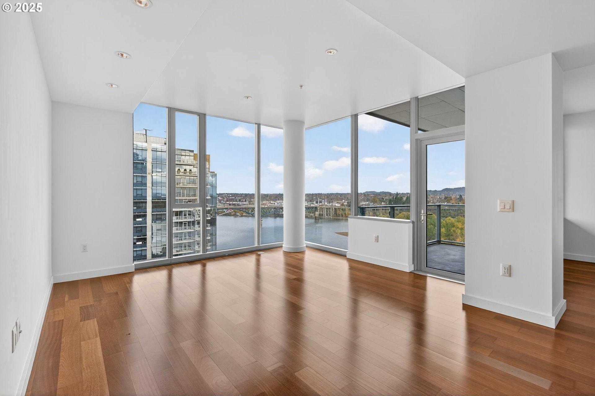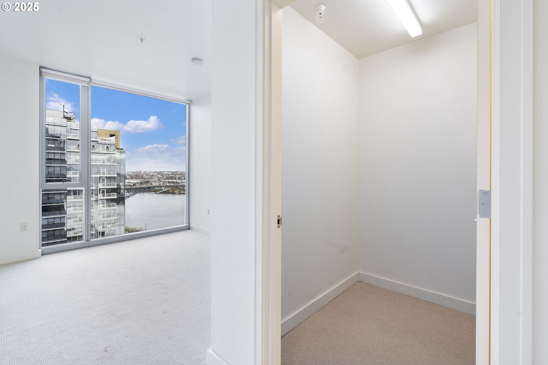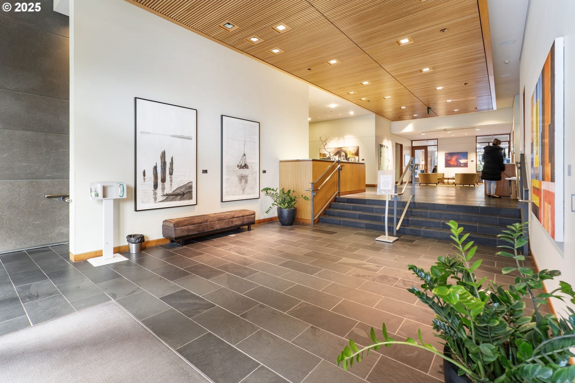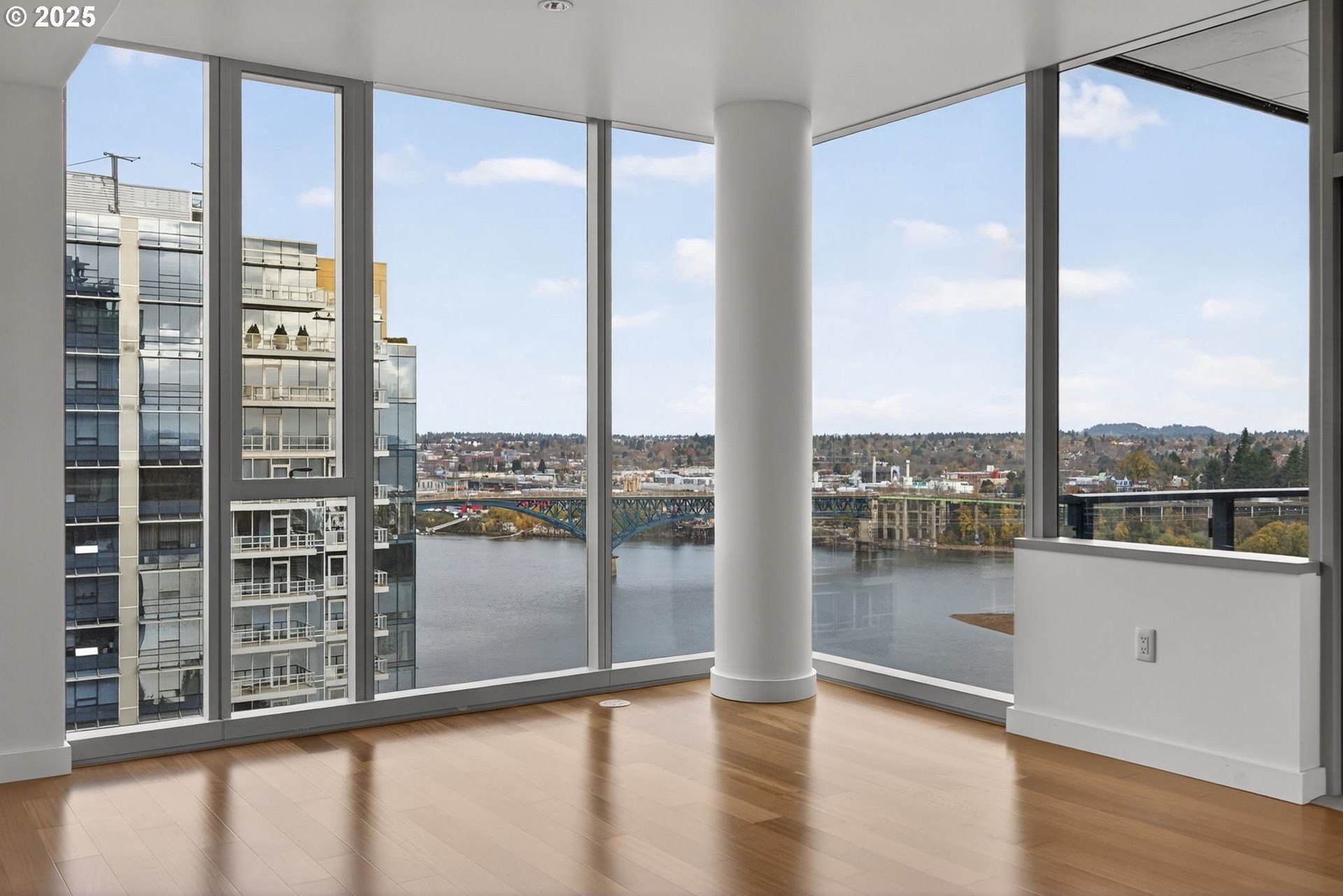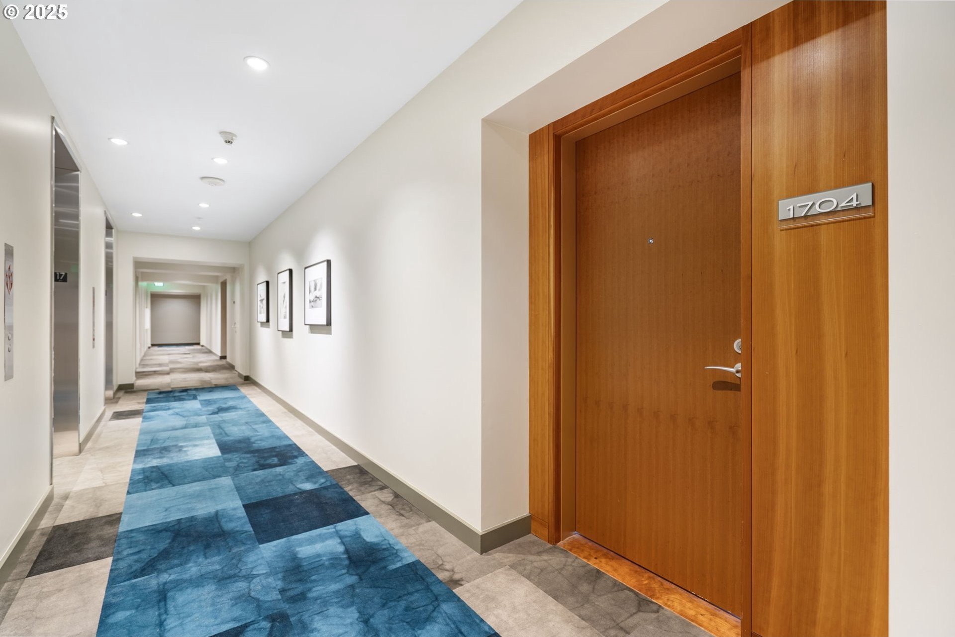 Experience luxury living in this beautiful one-bedroom condo on the 17th floor of the coveted Atwater Building. Enjoy stunning panoramic views of Mt. St Helens, the city skyline, and the Willamette River through floor-to-ceiling windows that flood the home with natural light. This spacious residence features 1 bedroom and 1.5 baths, including a serene primary suite with two closets-one a generous walk-in-and an ensuite bathroom complete with a soaking tub and double-sink vanity. The chef's kitchen showcases gas appliances, stainless steel finishes, and a built-in wine fridge, perfect for entertaining. A deeded parking space (P1-102) is included. The Atwater offers exceptional amenities such as 24-hour concierge service, a meeting/party room, and LEED Gold certification for sustainable, energy-efficient living. Stylish, comfortable, and impeccably located; this is city living at its finest.