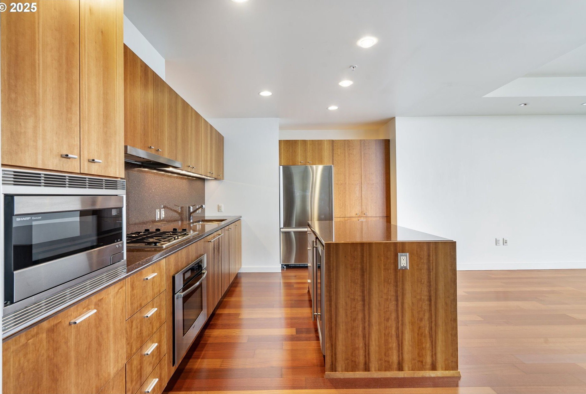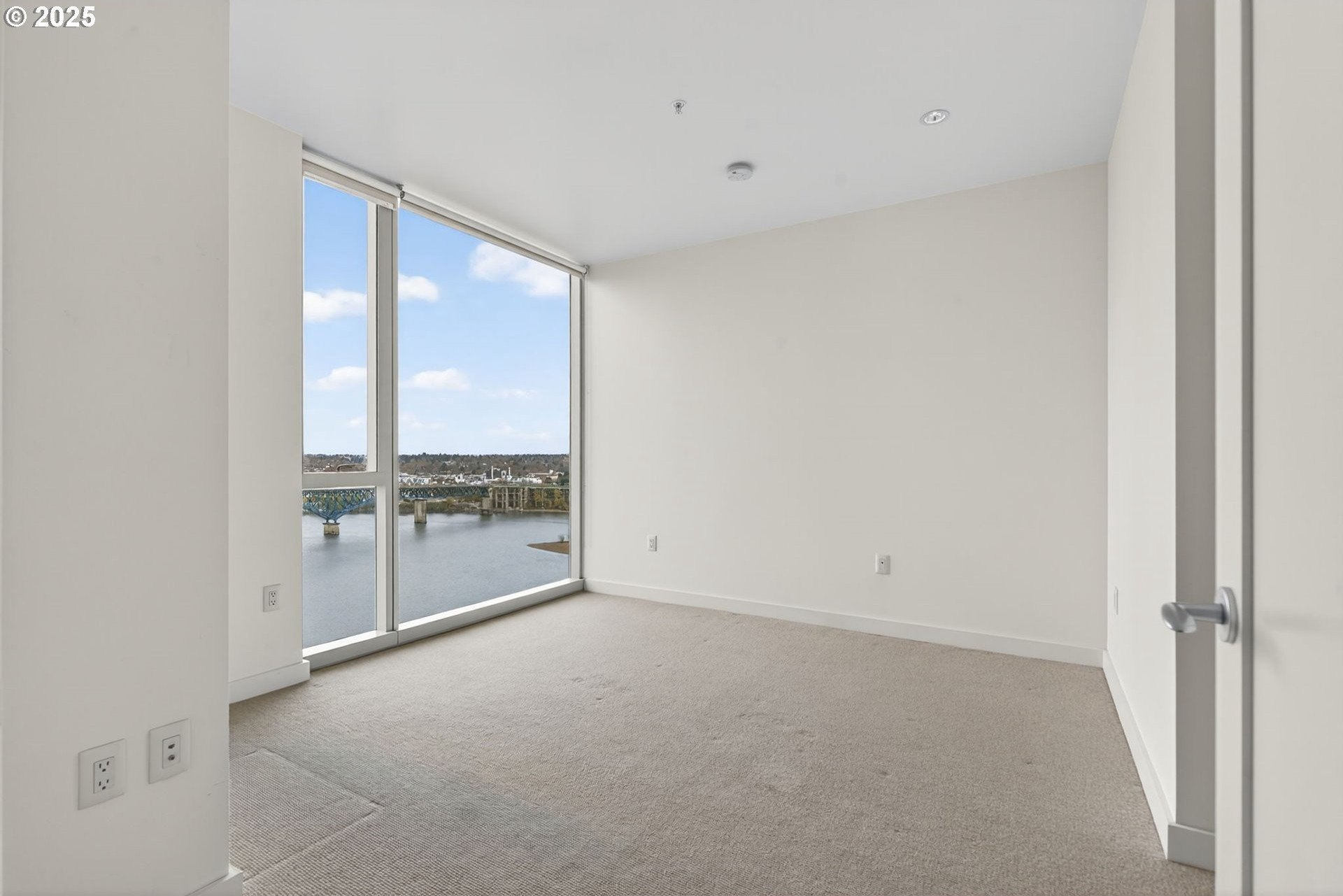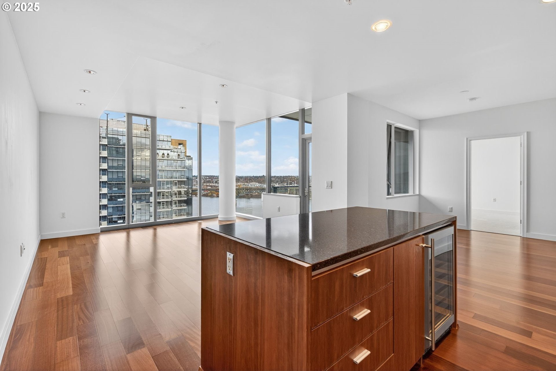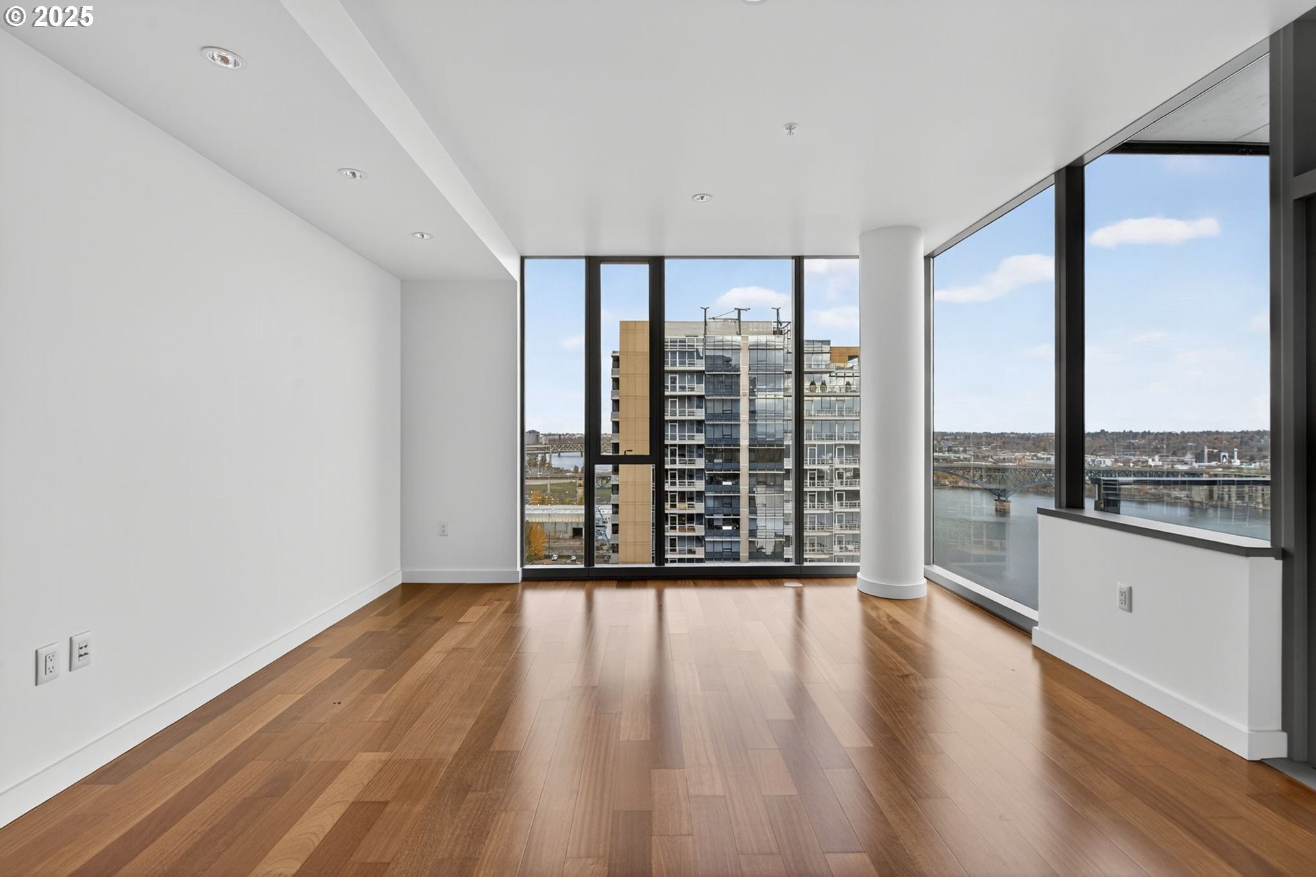 Experience luxury living in this beautiful one-bedroom condo on the 17th floor of the coveted Atwater Building. Enjoy stunning panoramic views of Mt. St Helens, the city skyline, and the Willamette River through floor-to-ceiling windows that flood the home with natural light. This spacious residence features 1 bedroom and 1.5 baths, including a serene primary suite with two closets-one a generous walk-in-and an ensuite bathroom complete with a soaking tub and double-sink vanity. The chef's kitchen showcases gas appliances, stainless steel finishes, and a built-in wine fridge, perfect for entertaining. A deeded parking space (P1-102) is included. The Atwater offers exceptional amenities such as 24-hour concierge service, a meeting/party room, and LEED Gold certification for sustainable, energy-efficient living. Stylish, comfortable, and impeccably located; this is city living at its finest.