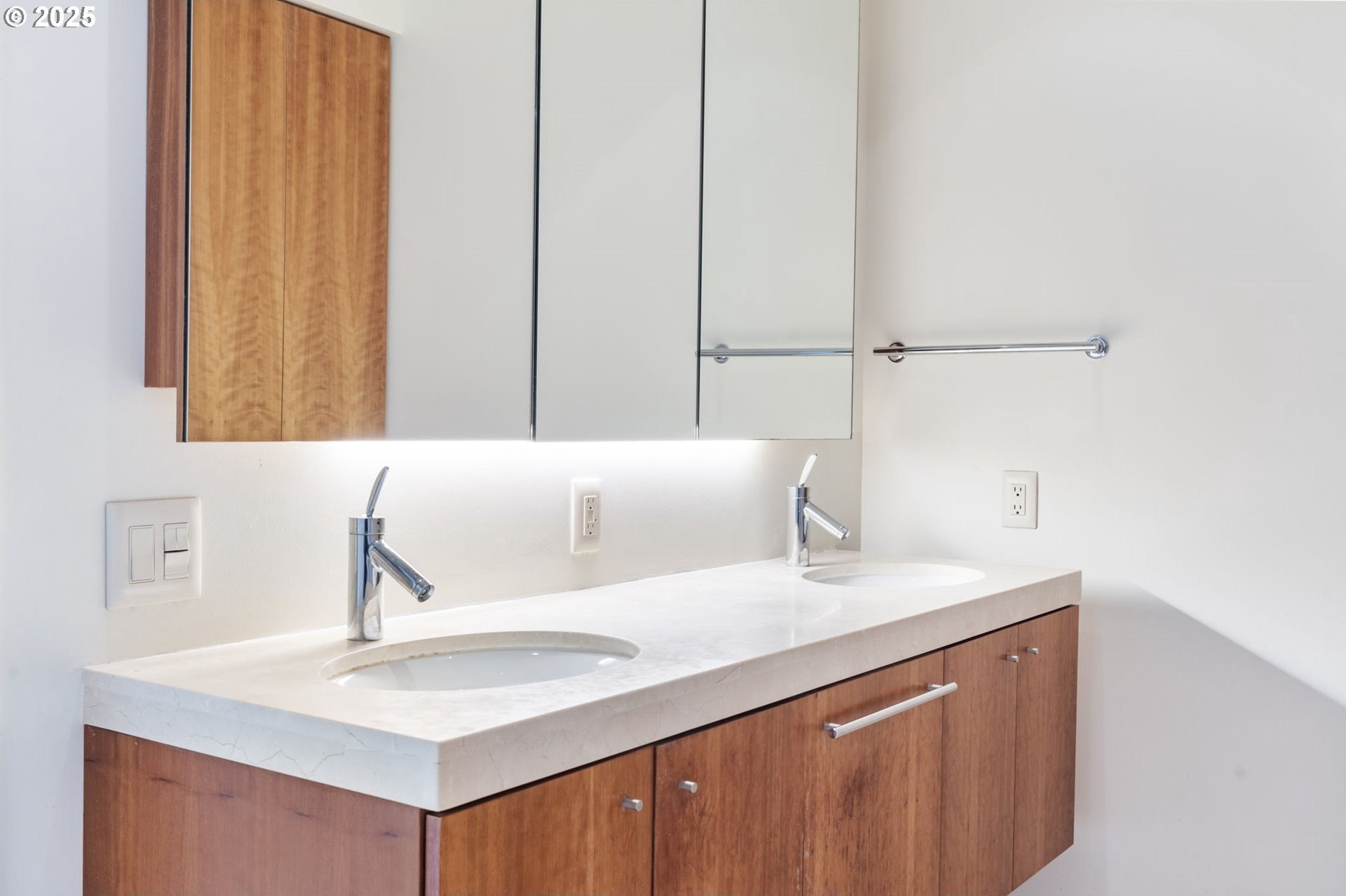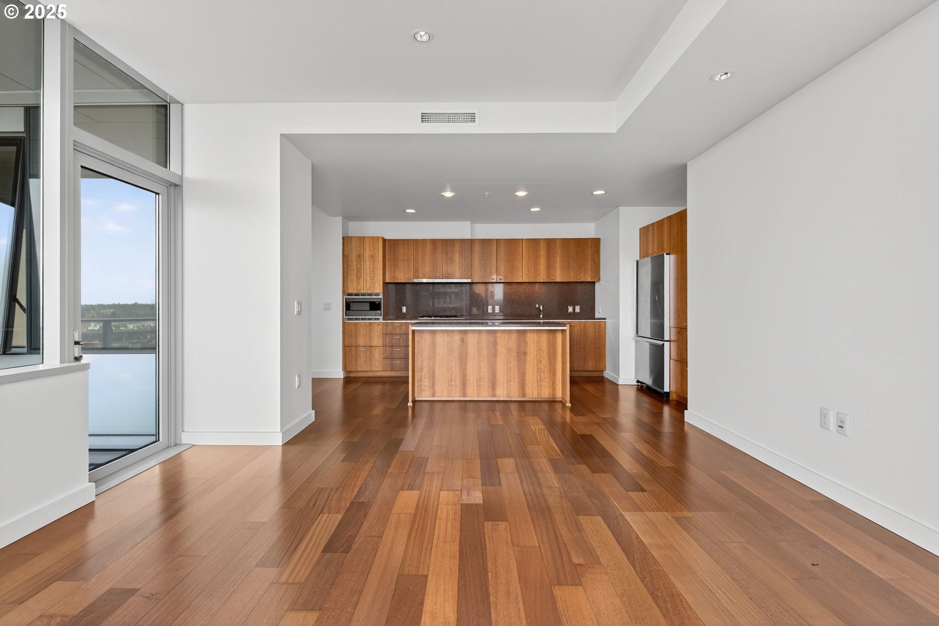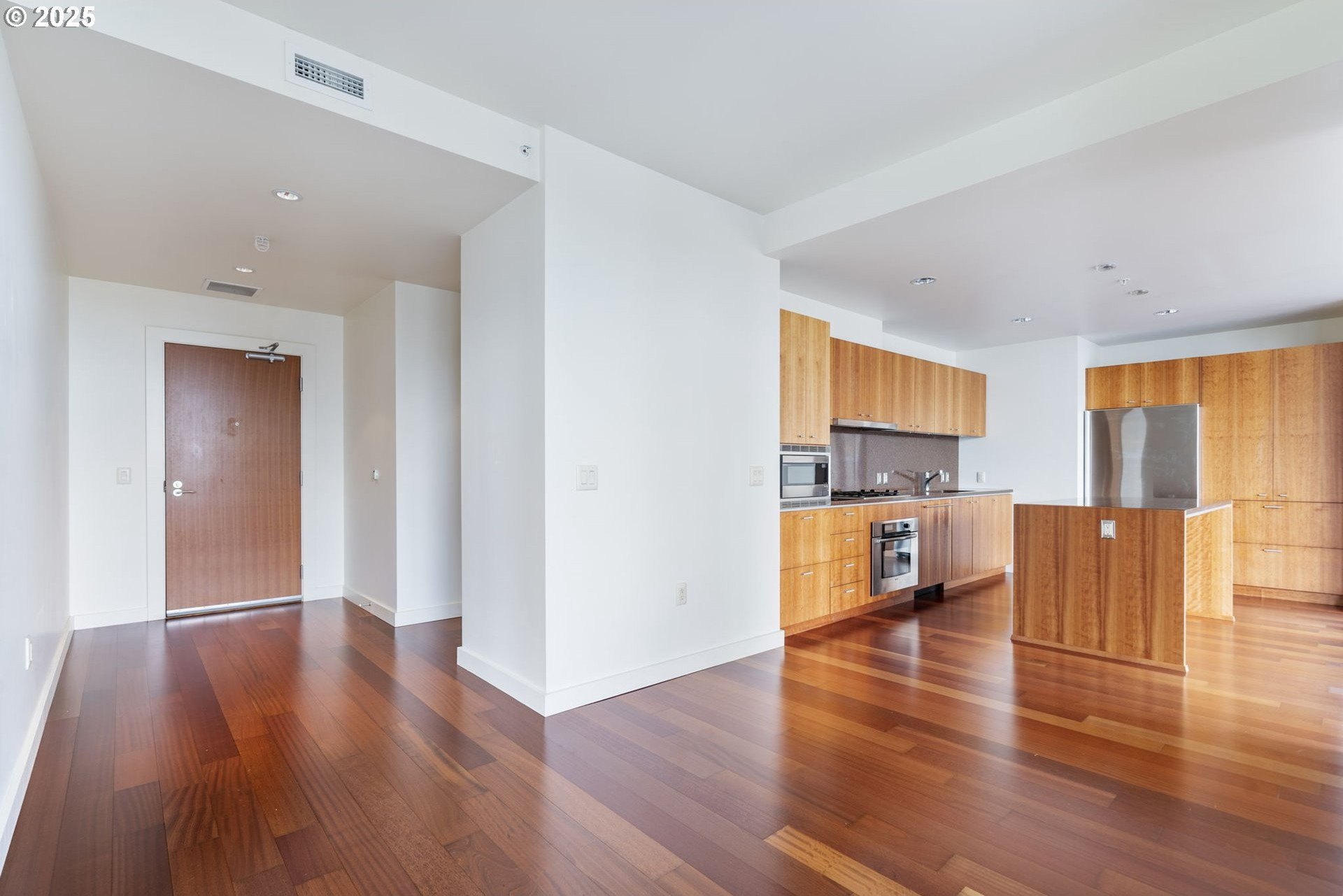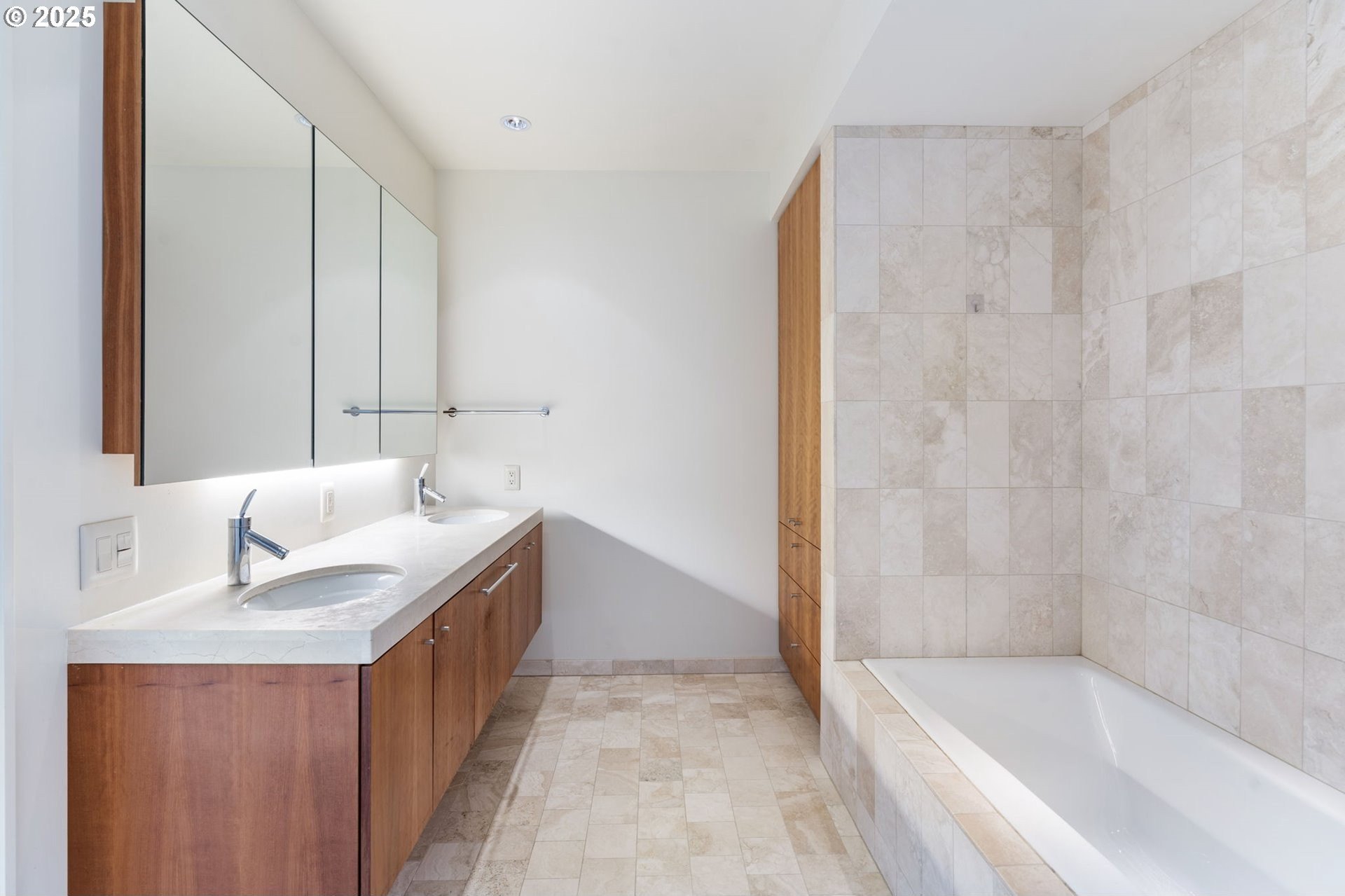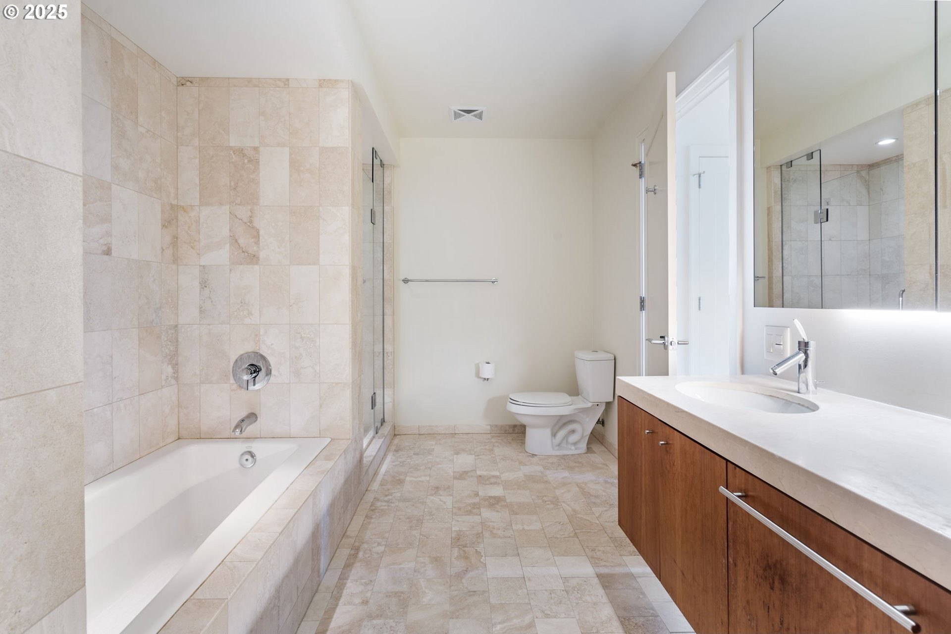 Experience luxury living in this beautiful one-bedroom condo on the 17th floor of the coveted Atwater Building. Enjoy stunning panoramic views of Mt. St Helens, the city skyline, and the Willamette River through floor-to-ceiling windows that flood the home with natural light. This spacious residence features 1 bedroom and 1.5 baths, including a serene primary suite with two closets-one a generous walk-in-and an ensuite bathroom complete with a soaking tub and double-sink vanity. The chef's kitchen showcases gas appliances, stainless steel finishes, and a built-in wine fridge, perfect for entertaining. A deeded parking space (P1-102) is included. The Atwater offers exceptional amenities such as 24-hour concierge service, a meeting/party room, and LEED Gold certification for sustainable, energy-efficient living. Stylish, comfortable, and impeccably located; this is city living at its finest.