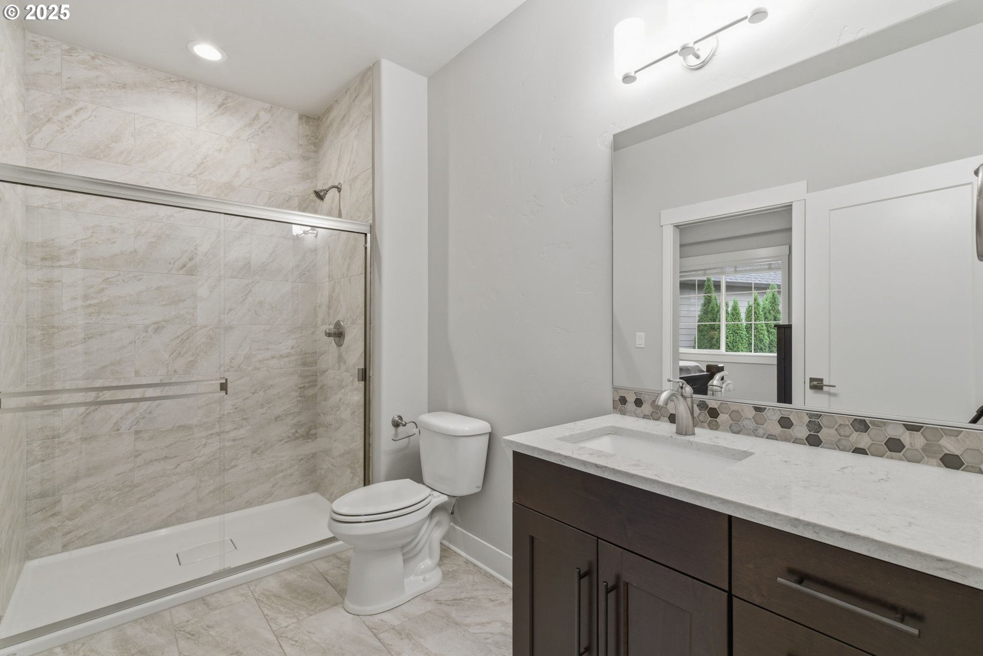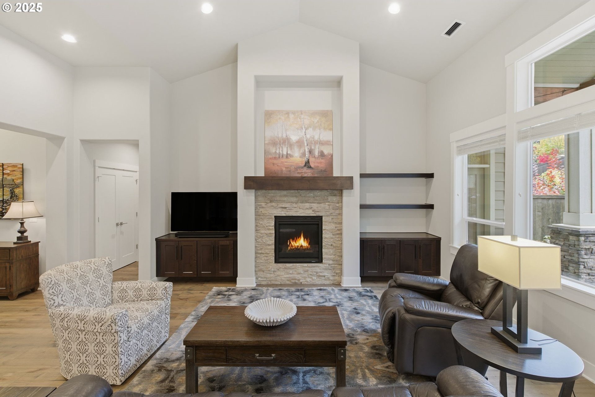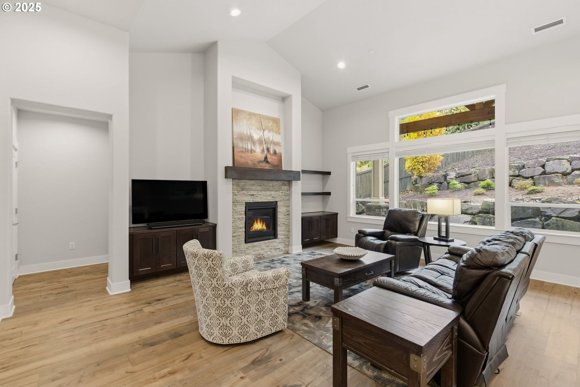 Immaculate & Stunning Main Level Living Home in the Highly Sought-After Camas Neighborhood, Lake Hills - Walking Distance to Lacamas Lake and Camas Meadows Golf Course! Experience luxury, comfort, and exceptional craftsmanship the moment you step inside this gorgeous home with primary on main!! Soaring ceilings and beautiful engineered hardwoods set the tone, leading you into an expansive great room featuring a vaulted ceiling, elegant gas fireplace, and abundant natural light. The chef-inspired kitchen is an entertainer's dream-complete with an oversized island, sleek stainless steel appliances, quartz countertop, double ovens, a walk-in pantry, and ample cabinetry for all your storage needs. Designed for true main-level living, this home offers a dedicated office and an additional bedroom on the main floor, along with a stunning primary suite. The gorgeous primary features high ceilings, private patio access, a spa-like en suite with a beautifully tiled shower and soaking tub, and an impressive walk-in closet-your own personal retreat. Upstairs, enjoy a massive bonus room (or 4th bedroom), plus another bedroom and full bathroom-perfect for guests, hobbies, or multi-generational living. Every bedroom includes its own walk-in closet and ensuite bathroom! Step outside onto the vaulted covered patio, ideal for year-round enjoyment and effortless indoor-outdoor living. This home truly checks every box-impeccable condition, thoughtful layout, and a prime location near lakes, trails, shopping, golf, and award-winning Camas schools. Don't miss your chance to see this stunning property! Ask about an amazing finance option as well!