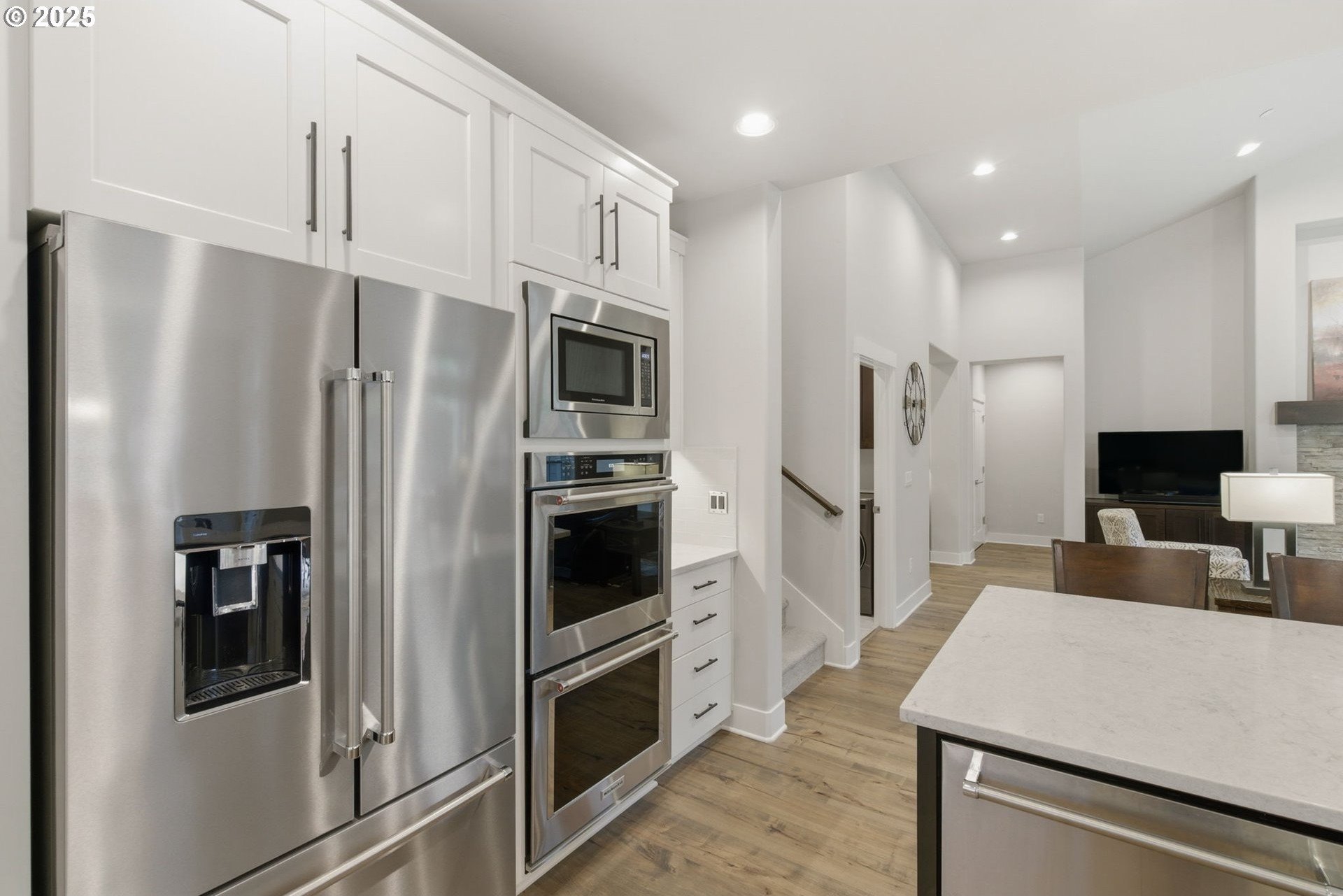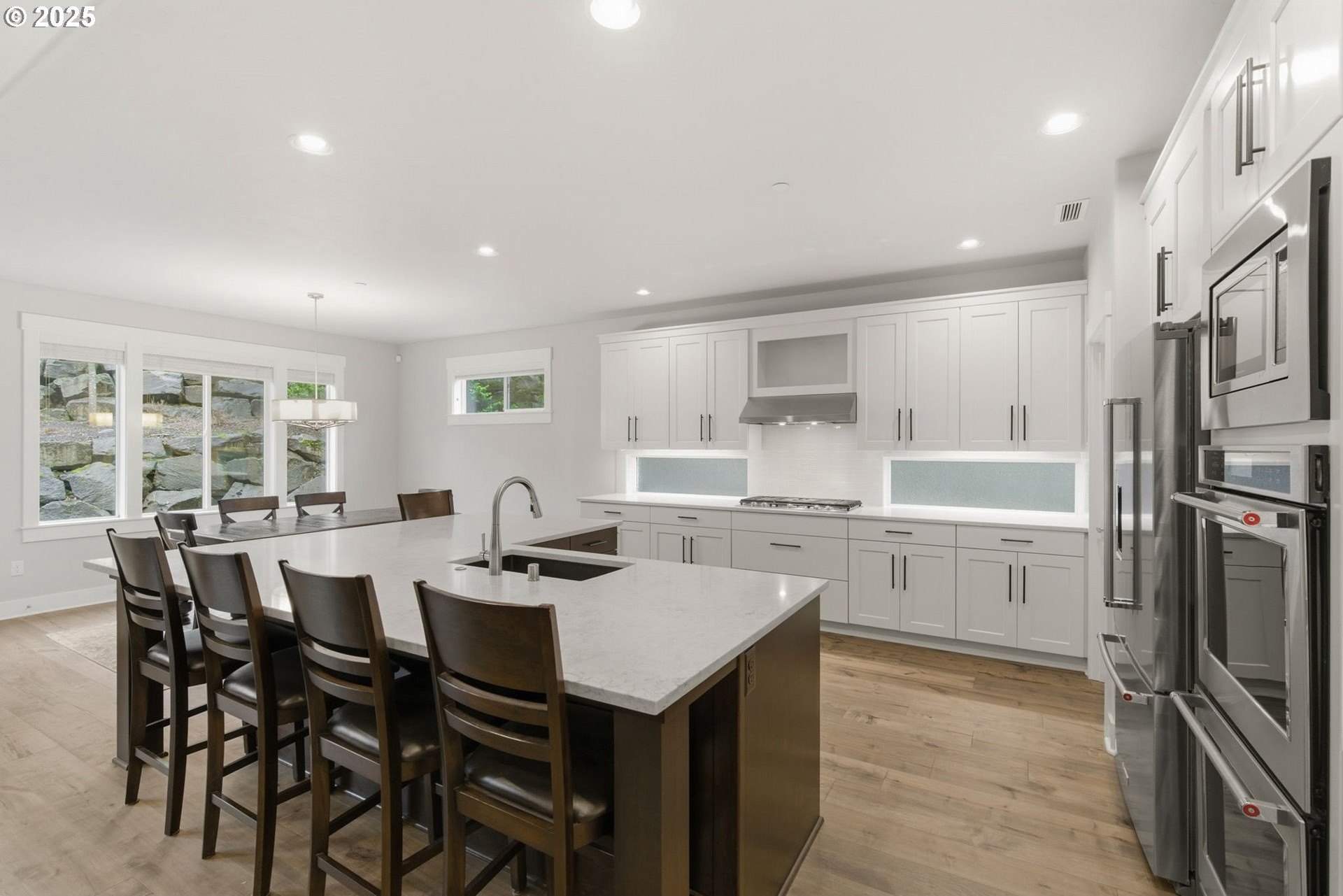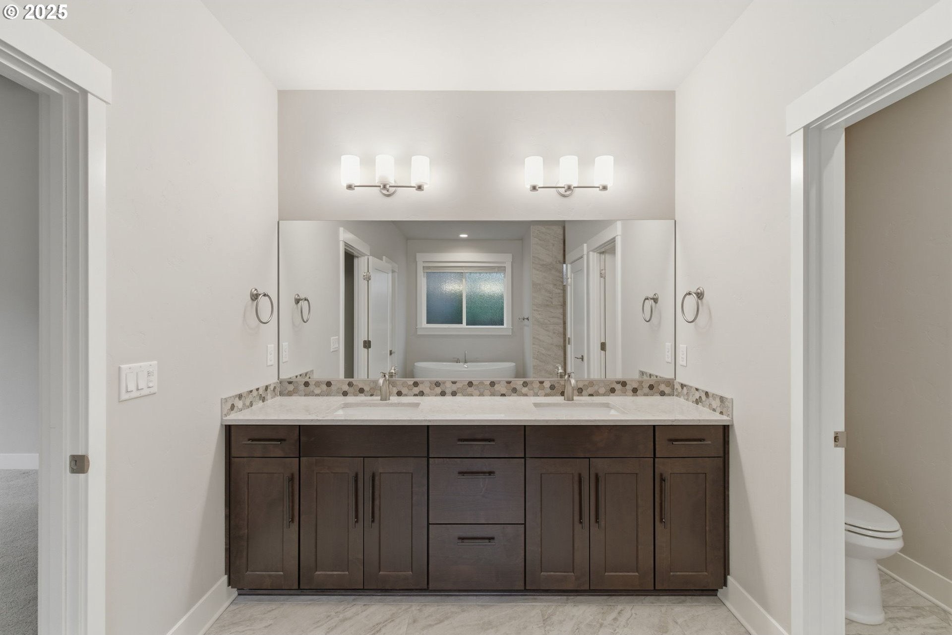 Immaculate & Stunning Main Level Living Home in the Highly Sought-After Camas Neighborhood, Lake Hills - Walking Distance to Lacamas Lake and Camas Meadows Golf Course! Experience luxury, comfort, and exceptional craftsmanship the moment you step inside this gorgeous home with primary on main!! Soaring ceilings and beautiful engineered hardwoods set the tone, leading you into an expansive great room featuring a vaulted ceiling, elegant gas fireplace, and abundant natural light. The chef-inspired kitchen is an entertainer's dream-complete with an oversized island, sleek stainless steel appliances, quartz countertop, double ovens, a walk-in pantry, and ample cabinetry for all your storage needs. Designed for true main-level living, this home offers a dedicated office and an additional bedroom on the main floor, along with a stunning primary suite. The gorgeous primary features high ceilings, private patio access, a spa-like en suite with a beautifully tiled shower and soaking tub, and an impressive walk-in closet-your own personal retreat. Upstairs, enjoy a massive bonus room (or 4th bedroom), plus another bedroom and full bathroom-perfect for guests, hobbies, or multi-generational living. Every bedroom includes its own walk-in closet and ensuite bathroom! Step outside onto the vaulted covered patio, ideal for year-round enjoyment and effortless indoor-outdoor living. This home truly checks every box-impeccable condition, thoughtful layout, and a prime location near lakes, trails, shopping, golf, and award-winning Camas schools. Don't miss your chance to see this stunning property! Ask about an amazing finance option as well!
