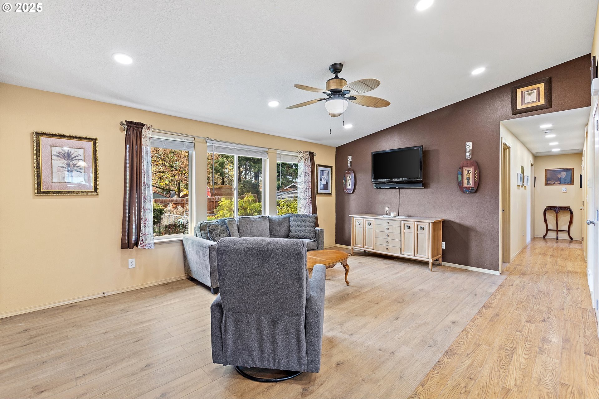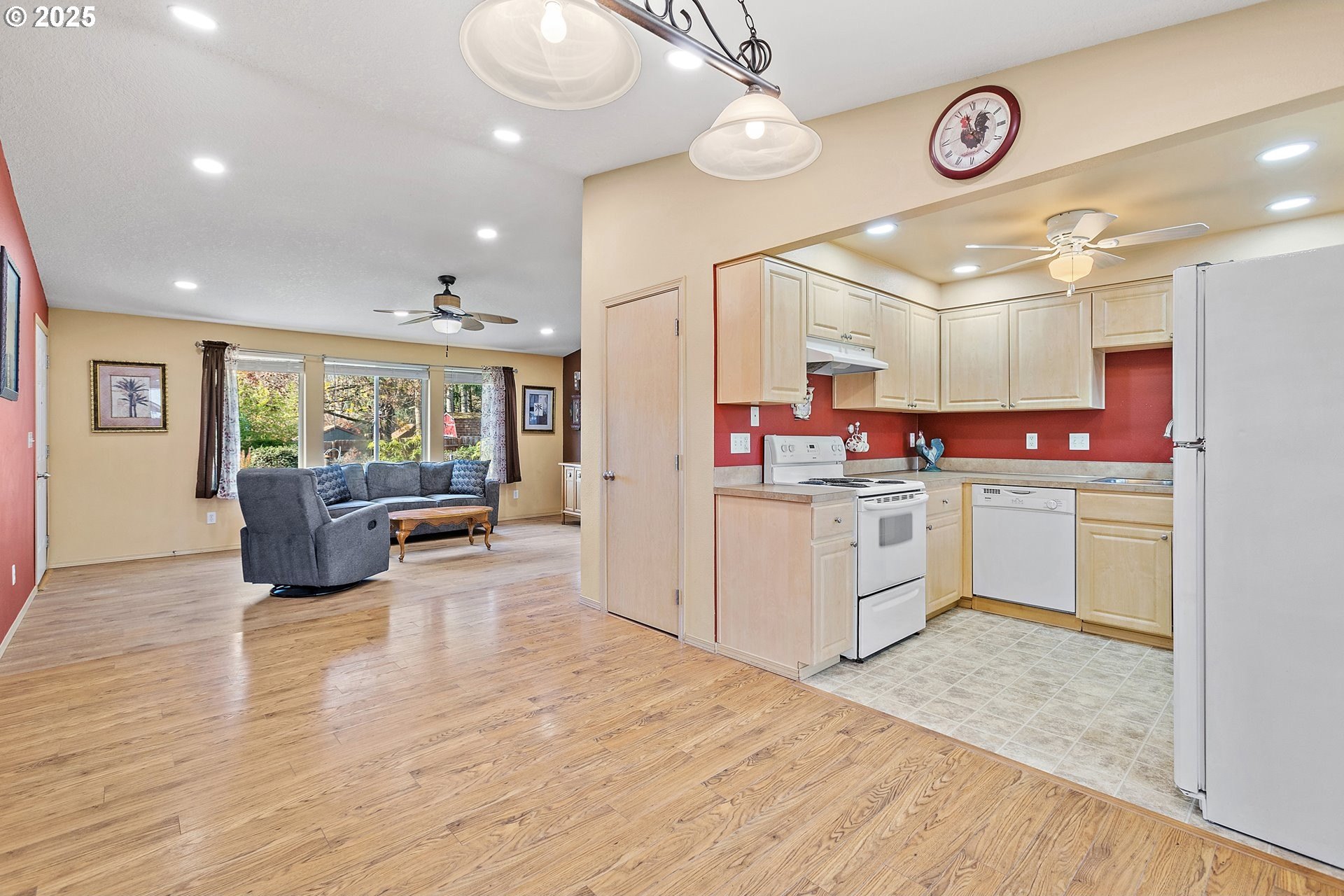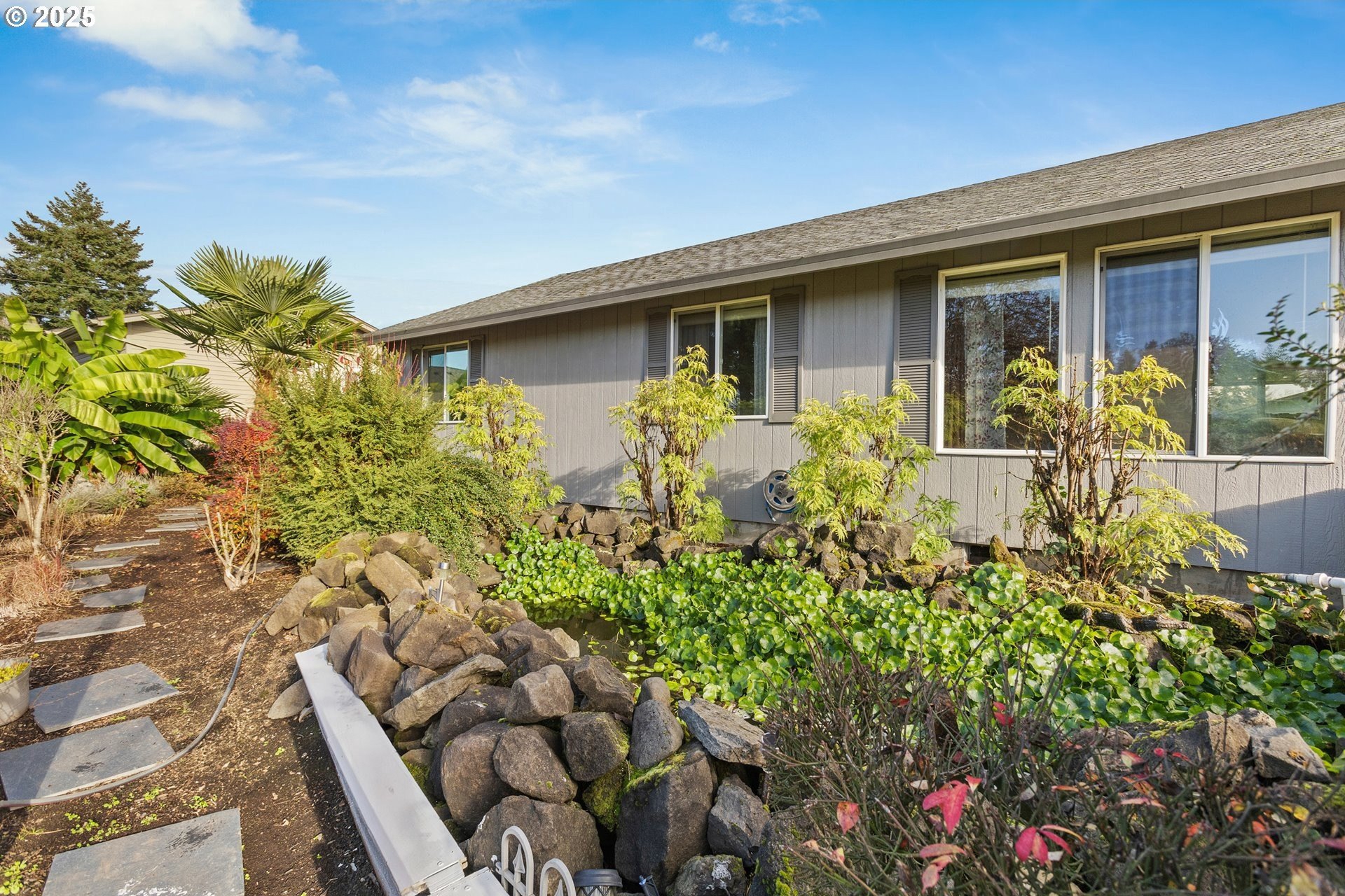 You will find easy living in this clean, single-level, Arbor built home in the heart of charming North Plains. 3 bedrooms, 2 baths, and 1,232sf of open layout with great natural light and vaulted ceilings. The living room and 2 bedrooms overlook a peaceful, inviting yard with a waterfall pond and mature landscaping. This low-maintenance, fully fenced lot also includes a long concrete pathway out sliding doors that leads to a cozy back patio and the large attached garage provides a generous space for your cars and projects! Close to parks, downtown shops, and quick access to Hwy 26 for an easy commute to Hillsboro/Portland. You better catch this gem before its gone!