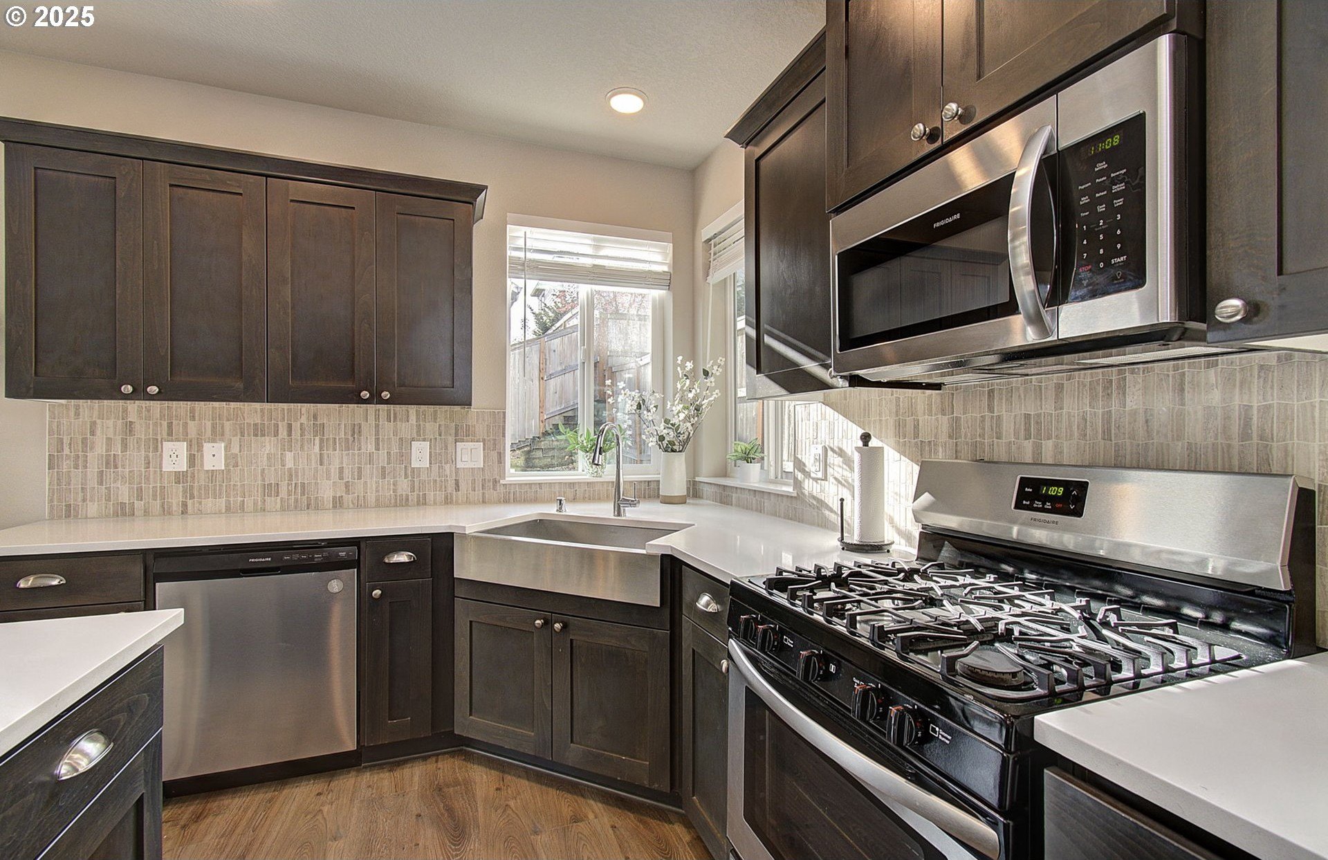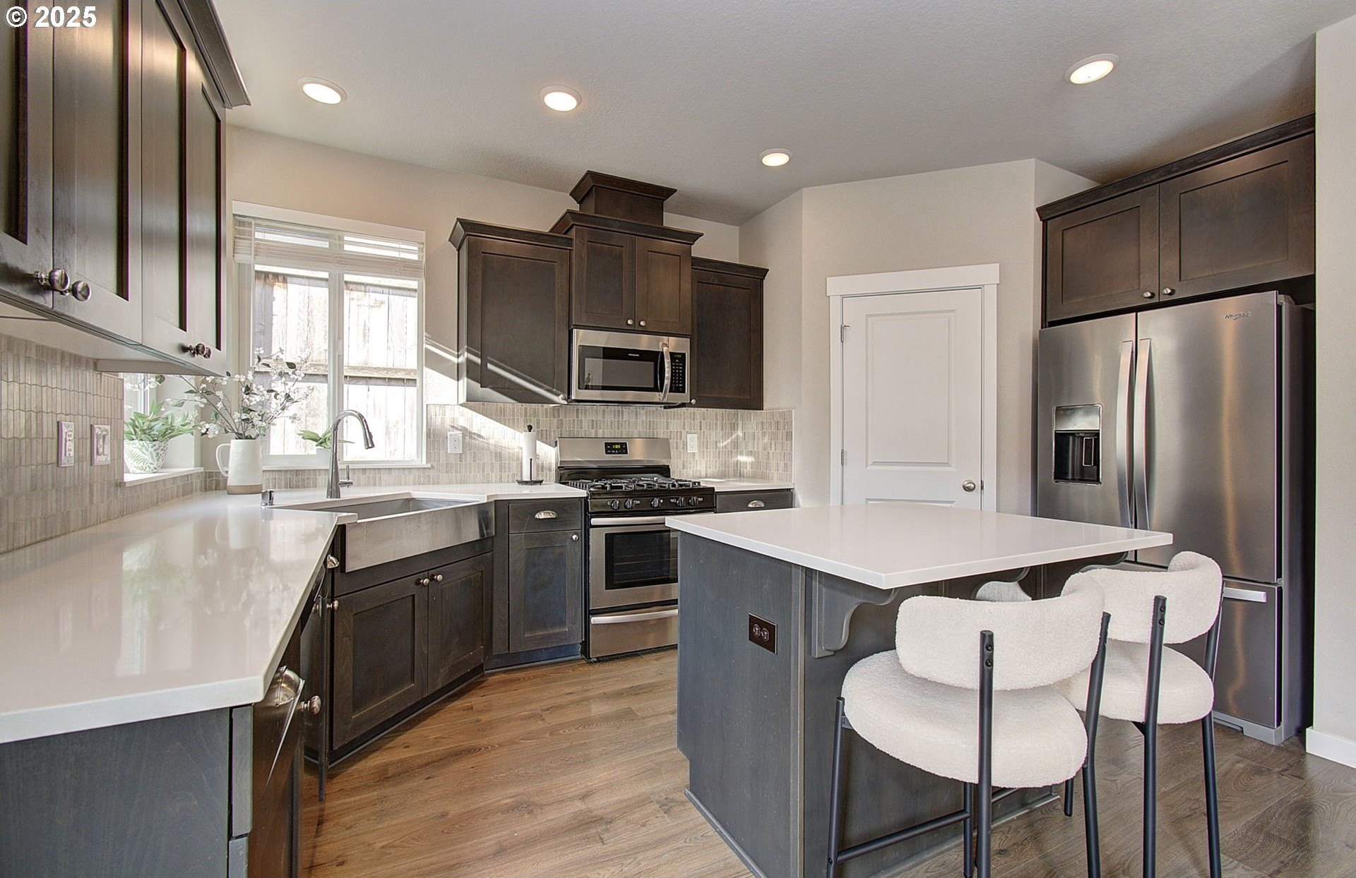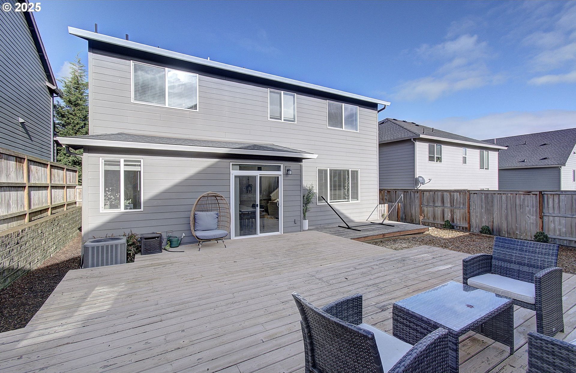 Discover exceptional living in this beautifully maintained home in one of Ridgefield's most desirable neighborhoods. This residence offers a bright, open-concept layout with generous natural light, high ceilings, and quality finishes throughout. The spacious kitchen features quartz countertops, island, stainless steel appliances, and ample storage-perfect for entertaining or everyday convenience. Relax in the inviting living room with a cozy gas fireplace, or step outside to the private backyard, complete with a expansive deck ideal for outdoor dining and year-round enjoyment. The primary suite provides a peaceful retreat with a walk-in closet and an ensuite bath featuring dual sinks and a walk-in shower. Additional 4 bedrooms offer flexibility for guests, home office, or hobbies.Located just minutes from top-rated Ridgefield schools, parks, shopping, and quick freeway access, this home blends comfort, style, and incredible convenience. A must-see property in a rapidly growing community!