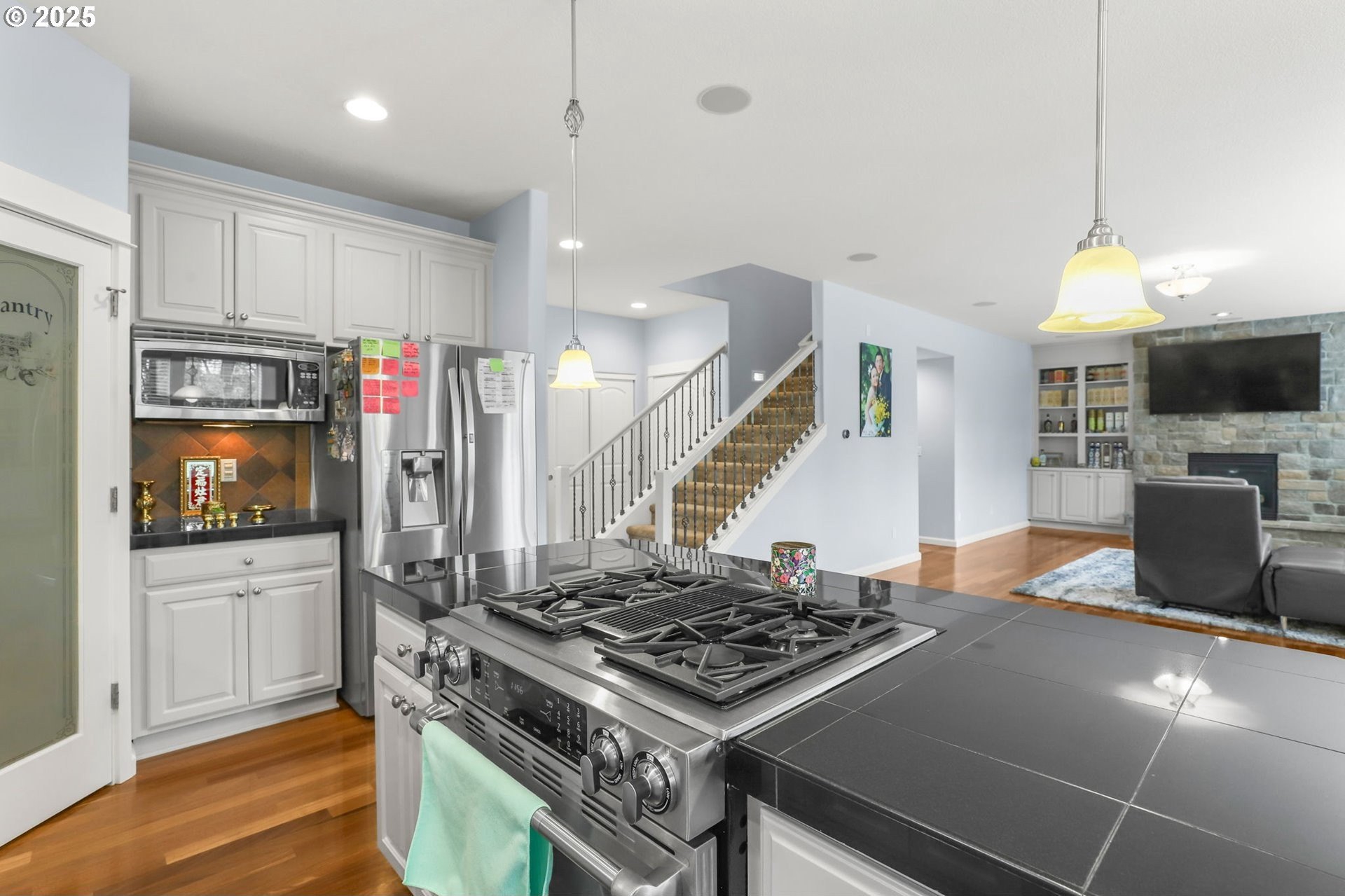 Discover the Perfect Blend of Space, Luxury & LifestyleWelcome to a home that truly stands apart. Built in 2007 and set on a quiet cul-de-sac overlooking the breathtaking Orenco Woods Nature Park, this gorgeous three-level residence offers the rare combination of abundant space, thoughtful design, and an unbeatable location-everything today's buyers are searching for.From the moment you step inside, you'll feel the difference. This home features 5 bedrooms, including one in the fully finished basement, plus a bonus room, den, dedicated office, and a second family room-providing unmatched flexibility for remote work, extended guests, hobbies, or multi-generational living. This is a home that grows with you.The open-concept kitchen and dining area are built for both everyday living and memorable gatherings, featuring hardwood floors, granite countertops, a cooktop island, pantry, and stainless steel appliances. The adjoining great room-with its cozy gas fireplace and built-in surround sound-creates the perfect atmosphere for relaxation and entertainment.The primary suite offers a luxurious private escape, highlighted by its own fireplace and an elegant en suite bath-your personal retreat at the end of each day.Enjoy year-round outdoor living on the covered deck overlooking the fenced backyard, ideal for play, gardening, or peaceful moments with nature. With double-paned windows, a new furnace, and newer plush carpeting, this home blends comfort, efficiency, and beauty throughout.Homes offering this level of space, versatility, and setting are rare-especially in such a sought-after location.This is more than a home; it's an opportunity to elevate your lifestyle. Don't miss your chance-schedule your showing today before it's gone. [Home Energy Score = 3. HES Report