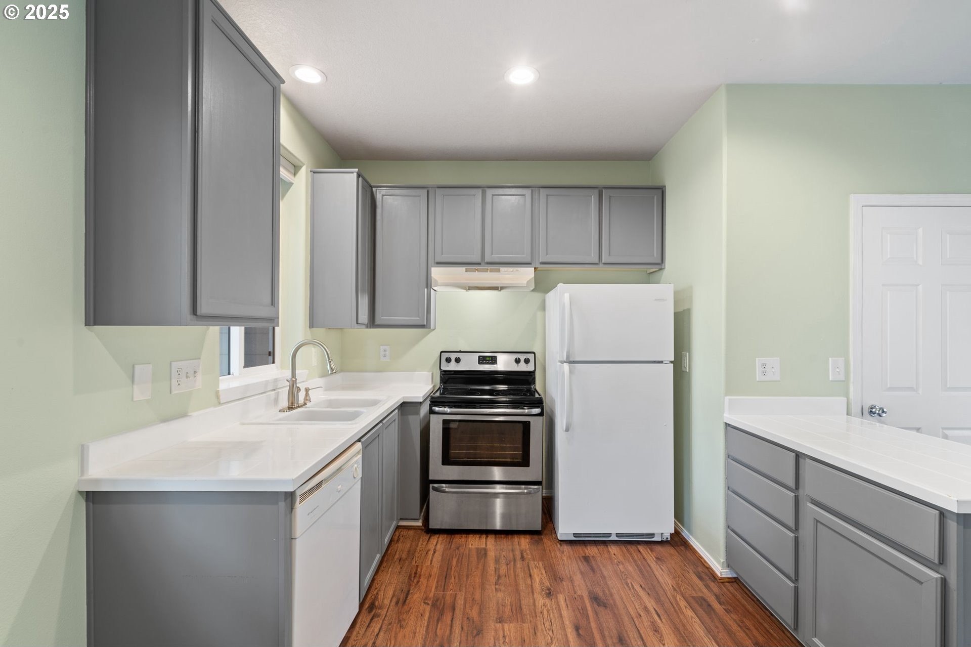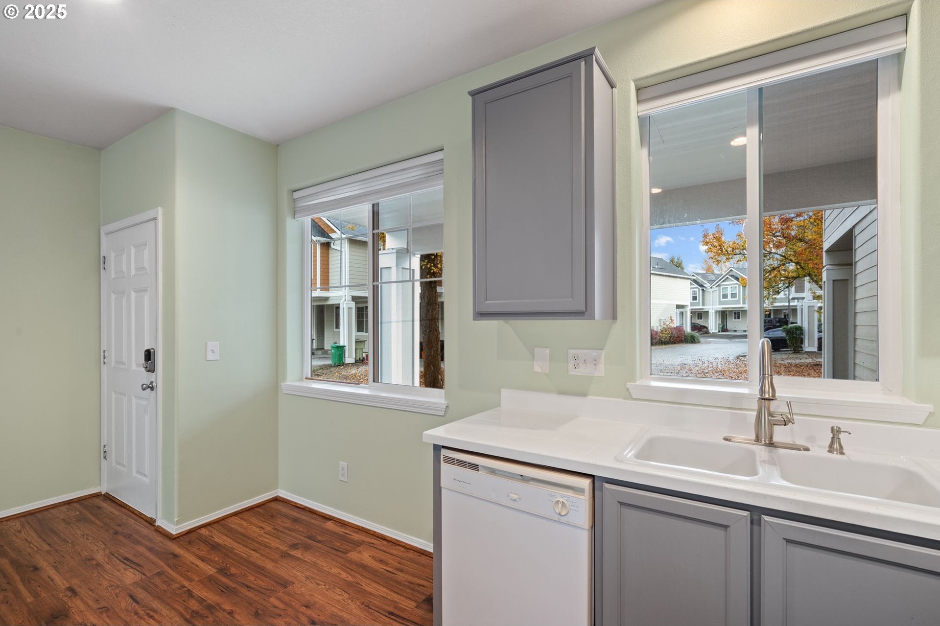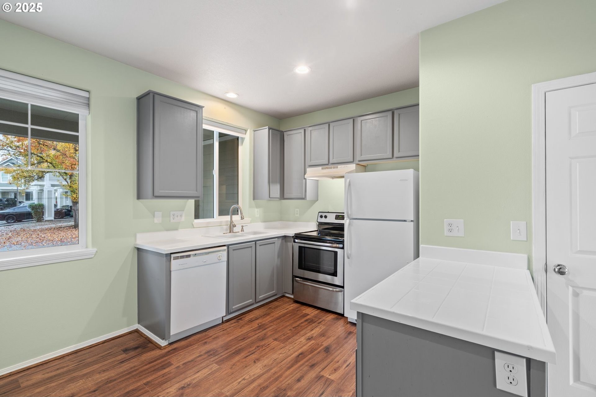 Welcome to the Notting Hill Condos. This end unit townhouse style condominium neighborhood is the perfect place to call home. The open concept main level features luxury vinyl flooring, kitchen with all appliances included (free standing range, free standing refrigerator and built in dishwasher) and ample natural light in the living room. The large slider opens to a fenced backyard with patio that backs to a lovely wooded area (no back neighbors). Upstairs step into the vaulted primary bedroom ensuite with private bathroom and closet. Upstairs also features the large second bedroom with two walk in closets and vaulted ceilings, a hall bathroom and laundry (washer and dryer are included). Near walking trails, shopping, restaurants and other services this prime location condo is move in ready. [Home Energy Score = 9. HES Report