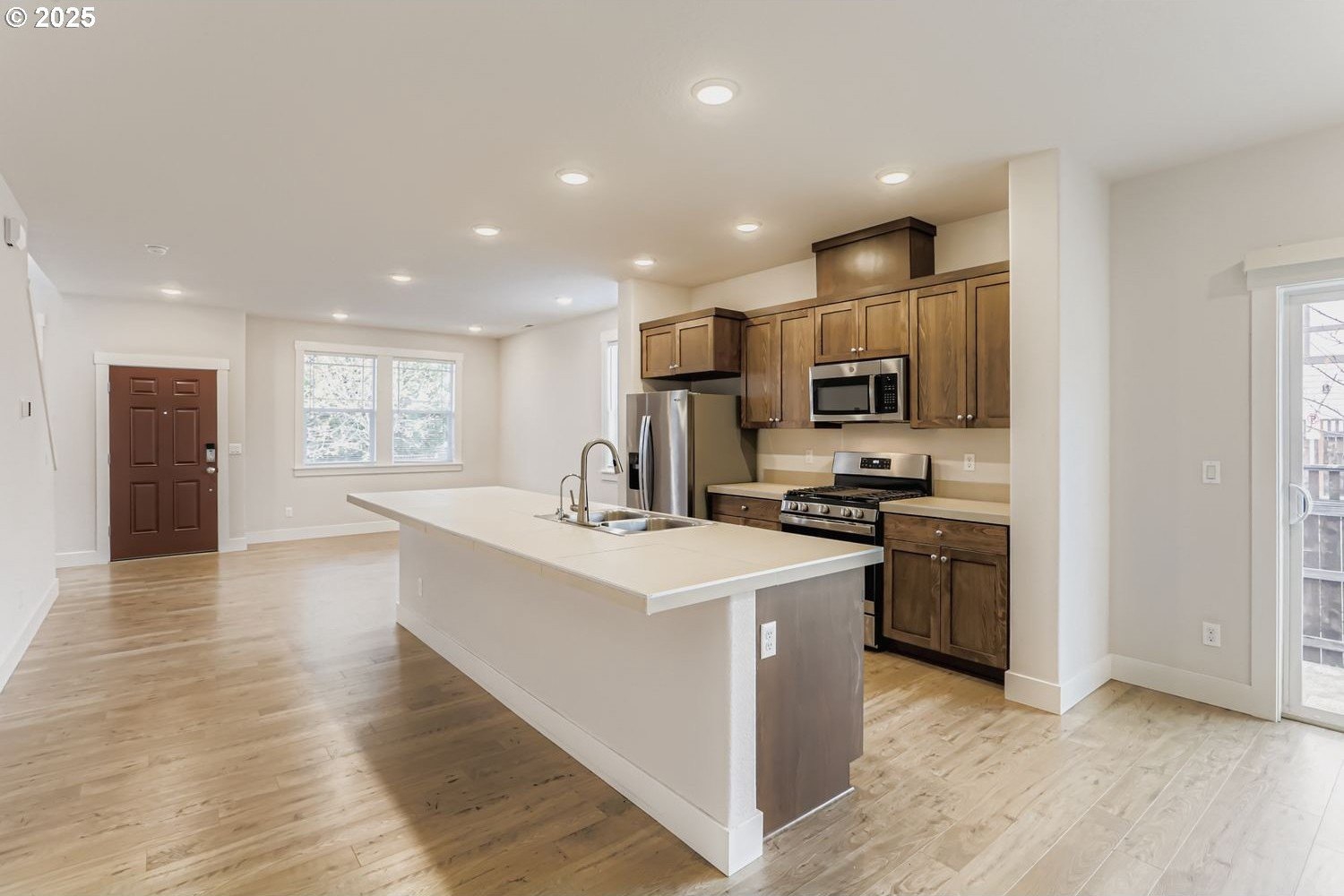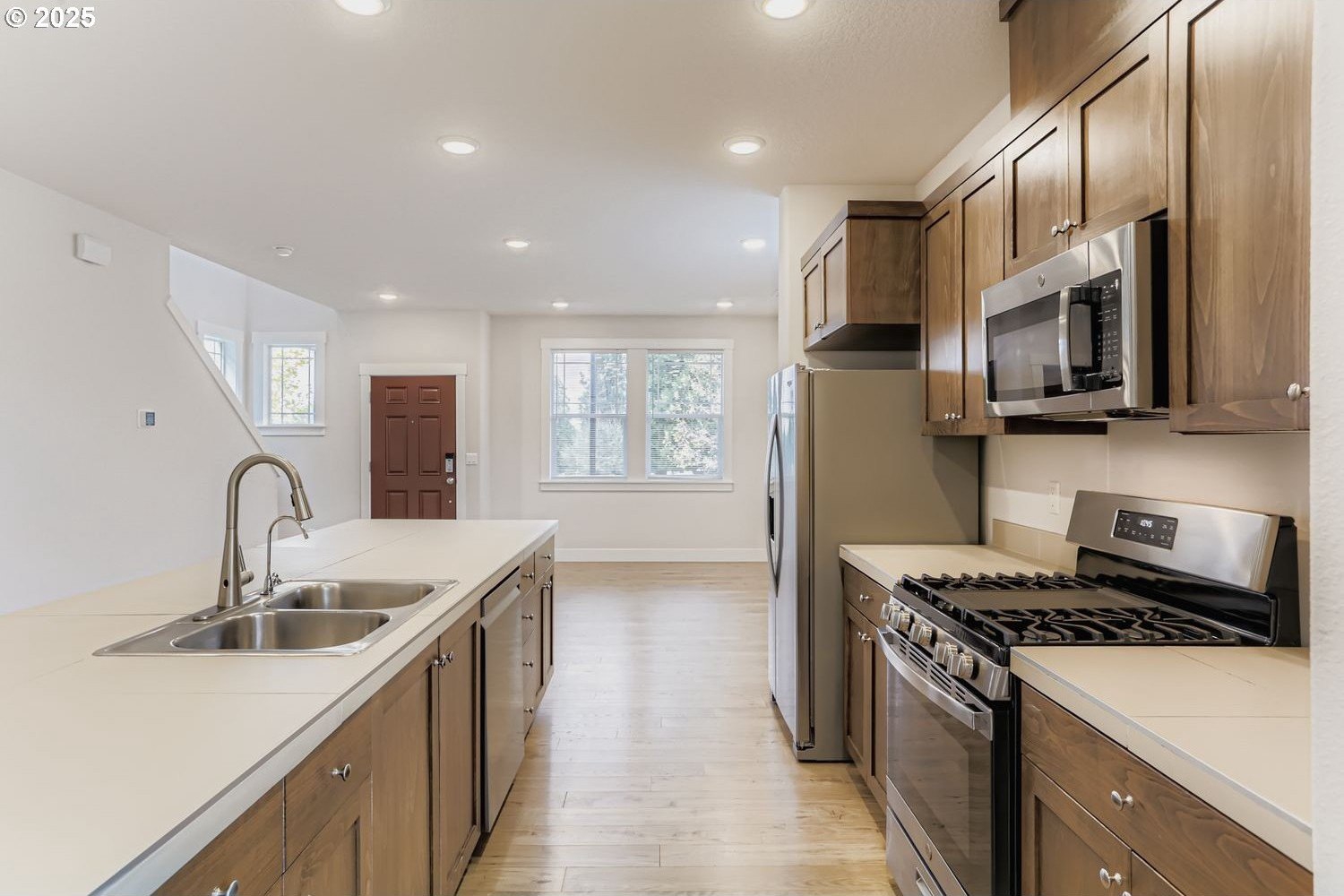 Modern living on a premium corner lot in the desirable Bethany neighborhood! The timeless architecture and covered front porch welcome you inside where you'll find abundant natural light throughout the home. Mohawk RevWood laminate flooring spans the entire main level for seamless connection between the living room, kitchen, and dining room. The open-concept kitchen features stainless steel appliances, ample cabinet space, gas range and walk-in pantry for the chef at heart, and a huge center island for cooking and gathering. Upstairs, enjoy a flexible loft space - ideal for a home office, tech corner, homework area, or reading nook. The primary suite offers a spacious walk-in closet, walk-in shower, and dual vanity sinks. This thoughtfully designed layout balances style and functionality with an attached 2 car garage for convenience and extra storage. Nestled on a large corner lot, the fenced yard offers a generous amount of space -complete with patio- ideal for outdoor entertaining, pets, and gardening. Located within the sought-after Sato Elementary, Stoller Middle, and Westview High School boundaries. Move-in-ready with all appliances included - don't miss the opportunity to make it yours!