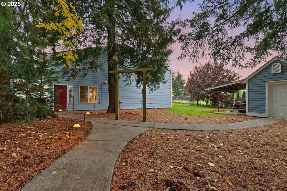 Tucked in as its own retreat, you'll find this beautiful, updated 4 bed/4 bath Farmhouse on 1+ acres, offers a one-of-a-kind opportunity. This property is spectacular for a home + biz situation & has great options for multi-generational living! The main house features a farmhouse kitchen, a huge laundry room with 2 sets of W/D & sink, plus a family room/flex space with separate access to the exterior. Upstairs is the romantic primary suite with private covered balcony, fireplace, jetted tub & walk-in tiled shower. You'll also find two more spacious bedrooms upstairs, both with lots of character & great natural light. Downstairs in the basement you'll find a great bonus room for exercise or movie room, along with storage cabinets, a sink & fridge. The 4th bedroom (non-conforming) can be found downstairs, along with another full bathroom, making it a great space for a guest suite too! Wander outside and enjoy the amazing covered outdoor kitchen gazebo with chandelier, built-in grill, island & sink, along with a gas firepit with benches, toolshed & beautiful established trees leading out to the large, 40'x60' detached shop with 12'x40' studio-style ADU. The studio-style ADU is perfect for multi-generational living or an office space away from the main house. The ADU connects to the fully insulated shop with 2 large bays (16'w x 12'h) and has a huge 14'x40' loft for extra storage along with tons of storage shelves. Don't miss the 15'x 40' RV carport at the end of the shop with water, sewage & electrical hookups. With a circular drive & ample parking by the main house, plus tons of parking over by the shop, this property can easily accommodate a wide variety of purposes & will surprise you with its truly unique setup! Newer roof, siding & gutters, interior & exterior paint, new carpet, new furnace & A/C, and tons more. Simply TOO MUCH TO LIST & a MUST SEE to appreciate the privacy this property offers while being super flexible & full of opportunity!!!