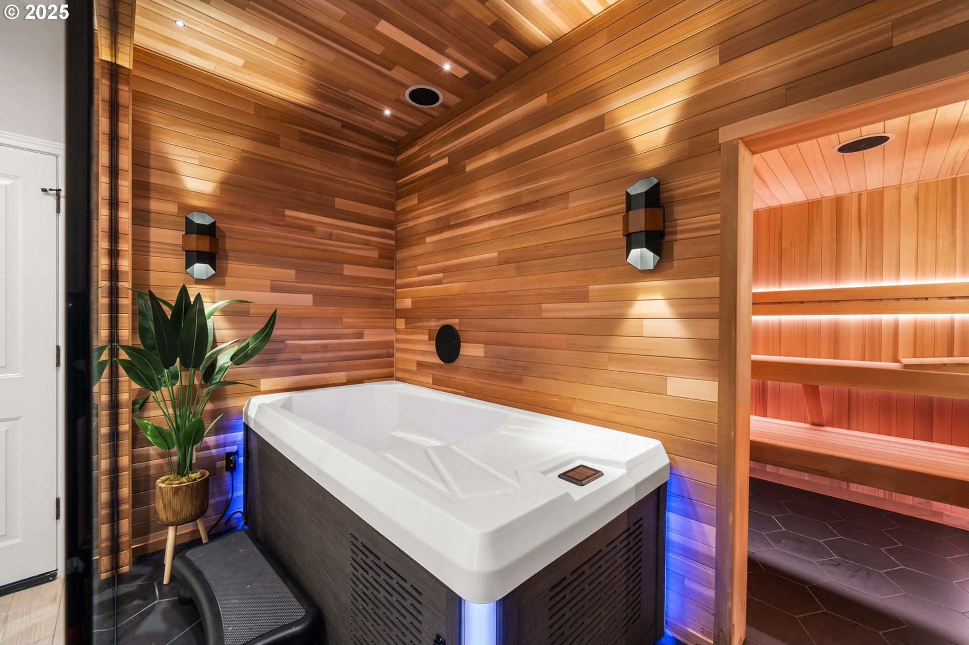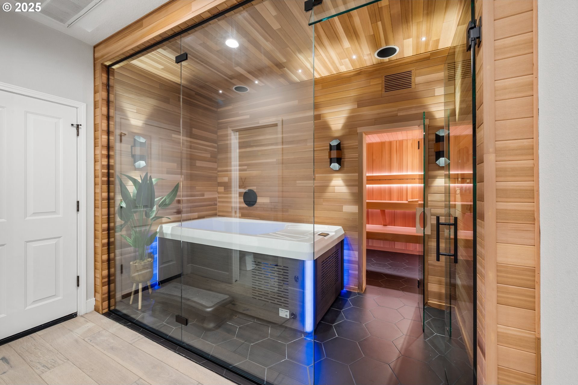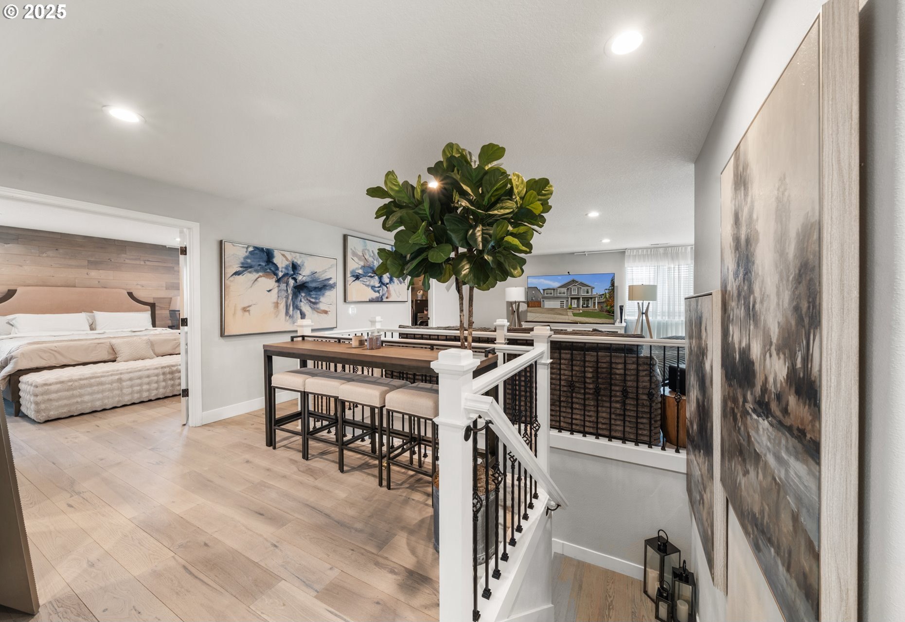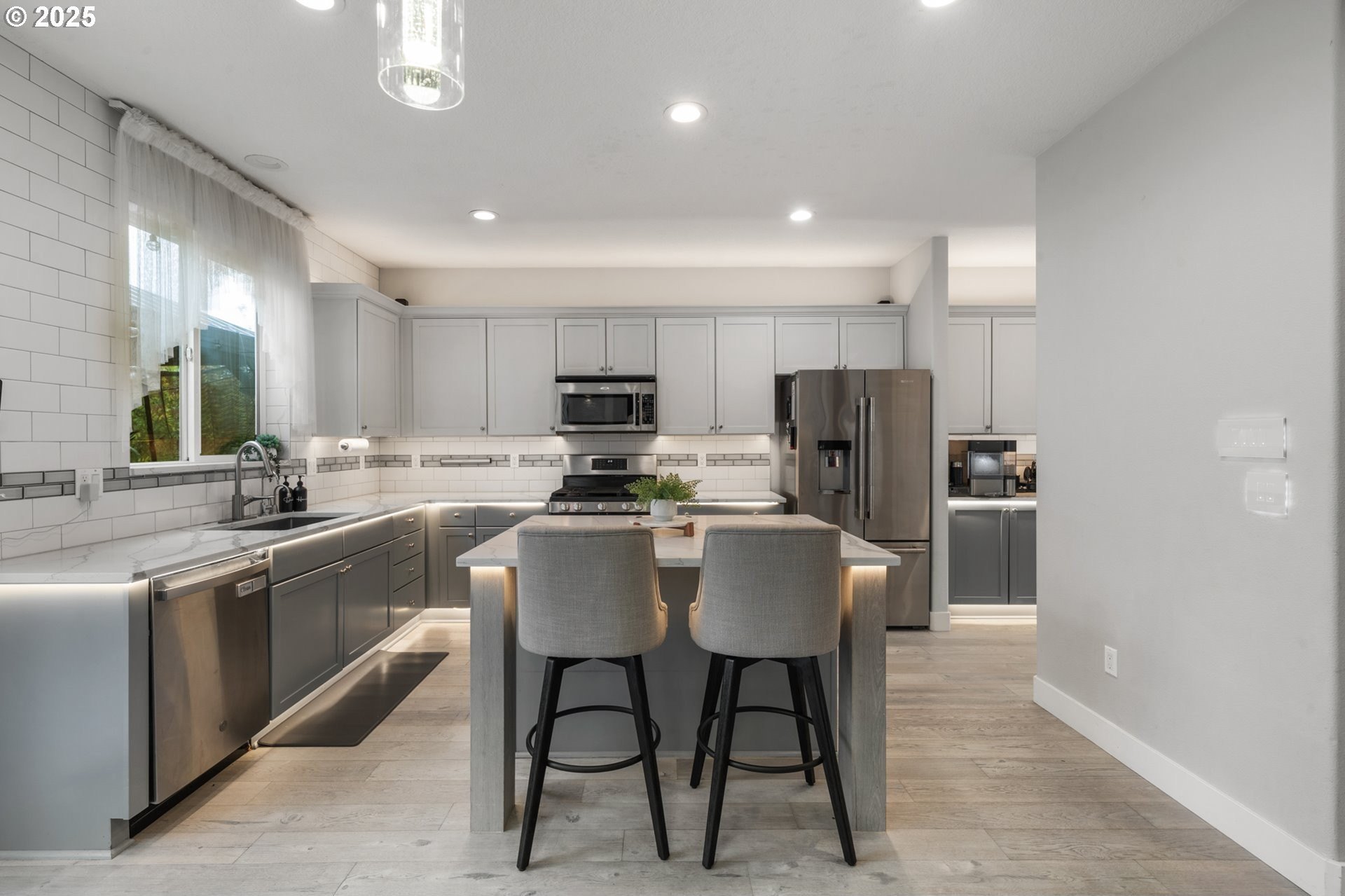 Welcome to this beautifully updated modern home that blends comfort, style, and functionality at every turn. Featuring 4 bedrooms, a loft, and a spacious bonus room, this floorplan offers all the features and amenities you would want. The open layout is perfect for entertaining with high ceilings, large windows, engineered hardwood floors, and smart home lighting that can be controlled from your phone or preferred device. The kitchen elevates everyday living with quartz countertops, a large island, full backsplash, under glow LED lighting, a hot water tap, and a butler's pantry with a bar area ideal for hosting. Upstairs, the primary suite is a true retreat with a big walk in steam shower, jetted tub, and a massive walk in closet with an upgraded organization system. Each bathroom includes smart mirrors with adjustable lighting and anti fog features, towel warmers, and bidet toilets. A new roof installed in 2023 provides peace of mind. The dedicated spa room enhances the home even further with a cold plunge and sauna enclosed by a custom glass door, plus lighting and music through built in speakers controlled by a smart tablet. Outside, enjoy an expansive deck with beautiful lighting, a fully fenced yard, and RV parking perfect for relaxation or entertaining. The home is also equipped with solar panels, enhancing energy efficiency and sustainability. With close proximity to the Columbia River Gorge, Mt. Hood, Oxbow Park, everyday conveniences, and a great school district, this residence offers an exceptional blend of comfort, lifestyle, and location.