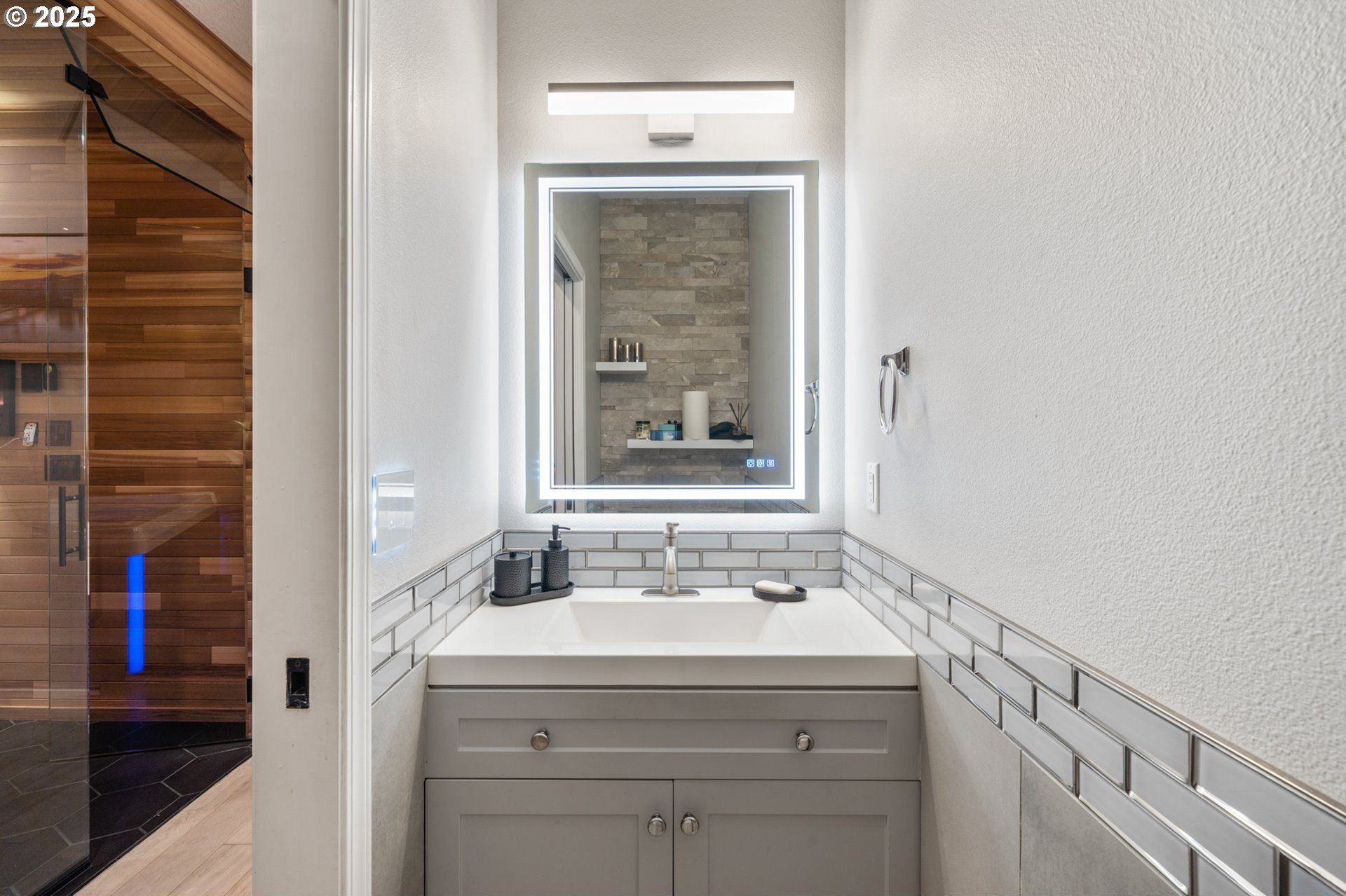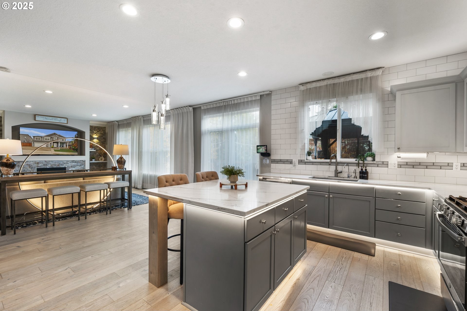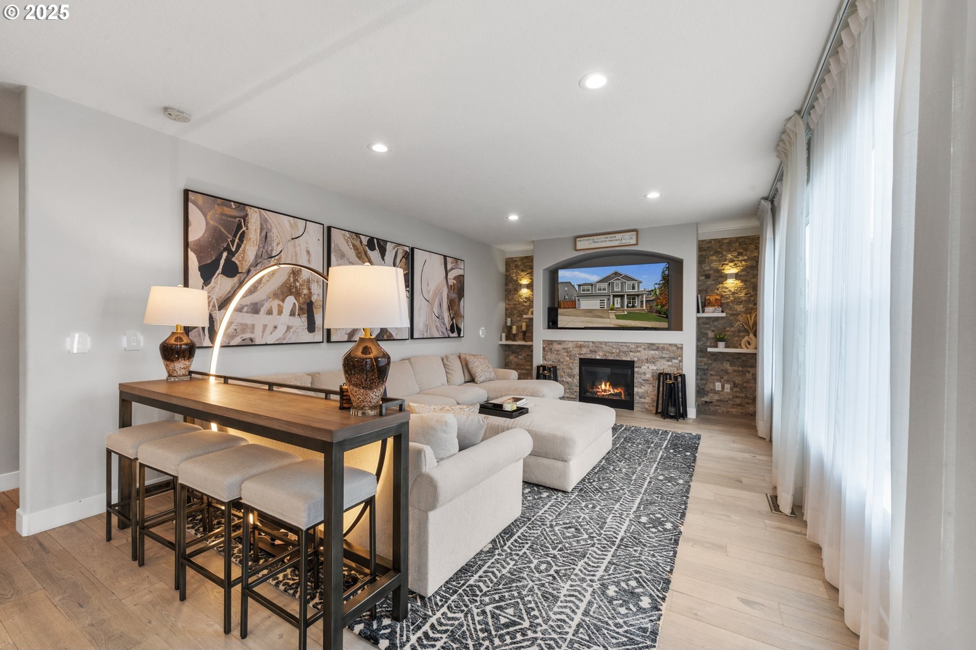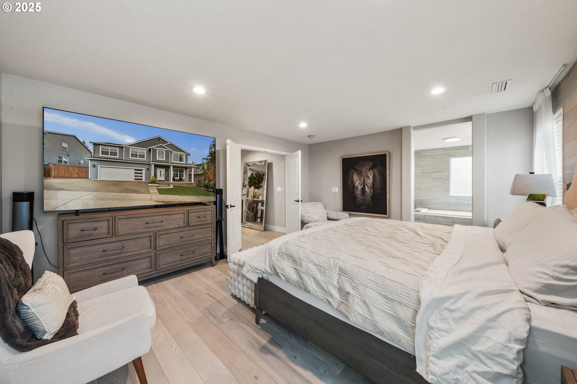 Welcome to this beautifully updated modern home that blends comfort, style, and functionality at every turn. Featuring 4 bedrooms, a loft, and a spacious bonus room, this floorplan offers all the features and amenities you would want. The open layout is perfect for entertaining with high ceilings, large windows, engineered hardwood floors, and smart home lighting that can be controlled from your phone or preferred device. The kitchen elevates everyday living with quartz countertops, a large island, full backsplash, under glow LED lighting, a hot water tap, and a butler's pantry with a bar area ideal for hosting. Upstairs, the primary suite is a true retreat with a big walk in steam shower, jetted tub, and a massive walk in closet with an upgraded organization system. Each bathroom includes smart mirrors with adjustable lighting and anti fog features, towel warmers, and bidet toilets. A new roof installed in 2023 provides peace of mind. The dedicated spa room enhances the home even further with a cold plunge and sauna enclosed by a custom glass door, plus lighting and music through built in speakers controlled by a smart tablet. Outside, enjoy an expansive deck with beautiful lighting, a fully fenced yard, and RV parking perfect for relaxation or entertaining. The home is also equipped with solar panels, enhancing energy efficiency and sustainability. With close proximity to the Columbia River Gorge, Mt. Hood, Oxbow Park, everyday conveniences, and a great school district, this residence offers an exceptional blend of comfort, lifestyle, and location.