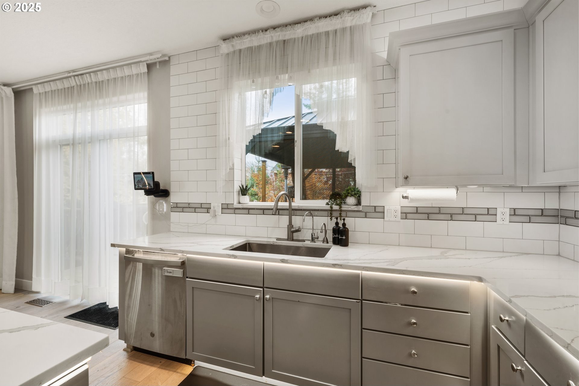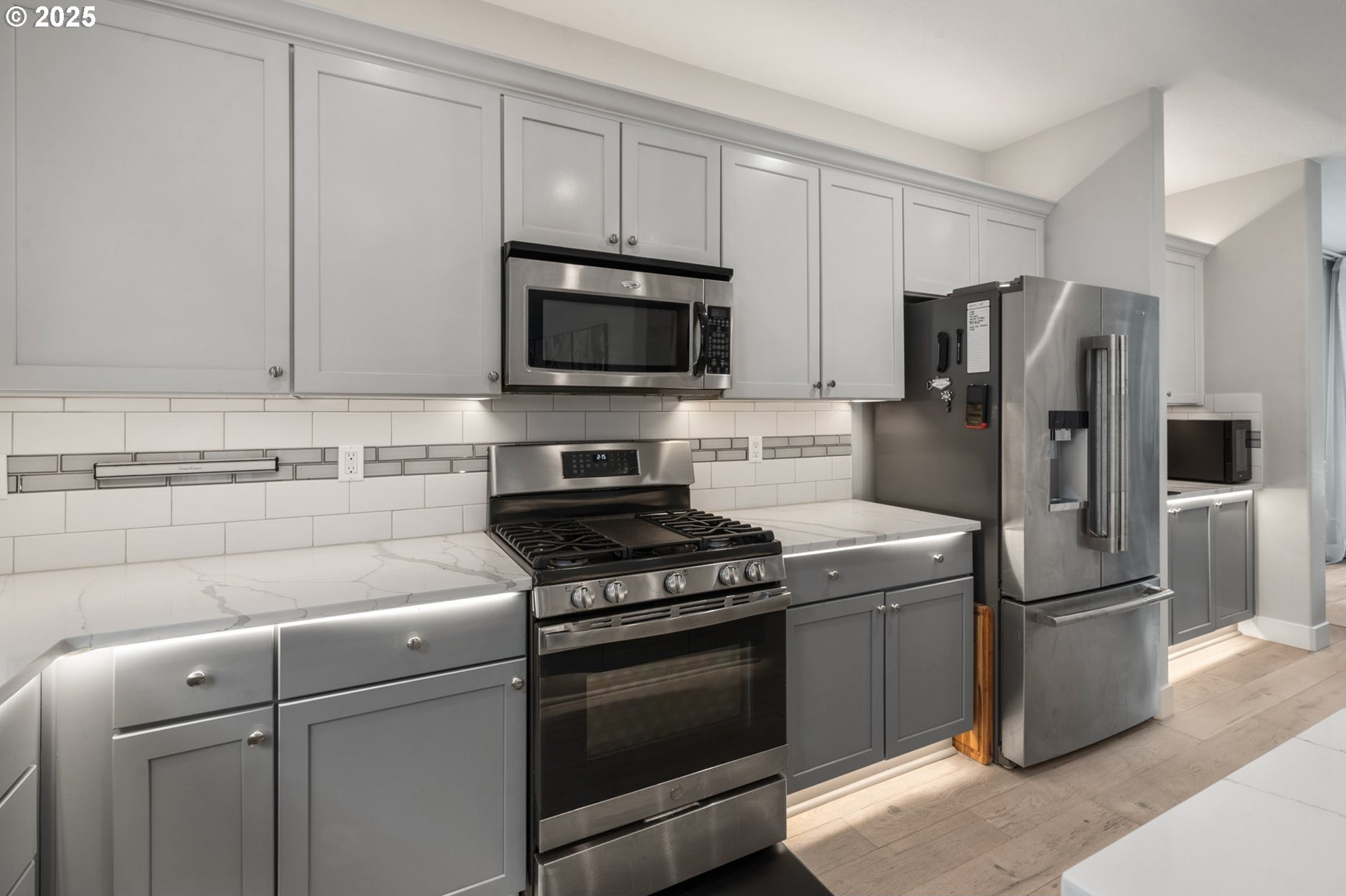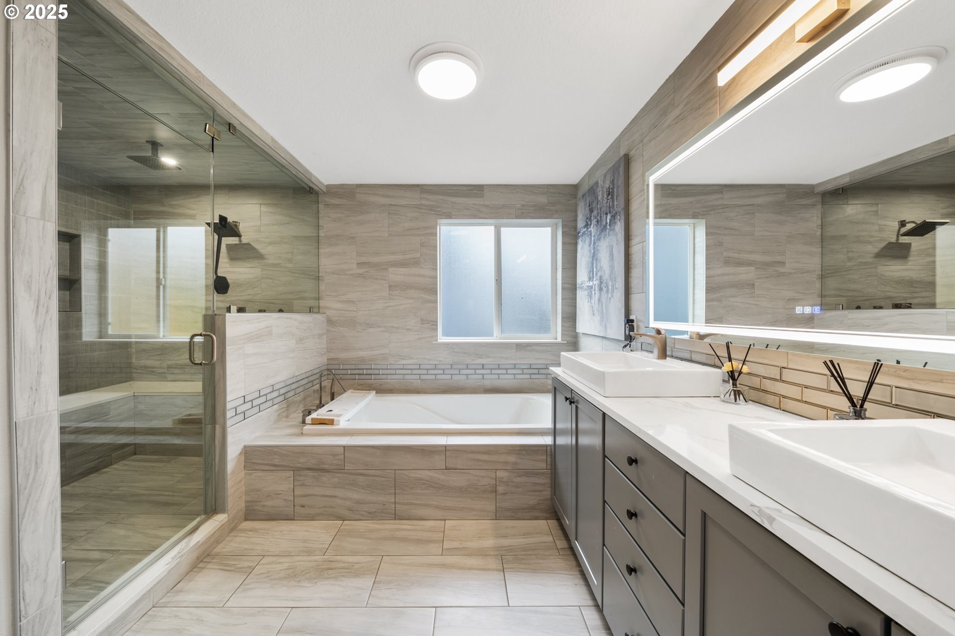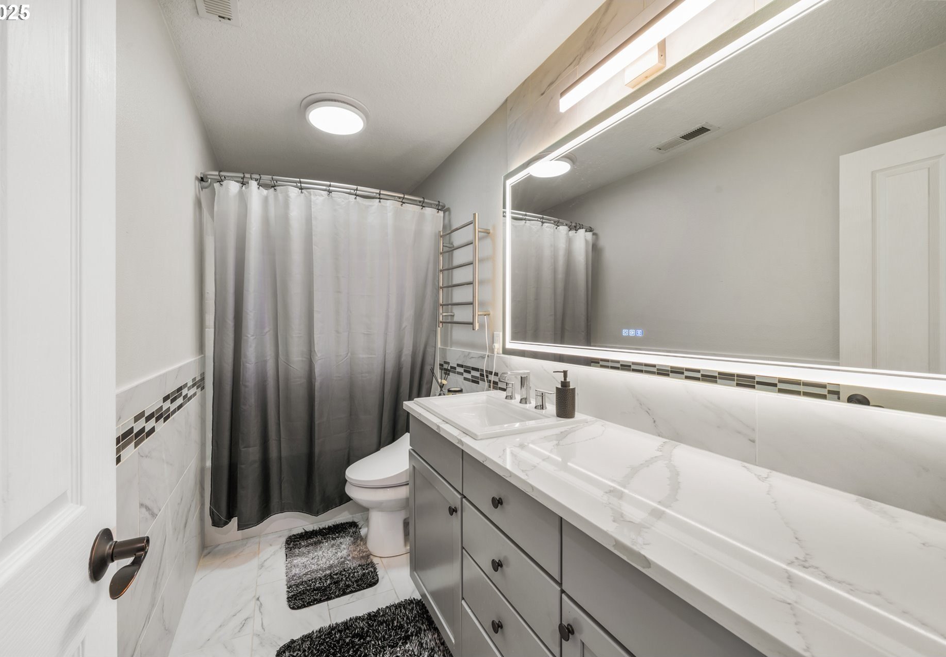 Welcome to this beautifully updated modern home that blends comfort, style, and functionality at every turn. Featuring 4 bedrooms, a loft, and a spacious bonus room, this floorplan offers all the features and amenities you would want. The open layout is perfect for entertaining with high ceilings, large windows, engineered hardwood floors, and smart home lighting that can be controlled from your phone or preferred device. The kitchen elevates everyday living with quartz countertops, a large island, full backsplash, under glow LED lighting, a hot water tap, and a butler's pantry with a bar area ideal for hosting. Upstairs, the primary suite is a true retreat with a big walk in steam shower, jetted tub, and a massive walk in closet with an upgraded organization system. Each bathroom includes smart mirrors with adjustable lighting and anti fog features, towel warmers, and bidet toilets. A new roof installed in 2023 provides peace of mind. The dedicated spa room enhances the home even further with a cold plunge and sauna enclosed by a custom glass door, plus lighting and music through built in speakers controlled by a smart tablet. Outside, enjoy an expansive deck with beautiful lighting, a fully fenced yard, and RV parking perfect for relaxation or entertaining. The home is also equipped with solar panels, enhancing energy efficiency and sustainability. With close proximity to the Columbia River Gorge, Mt. Hood, Oxbow Park, everyday conveniences, and a great school district, this residence offers an exceptional blend of comfort, lifestyle, and location.