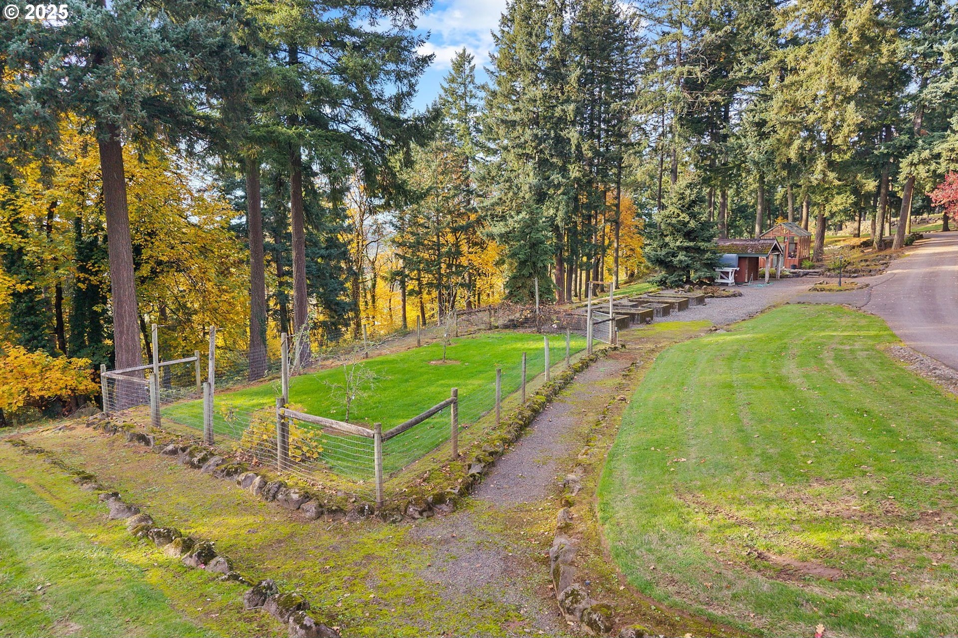Experience the rare opportunity to own a gated 23-acre sanctuary perched above Shortland Golf Club - where natural beauty, privacy, and possibility come together in perfect harmony. Designed for those who value space, serenity, and refined comfort, this remarkable acreage offers a seamless blend of recreation and relaxation. The expansive, well-built recreation barn is an entertainer's dream, featuring a soaring rock fireplace, full bar, and inviting game room - perfect for hosting family gatherings or celebrations. Step outside to your outdoor entertainment haven, complete with a picnic gazebo with fireplace and smoker, a lighted and paved pickleball/volleyball court, its own bathroom, and ample space for guests and recreation. The park-like setting offers a true sense of retreat, enhanced by a greenhouse and raised beds for gardening, open areas for play, and the occasional visit from deer and other local wildlife, all adding to the peaceful charm of the property. With infrastructure already in place, including a paved driveway, power, well, and septic - your vision can unfold effortlessly. Whether you dream of building a signature residence on the level building site, creating a private retreat, cultivating a boutique vineyard, or hosting intimate events, this property offers the perfect foundation. Located just minutes from local wineries offering great food, fine wine, and warm hospitality, you'll enjoy the best of Oregon's wine country lifestyle - all within easy reach of West Linn's conveniences. A rare opportunity to craft your legacy estate in one of West Linn's most coveted settings - where every sunset, every gathering, and every moment feels like a true escape. Buyer to do their own due diligence.