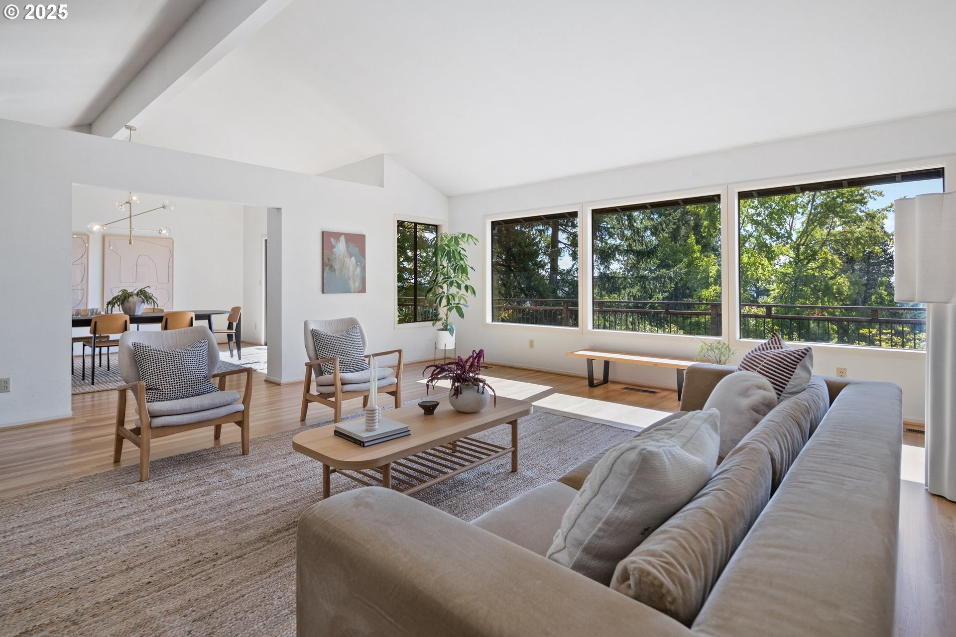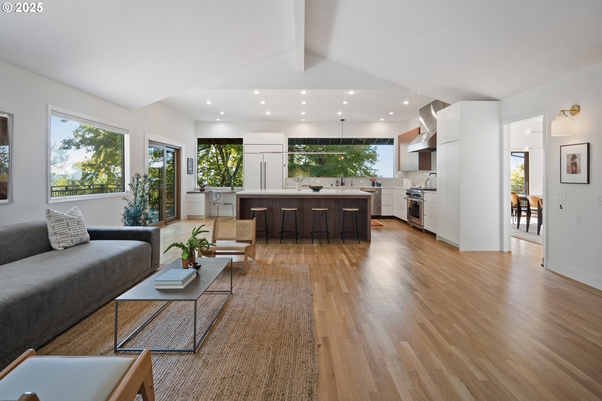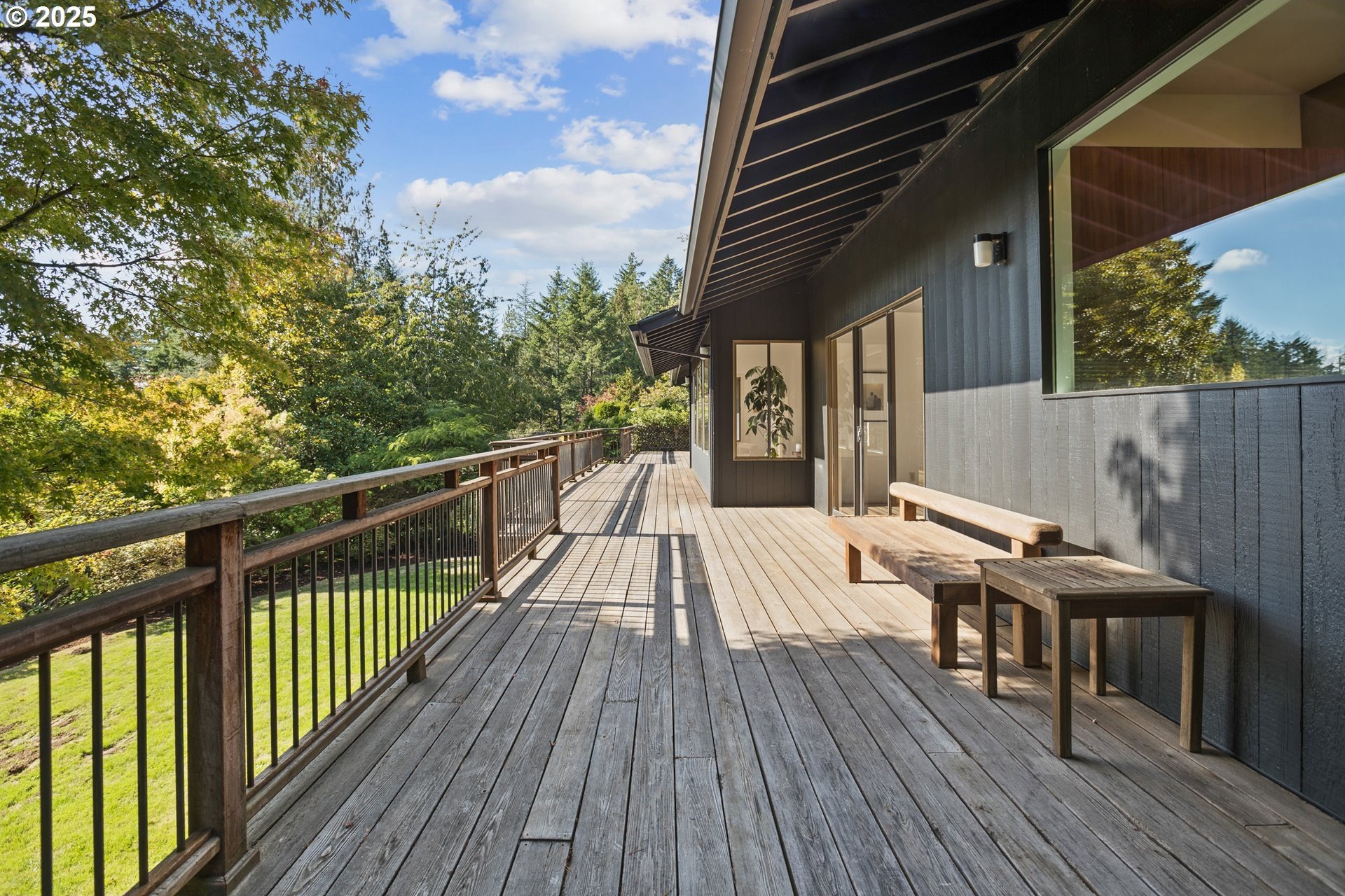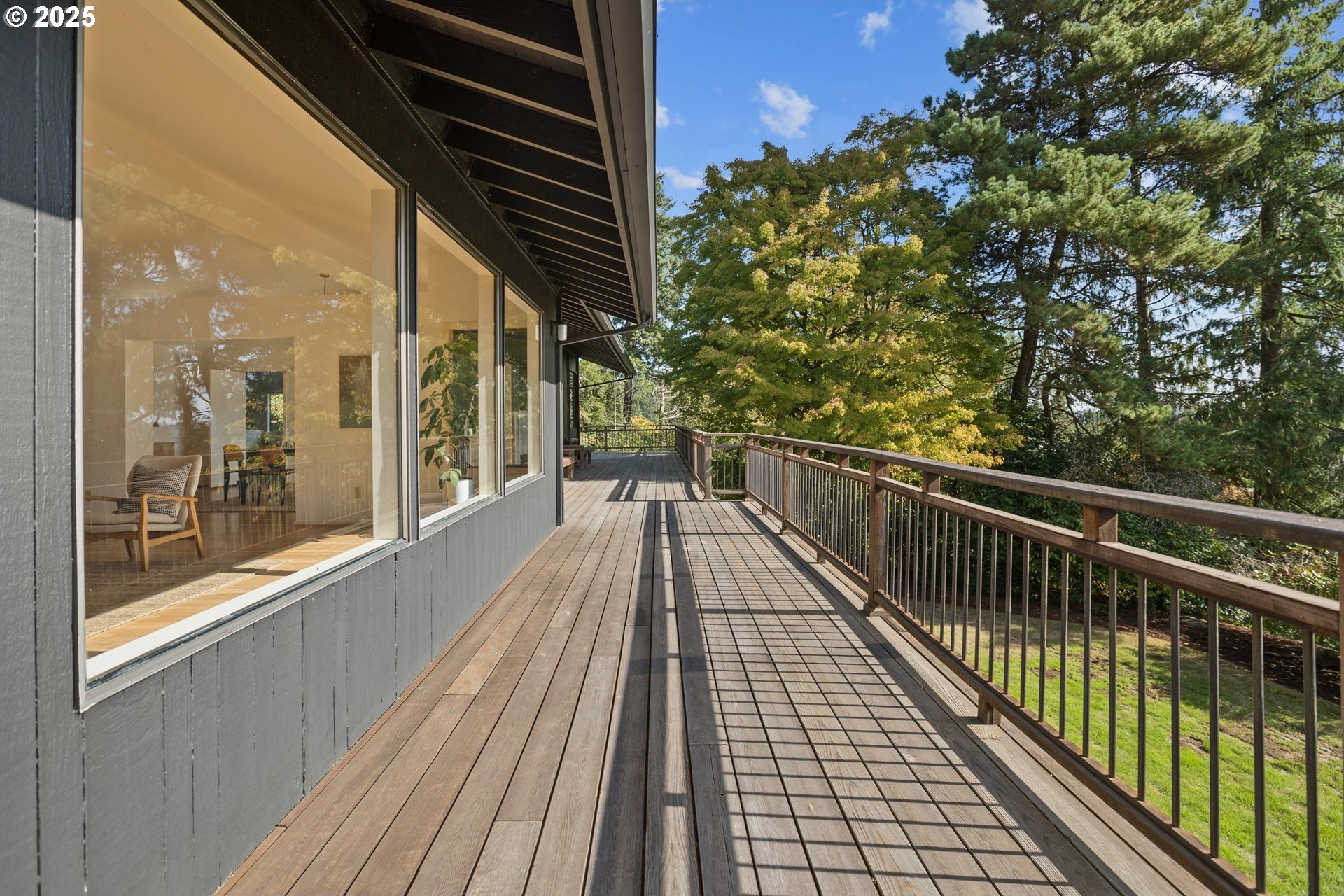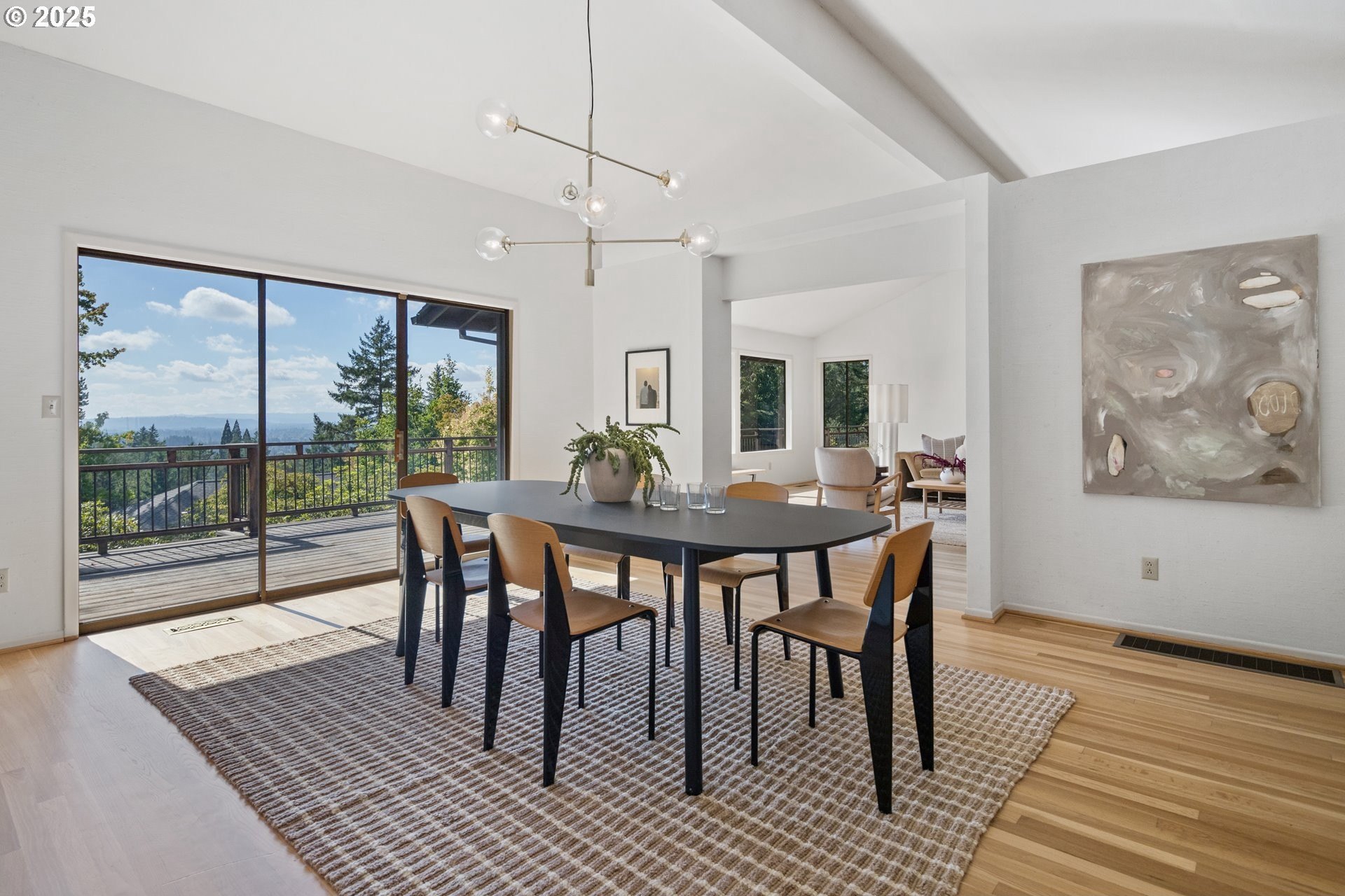Set on nearly an acre of private, south-facing land, this beautifully updated mid-century home offers exceptional design, functionality, and breathtaking valley vistas. The thoughtfully designed floor plan provides mostly main-floor living, including generous living and dining areas, a spectacularly remodeled kitchen/family room, and three luxurious ensuite bedrooms. Perfectly suited for entertaining, the home seamlessly separates social and private spaces. On the lower level, discover a spacious great room, a fourth bedroom (no closet), a full bath, and a fun indoor pool with a sauna - ideal for year-round enjoyment. Outdoor living is just as impressive, with a large deck for gatherings, a sprawling backyard, and multiple serene spaces to relax and unwind. Additional features include electronic gate, abundant parking, detached boat garage, and a versatile outbuilding that is perfect for a home office or studio space. Tesla charge in the garage is included. Lot may be divided - possible to build another home, buyer to perform due diligence. [Home Energy Score = 2. HES Report