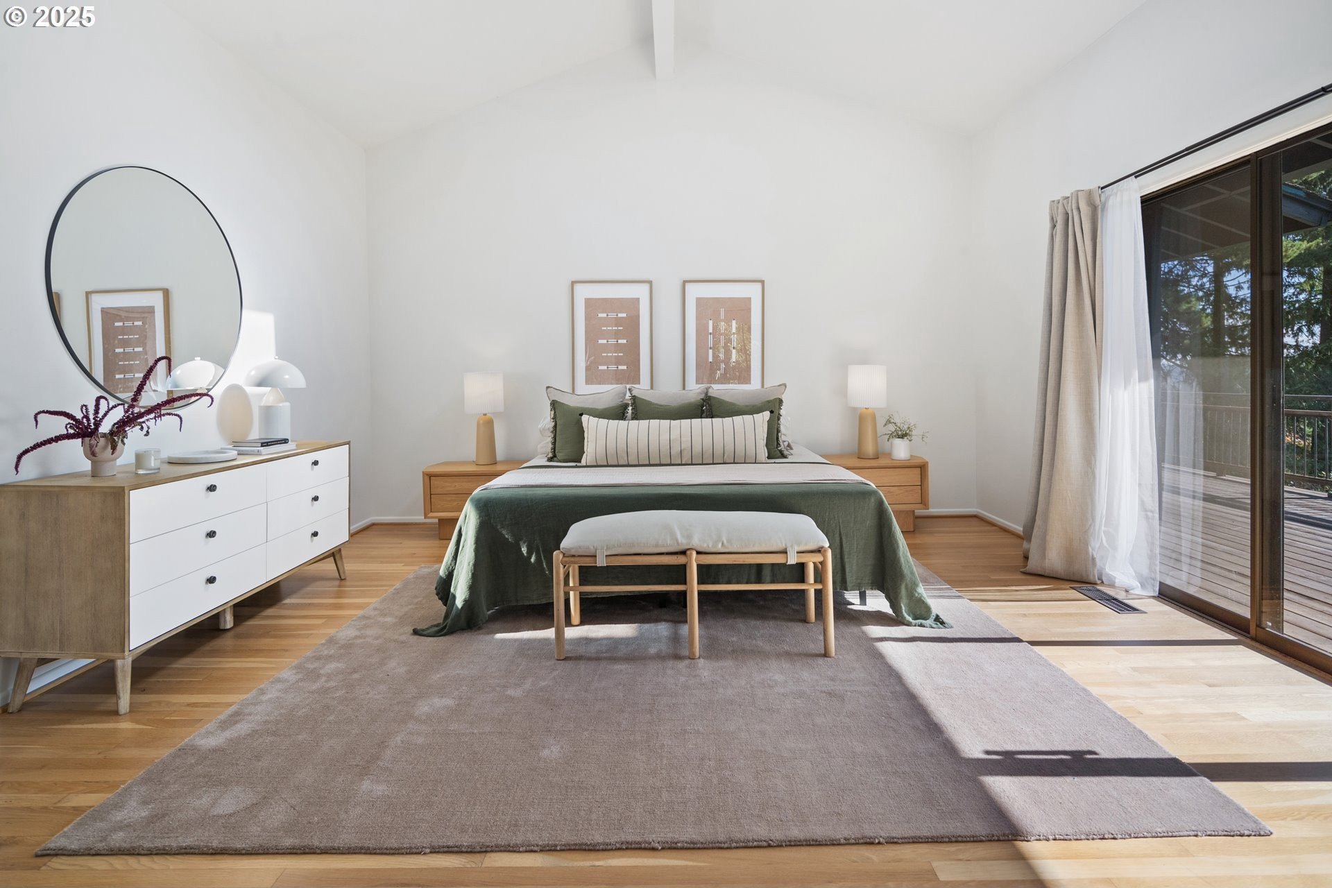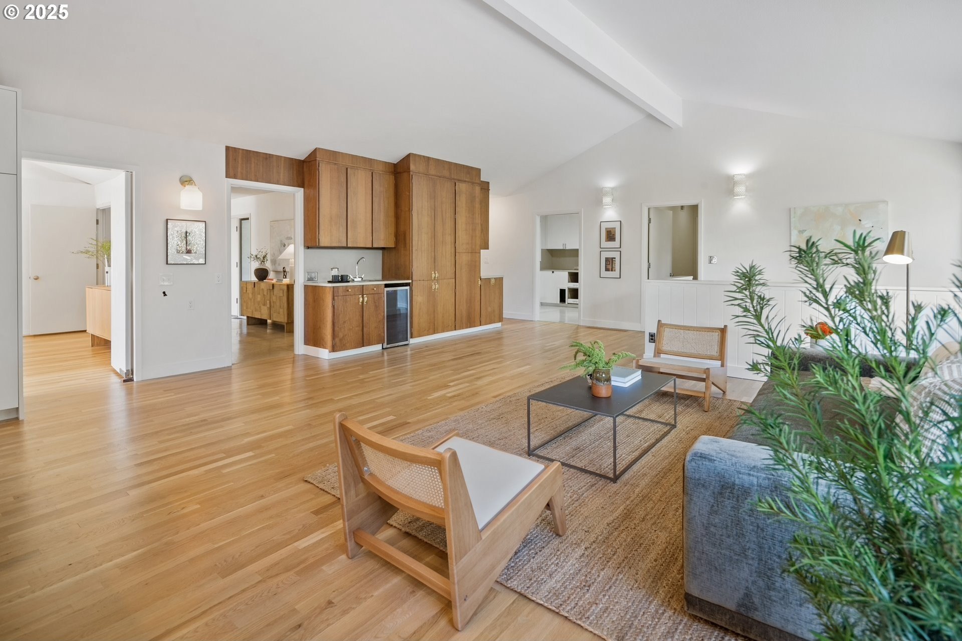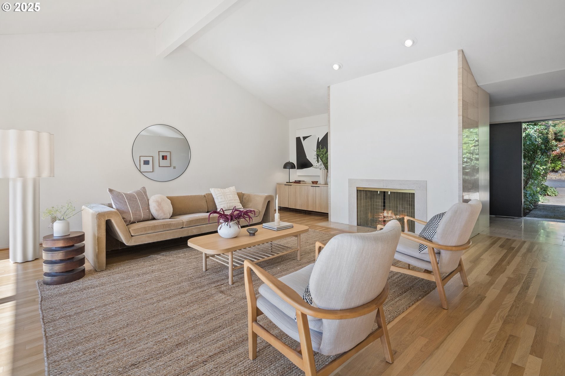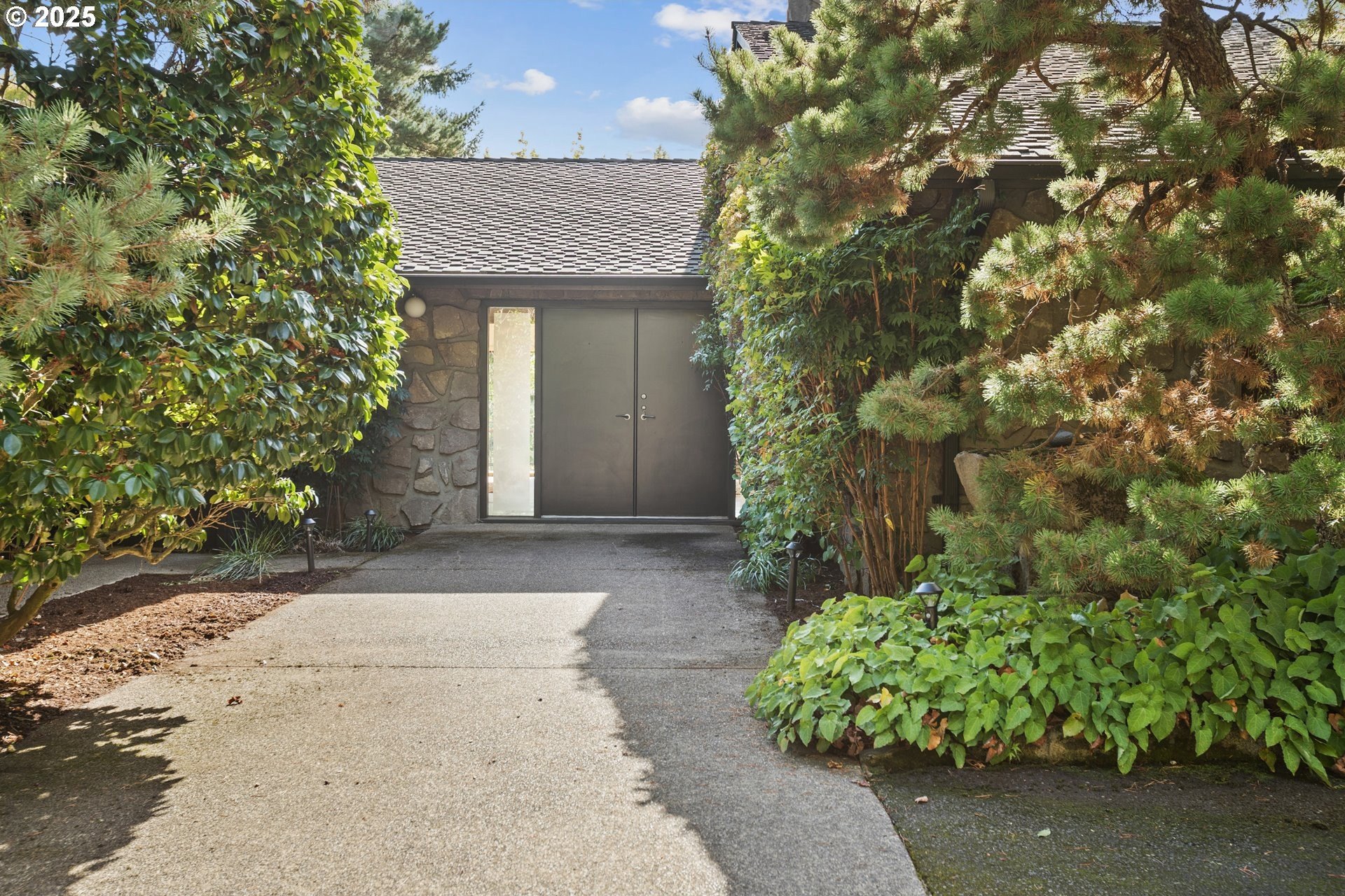 Set on nearly an acre of private, south-facing land, this beautifully updated mid-century home offers exceptional design, functionality, and breathtaking valley vistas. The thoughtfully designed floor plan provides mostly main-floor living, including generous living and dining areas, a spectacularly remodeled kitchen/family room, and three luxurious ensuite bedrooms. Perfectly suited for entertaining, the home seamlessly separates social and private spaces. On the lower level, discover a spacious great room, a fourth bedroom (no closet), a full bath, and a fun indoor pool with a sauna - ideal for year-round enjoyment. Outdoor living is just as impressive, with a large deck for gatherings, a sprawling backyard, and multiple serene spaces to relax and unwind. Additional features include electronic gate, abundant parking, detached boat garage, and a versatile outbuilding that is perfect for a home office or studio space. Tesla charge in the garage is included. Lot may be divided - possible to build another home, buyer to perform due diligence. [Home Energy Score = 2. HES Report