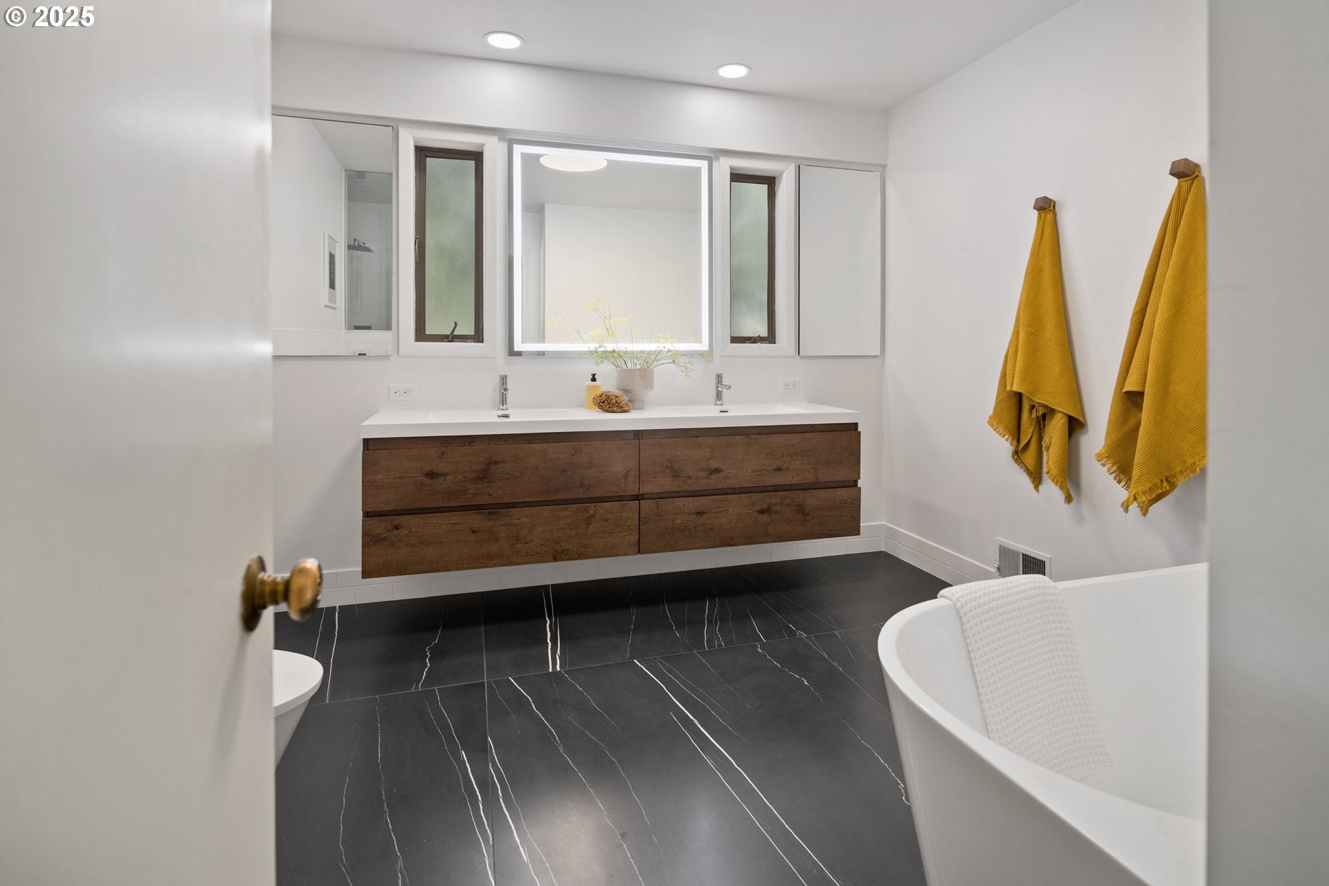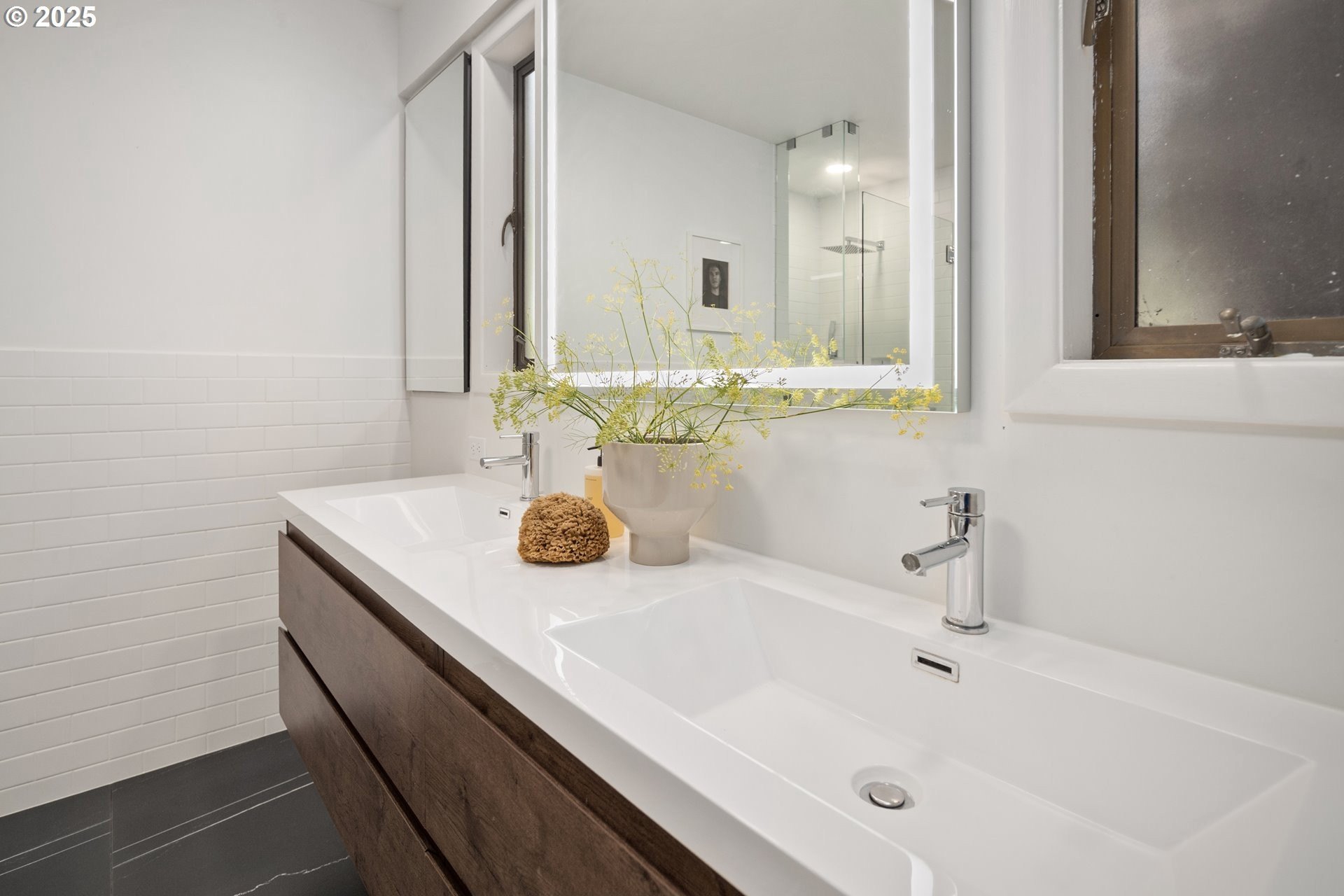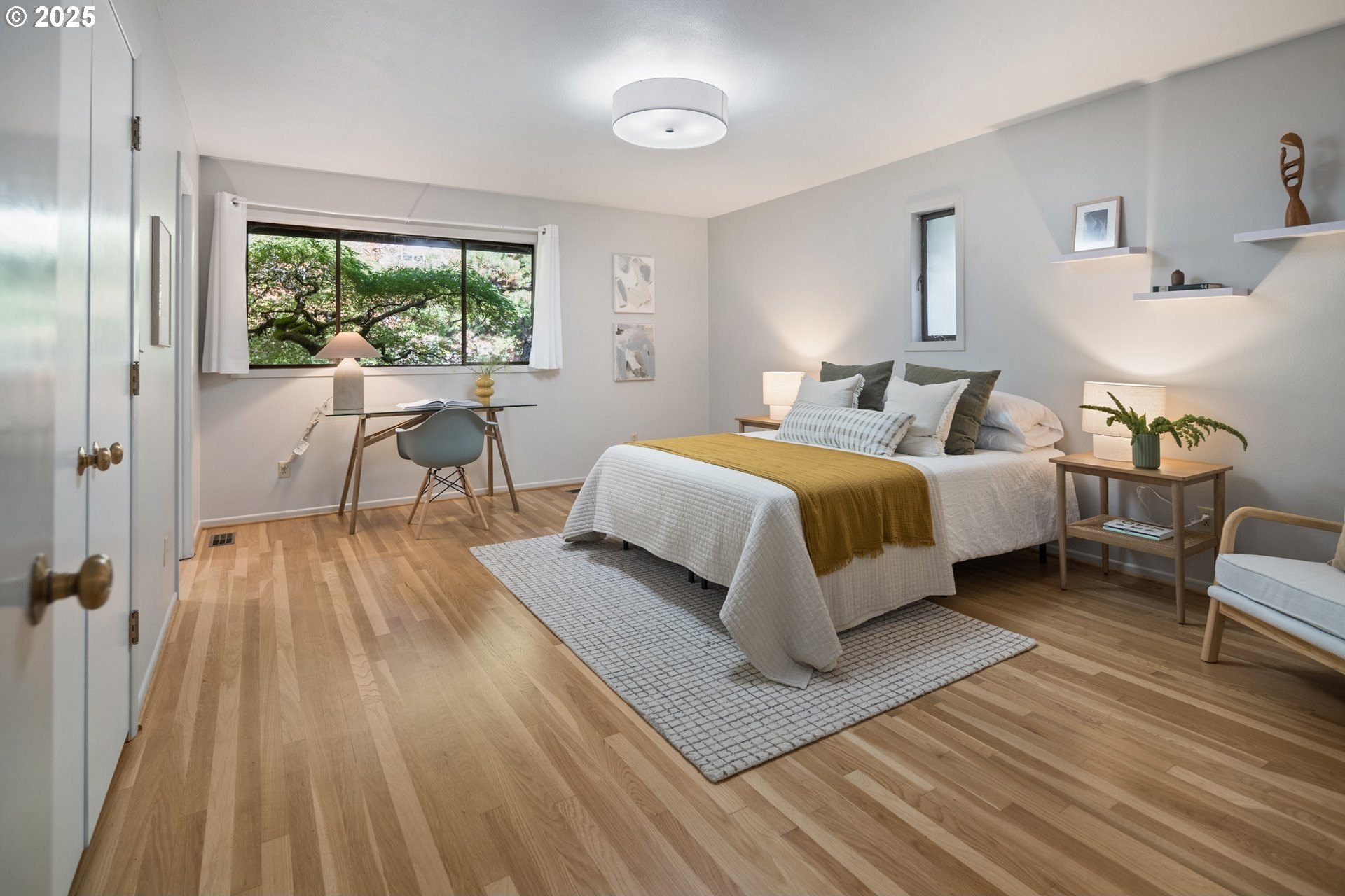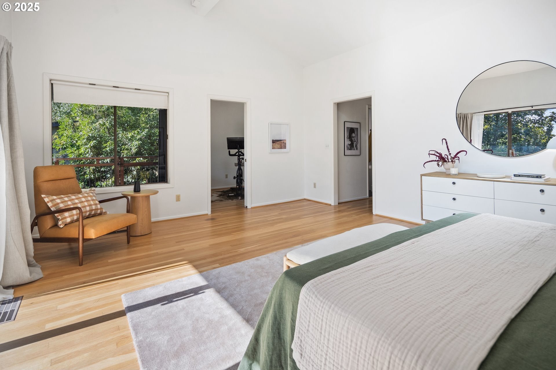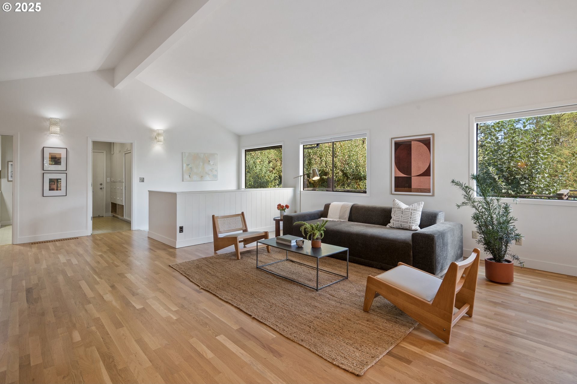 Set on nearly an acre of private, south-facing land, this beautifully updated mid-century home offers exceptional design, functionality, and breathtaking valley vistas. The thoughtfully designed floor plan provides mostly main-floor living, including generous living and dining areas, a spectacularly remodeled kitchen/family room, and three luxurious ensuite bedrooms. Perfectly suited for entertaining, the home seamlessly separates social and private spaces. On the lower level, discover a spacious great room, a fourth bedroom (no closet), a full bath, and a fun indoor pool with a sauna - ideal for year-round enjoyment. Outdoor living is just as impressive, with a large deck for gatherings, a sprawling backyard, and multiple serene spaces to relax and unwind. Additional features include electronic gate, abundant parking, detached boat garage, and a versatile outbuilding that is perfect for a home office or studio space. Tesla charge in the garage is included. Lot may be divided - possible to build another home, buyer to perform due diligence. [Home Energy Score = 2. HES Report