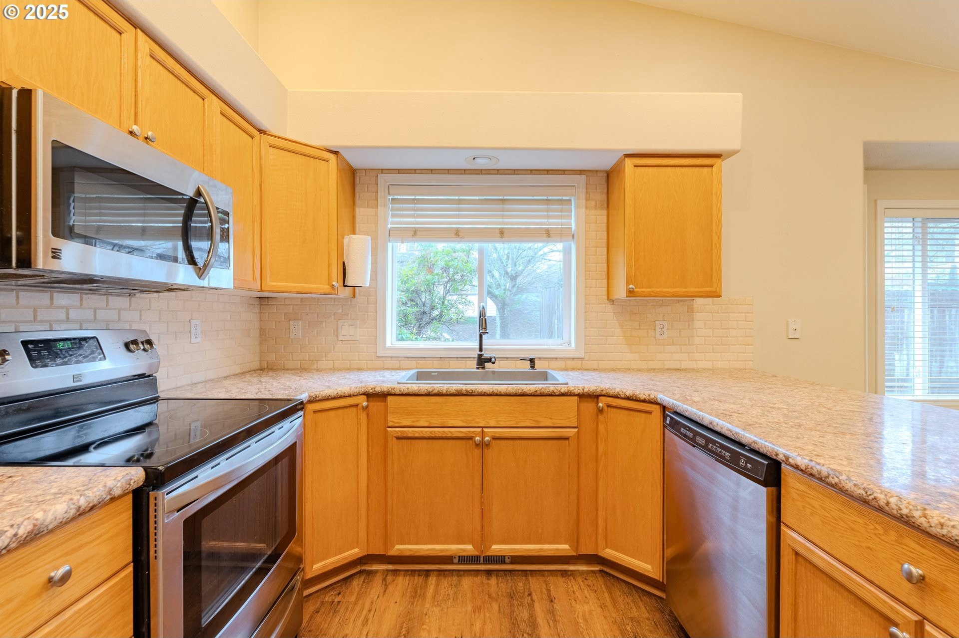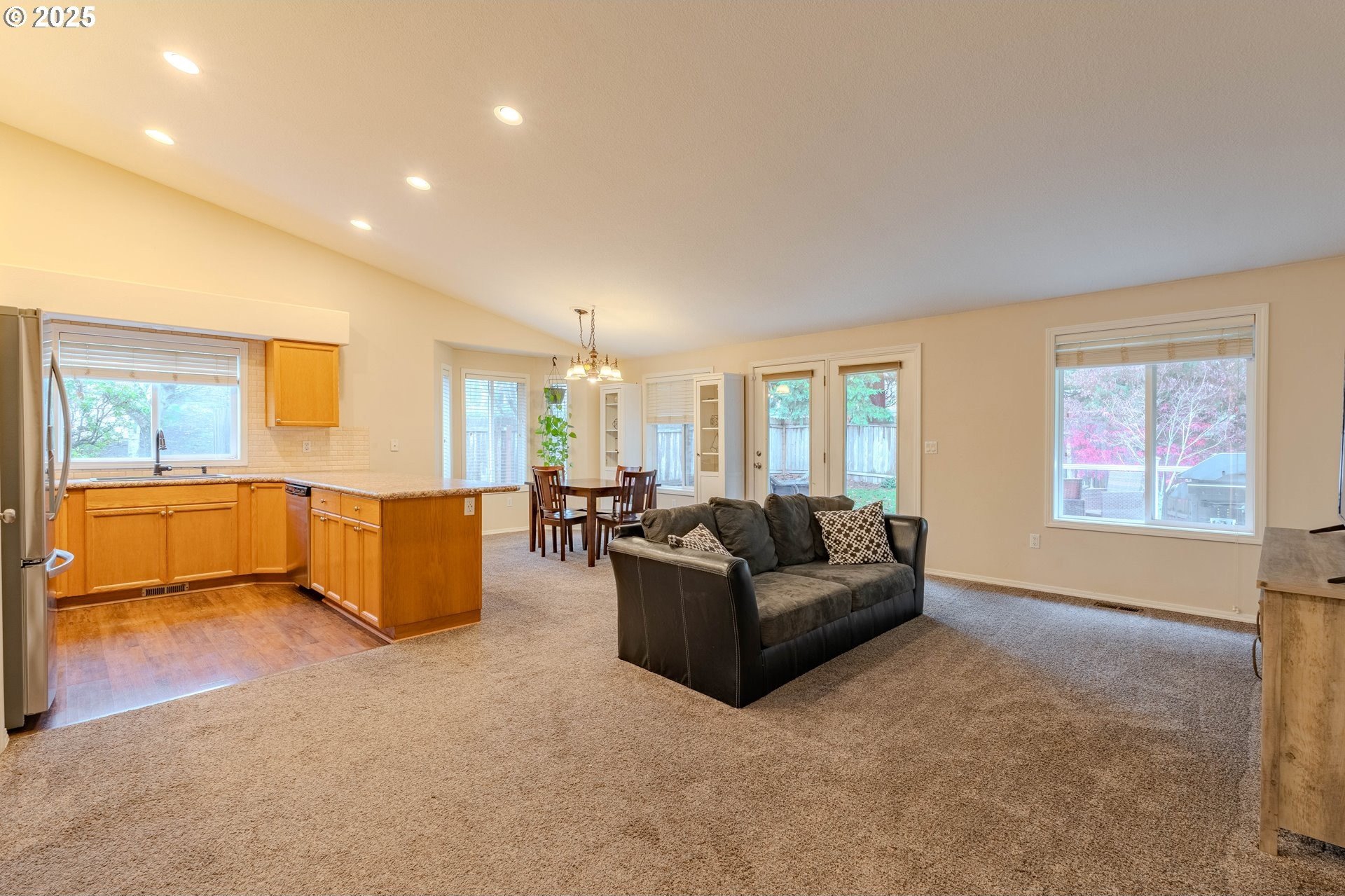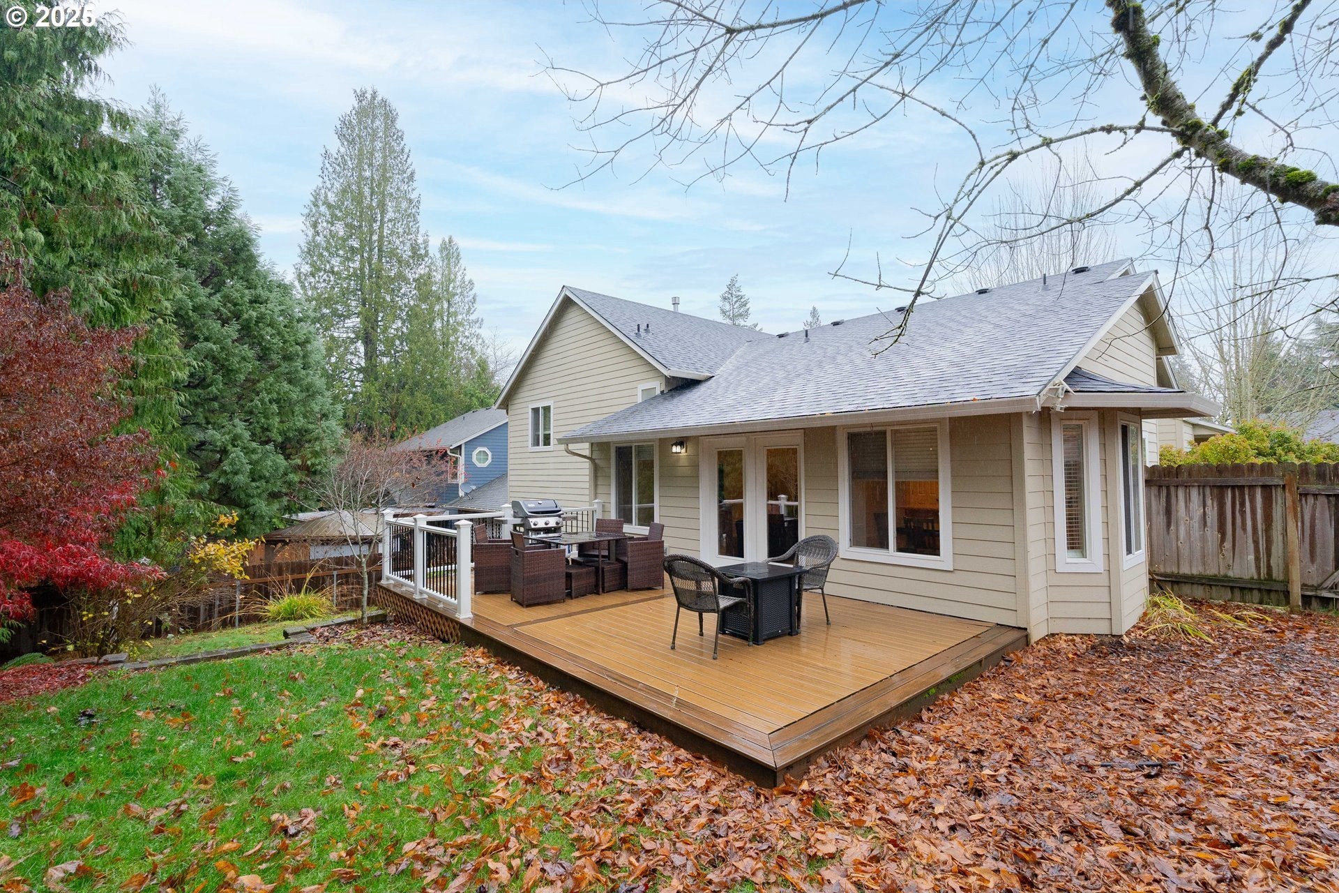 From the welcoming curb appeal to the soaring, light-filled great room and flexible tri-level layout, this Village at Cedar Ridge home offers a blend of comfort and versatility that's hard to beat. This spacious 2,231 Sq. Ft. home features 4+ bedrooms and a wonderfully adaptable design. The main level showcases vaulted ceilings and an open floor plan, highlighted by a grand entrance/great room with soaring vaults, large windows, and abundant natural light pouring in. A cozy gas fireplace adds both ambiance and warmth on cool winter days. The chic, functional kitchen includes gorgeous counters with full backsplash, a large eating bar, and stainless-steel appliances (all included!). The adjoining dining area includes a nook along with direct access to the expansive newer Trex deck. Upstairs, you'll find three bedrooms plus a generous vaulted owner's suite with a walk-in closet and an en-suite featuring double sinks and a soaking tub. The lower level adds two additional rooms and a spacious utility room with sink and toilet, with the washer and dryer included. Outside, the fully fenced yard provides ample space for pets and play, complemented by the large Trex deck for effortless outdoor enjoyment. Convenient to shopping, dining, parks, trails, top schools, and a medical center, with easy access to Highway 14 and Portland. Schedule your showing today and experience this exceptional home for yourself!