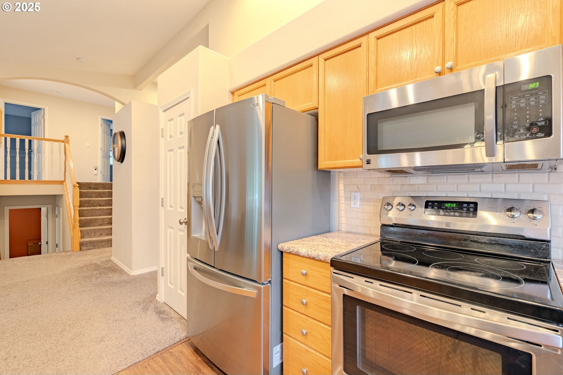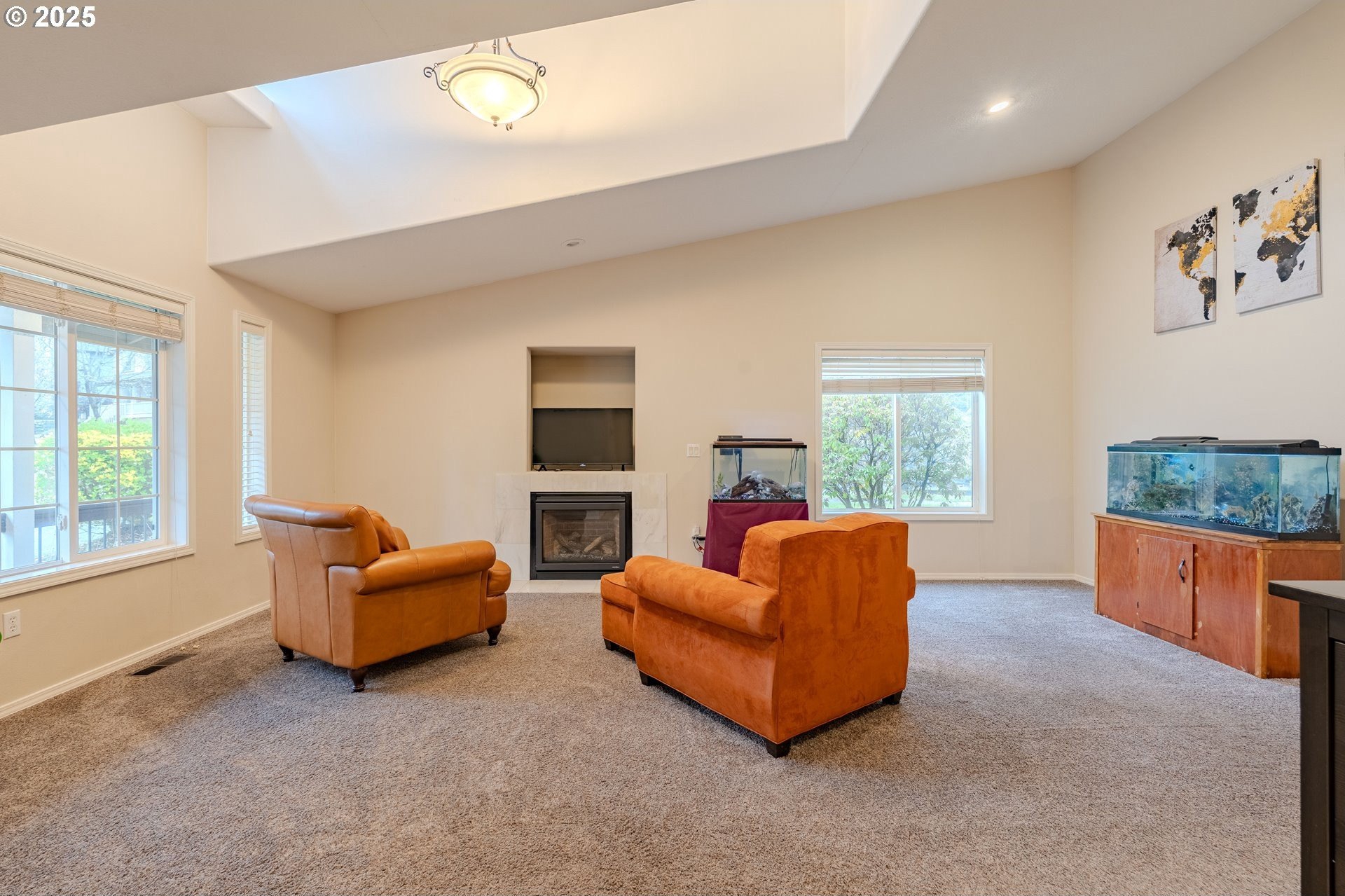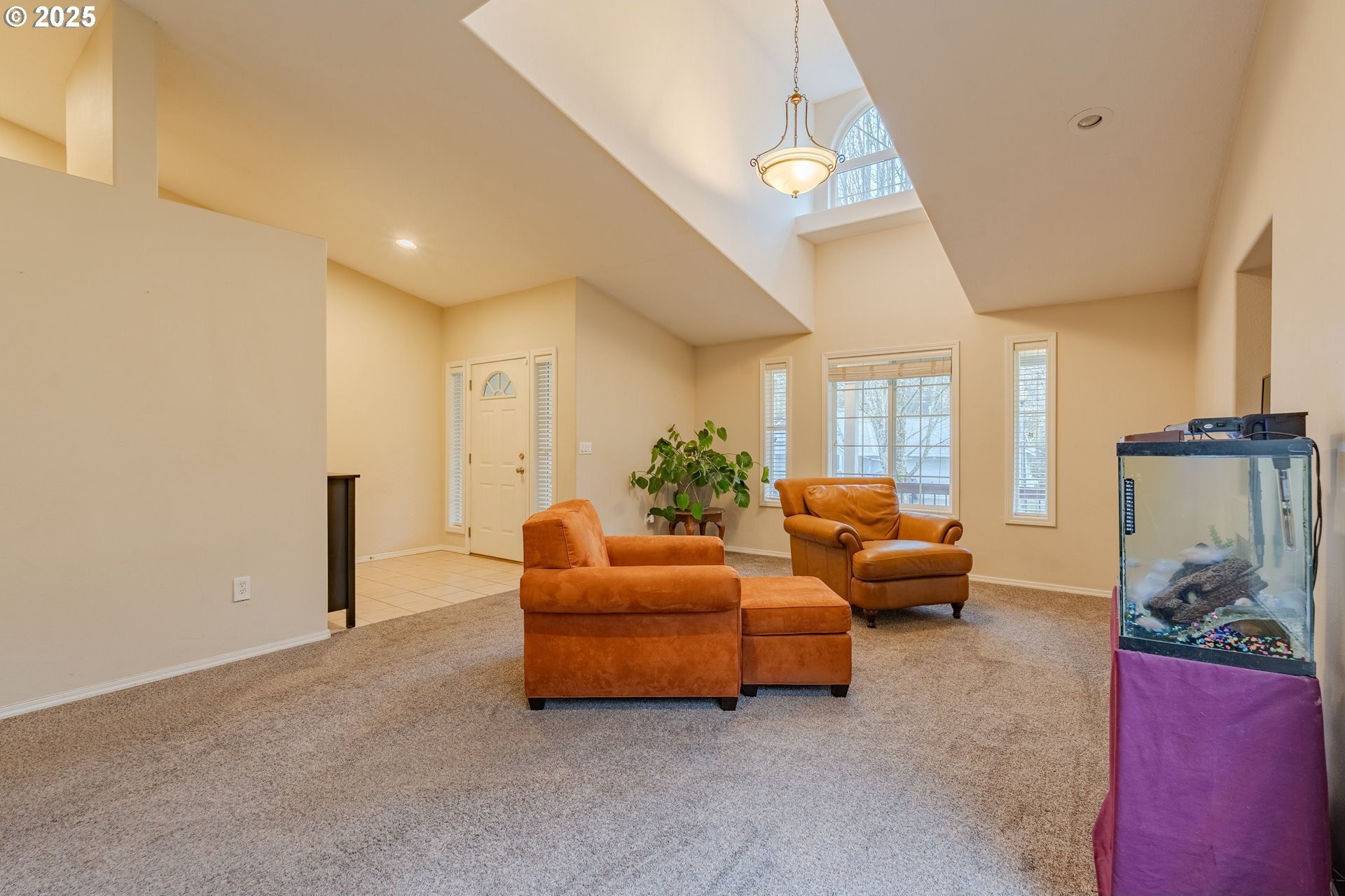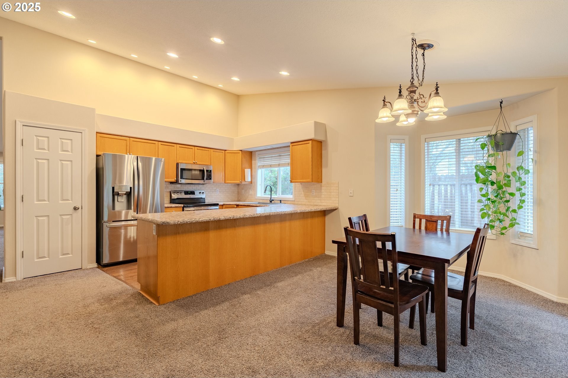 From the welcoming curb appeal to the soaring, light-filled great room and flexible tri-level layout, this Village at Cedar Ridge home offers a blend of comfort and versatility that's hard to beat. This spacious 2,231 Sq. Ft. home features 4+ bedrooms and a wonderfully adaptable design. The main level showcases vaulted ceilings and an open floor plan, highlighted by a grand entrance/great room with soaring vaults, large windows, and abundant natural light pouring in. A cozy gas fireplace adds both ambiance and warmth on cool winter days. The chic, functional kitchen includes gorgeous counters with full backsplash, a large eating bar, and stainless-steel appliances (all included!). The adjoining dining area includes a nook along with direct access to the expansive newer Trex deck. Upstairs, you'll find three bedrooms plus a generous vaulted owner's suite with a walk-in closet and an en-suite featuring double sinks and a soaking tub. The lower level adds two additional rooms and a spacious utility room with sink and toilet, with the washer and dryer included. Outside, the fully fenced yard provides ample space for pets and play, complemented by the large Trex deck for effortless outdoor enjoyment. Convenient to shopping, dining, parks, trails, top schools, and a medical center, with easy access to Highway 14 and Portland. Schedule your showing today and experience this exceptional home for yourself!