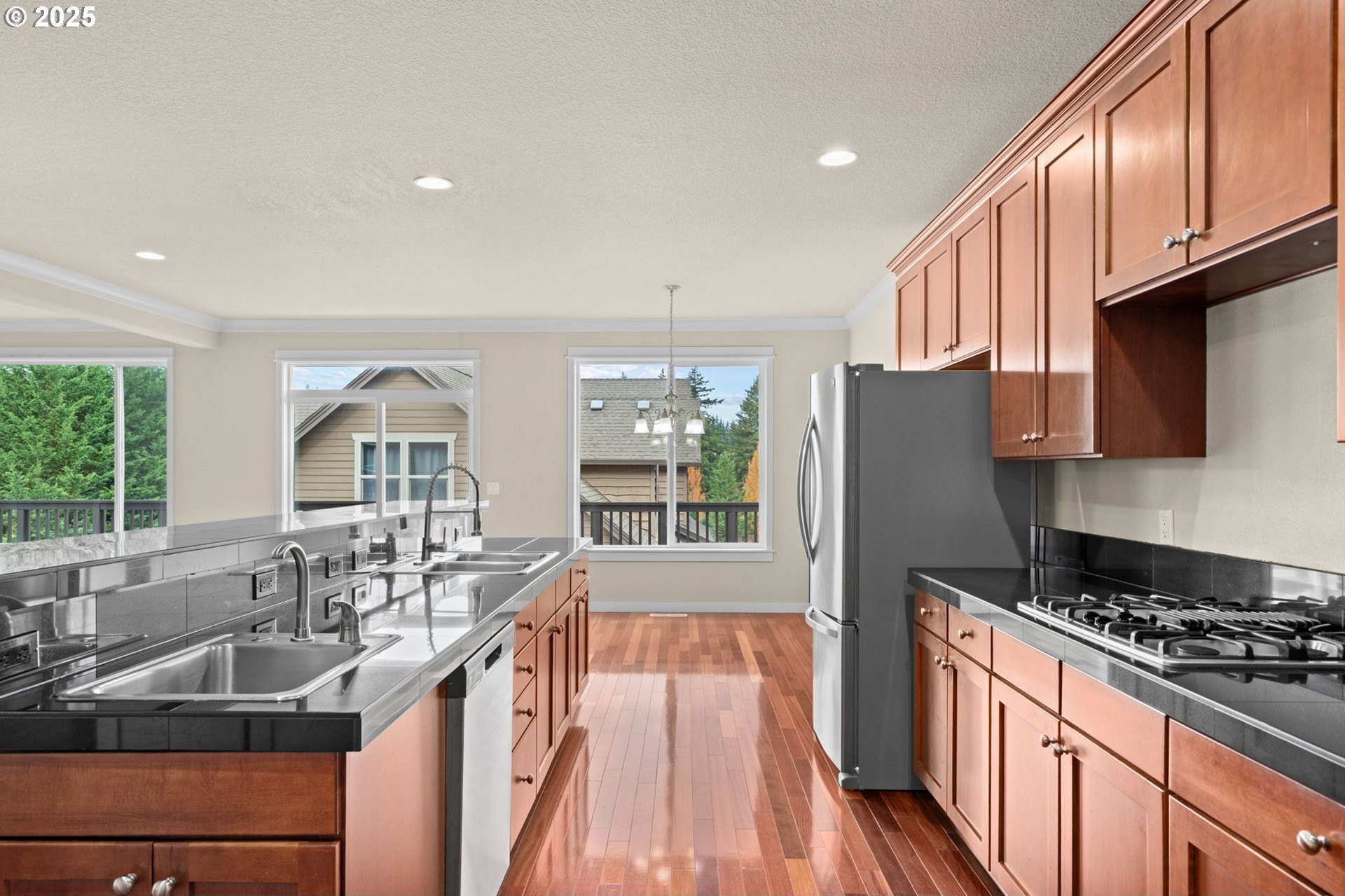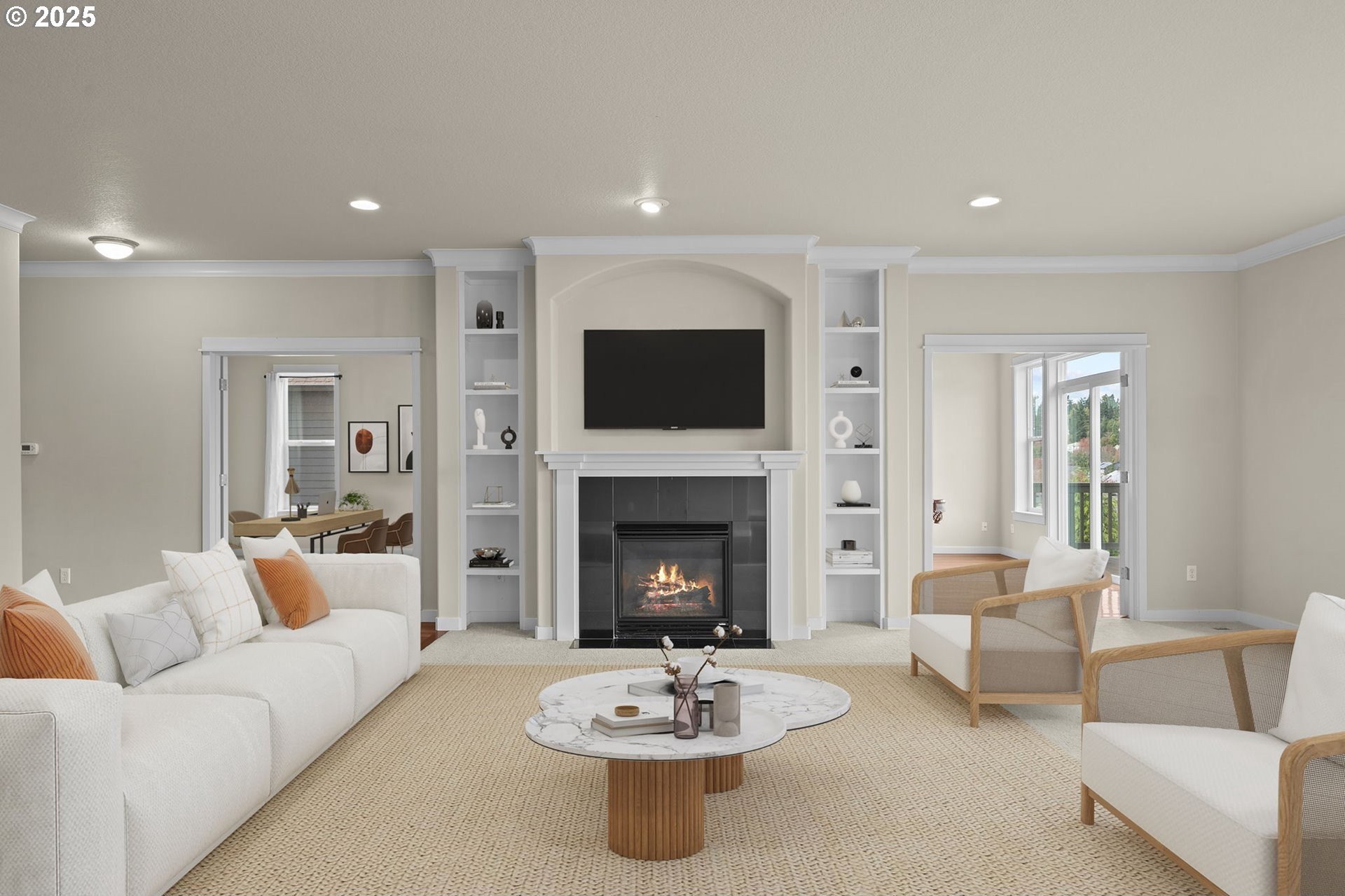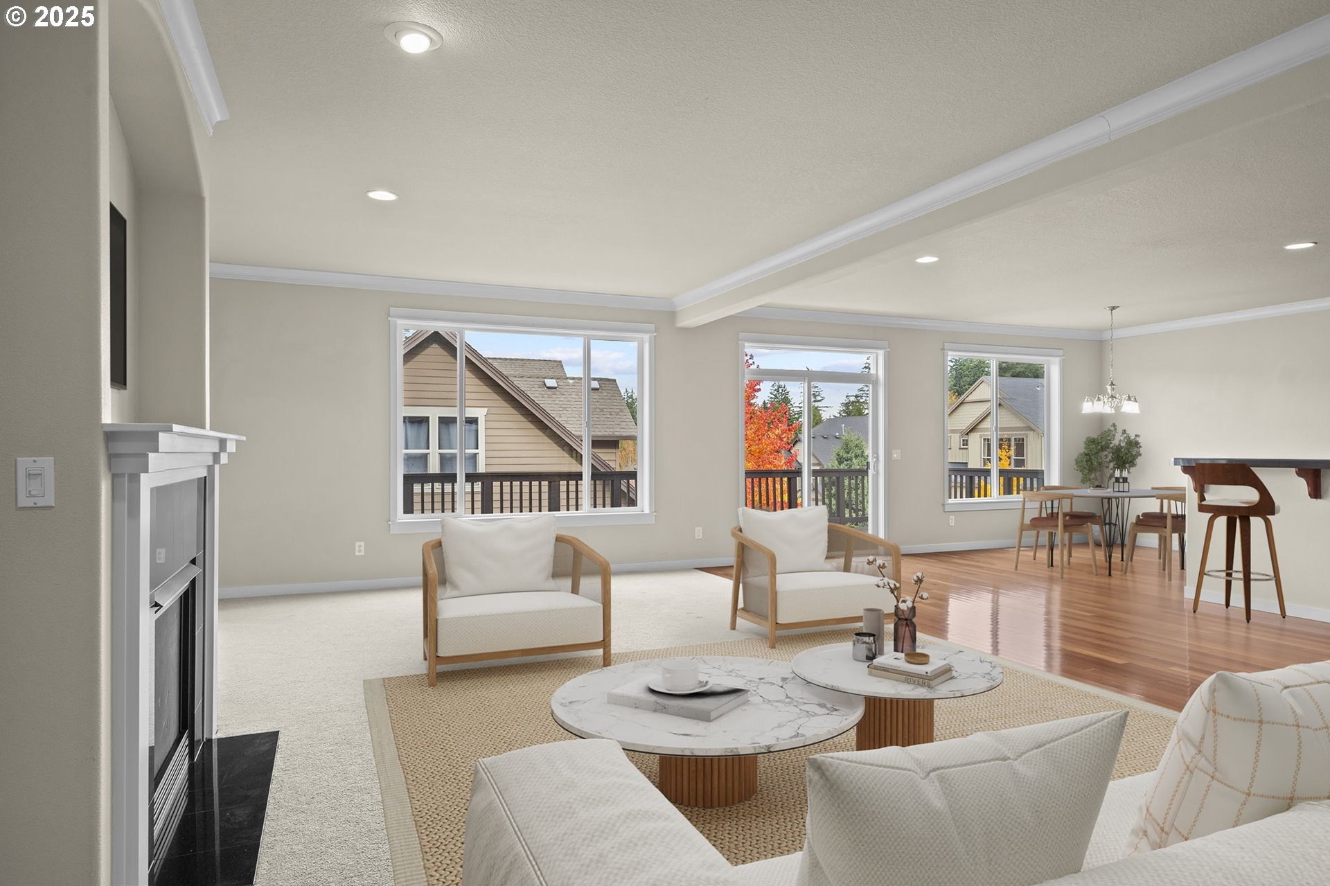 Perched above the valley in the sought-after Jackson Hills community, this custom home offers timeless design, flexibility, and sweeping territorial views. The grand layout features a spacious great room with dual fireplaces and a chef's kitchen with island, pantry, and built-in stainless appliances. Upstairs, the oversized primary suite includes a sitting area, fireplace, and spa-style bath, plus three additional bedrooms with walk-in closets. A main-level non-conforming 5th bedroom with its own bath creates an ideal option for single-level living, guest space, or multigenerational needs. Enjoy panoramic views from the expansive upper deck. Three-car garage and thoughtful design complete this exceptional home in one of Happy Valley's premier neighborhoods.