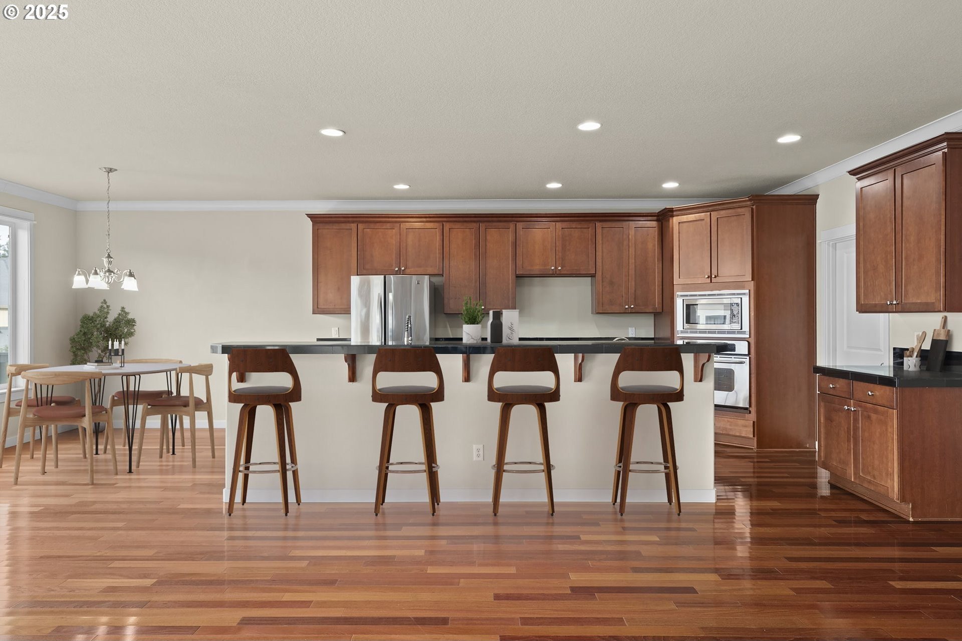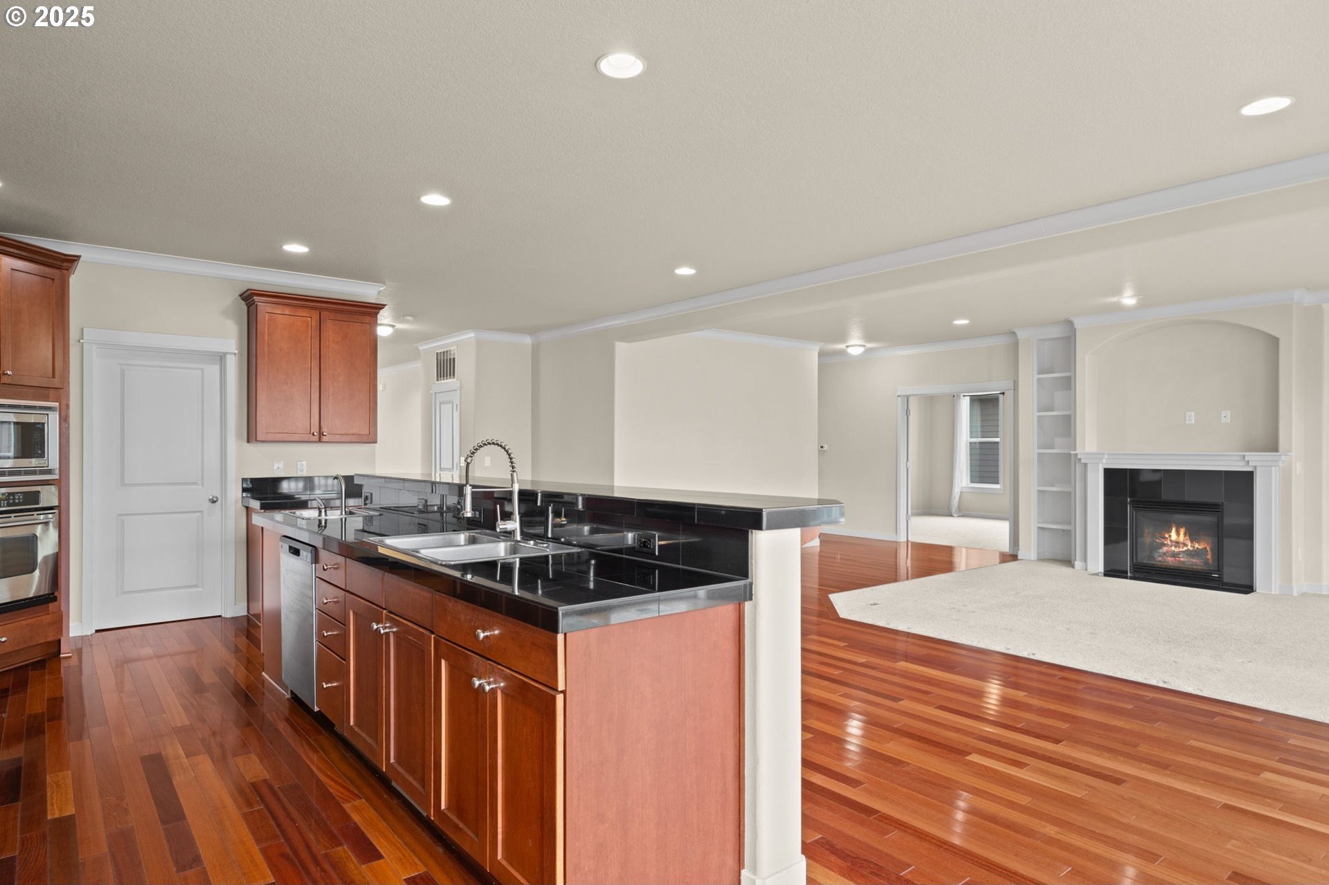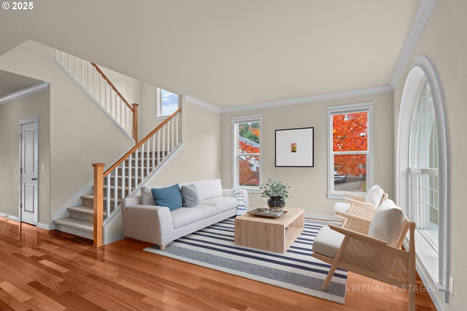 Perched above the valley in the sought-after Jackson Hills community, this custom home offers timeless design, flexibility, and sweeping territorial views. The grand layout features a spacious great room with dual fireplaces and a chef's kitchen with island, pantry, and built-in stainless appliances. Upstairs, the oversized primary suite includes a sitting area, fireplace, and spa-style bath, plus three additional bedrooms with walk-in closets. A main-level non-conforming 5th bedroom with its own bath creates an ideal option for single-level living, guest space, or multigenerational needs. Enjoy panoramic views from the expansive upper deck. Three-car garage and thoughtful design complete this exceptional home in one of Happy Valley's premier neighborhoods.