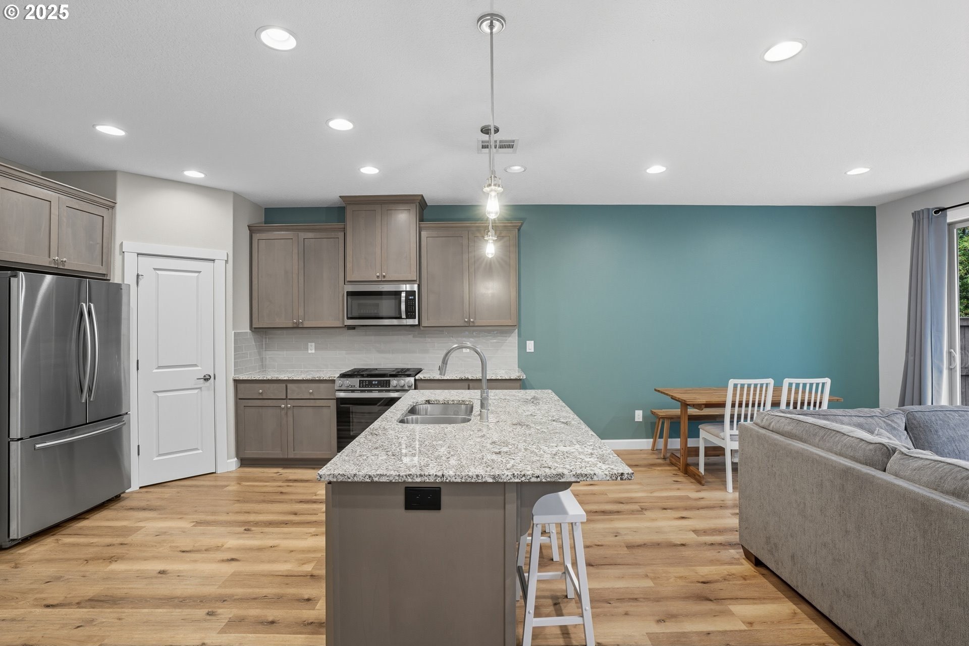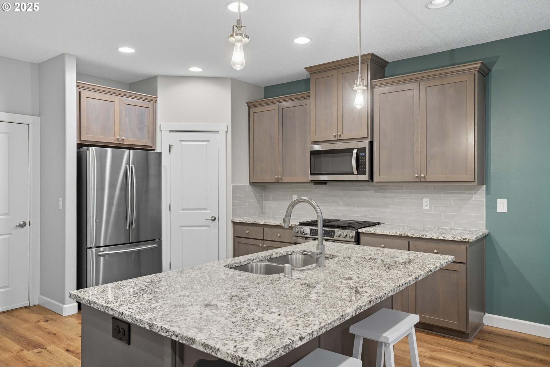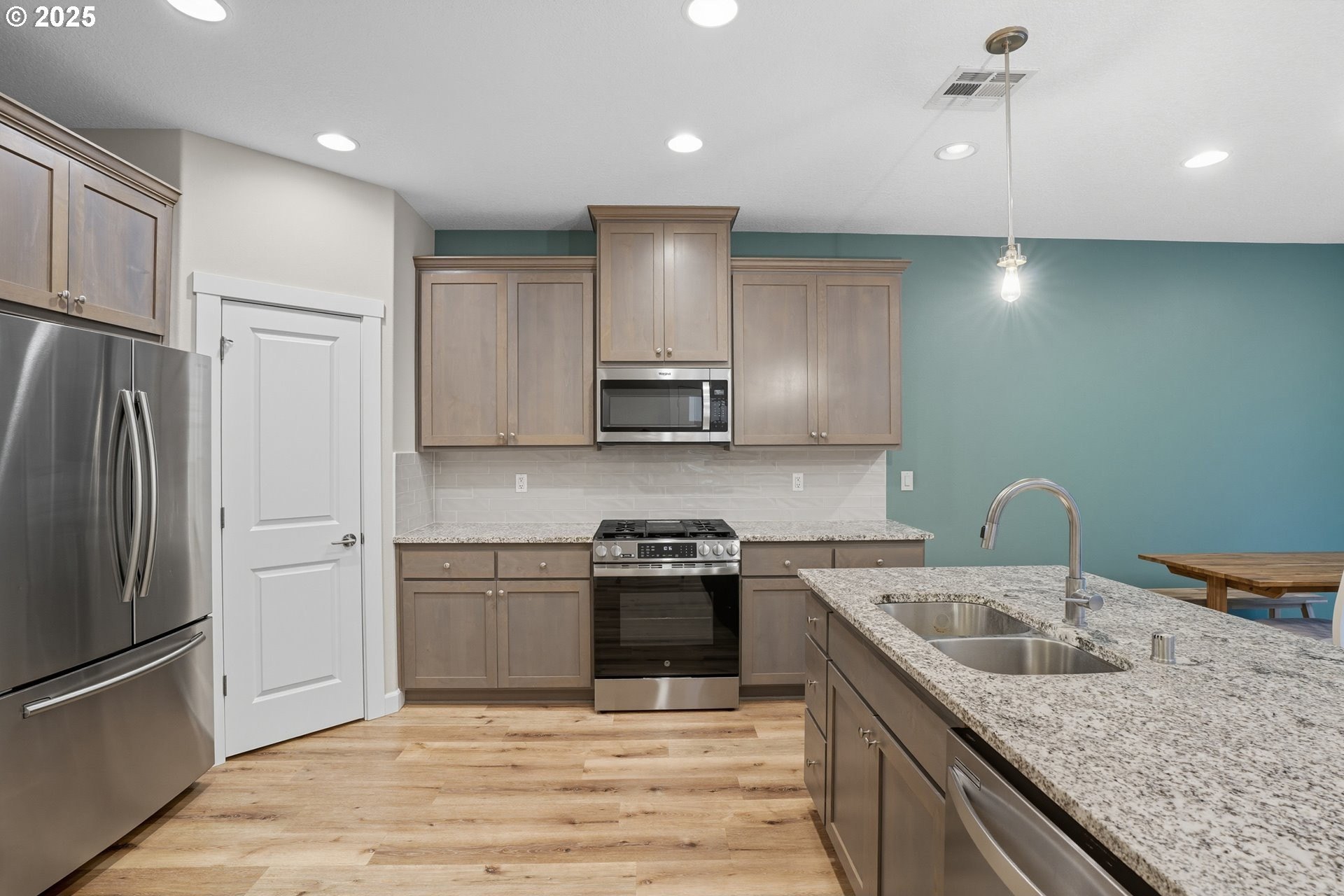 Fantastic Former Model Home with Upgrades in Salmon Creek providing 1,539sf of Living Space including 3 Bedrooms and 2.5 Bathrooms. Open Concept on the Main Level with Luxury Vinyl Plank floors throughout. Kitchen: Stainless Appliances with Gas Range, Quartz Countertops, Custom Finish Cabinets, Island with Eat Bar, Walk in Pantry plus Dining Area. Living Room area with Gas Fireplace. Spacious Primary Bedroom features Vaulted Ceiling, Large Walk in Closet, Full Bathroom with Double Quartz Vanity's, and Double Tile Shower. Additional Bedrooms with Double Closets. Extra wide Bonus area perfect for a Workspace or Study Area. Closed Door Laundry Area. Gas Forced Air Heat with AC. Low Maintenance Landscaped Yard with Fence, and Covered Patio. Excellent Schools including Skyview High. Close to both I-5 & I-205 Access, plus Legacy Hospital, Shopping and Restaurants. Located on a quiet No Thru Street. A Must See!