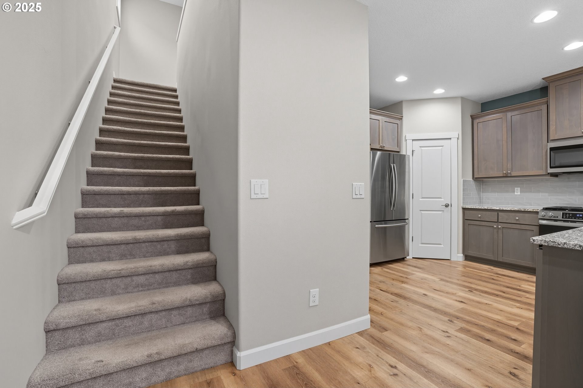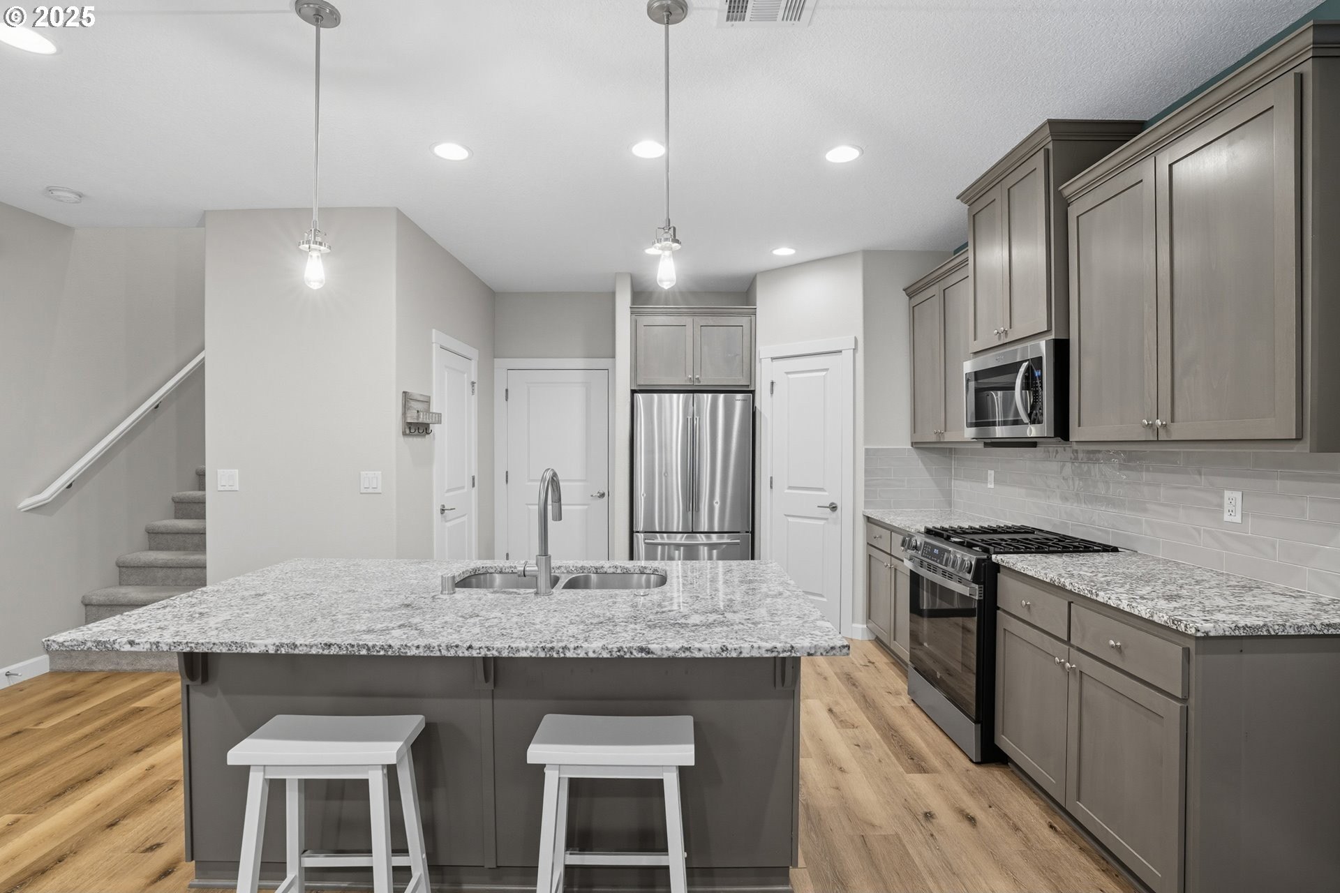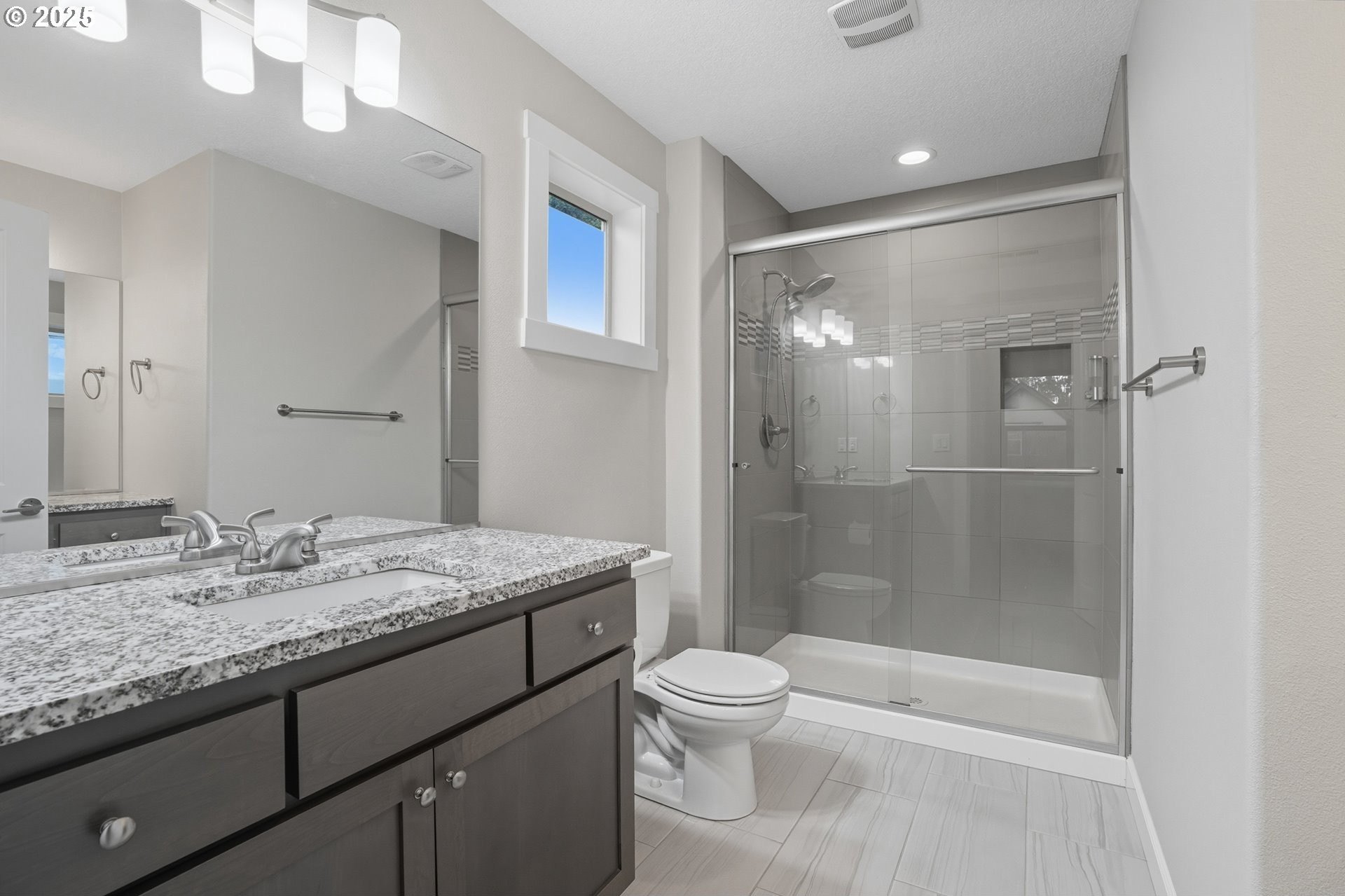 Fantastic Former Model Home with Upgrades in Salmon Creek providing 1,539sf of Living Space including 3 Bedrooms and 2.5 Bathrooms. Open Concept on the Main Level with Luxury Vinyl Plank floors throughout. Kitchen: Stainless Appliances with Gas Range, Quartz Countertops, Custom Finish Cabinets, Island with Eat Bar, Walk in Pantry plus Dining Area. Living Room area with Gas Fireplace. Spacious Primary Bedroom features Vaulted Ceiling, Large Walk in Closet, Full Bathroom with Double Quartz Vanity's, and Double Tile Shower. Additional Bedrooms with Double Closets. Extra wide Bonus area perfect for a Workspace or Study Area. Closed Door Laundry Area. Gas Forced Air Heat with AC. Low Maintenance Landscaped Yard with Fence, and Covered Patio. Excellent Schools including Skyview High. Close to both I-5 & I-205 Access, plus Legacy Hospital, Shopping and Restaurants. Located on a quiet No Thru Street. A Must See!