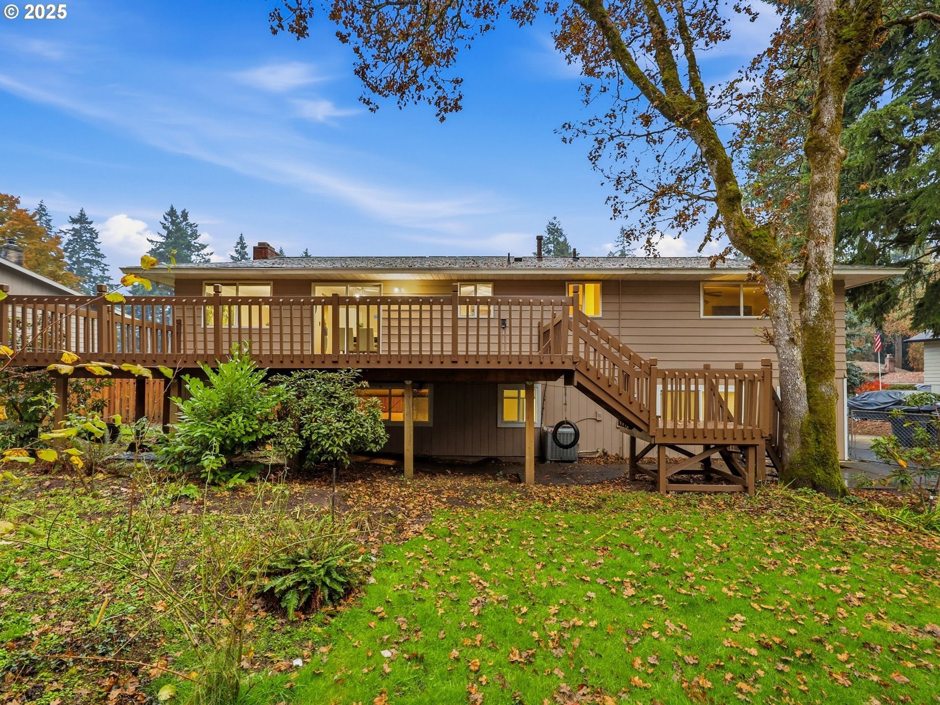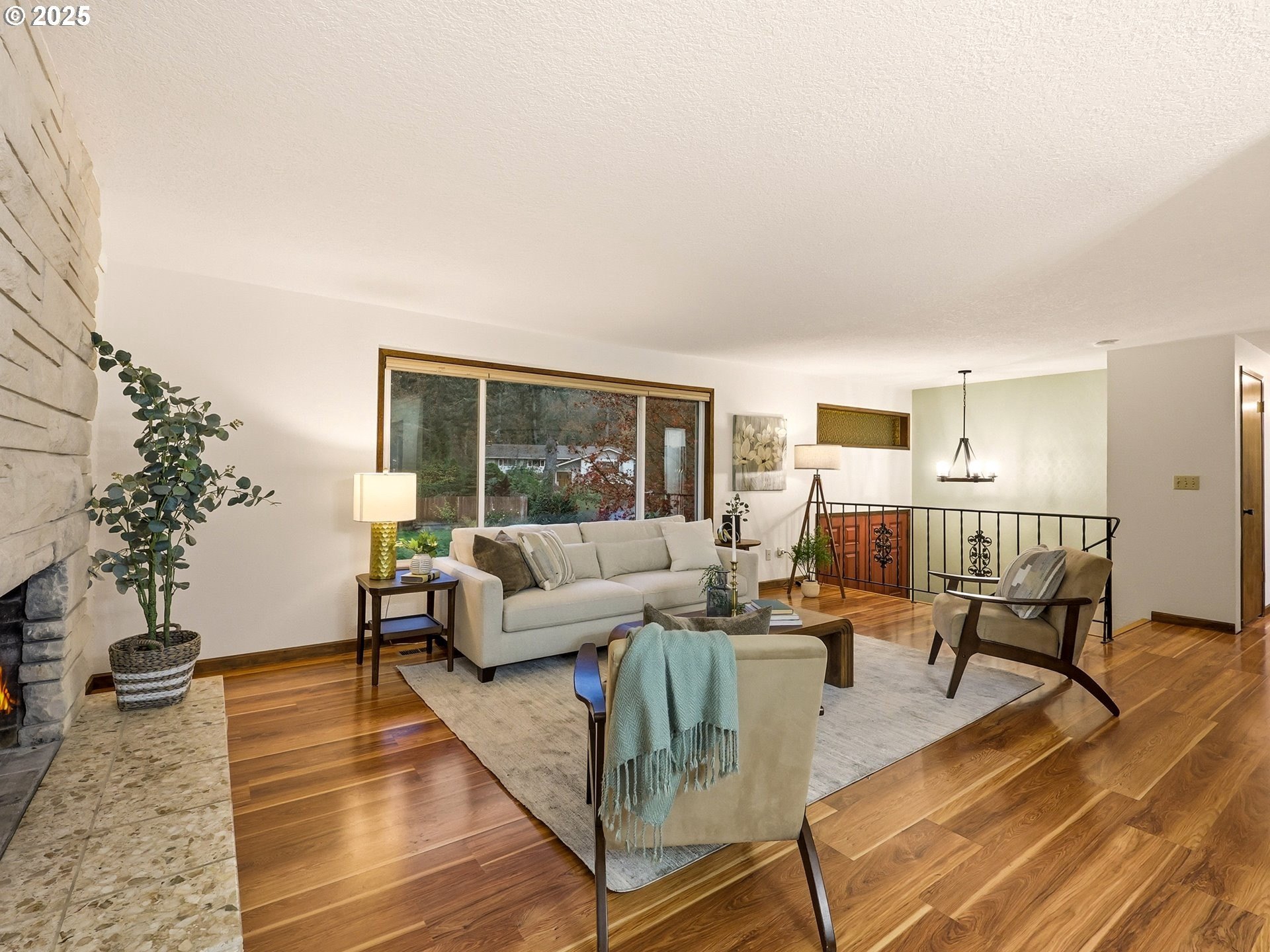 Welcome to this spacious split-level home nestled in the highly desirable Sherwood Forest neighborhood! Surrounded by mature trees on a quiet cul-de-sac, this home offers the perfect blend of midcentury charm and modern upgrades. Step inside, to a bright living room with abundant natural light complemented by a beautiful white stone fireplace, still unpainted. The kitchen features granite counters, an eating nook, and a slider to the deck-ideal for effortless indoor-outdoor entertaining. With four generous bedrooms and three full bathrooms, there's plenty of space for family, guests, or a home office. The lower level is a dream hangout zone, offering a huge family room with beautiful brick fireplace walls, full bath, and laundry. Enjoy the oversized, fully fenced backyard, offering an entertainer's paradise with lush landscaping and ample room to relax and play, plant a garden, or host gatherings. Additional highlights include an oversized two-car garage with epoxy flooring and extra storage or hobby space, and an easy RV parking slab for your larger toys. Helpful updates include fresh interior paint, newer vinyl windows throughout, and a brand-new roof. Located just minutes from parks, schools, and shopping, this home offers both privacy and convenience. With solid bones, a flexible floor plan, and endless potential for your personal touches, this is a wonderful opportunity to create something truly special in one of Gladstone's most sought-after areas.