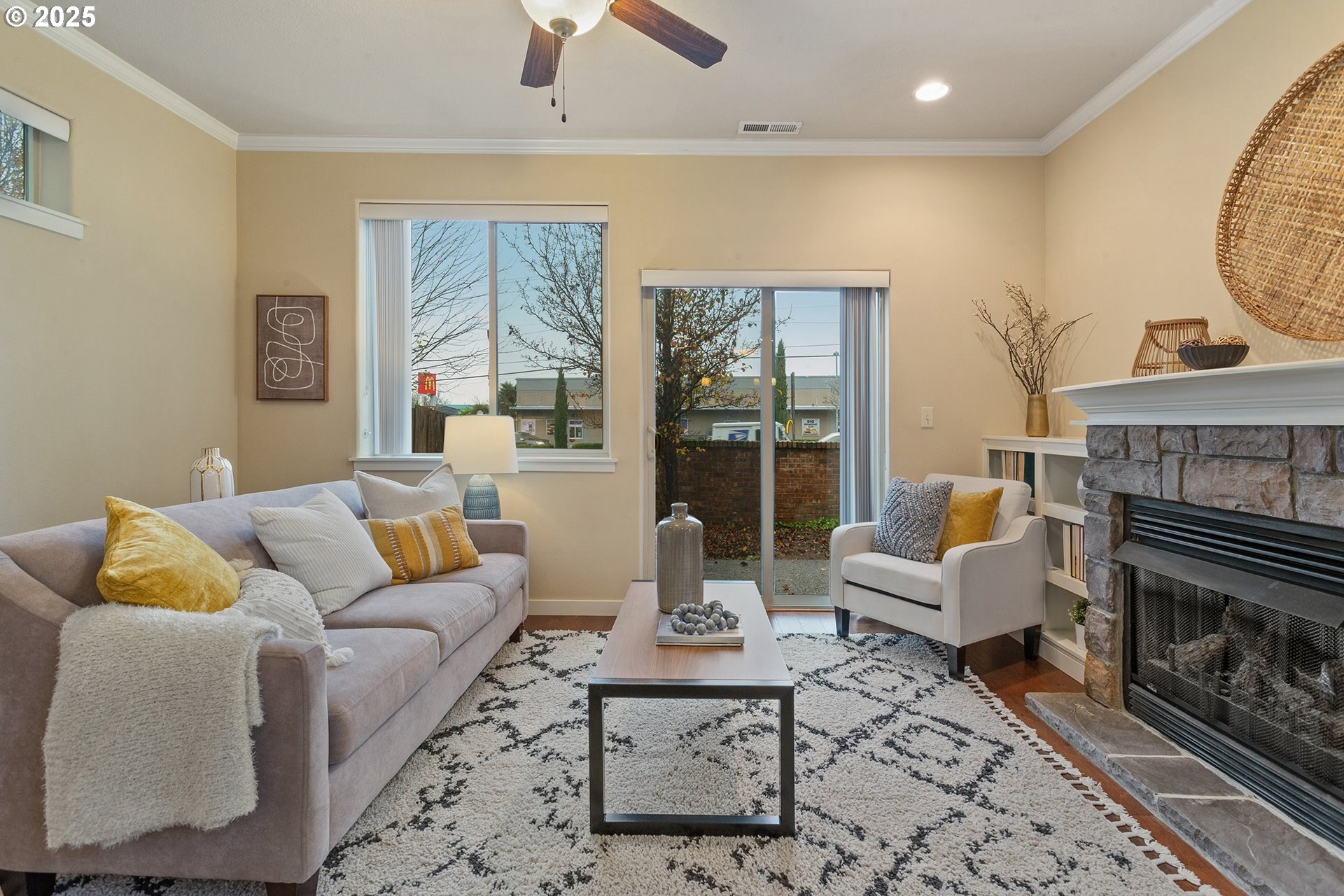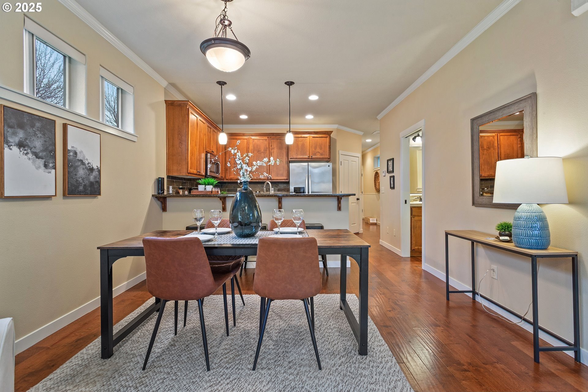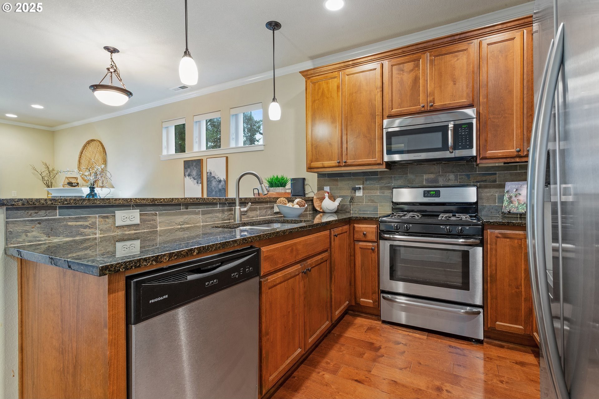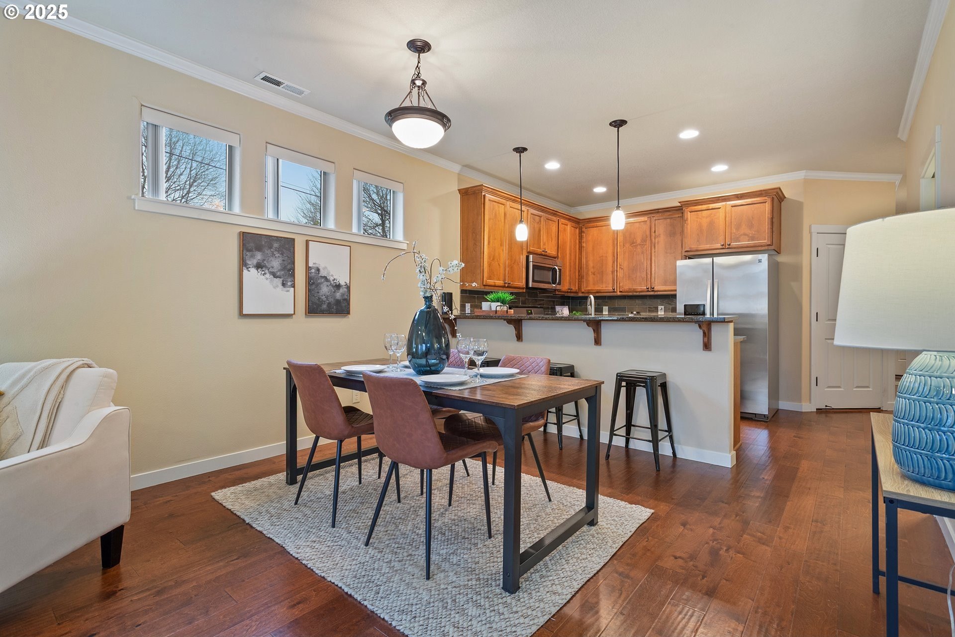 Fall in love with this move-in ready home tucked at the end of a quiet dead-end street-private, peaceful, and nearby shops, parks, and amenities! The open main level features rich Brazilian wood floors and cabinetry, high ceilings, granite counters, and a cozy gas fireplace with built-ins. Upstairs offers comfortable bedrooms and a convenient laundry room, while the third-floor bonus space invites endless possibilities-home office, art studio, media room, or 4th bedroom. Refrigerator, washer, and dryer are included. Enjoy easy living with HOA-maintained front landscaping and a tree-lined setting that bursts with color in spring and summer. Pride of ownership shines throughout this welcoming neighborhood-truly a place you'll love to call home.